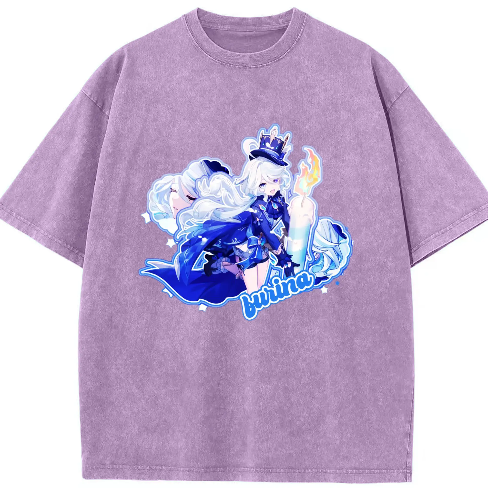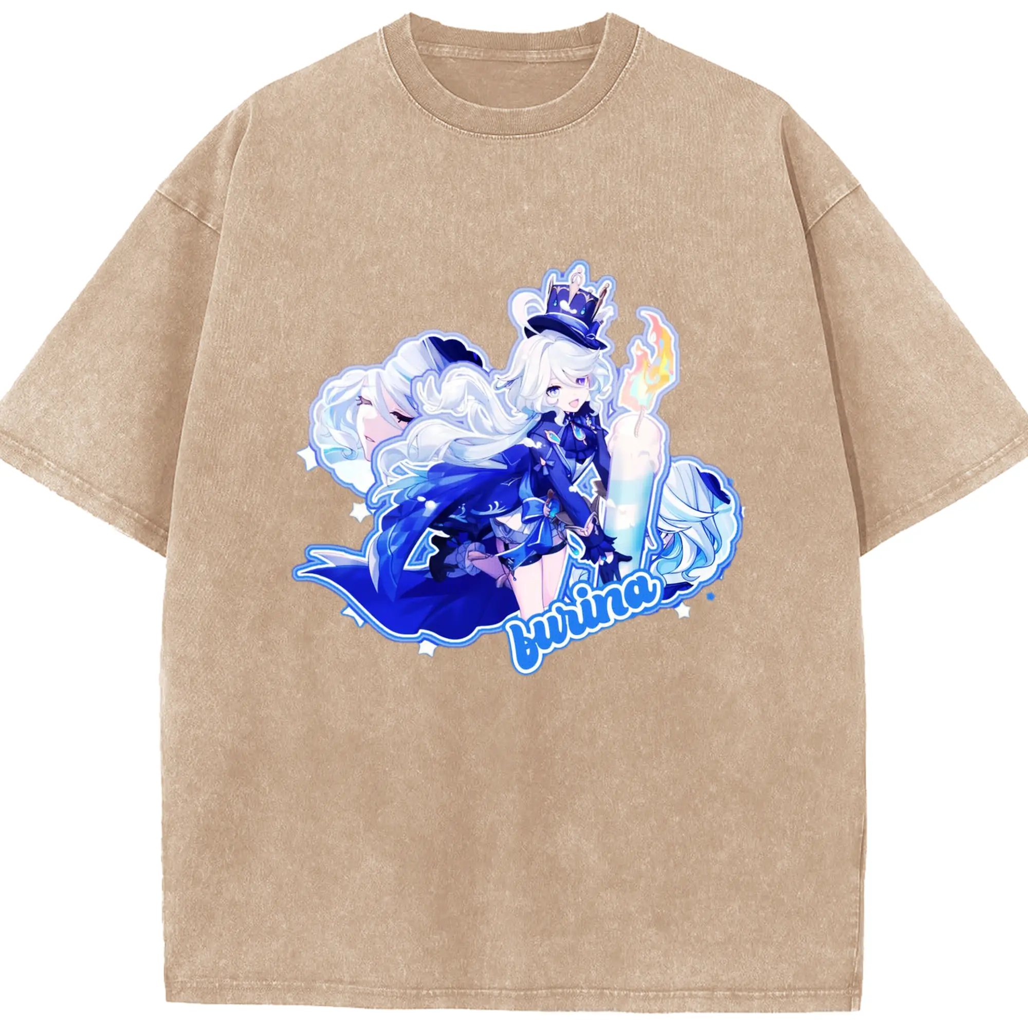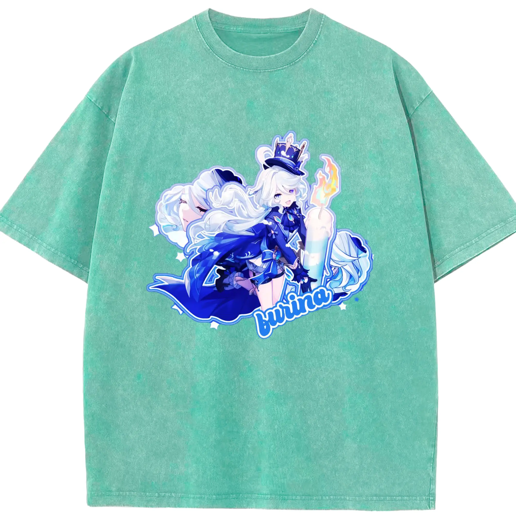Genshin フォンテーヌ 水神すいじんフォカロルス フリーナ - 綿100% ヴィンテージ風 半袖Tシャツ ・ フロントプリント ・ 柔らか肌触り ・ 通気性 快適 ・ スポーツ カジュアル 外出用