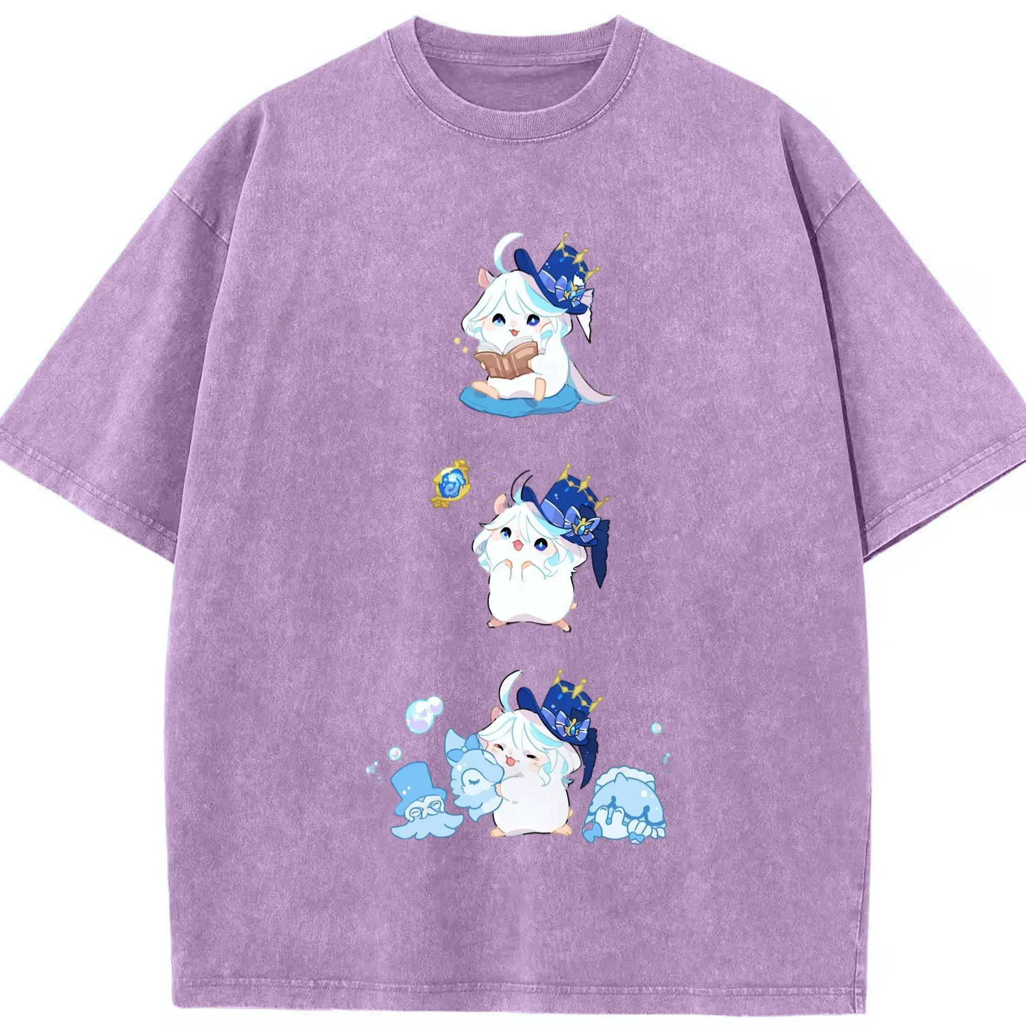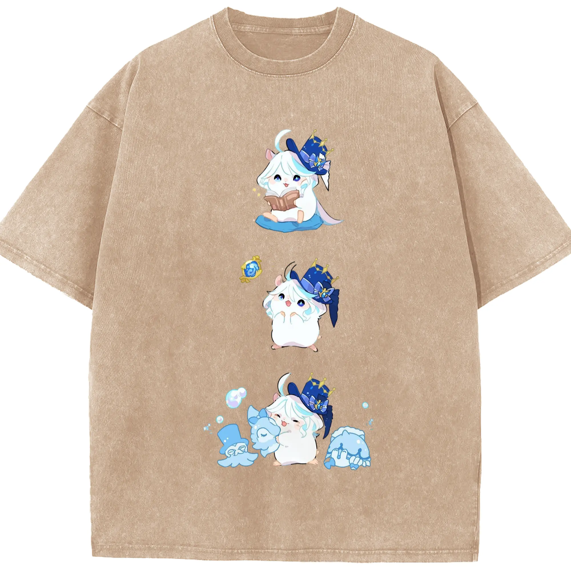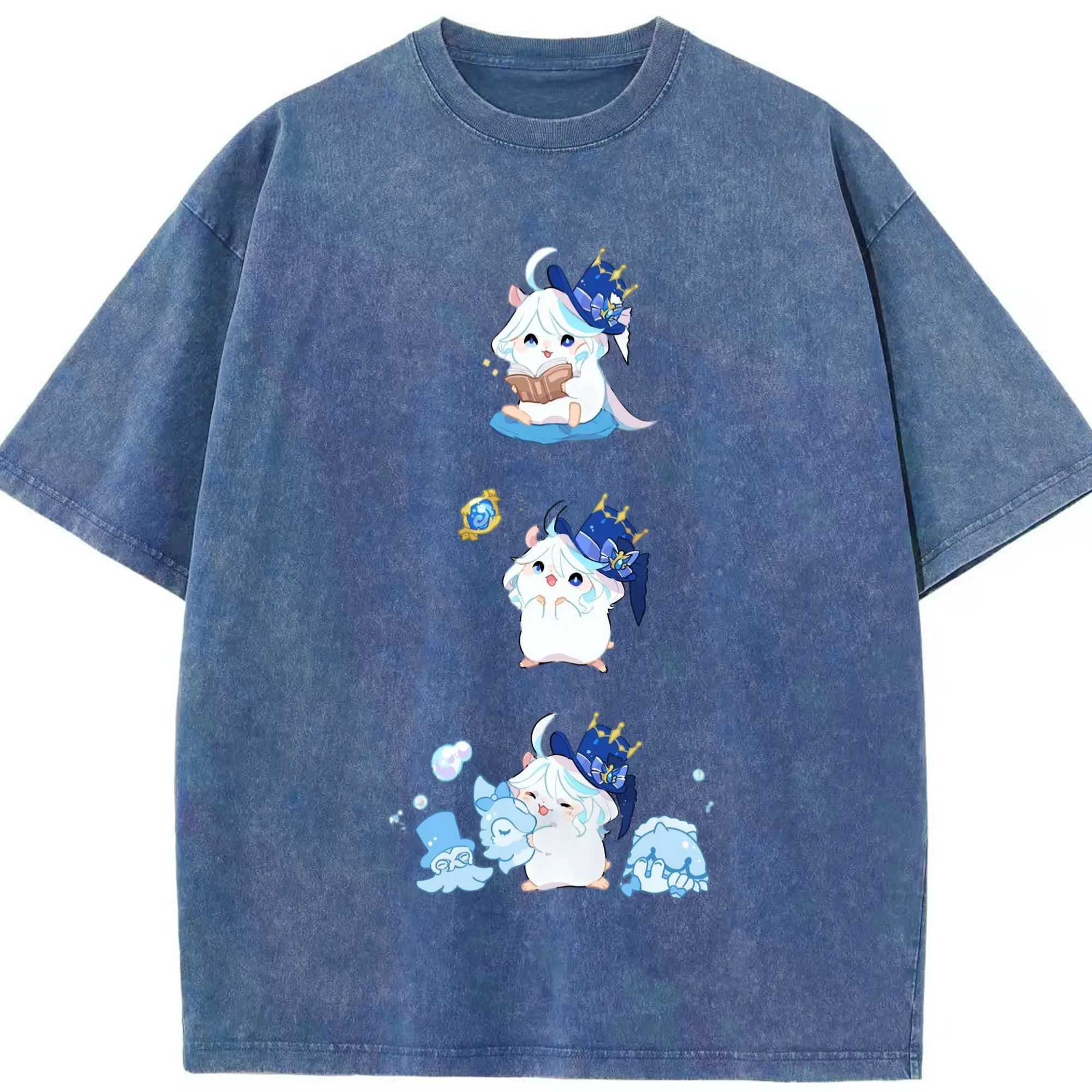Genshin フォンテーヌ 水神すいじんフォカロルス フリーナ - 綿100% ヴィンテージ風 半袖Tシャツ ・ フロントプリント ・ 柔らか肌触り ・ 通気性 快適 ・ スポーツ カジュアル 外出用