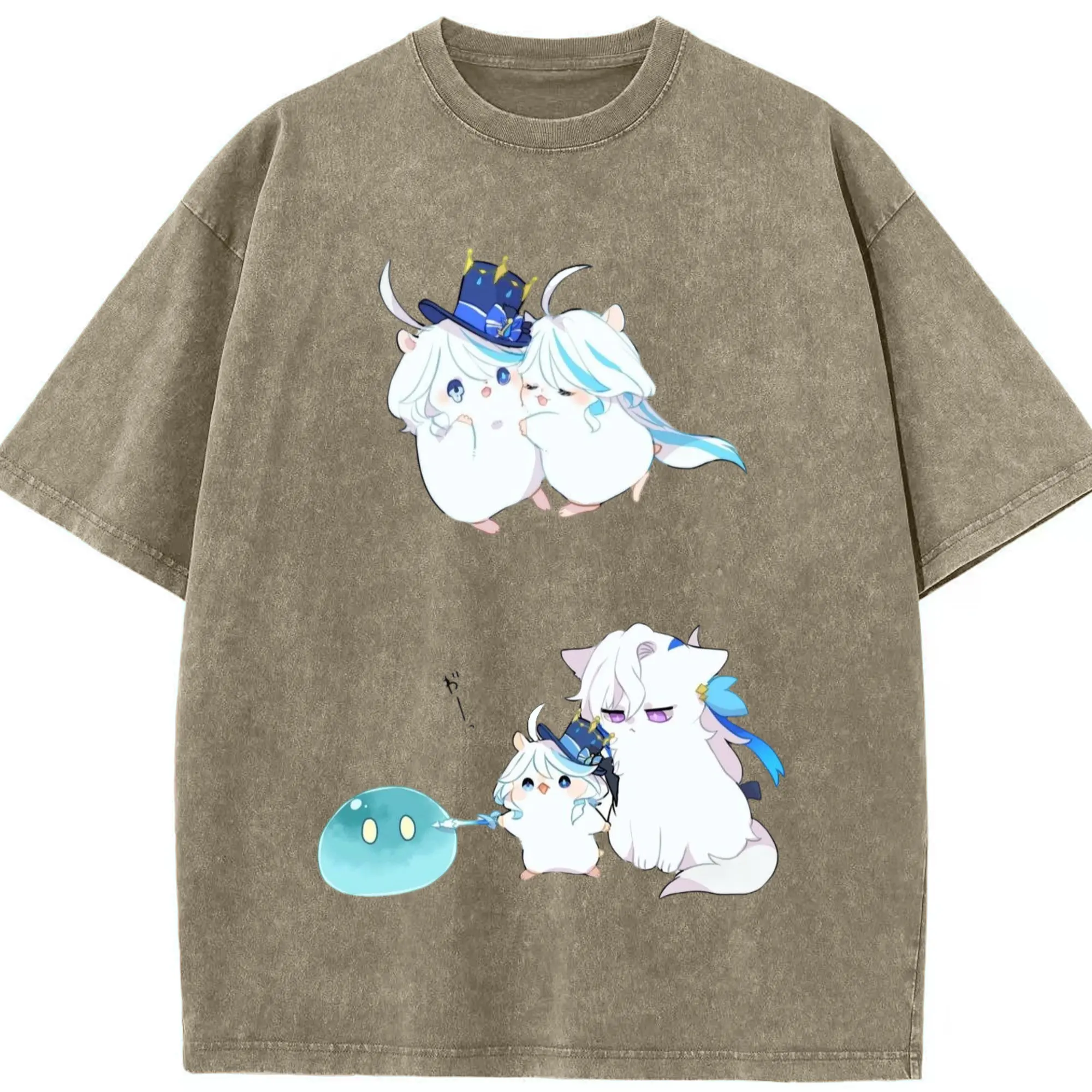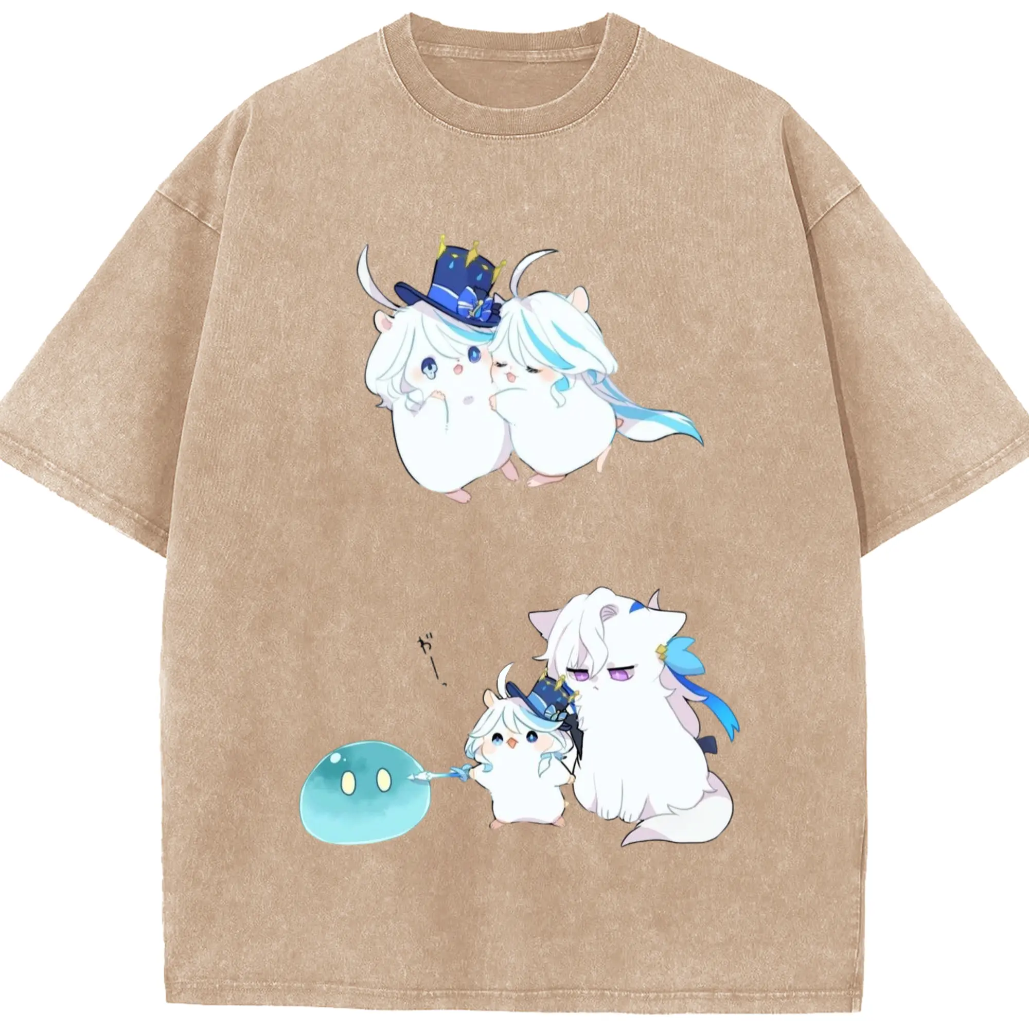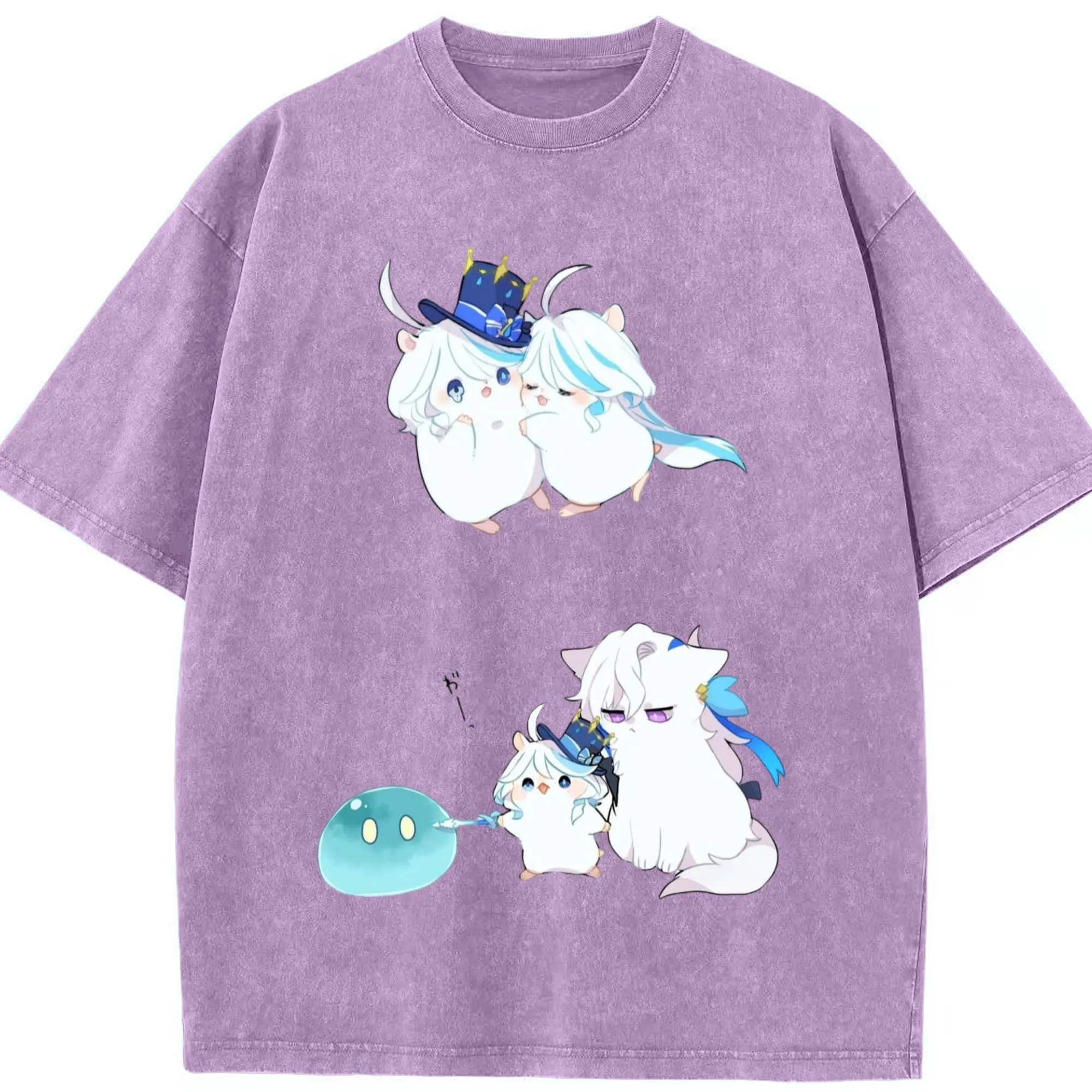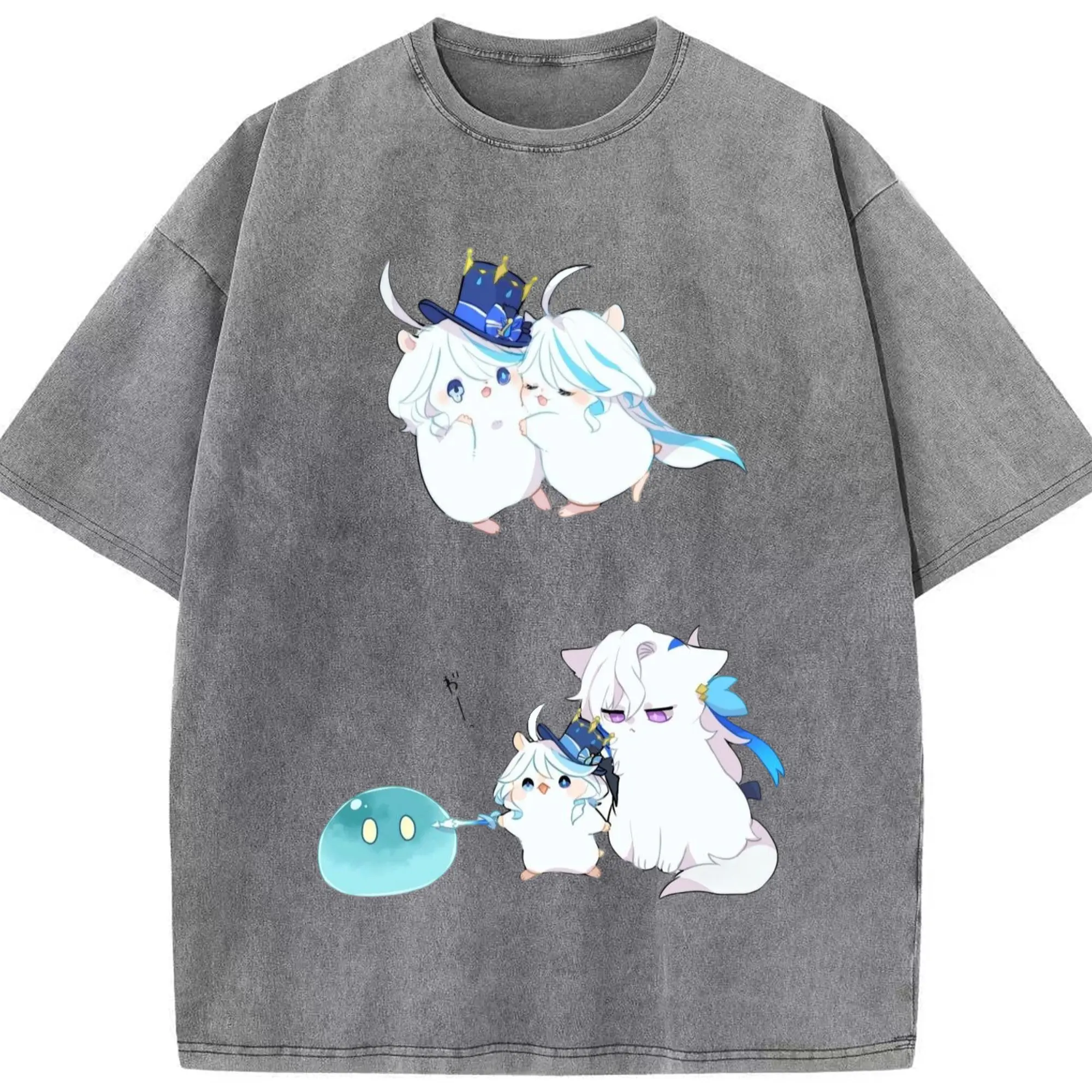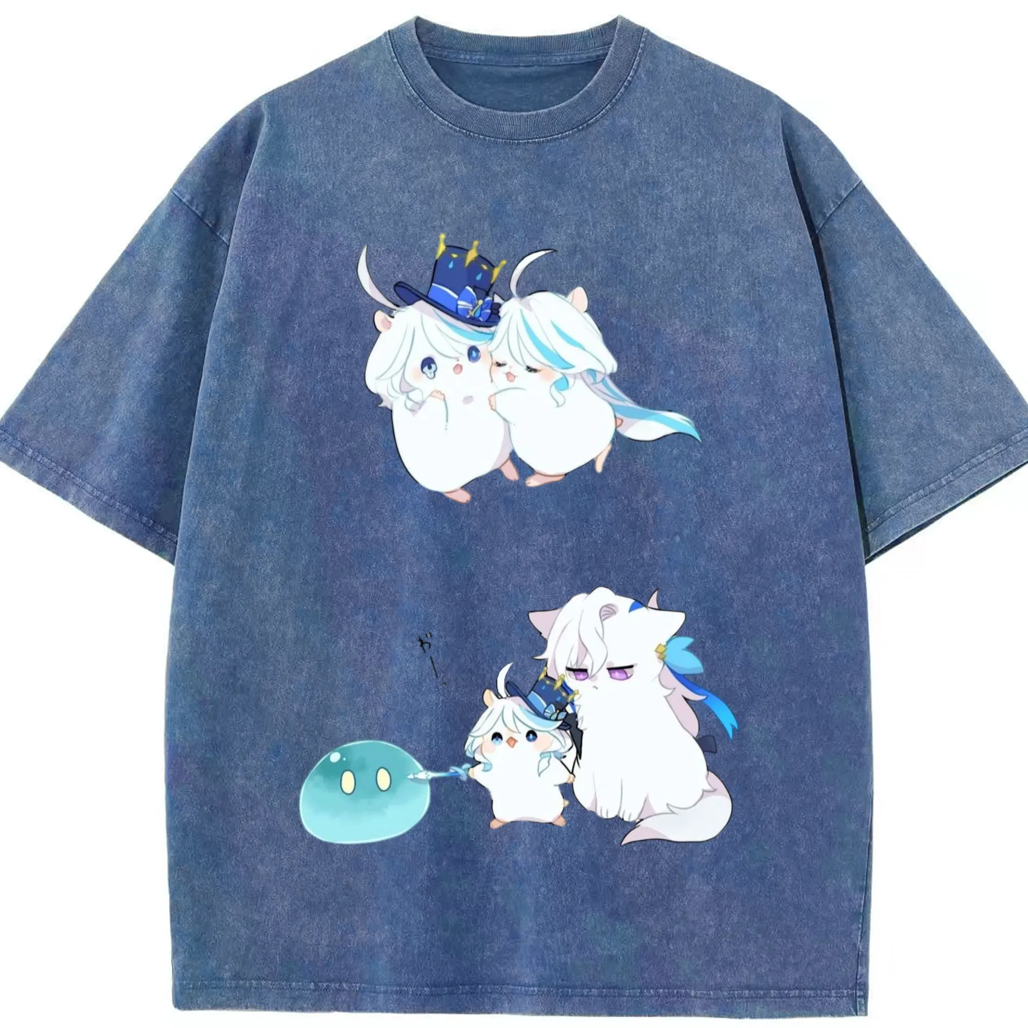 Genshin フォンテーヌ 水神すいじんフォカロルス フリーナ - 綿100% ヴィンテージ風 半袖Tシャツ ・ フロントプリント ・ 柔らか肌触り ・ 通気性 快適 ・ スポーツ カジュアル 外出用