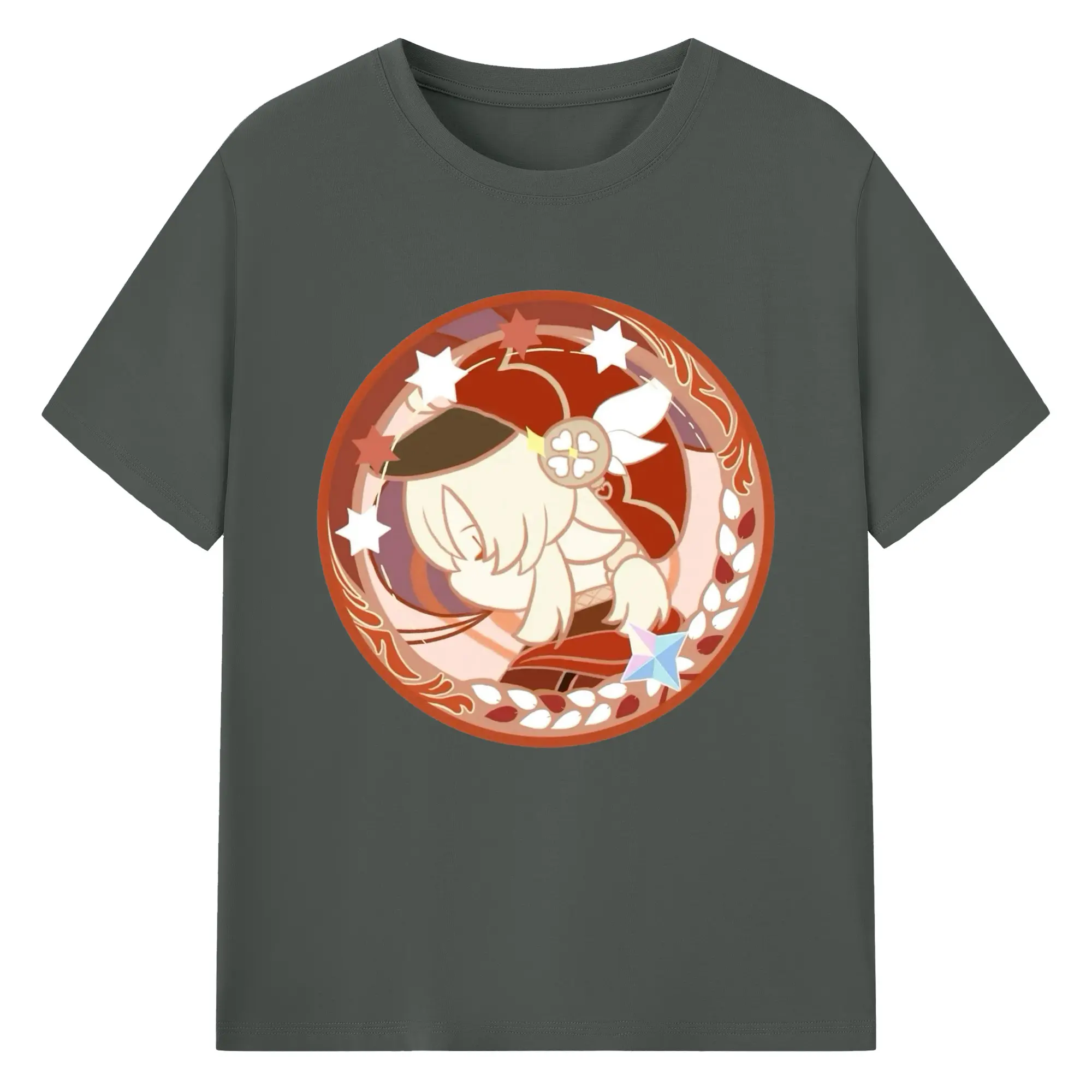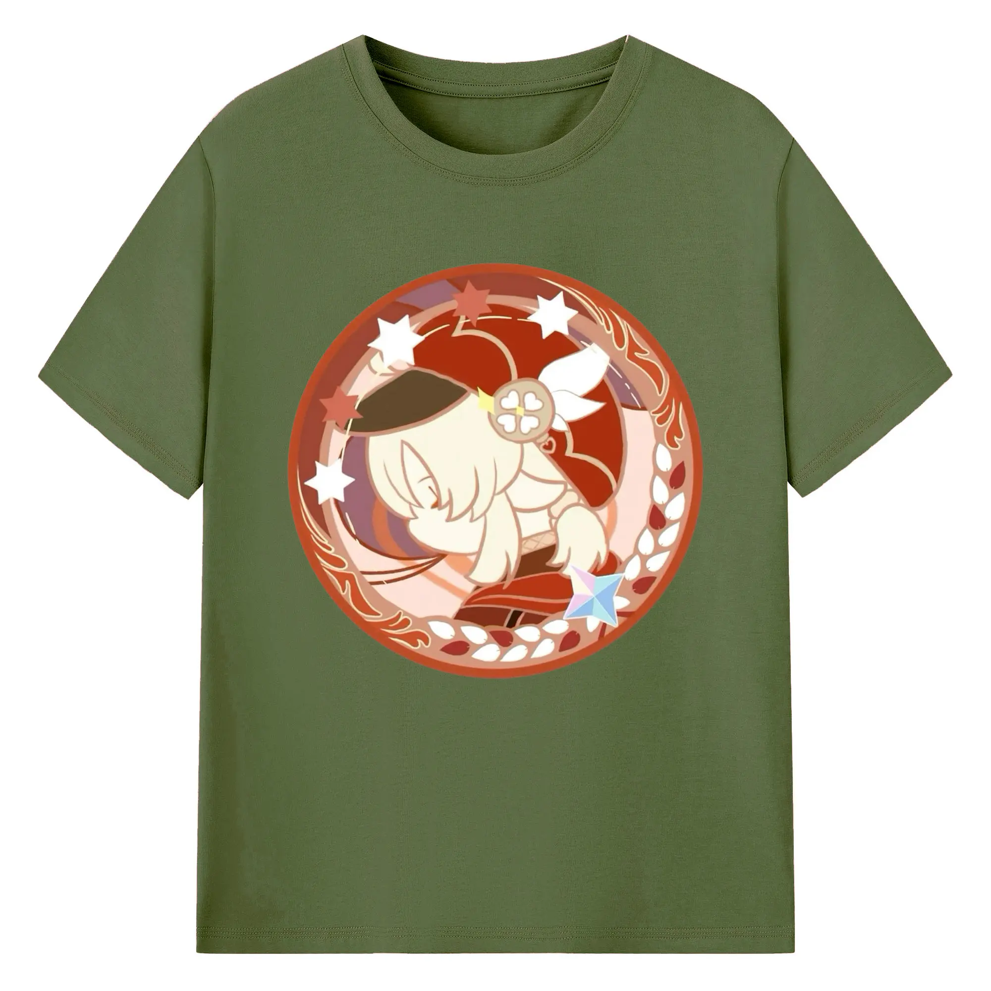 Genshin モンドクレーちゃん - 綿100% ヴィンテージ風 半袖Tシャツ ・ フロントプリント ・ 柔らか肌触り ・ 通気性 快適 ・ スポーツ カジュアル 外出用