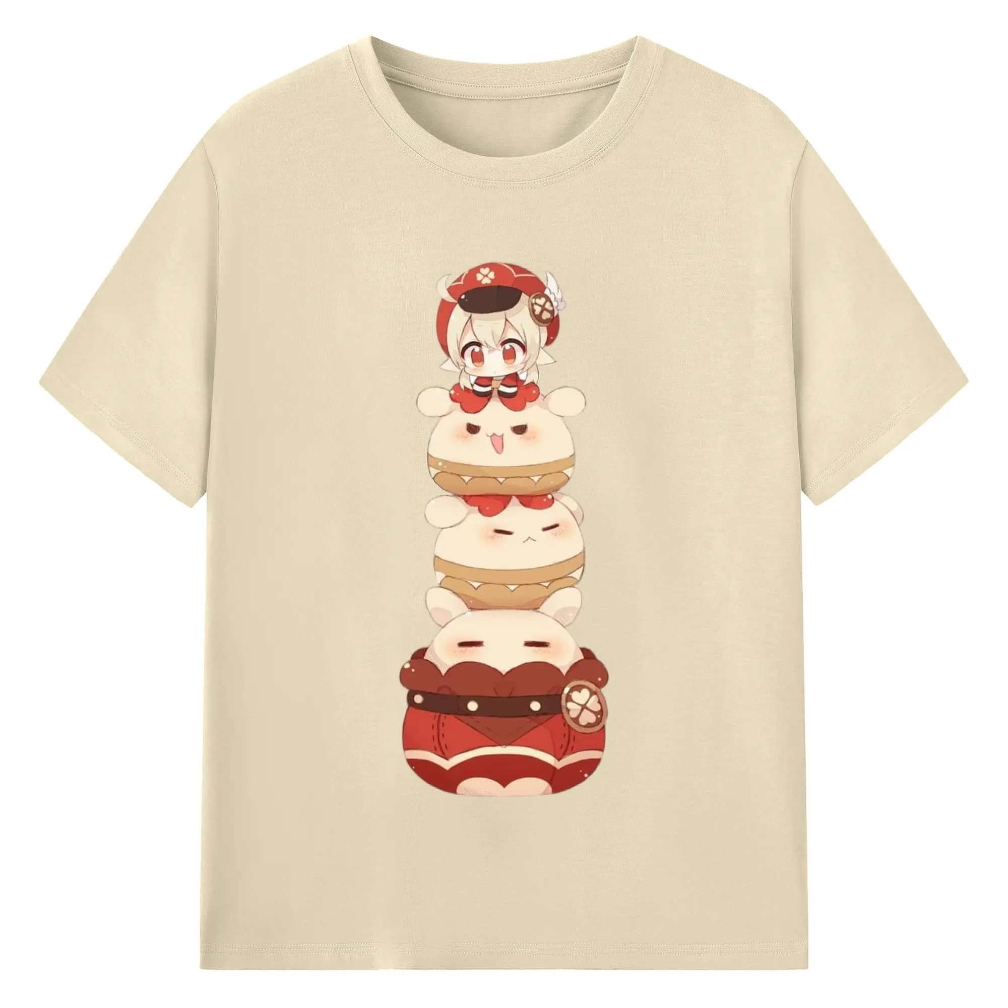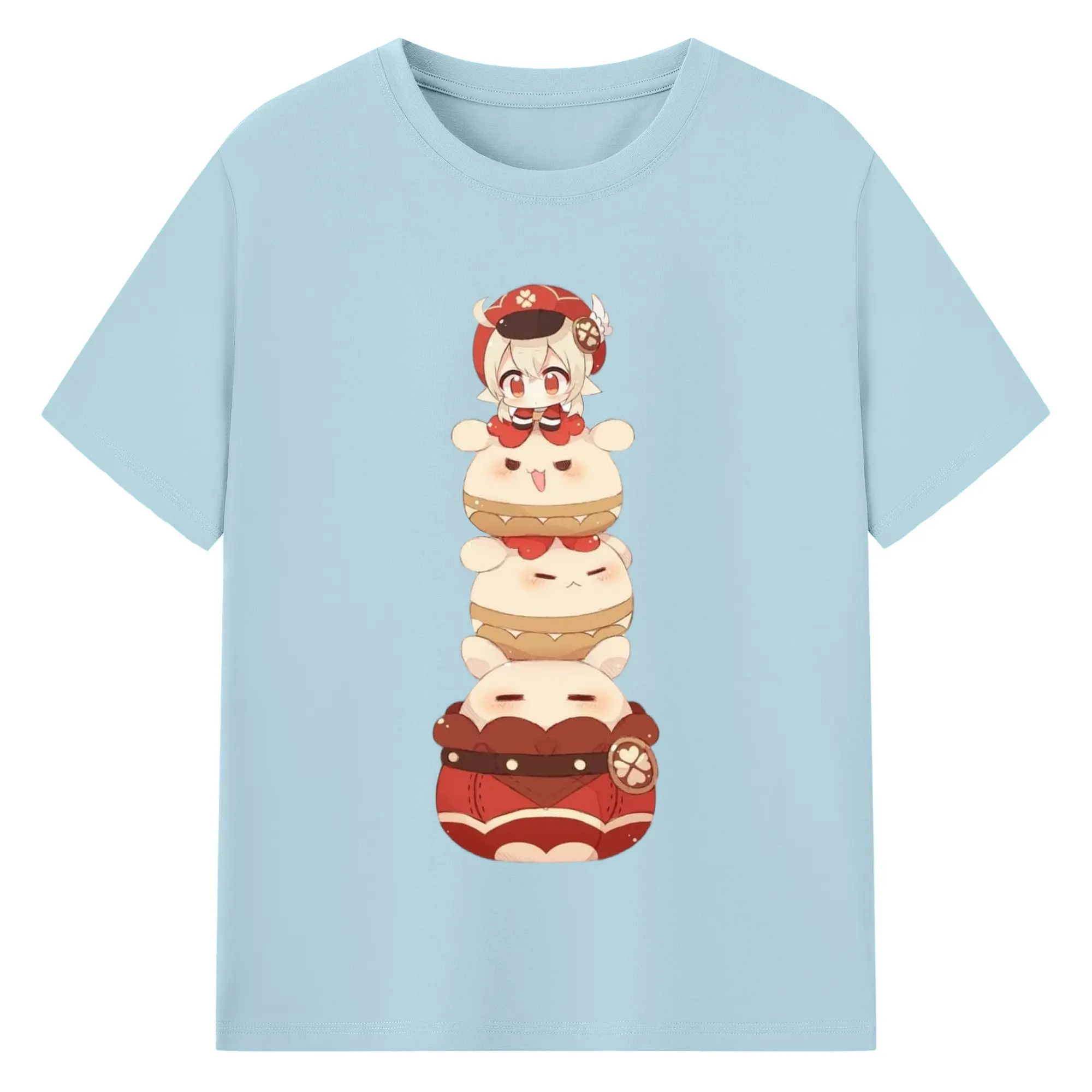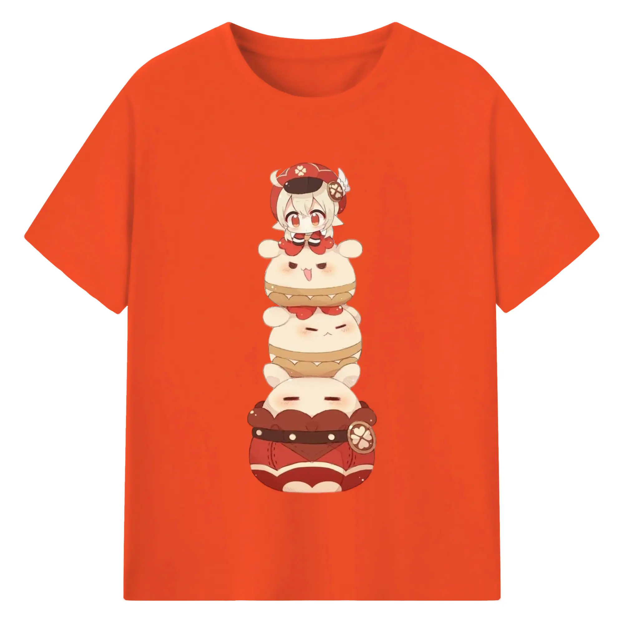 Genshin モンド クレーちゃん のドドコ - 綿100% 半袖Tシャツ ・ フロントプリント ・ 快適 通気性 ・ 日常使い 散歩 スポーツ用
