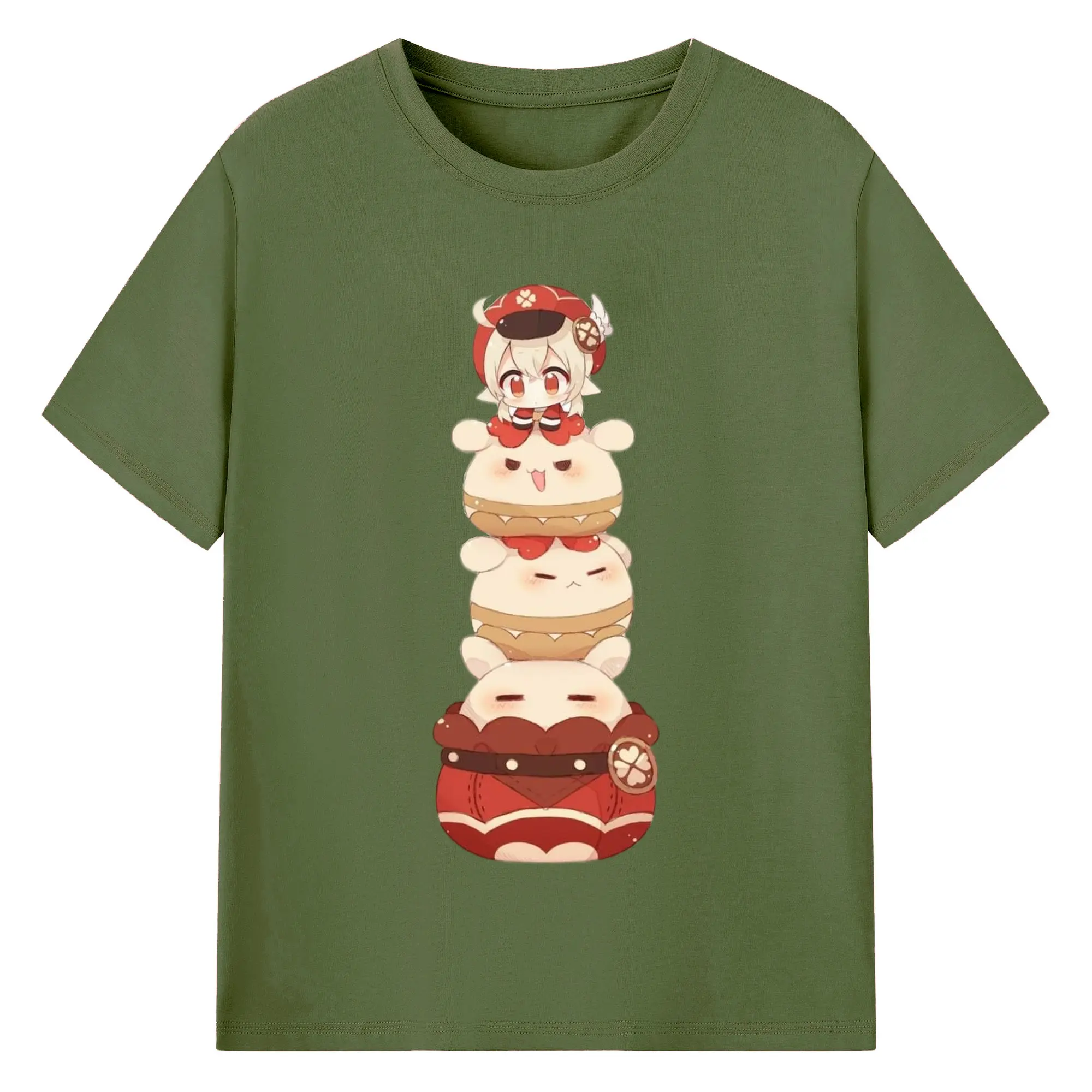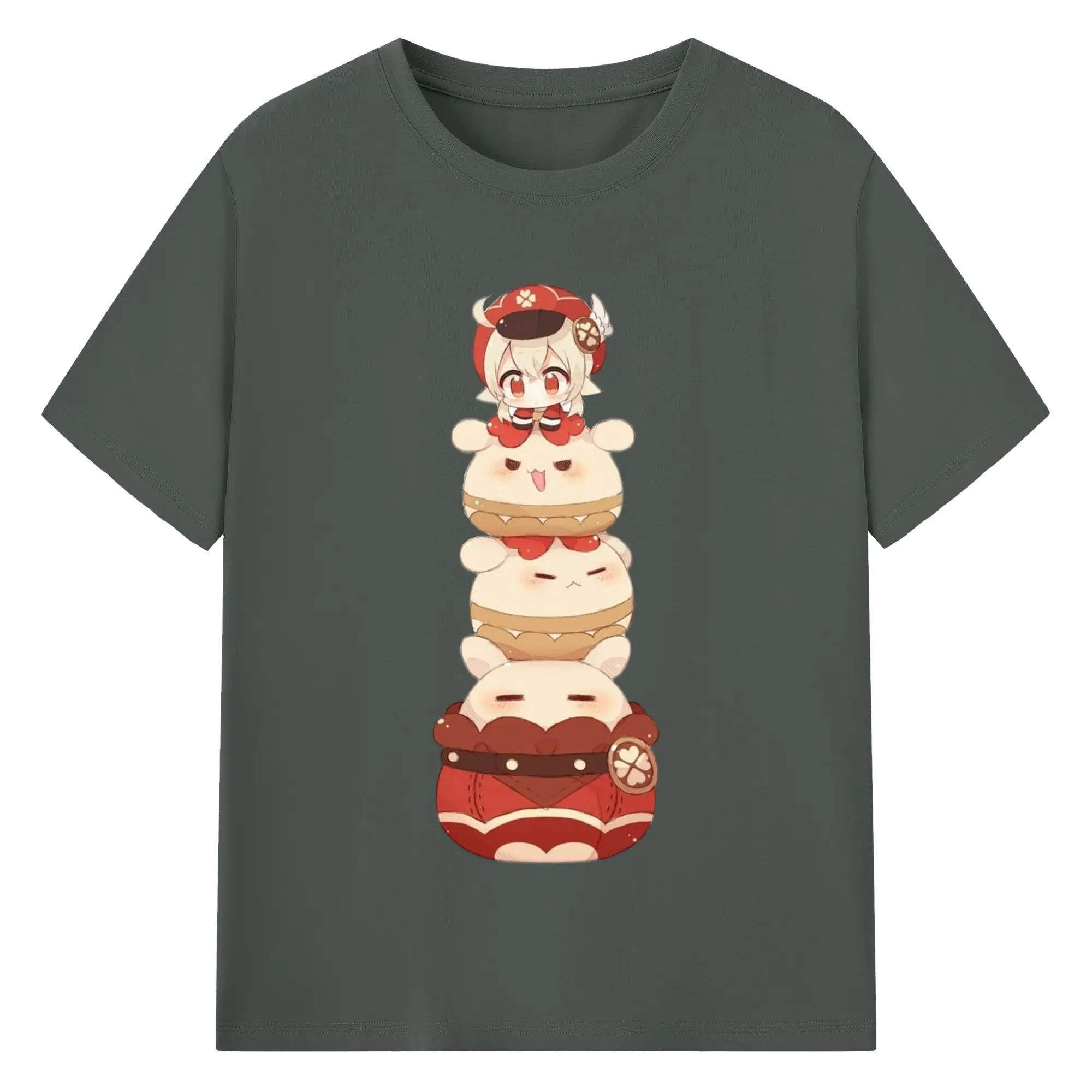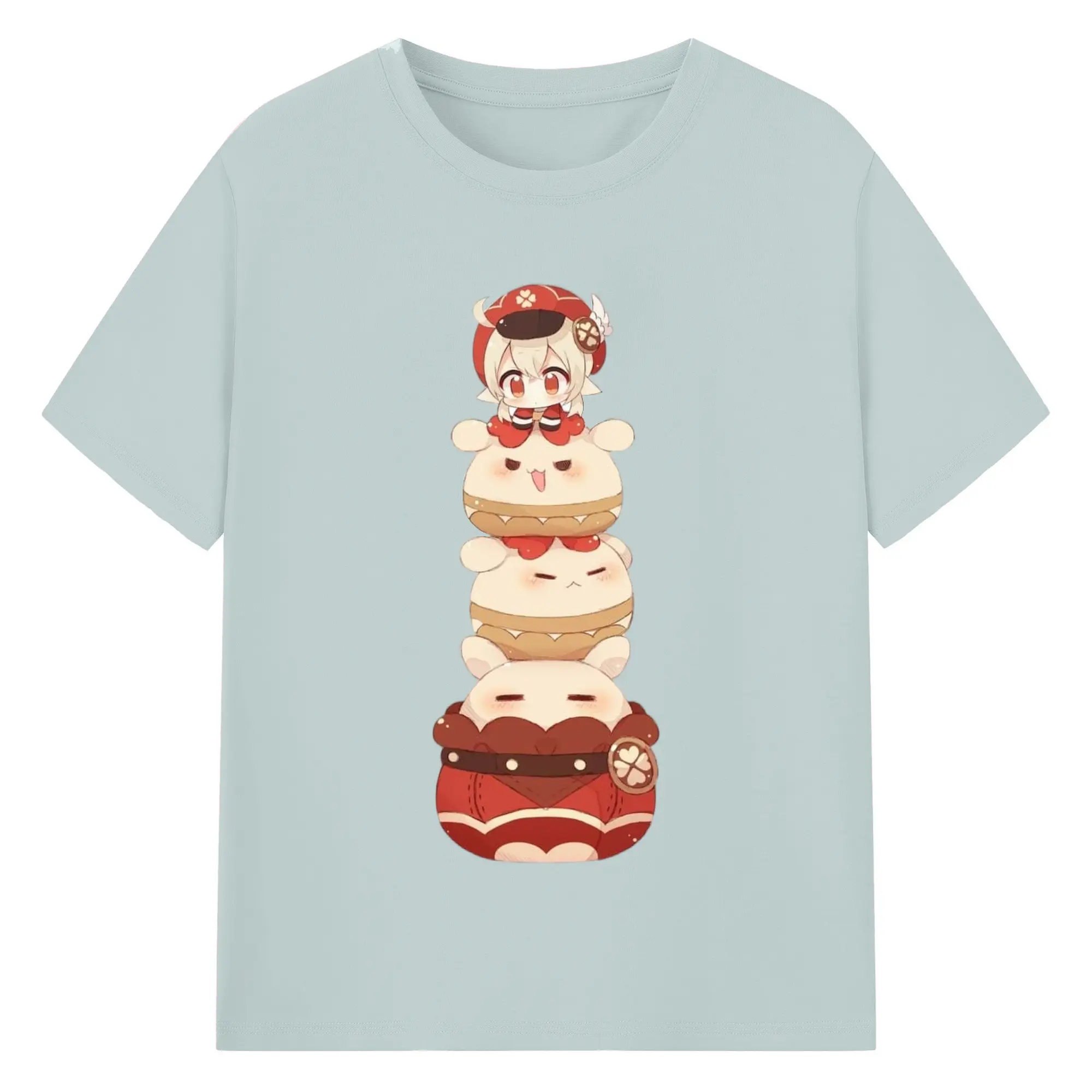 Genshin モンド クレーちゃん のドドコ - 綿100% 半袖Tシャツ ・ フロントプリント ・ 快適 通気性 ・ 日常使い 散歩 スポーツ用