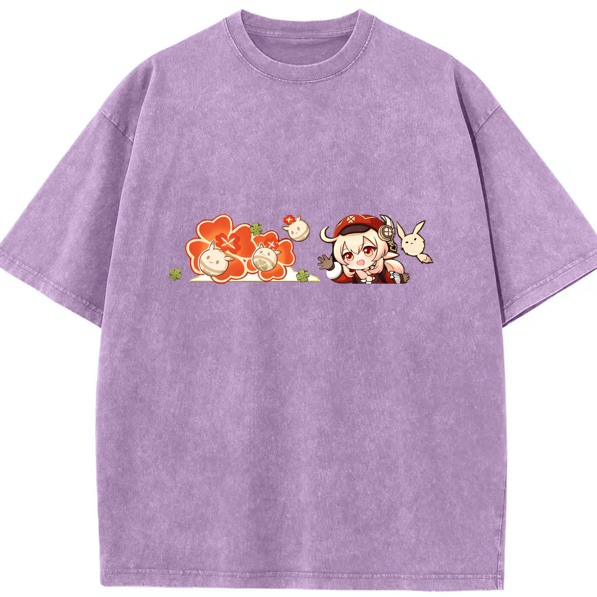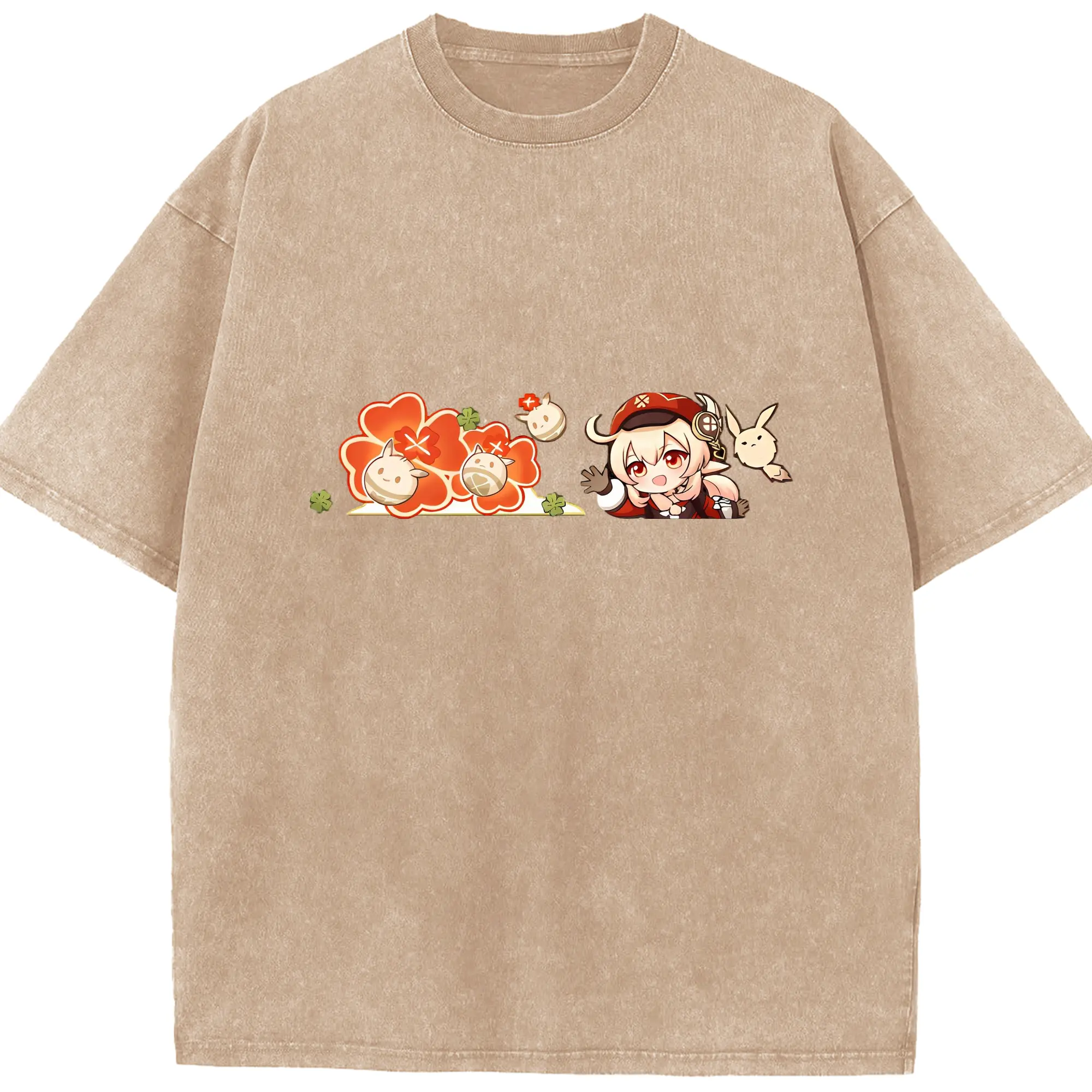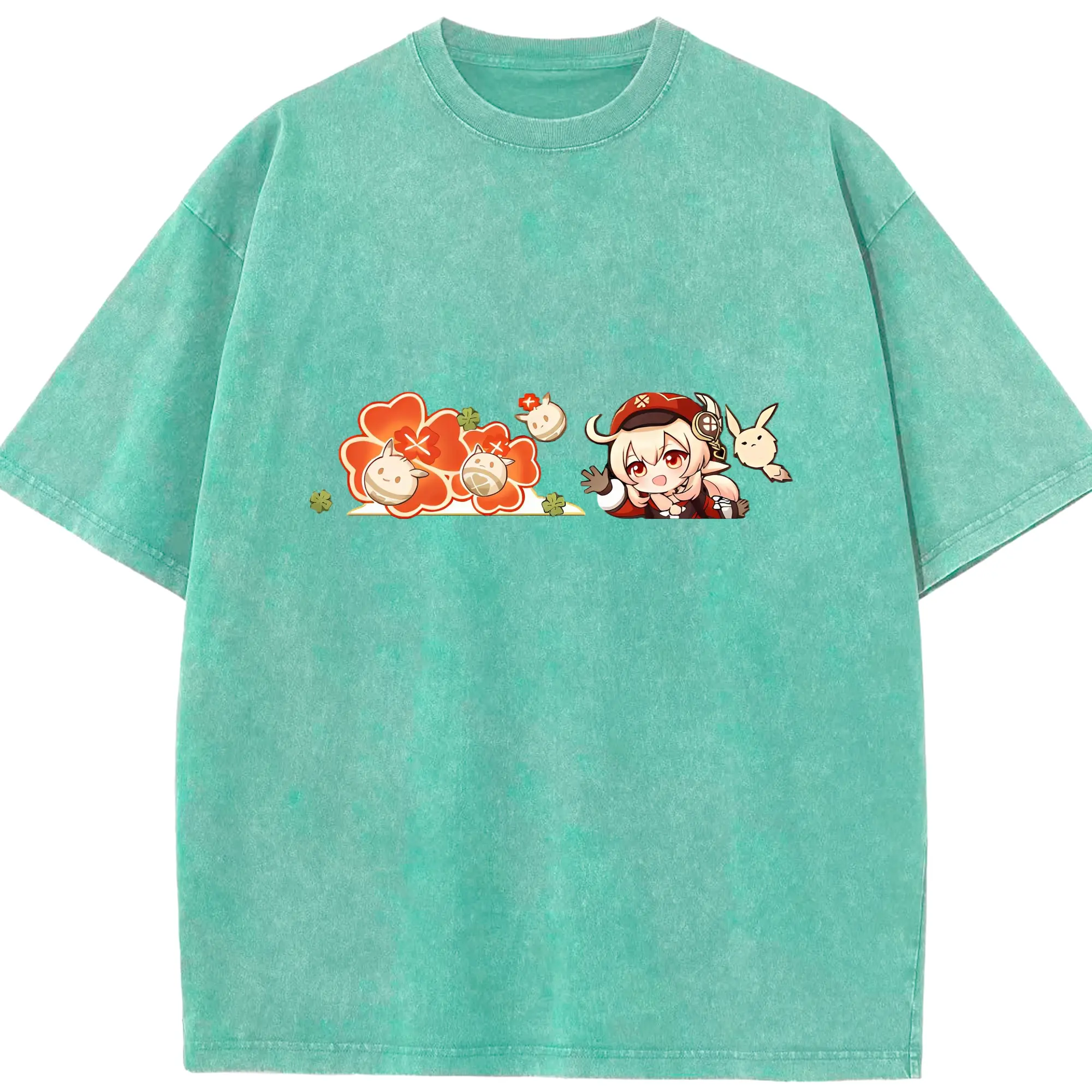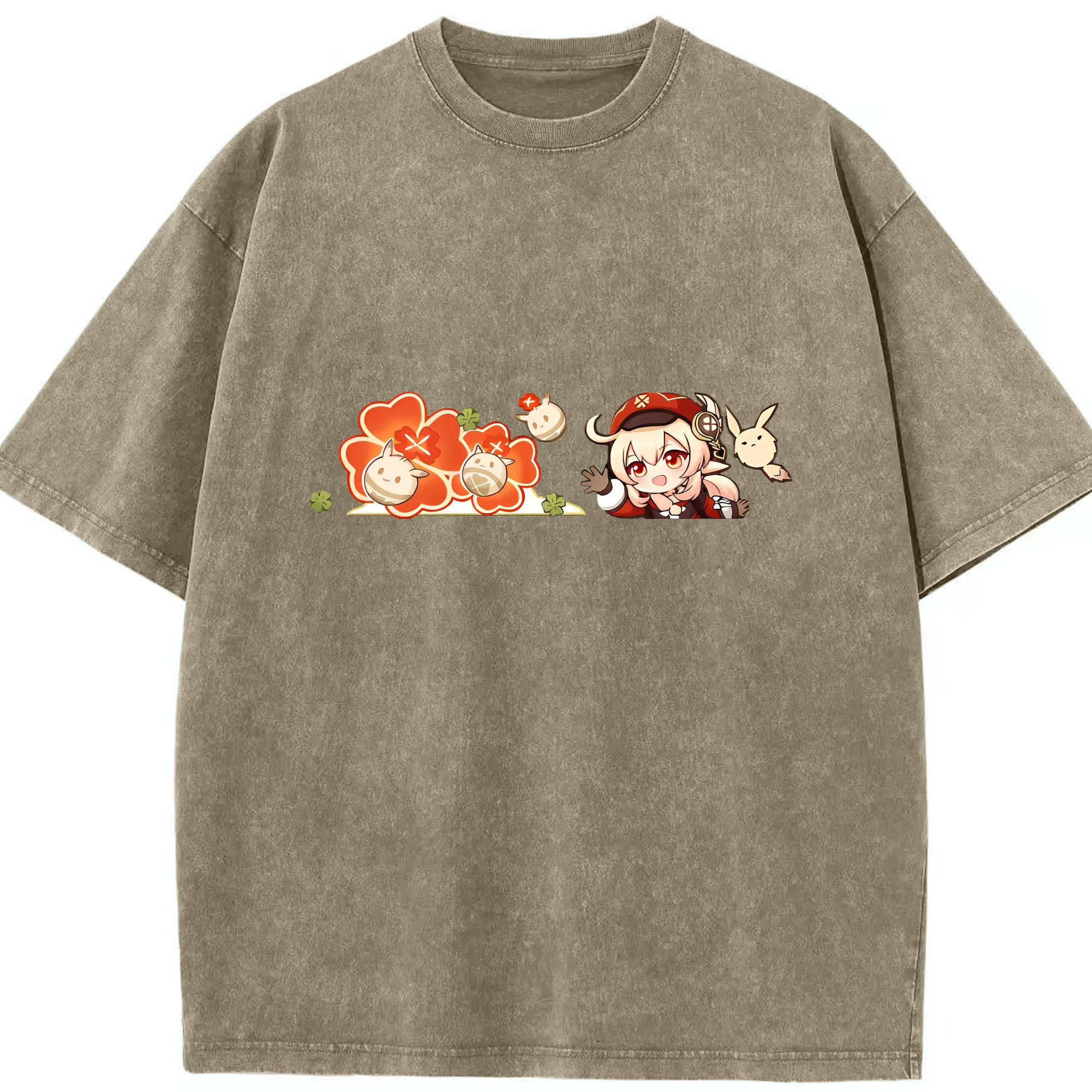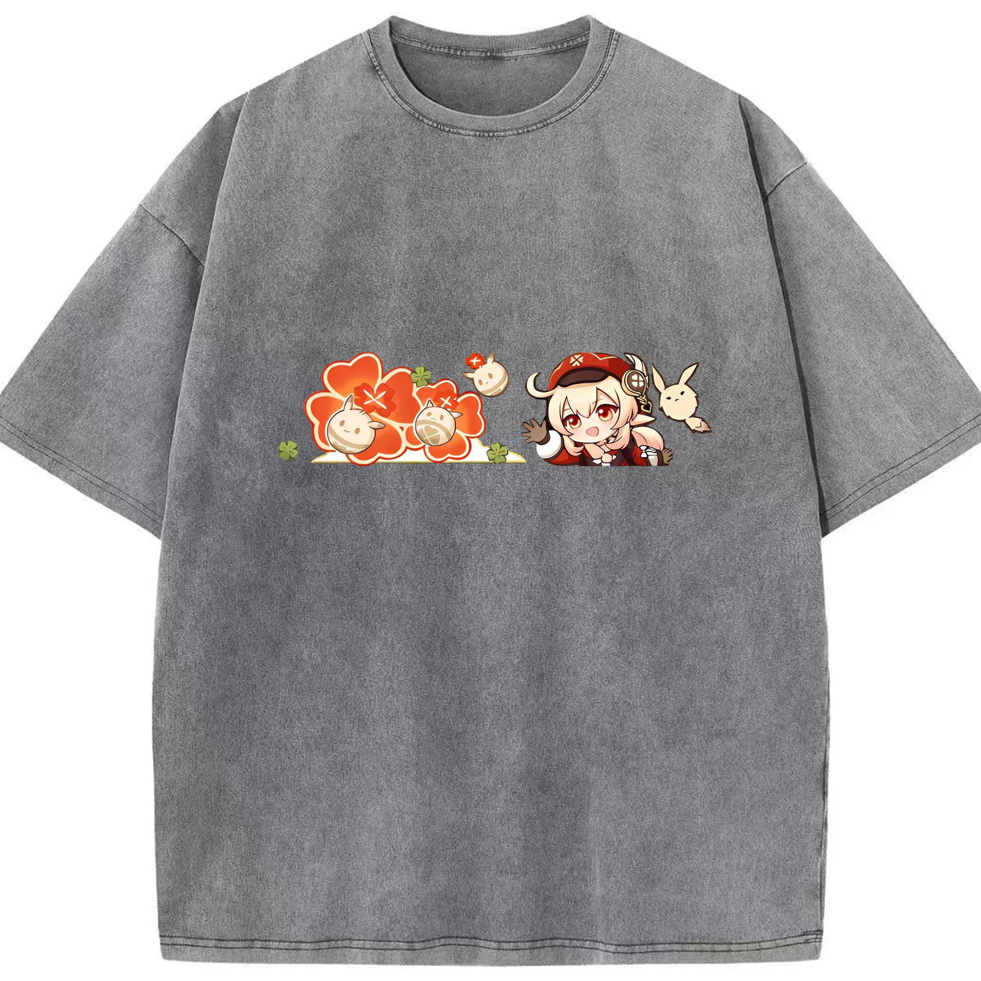 Genshin モンド クレーちゃん - 綿100% ヴィンテージ風 半袖Tシャツ ・ フロントプリント ・ 柔らか肌触り ・ 通気性 快適 ・ スポーツ カジュアル 外出用
