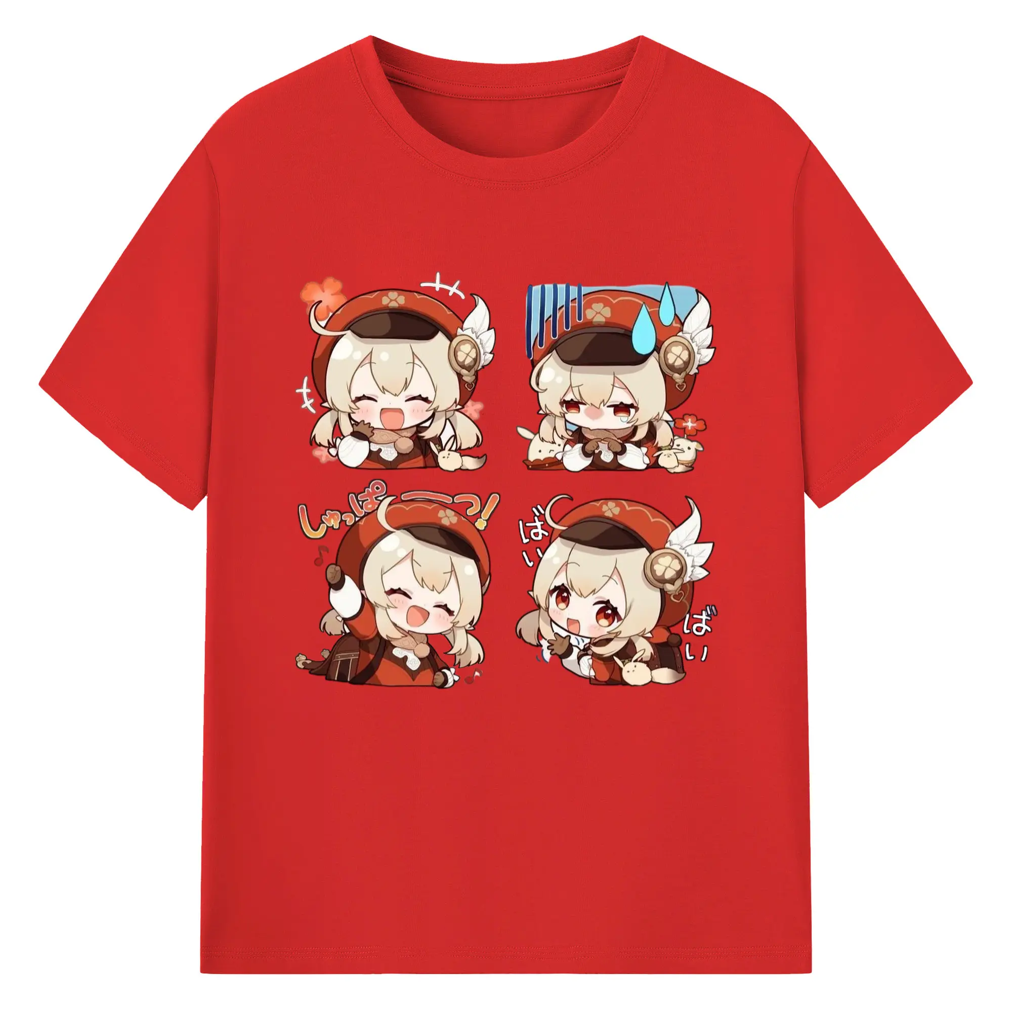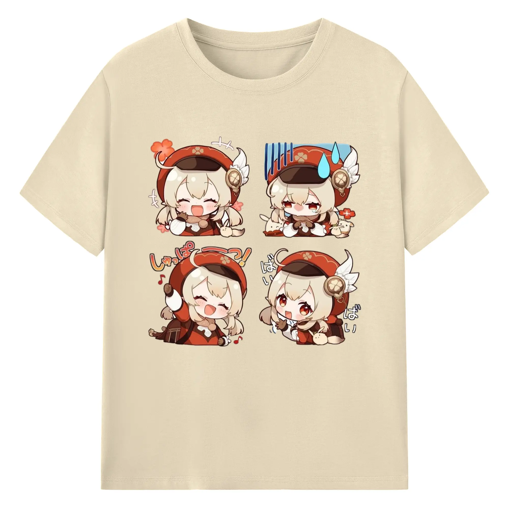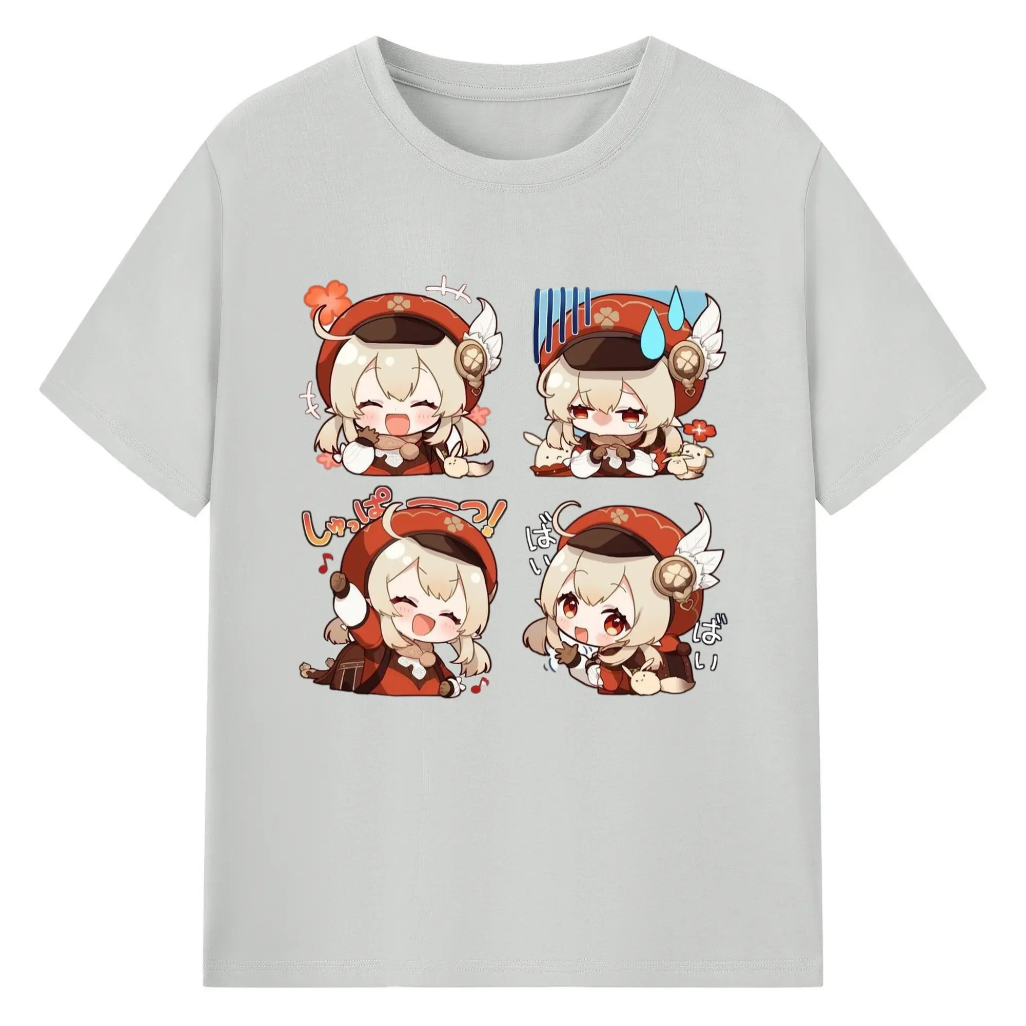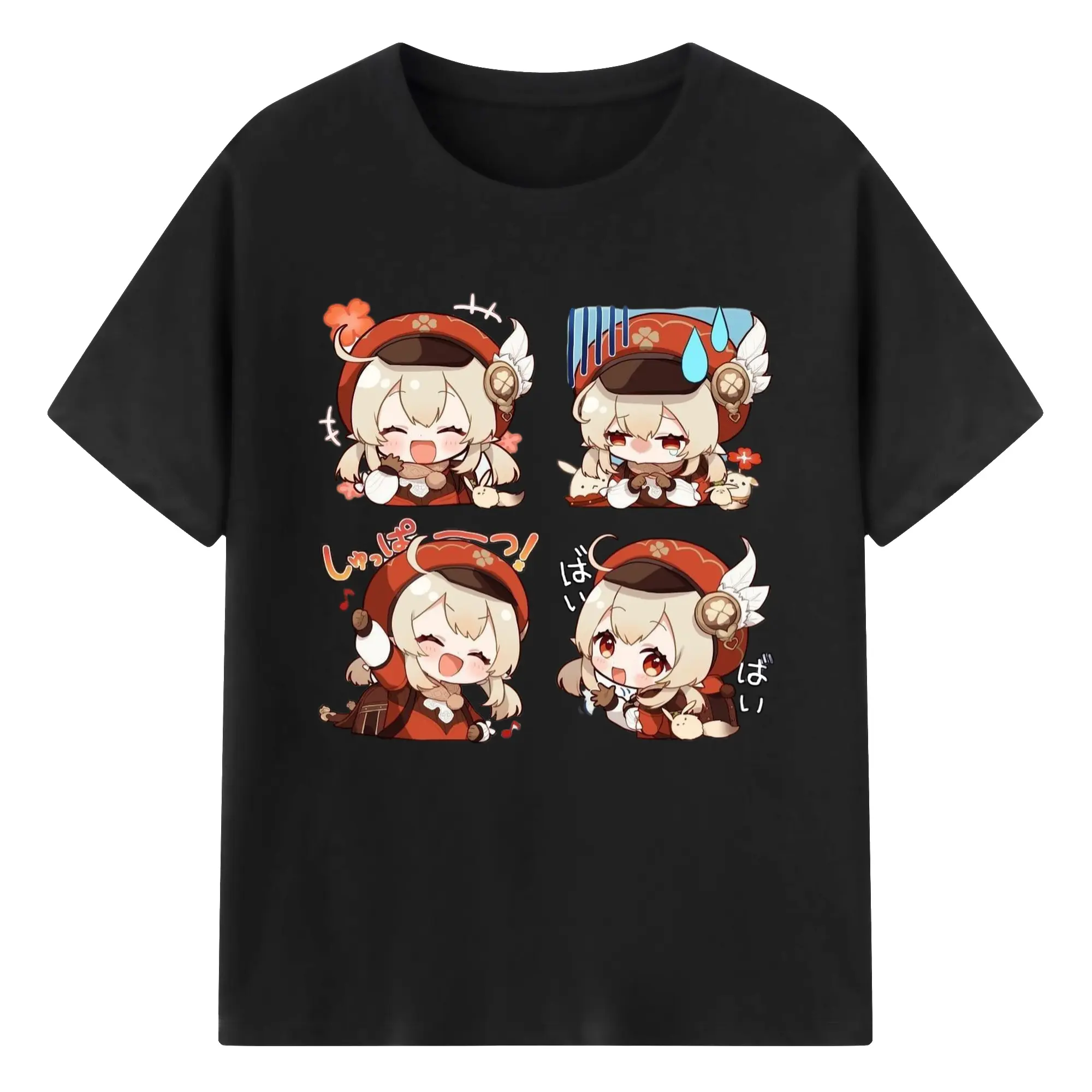 Genshin モンド クレーちゃん 4コマ写真 - 綿100% 半袖Tシャツ ・ フロントプリント ・ 快適 通気性 ・ 日常使い 散歩 スポーツ用