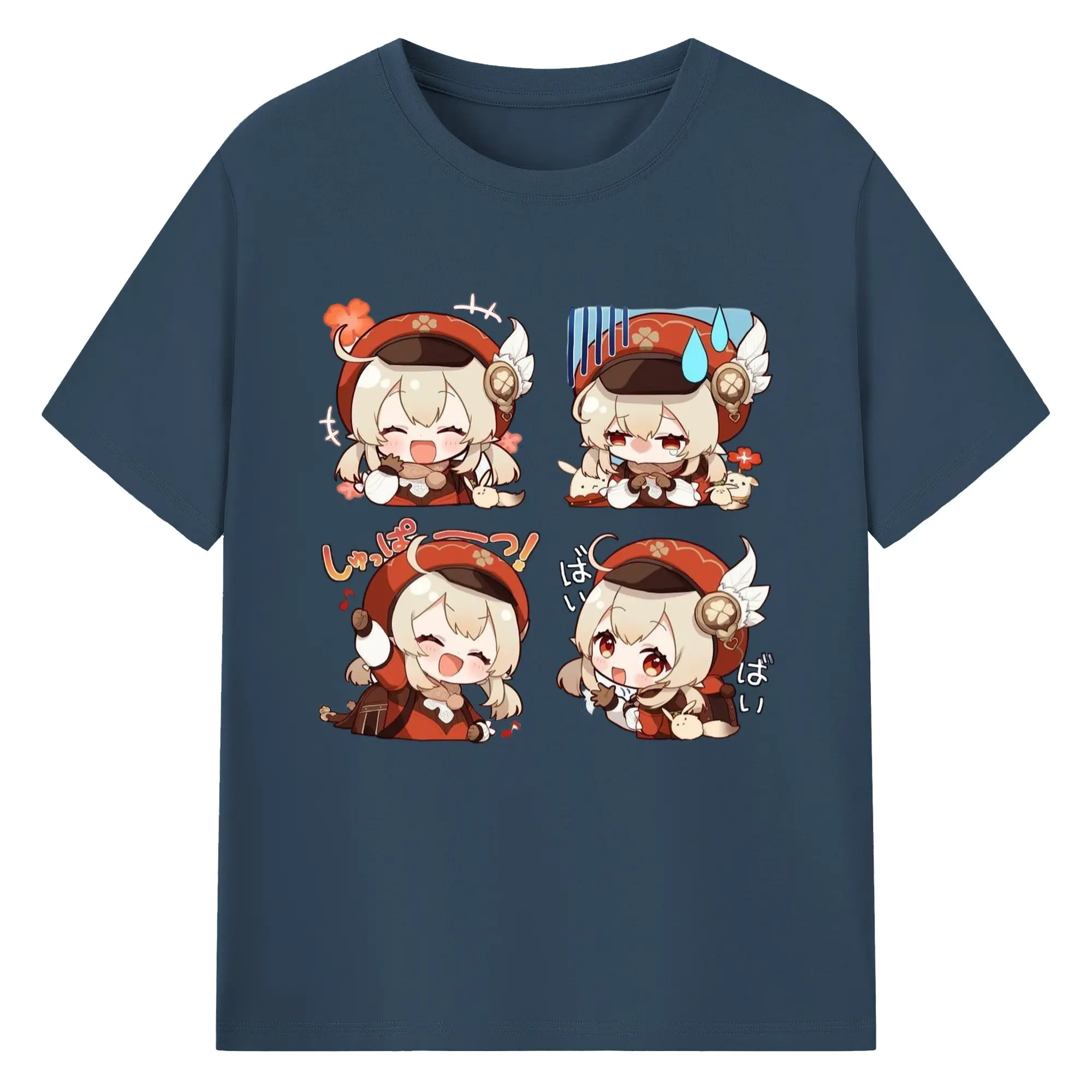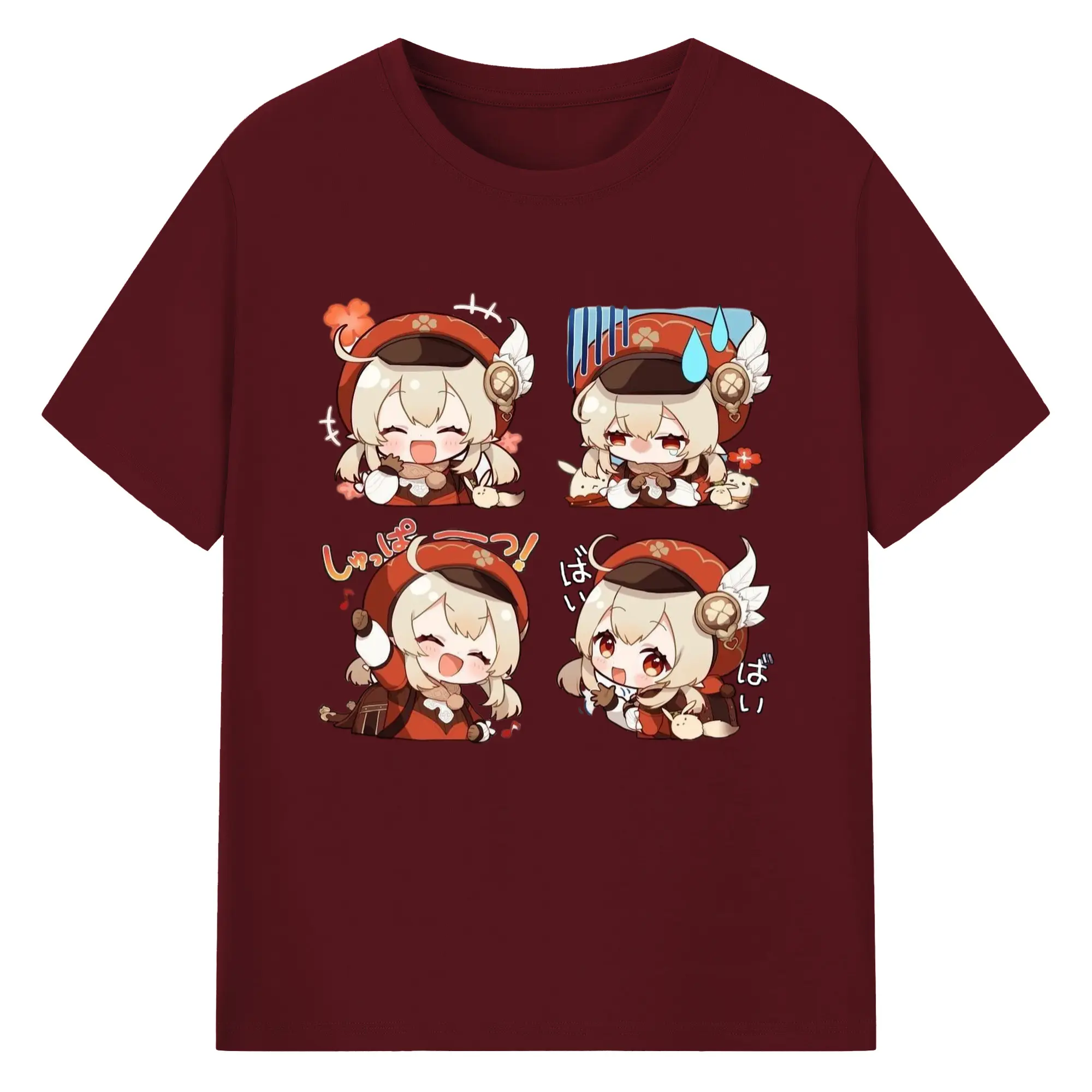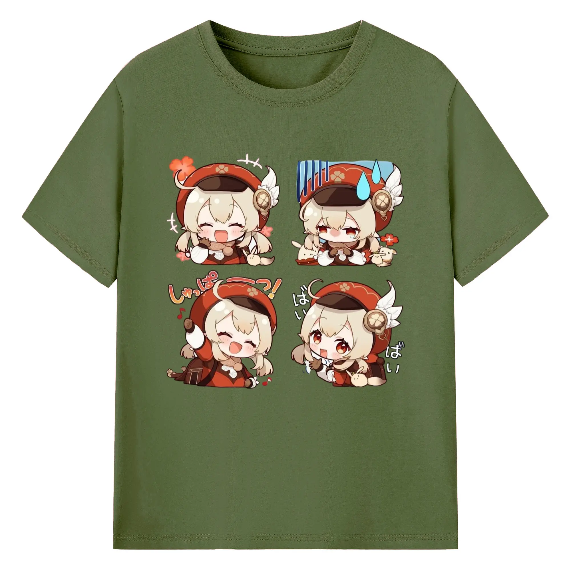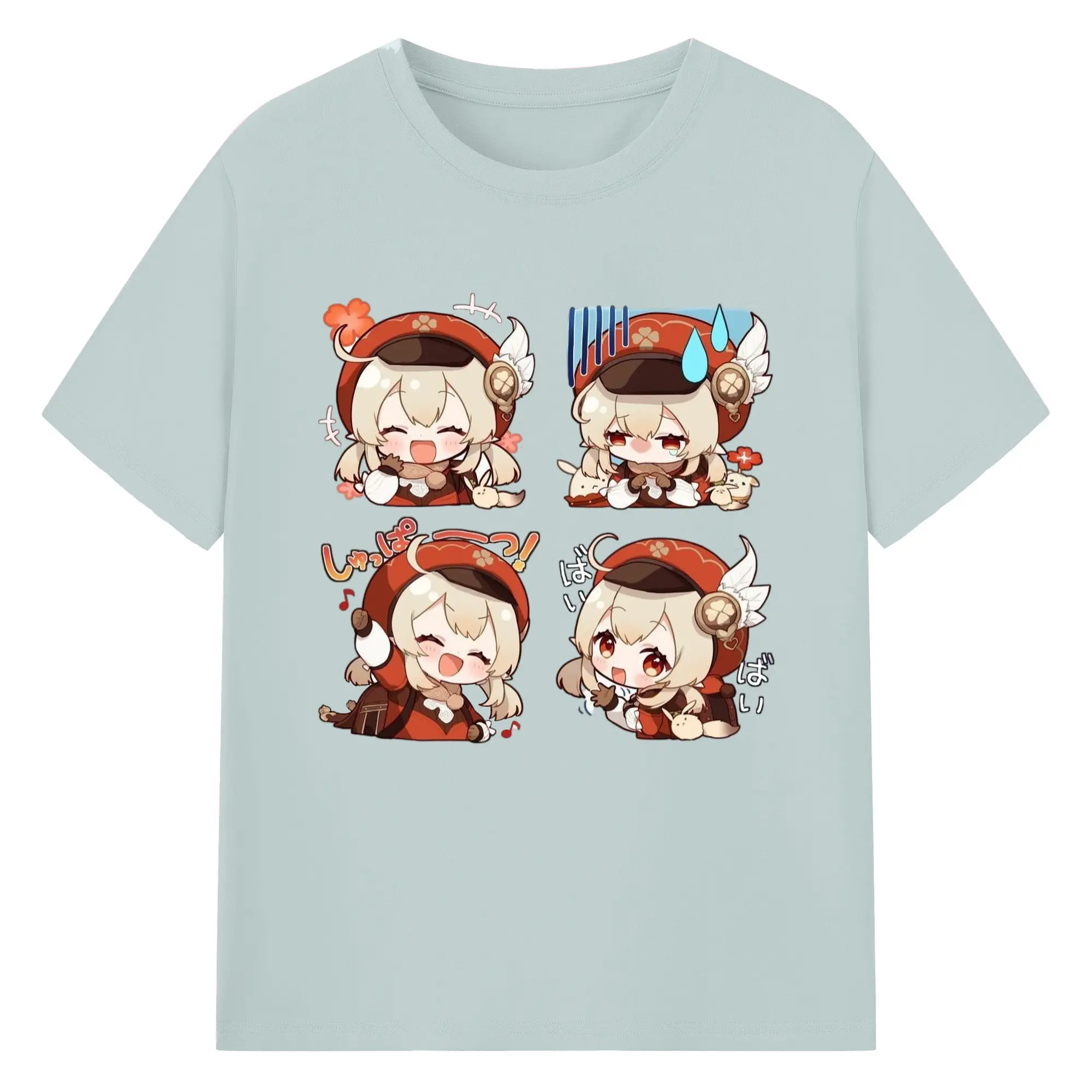 Genshin モンド クレーちゃん 4コマ写真 - 綿100% 半袖Tシャツ ・ フロントプリント ・ 快適 通気性 ・ 日常使い 散歩 スポーツ用