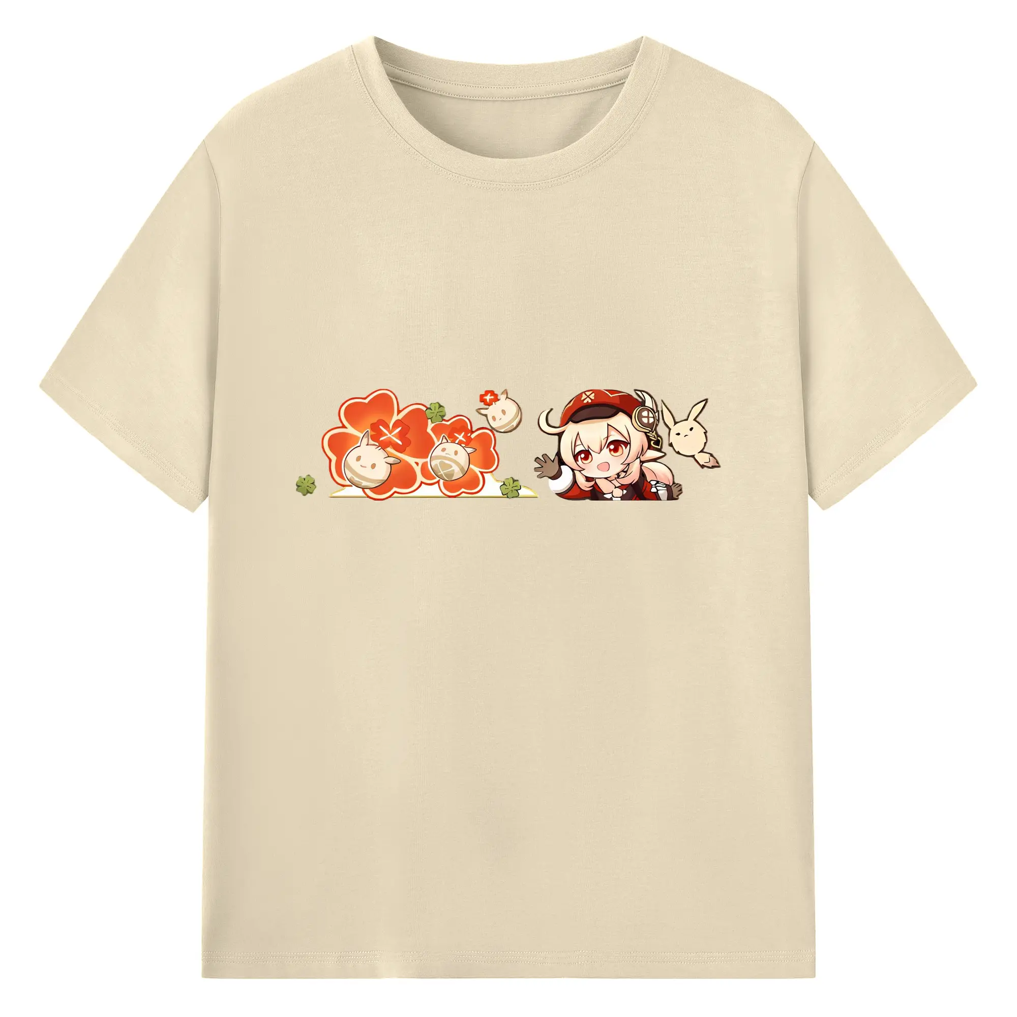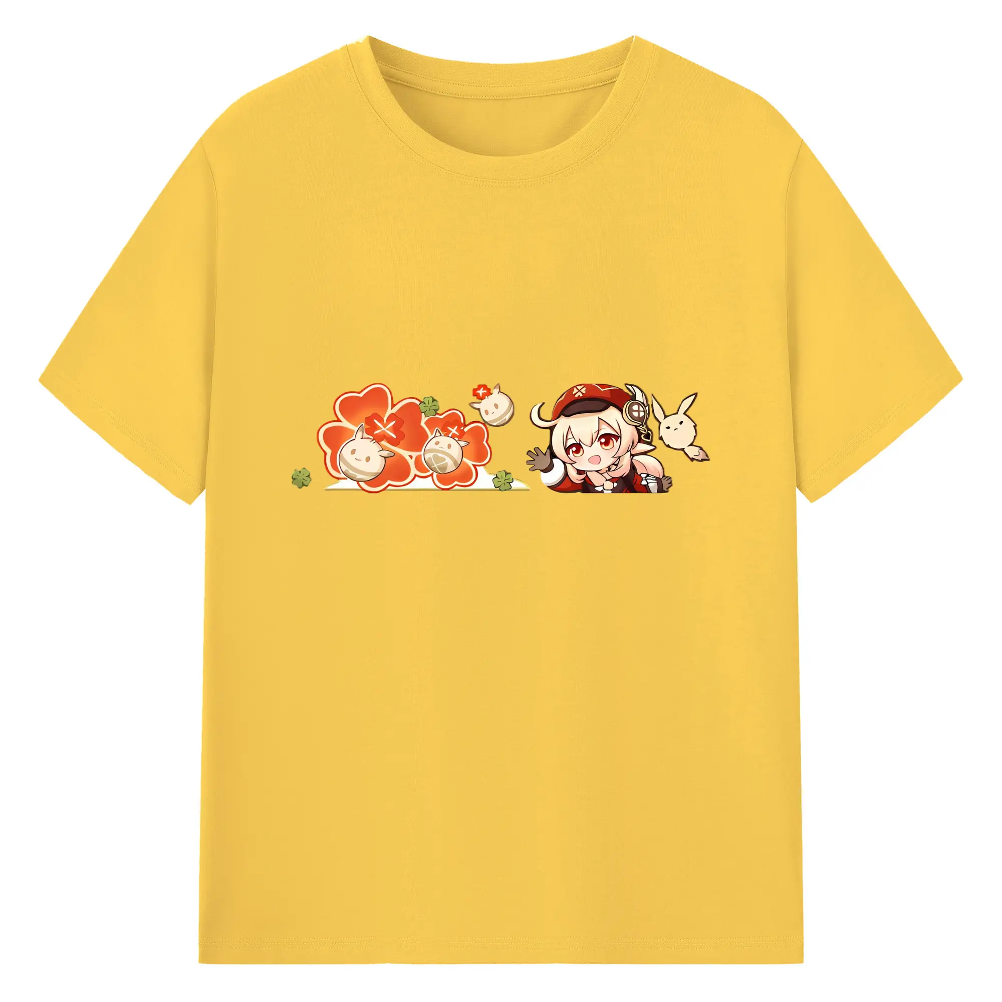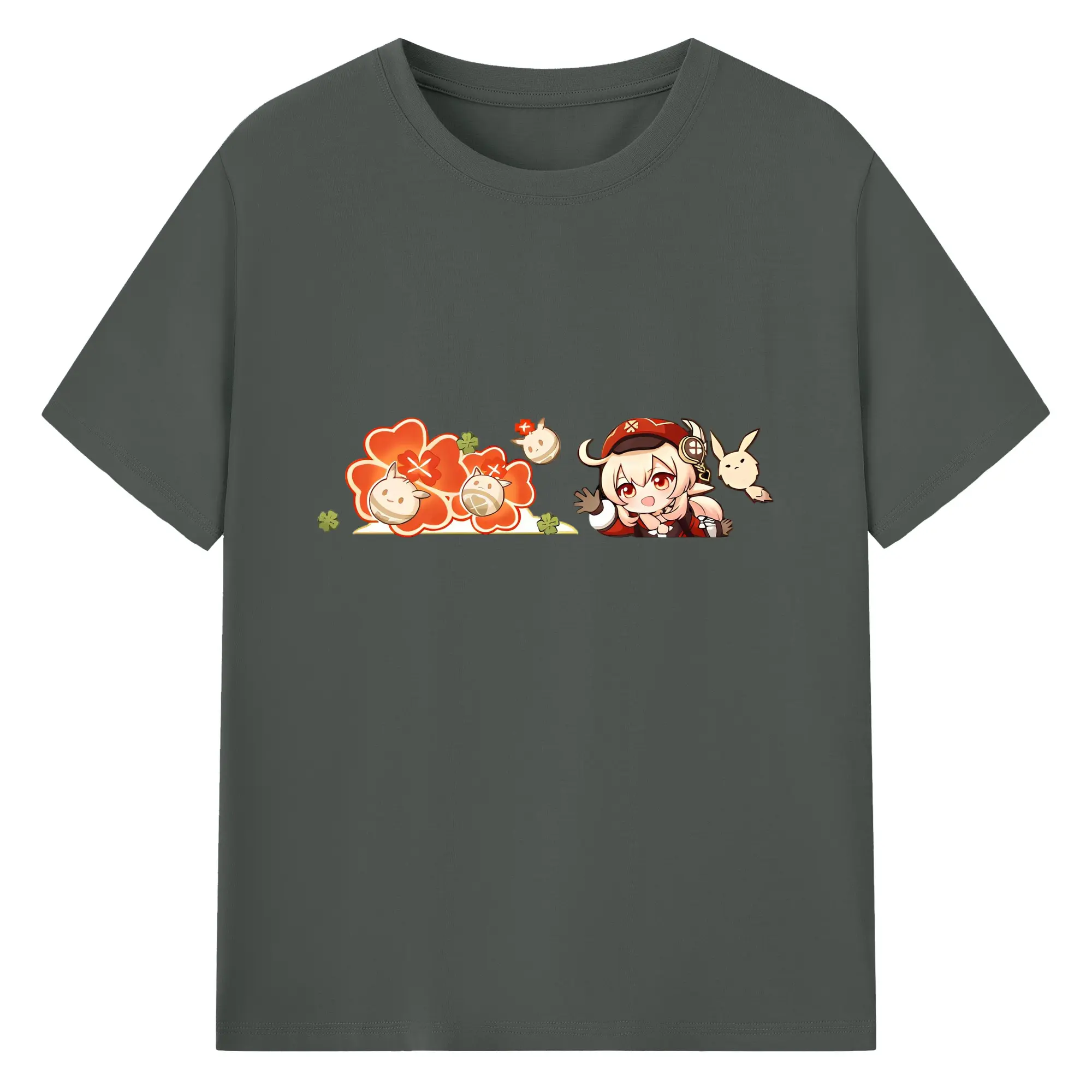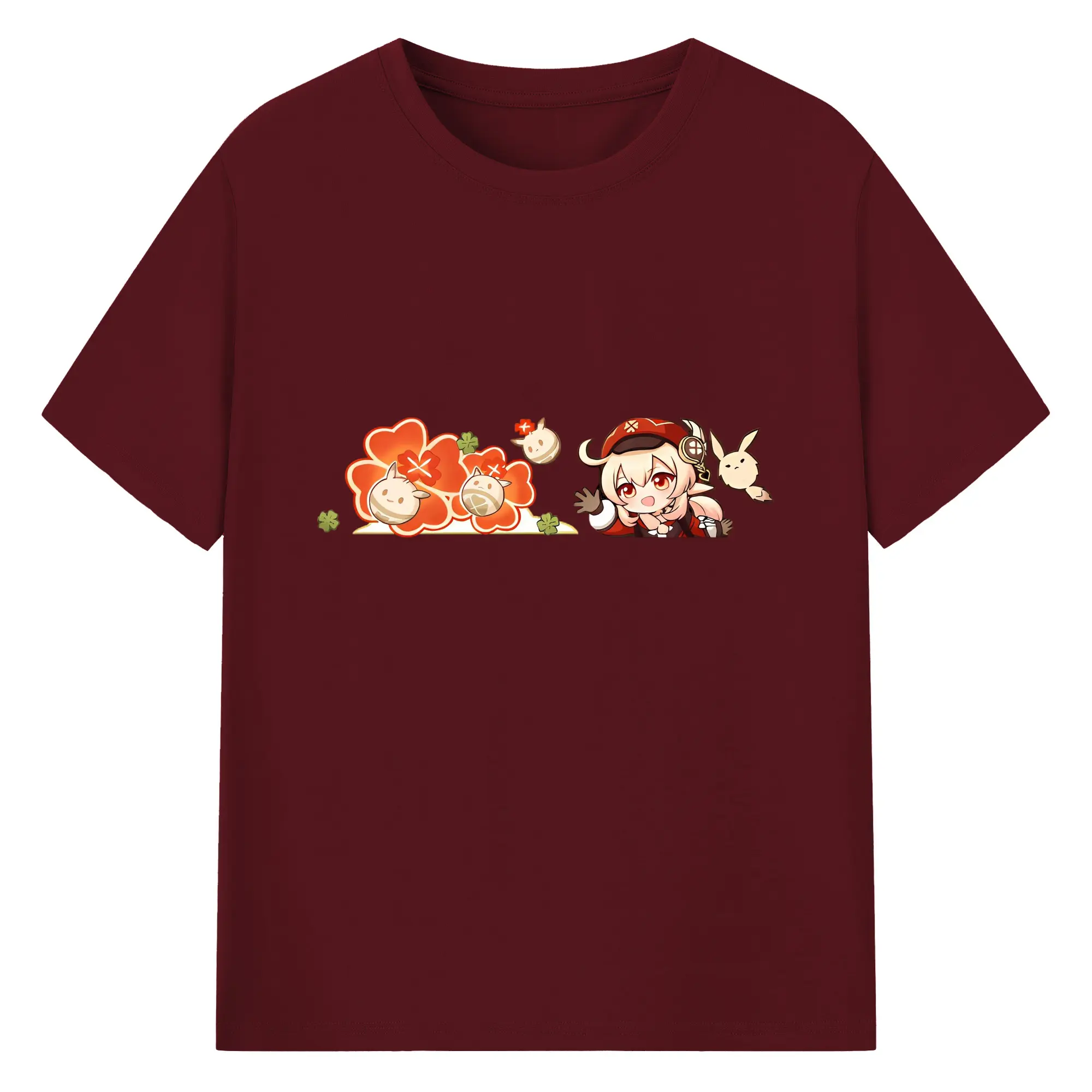 Genshin モンド クレーちゃん - 綿100% 半袖Tシャツ ・ フロントプリント ・ 快適 通気性 ・ 日常使い 散歩 スポーツ用