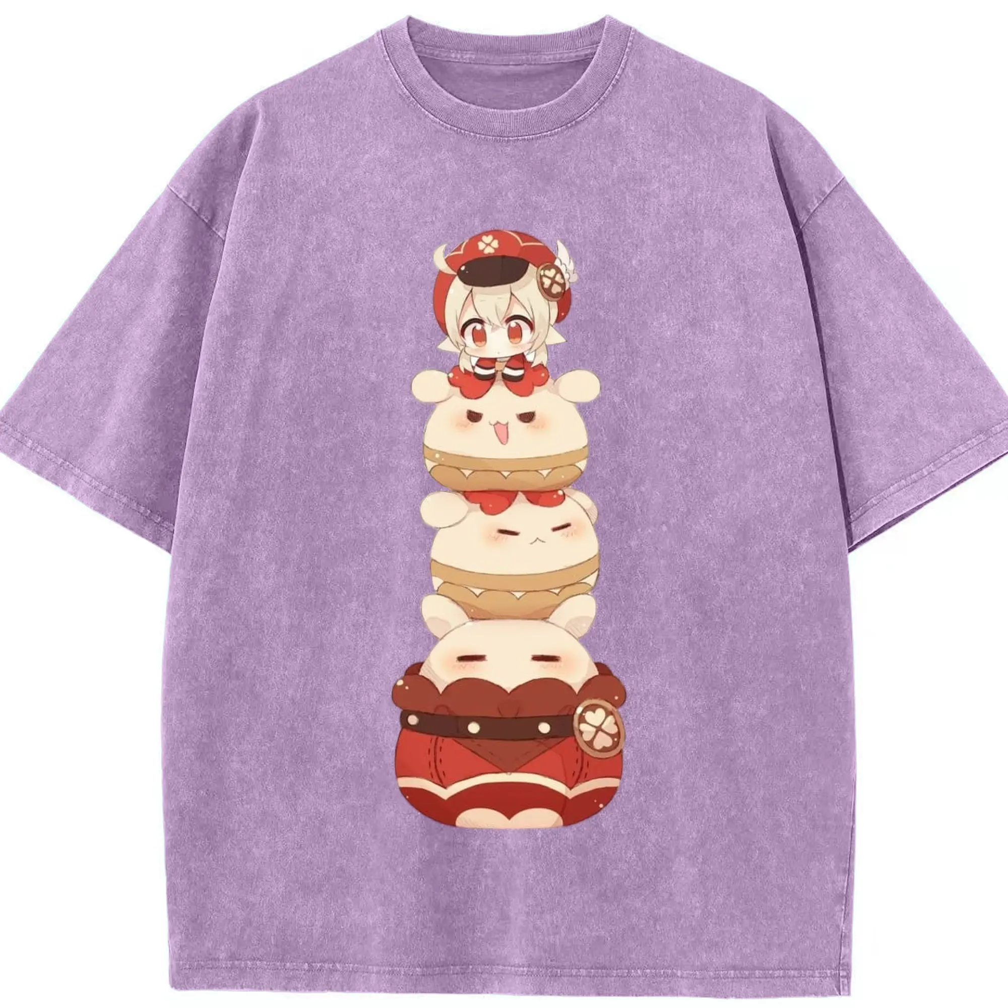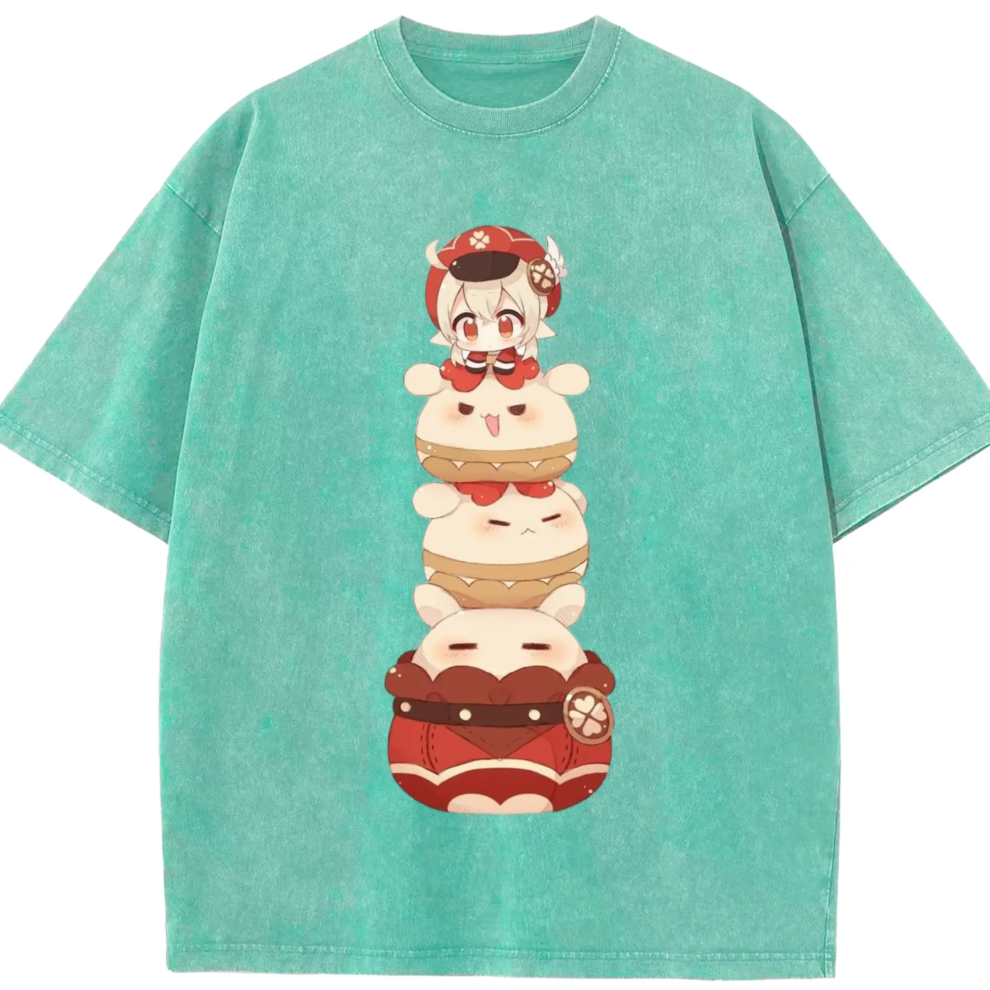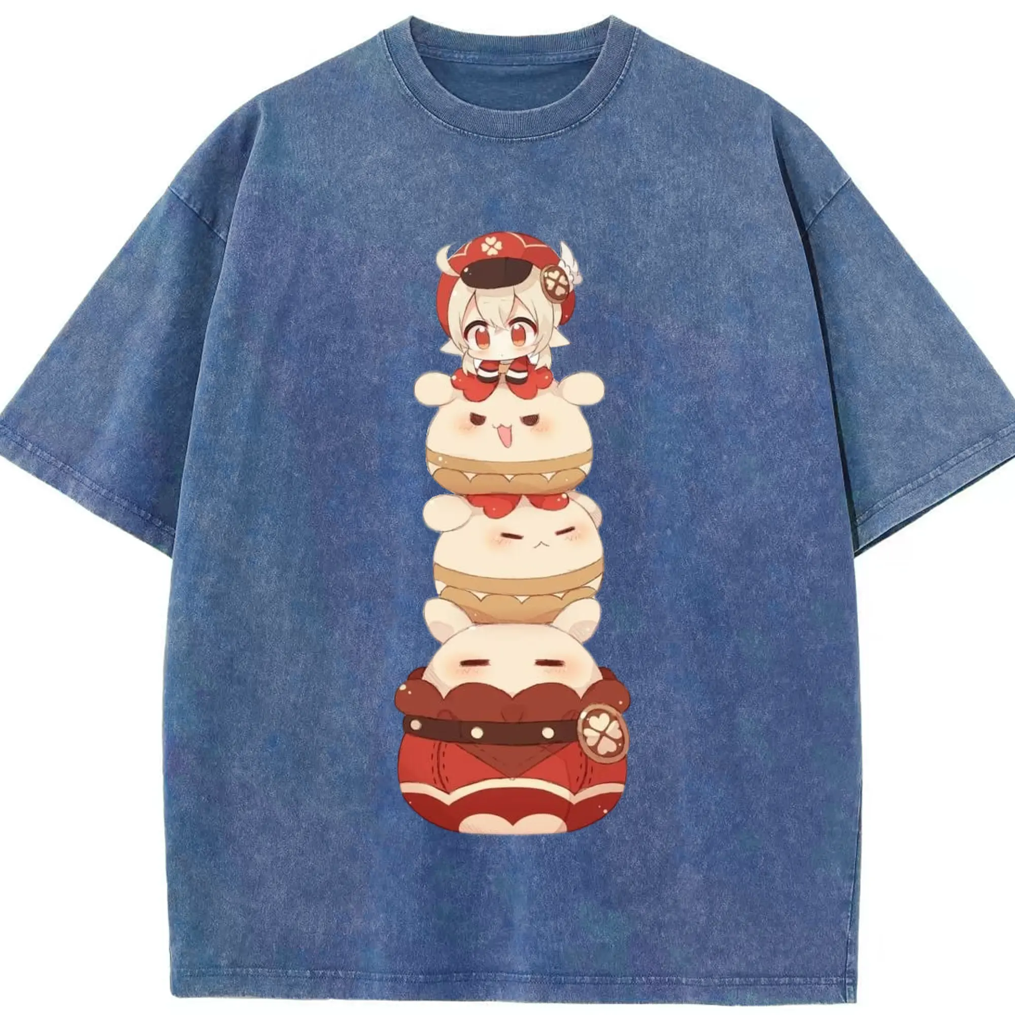Genshin モンド クレーちゃん のドドコ - 綿100% ヴィンテージ風 半袖Tシャツ ・ フロントプリント ・ 柔らか肌触り ・ 通気性 快適 ・ スポーツ カジュアル 外出用