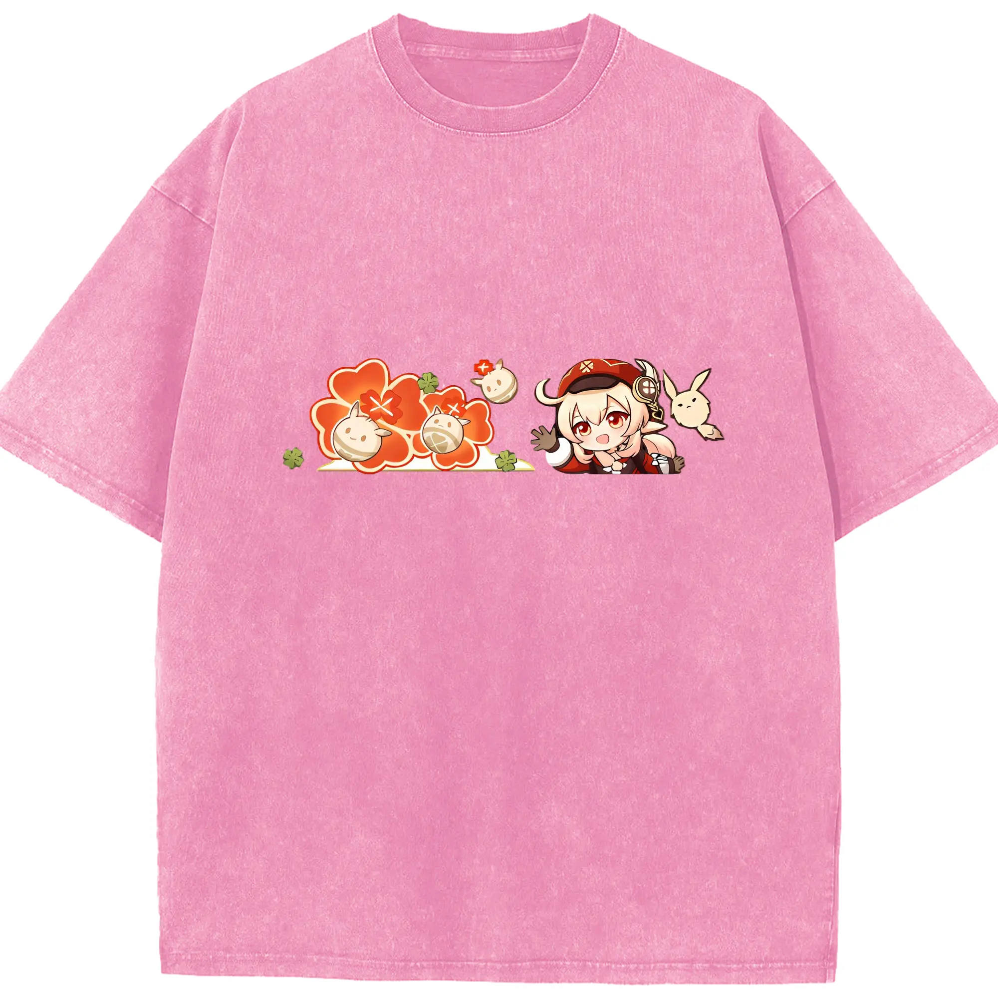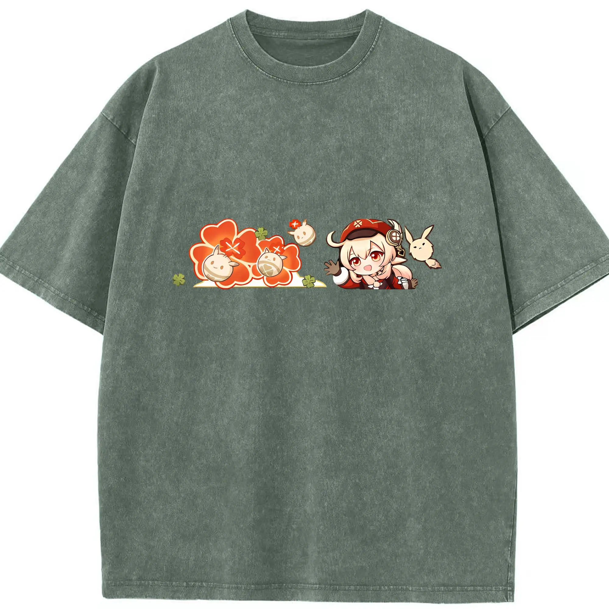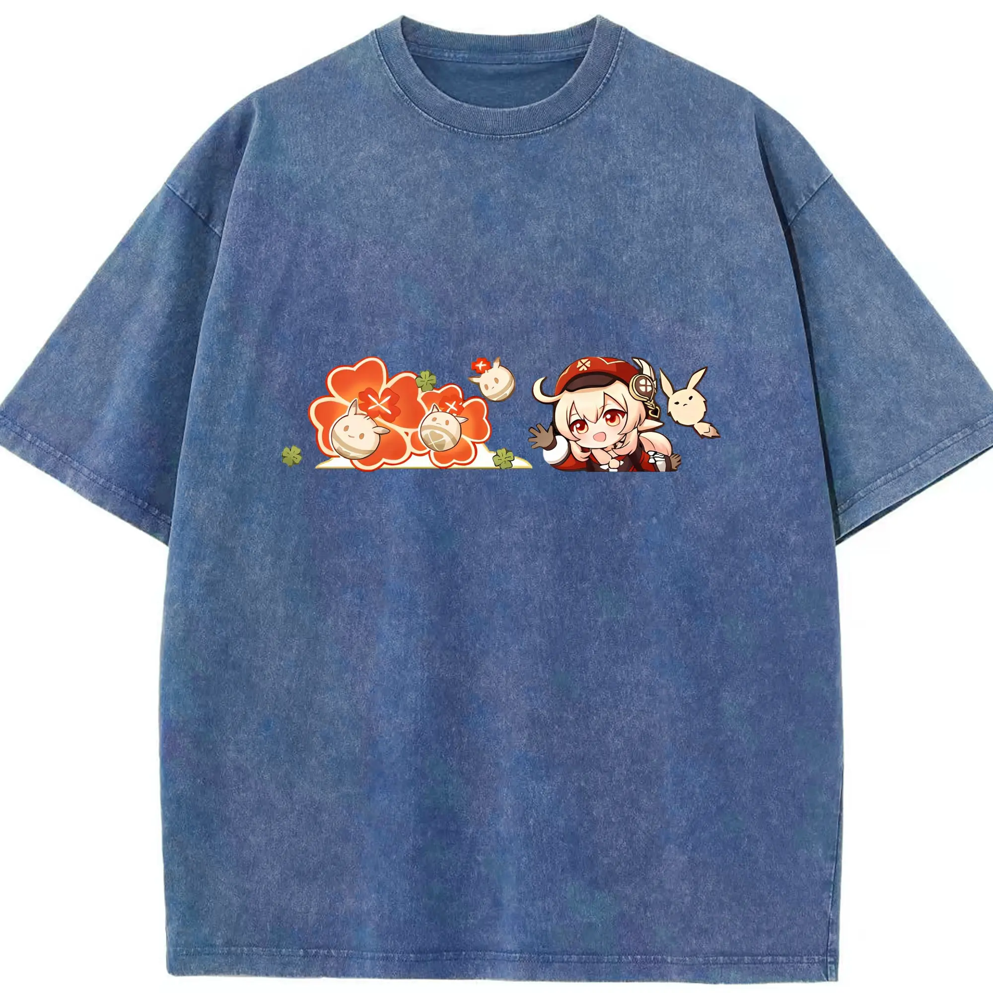 Genshin モンド クレーちゃん - 綿100% ヴィンテージ風 半袖Tシャツ ・ フロントプリント ・ 柔らか肌触り ・ 通気性 快適 ・ スポーツ カジュアル 外出用