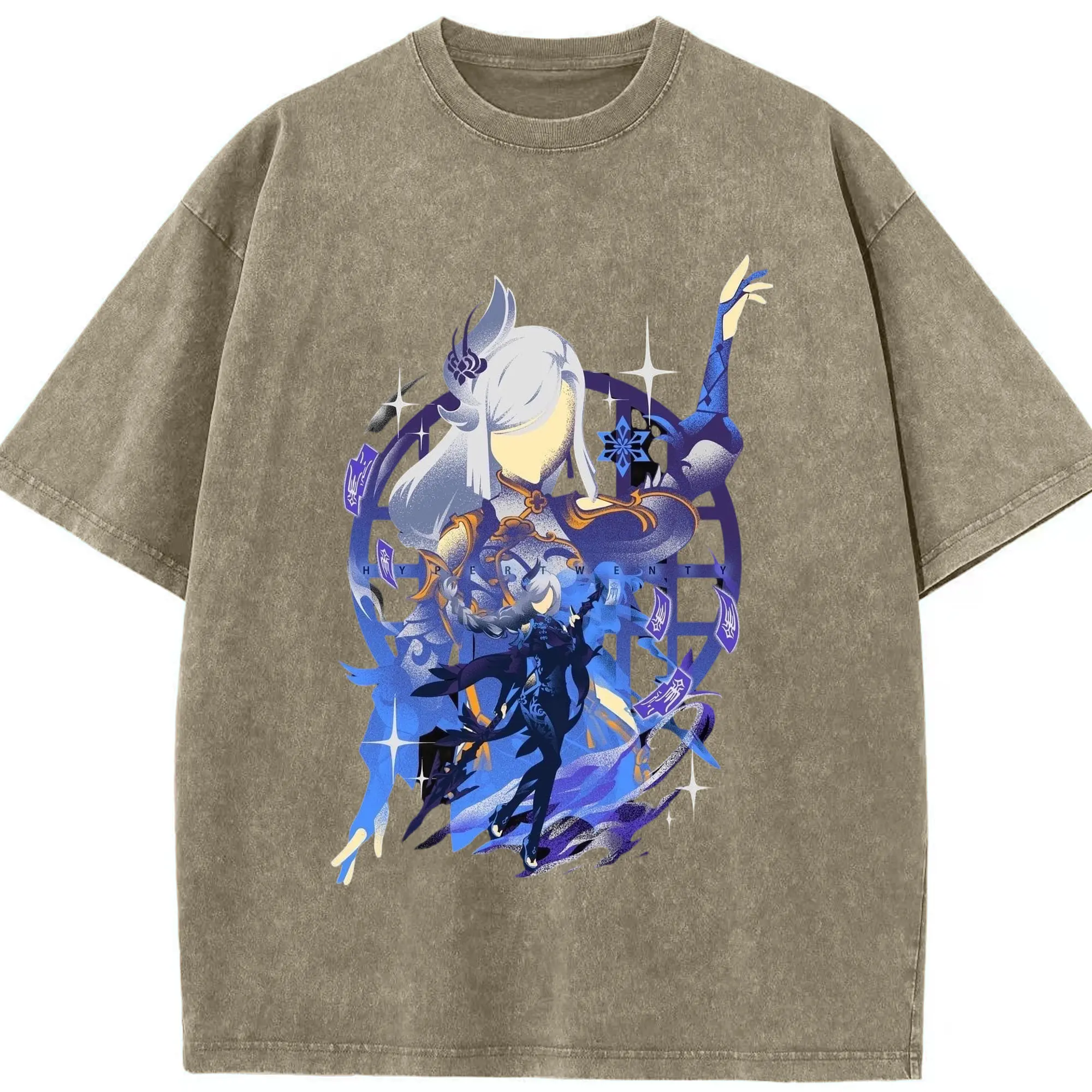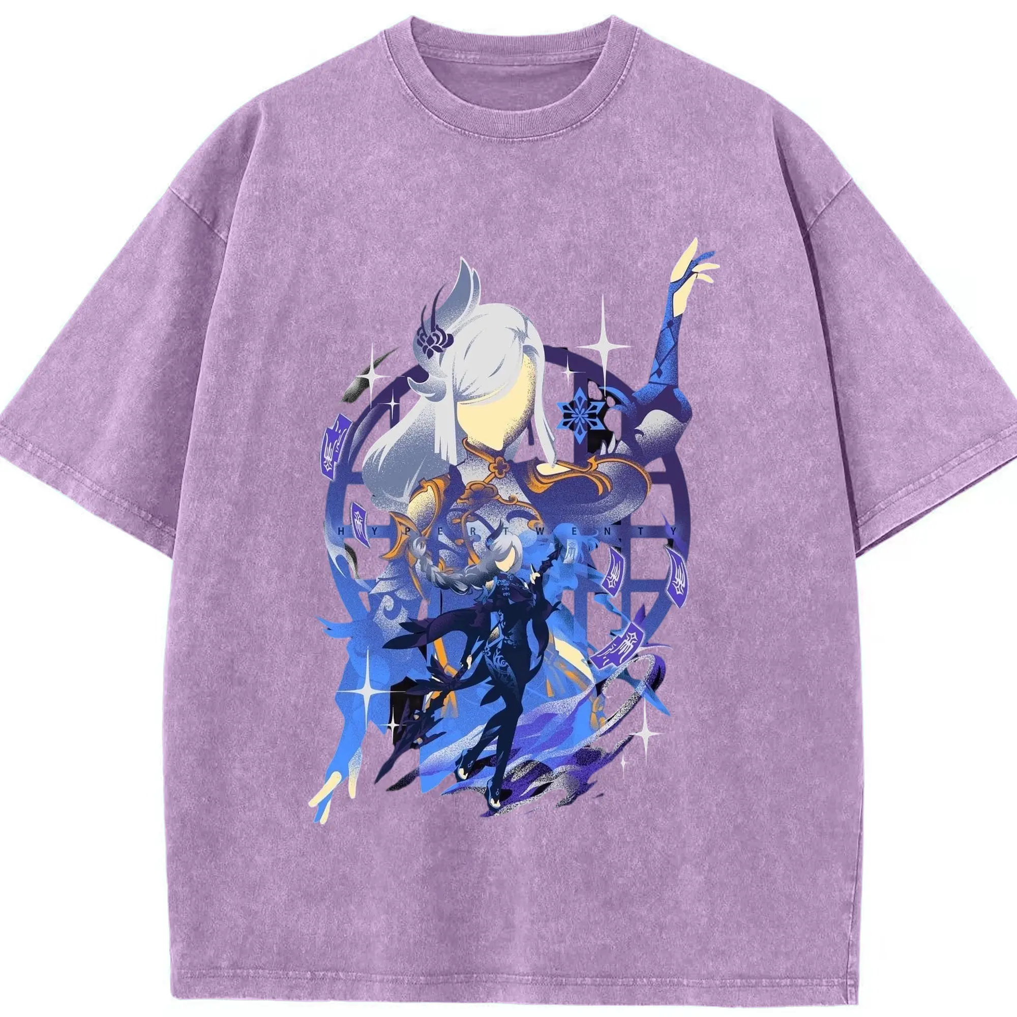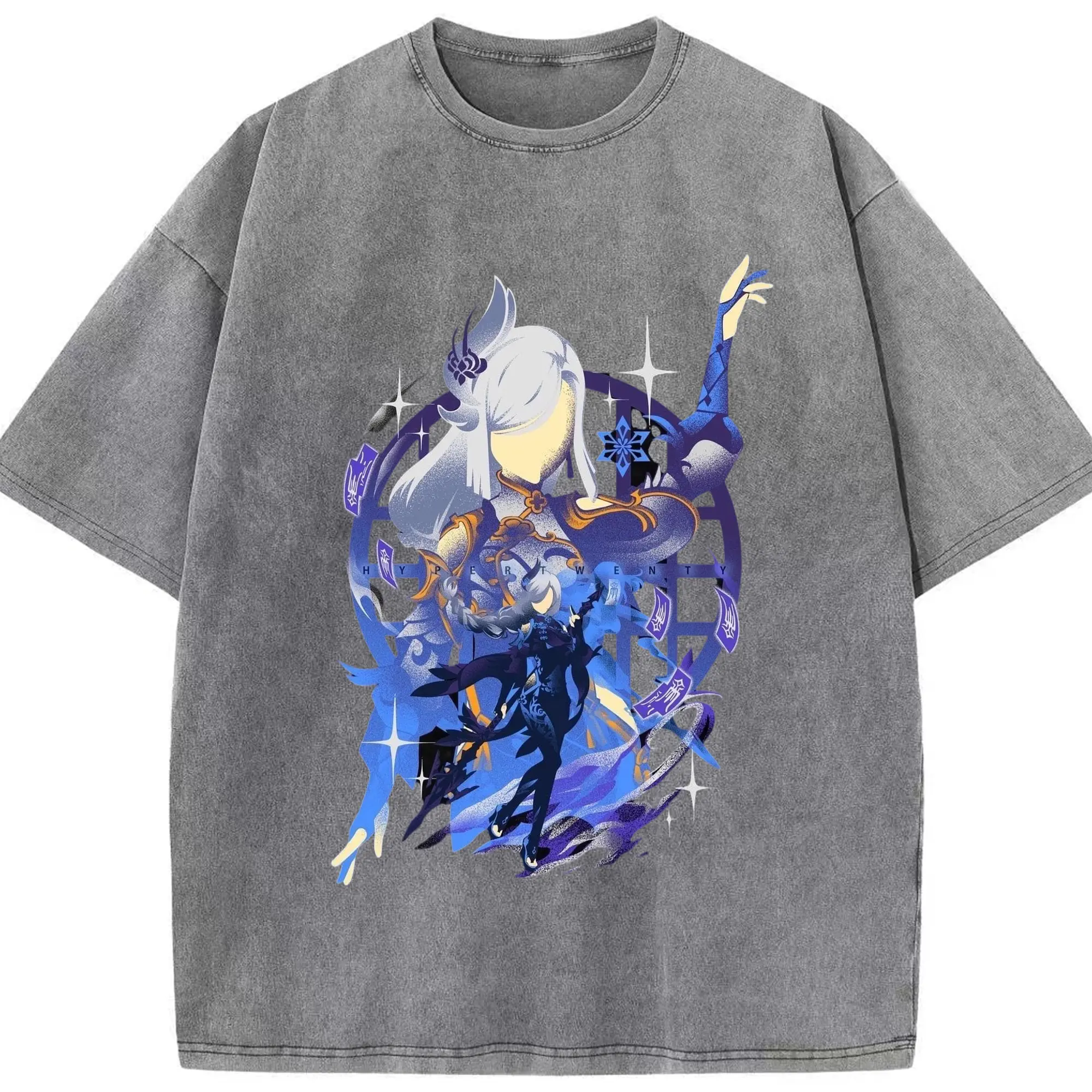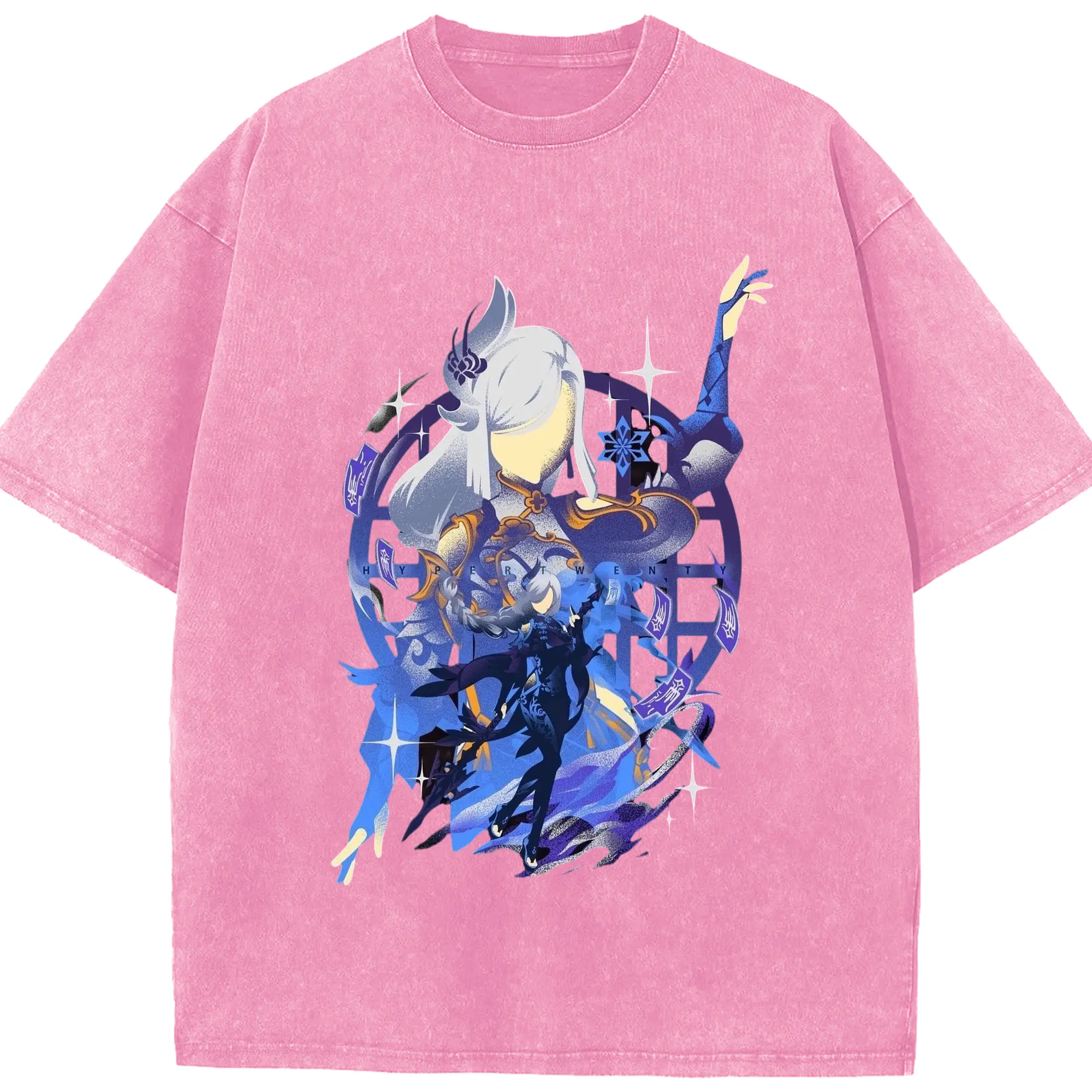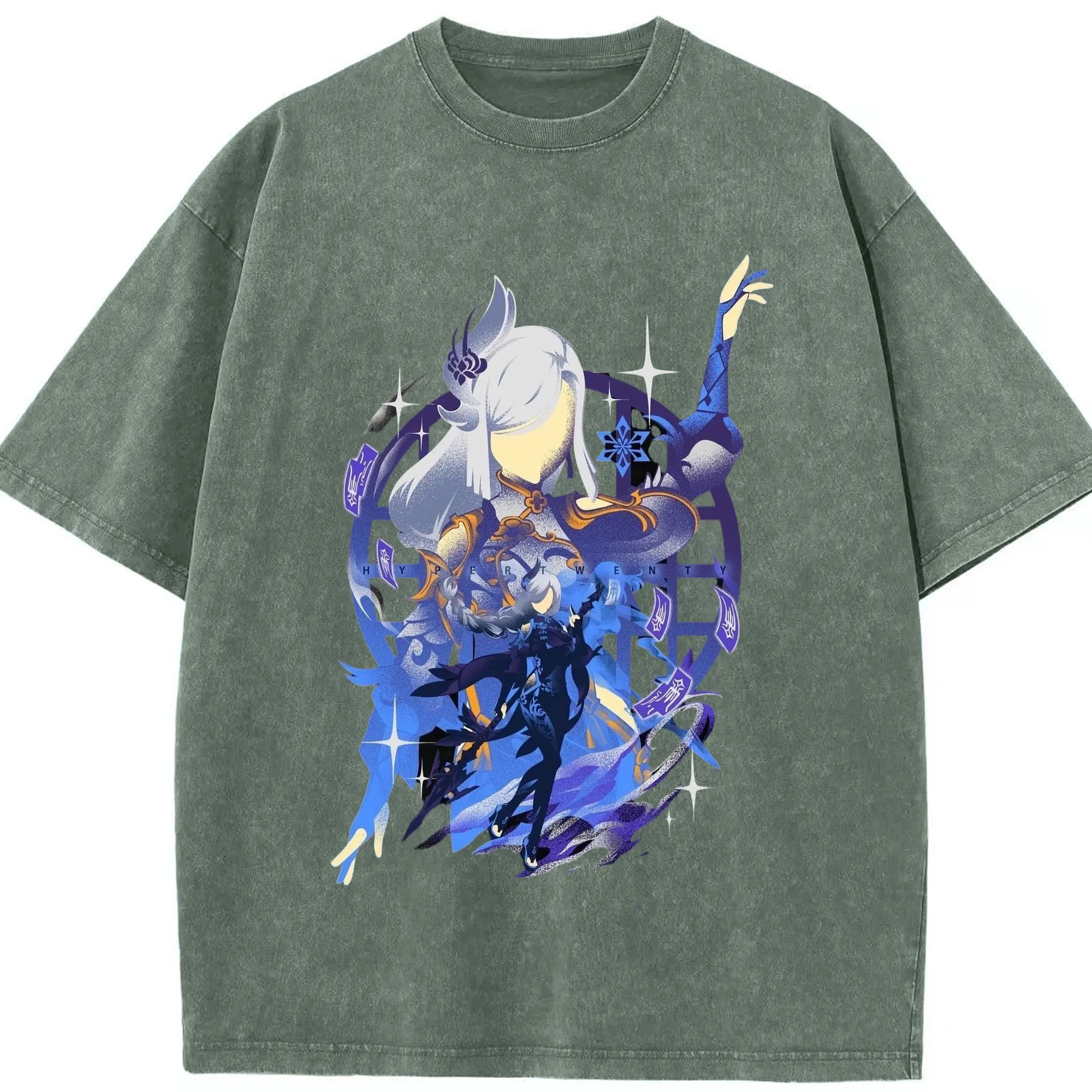 Genshin リーユエ しGenshin リーユエ 申鶴 シェンフー - 綿100% ヴィンテージ風 半袖Tシャツ ・ フロントプリント ・ 柔らか肌触り ・ 通気性 快適 ・ スポーツ カジュアル 外出用