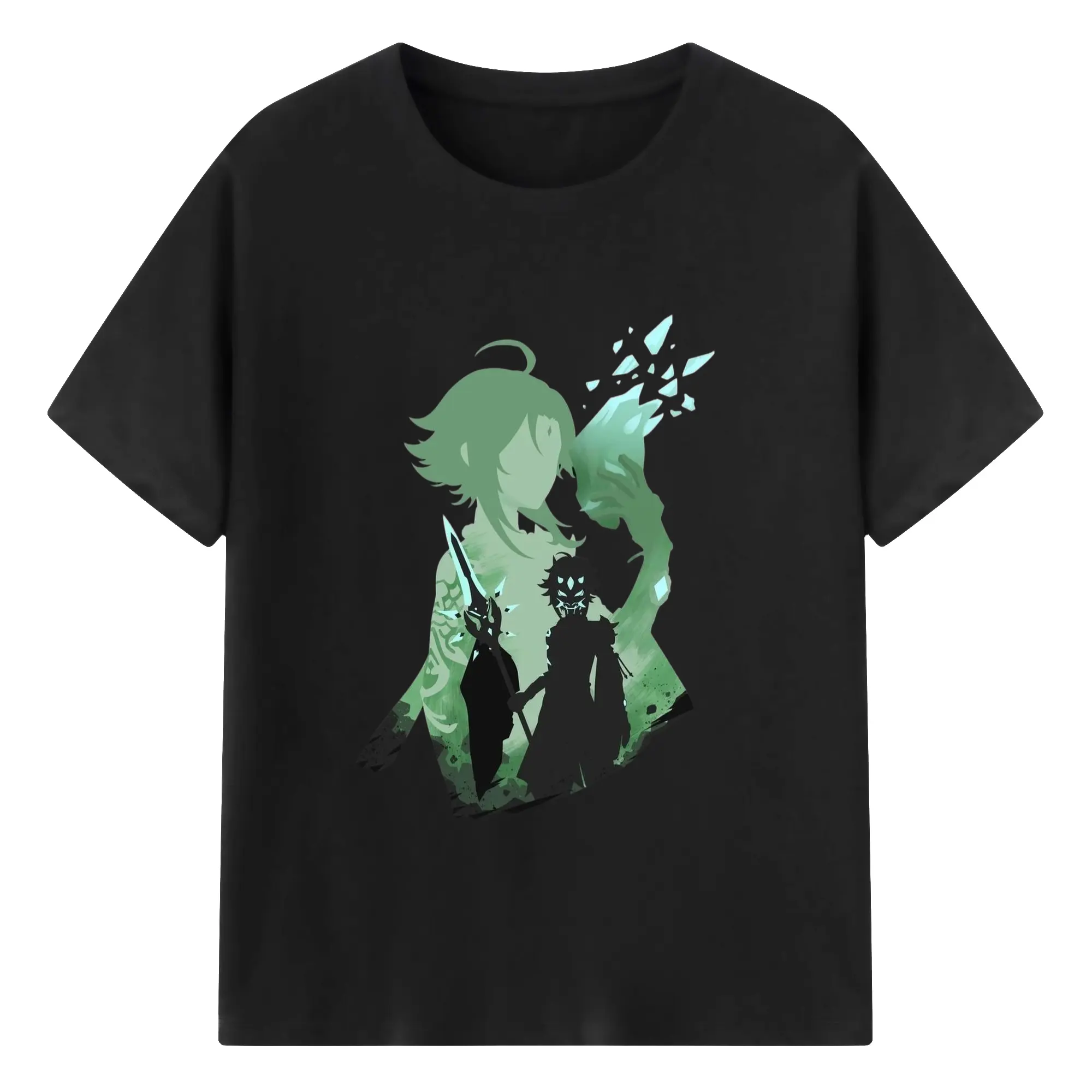 Genshin ナタ シロネン - 綿100% 半袖Tシャツ ・ フロントプリント ・ 快適 通気性 ・ 日常使い 散歩 スポーツ用