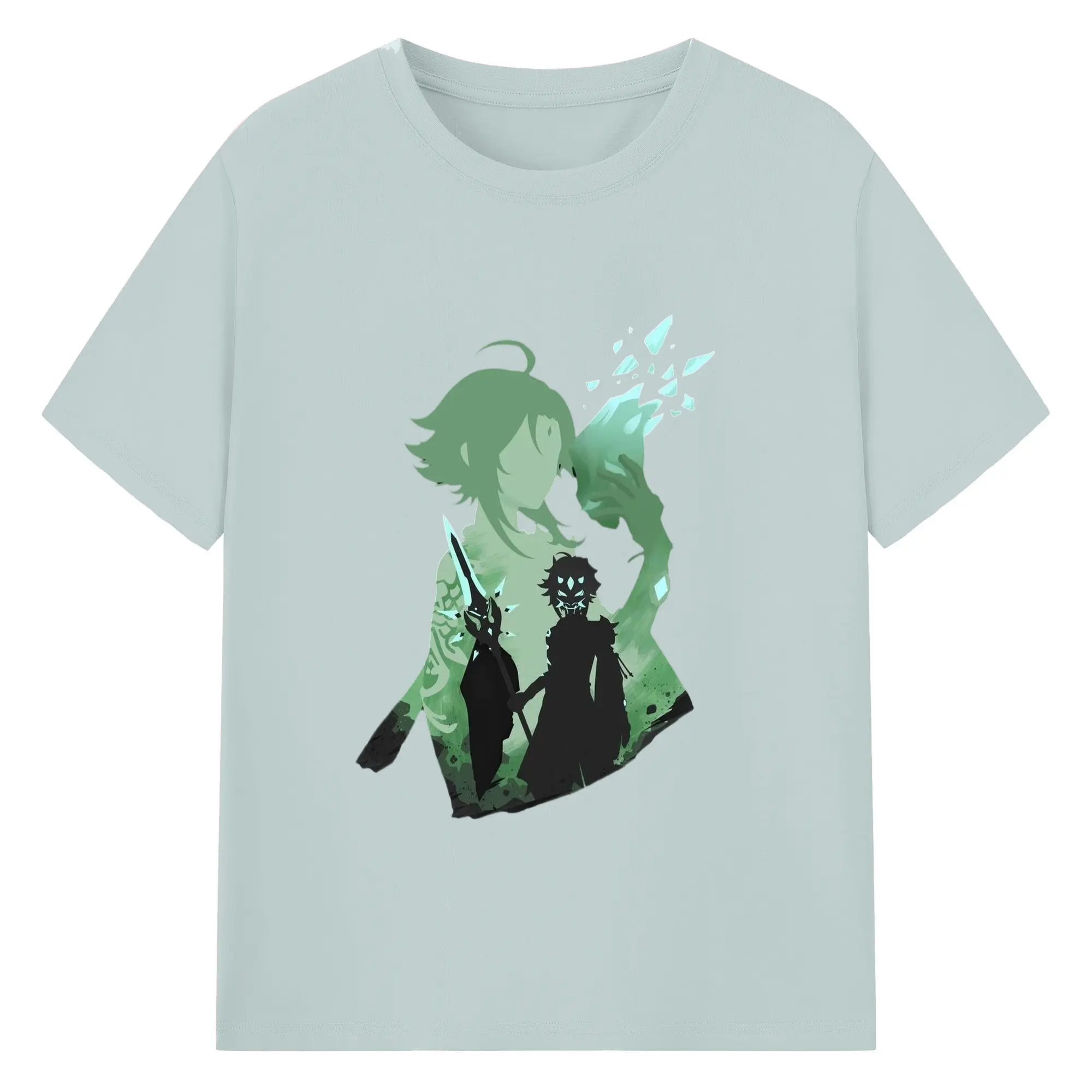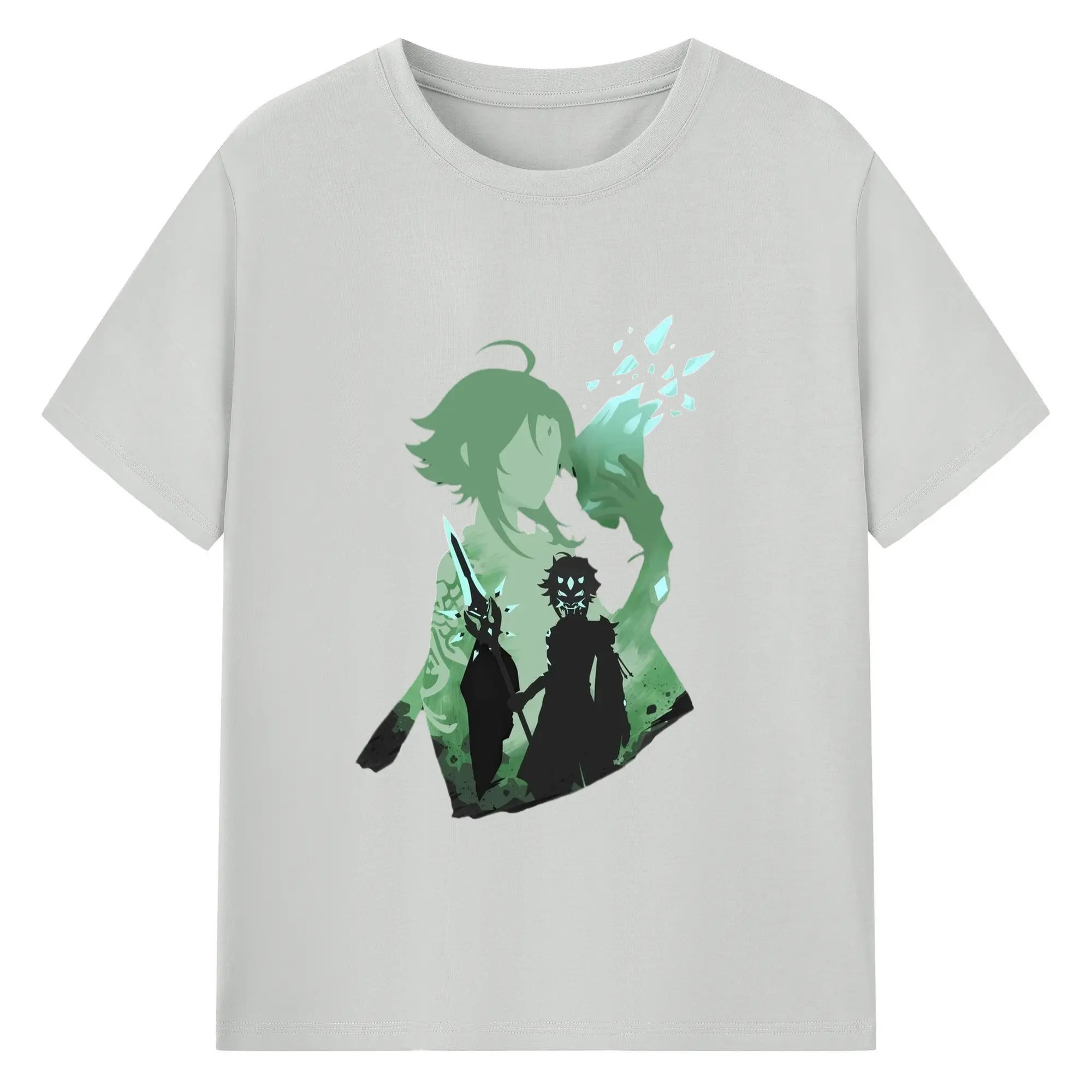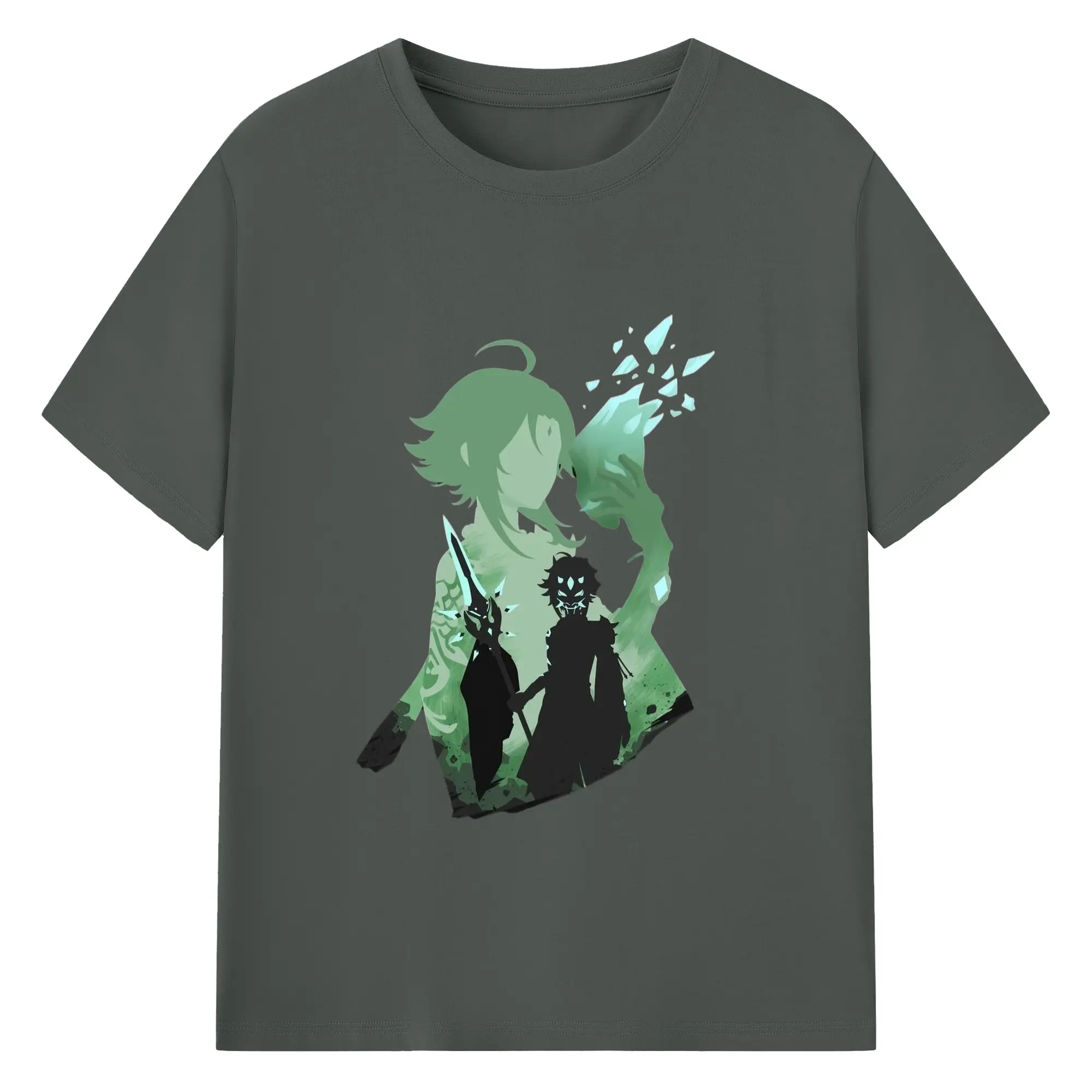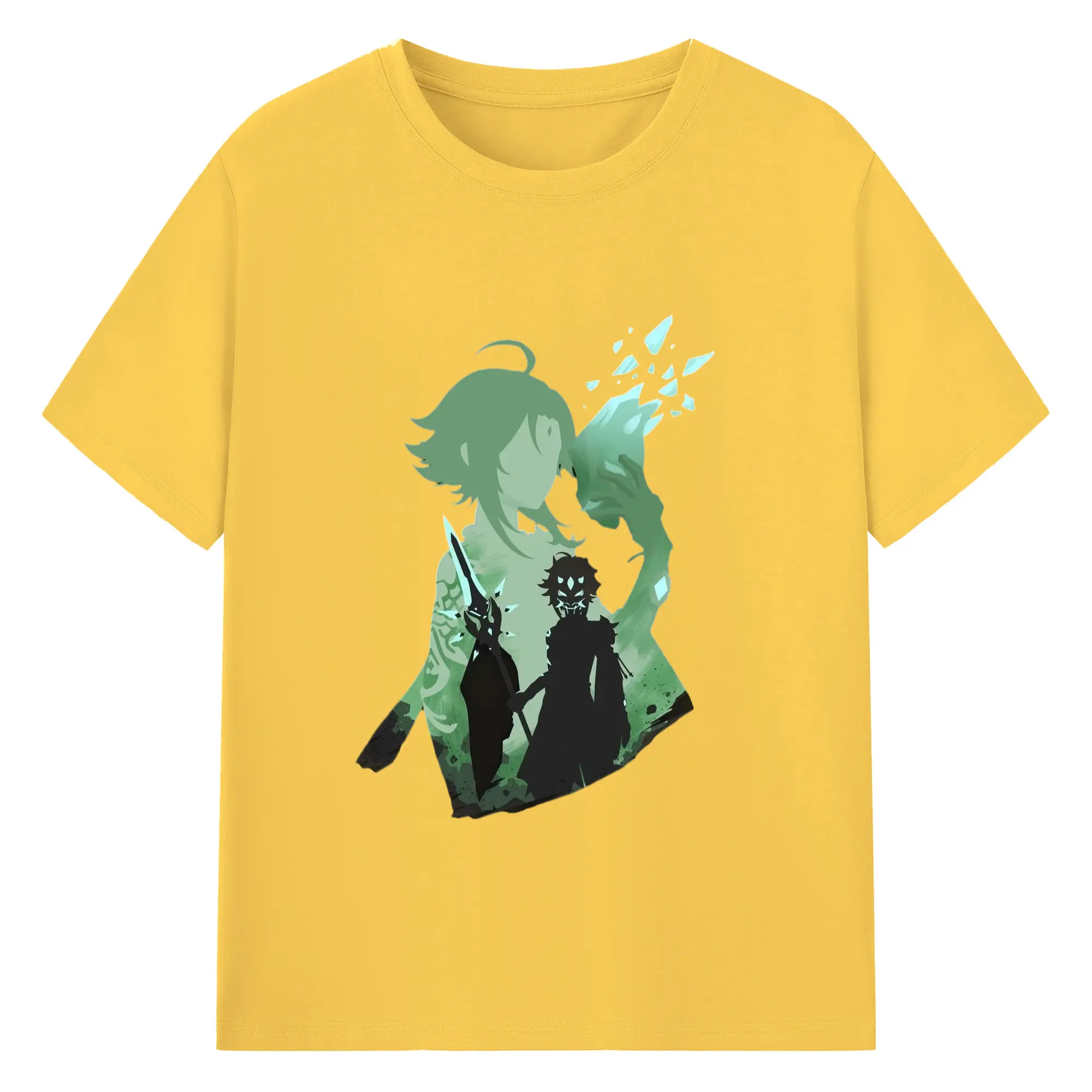 Genshin - 綿100% 半袖Tシャツ ・ フロントプリント ・ 快適 通気性 ・ 日常使い 散歩 スポーツ用