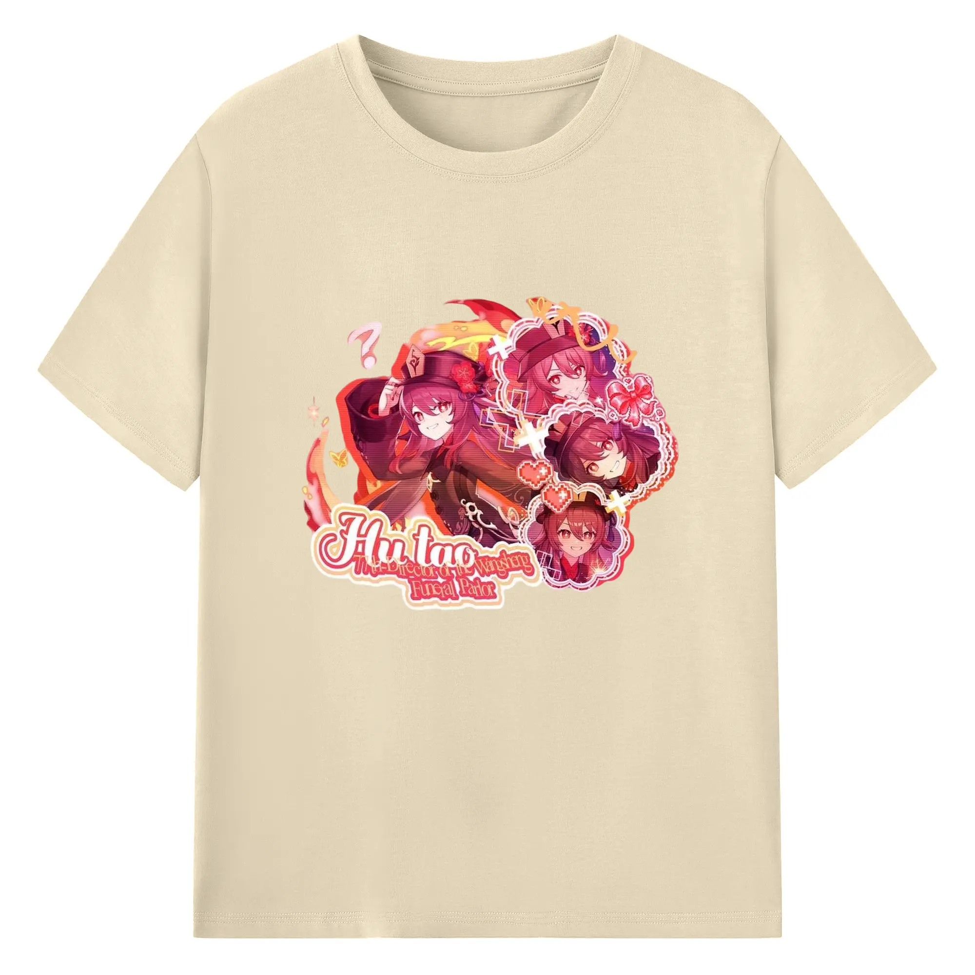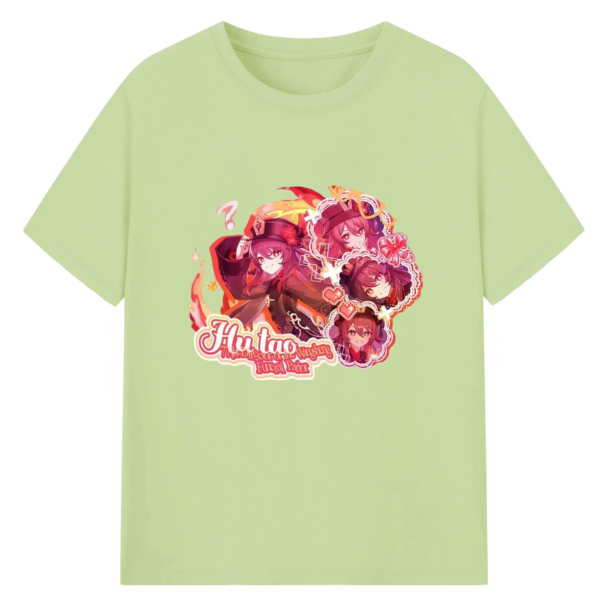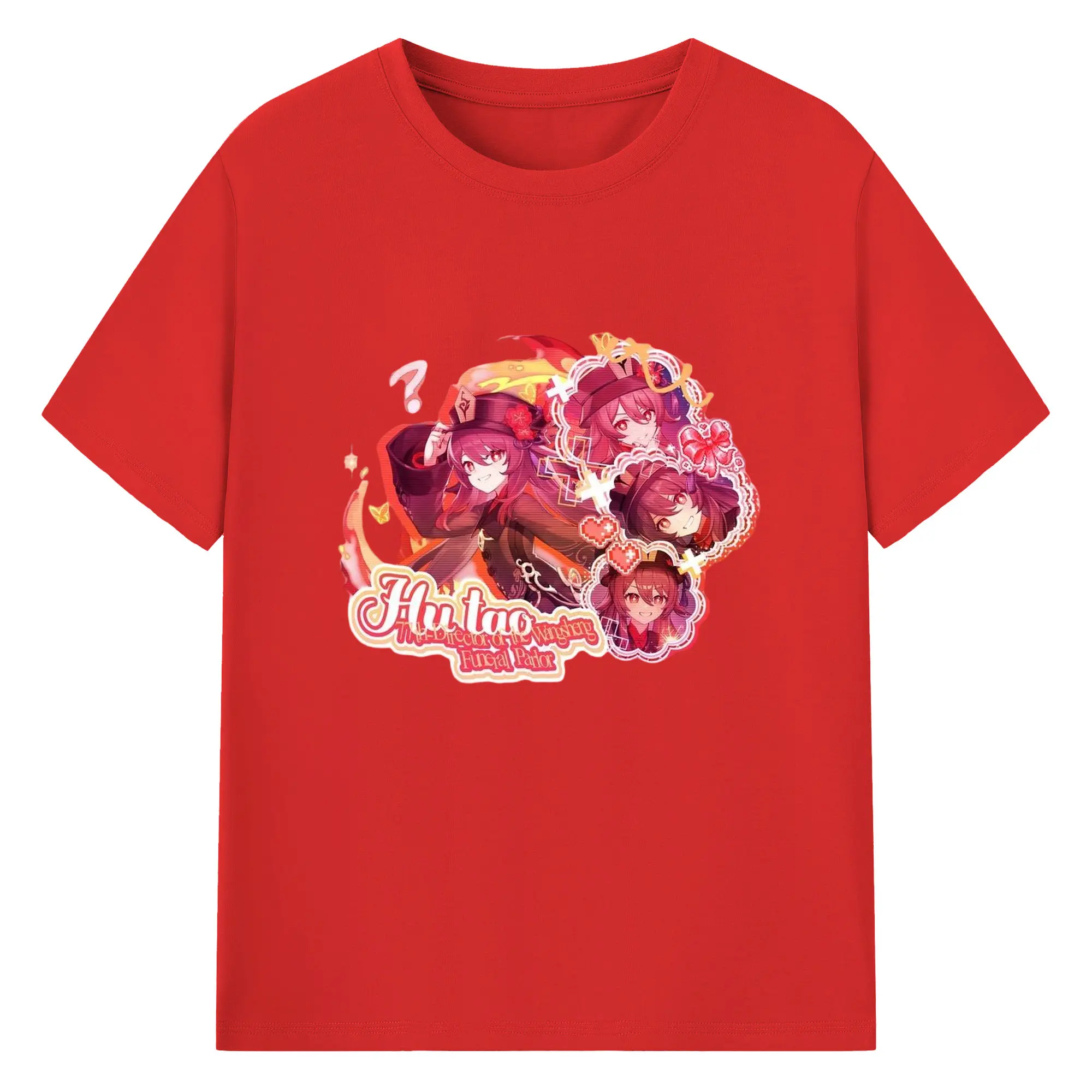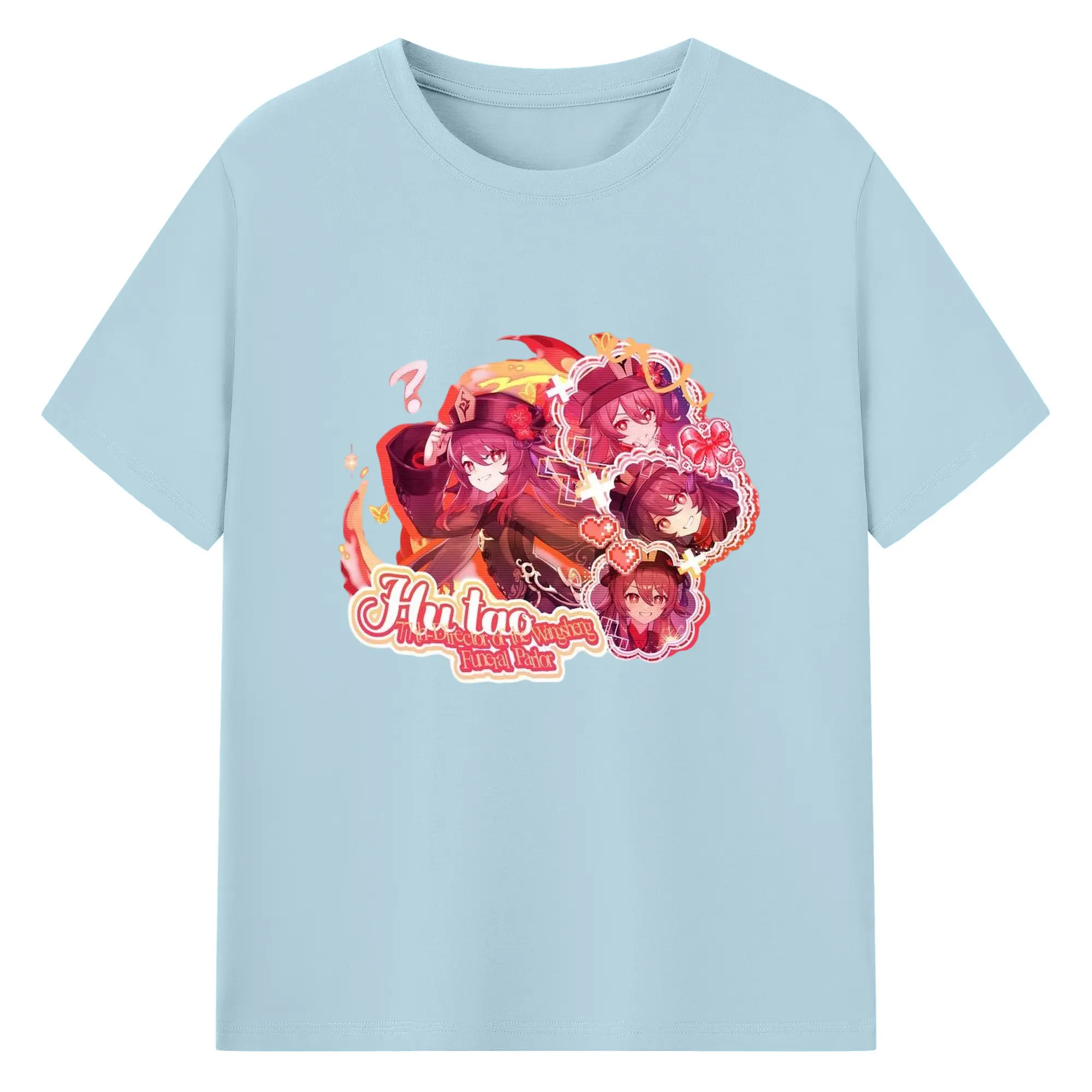 Genshin リーユエ フータオ - 綿100% 半袖Tシャツ ・ フロントプリント ・ 快適 通気性 ・ 日常使い 散歩 スポーツ用