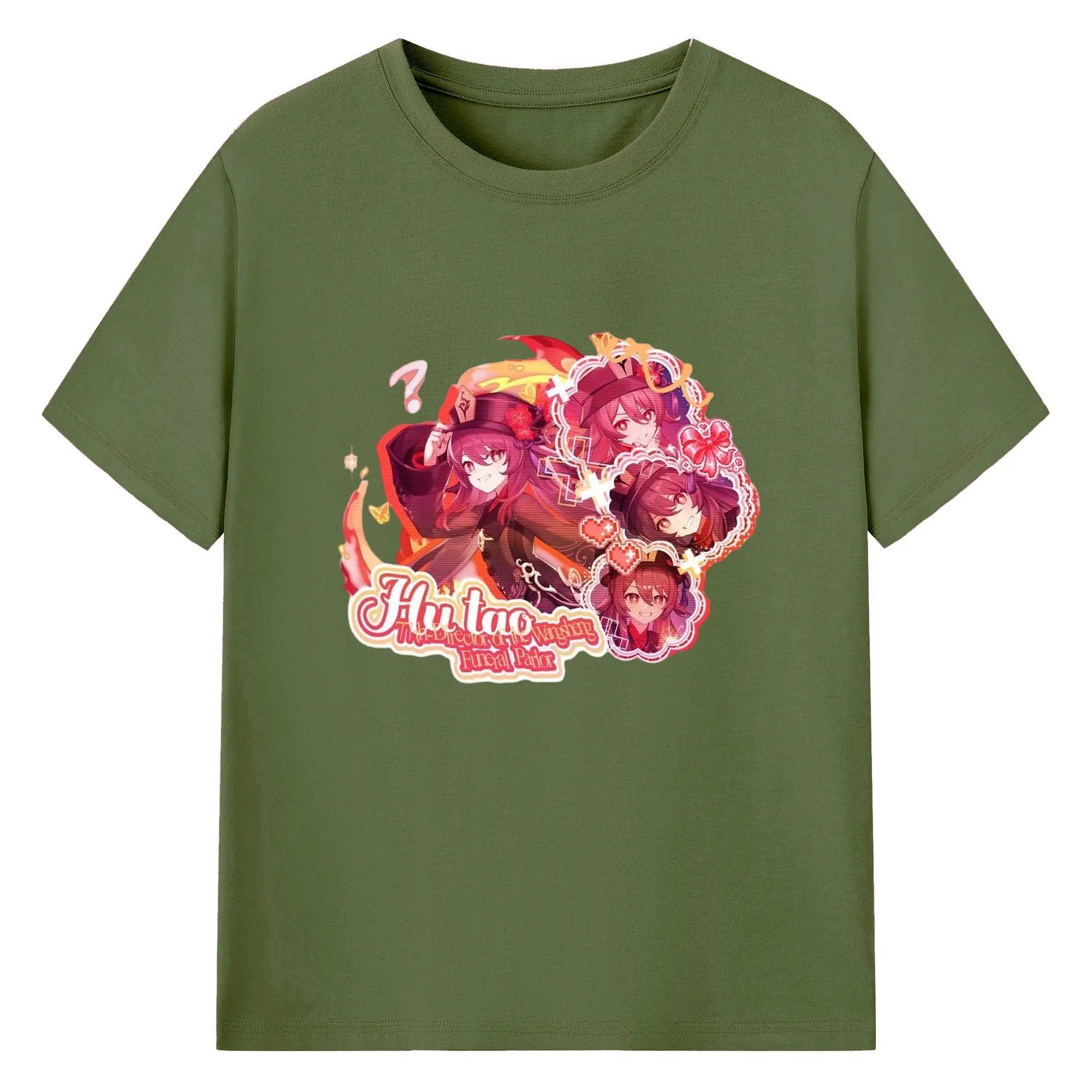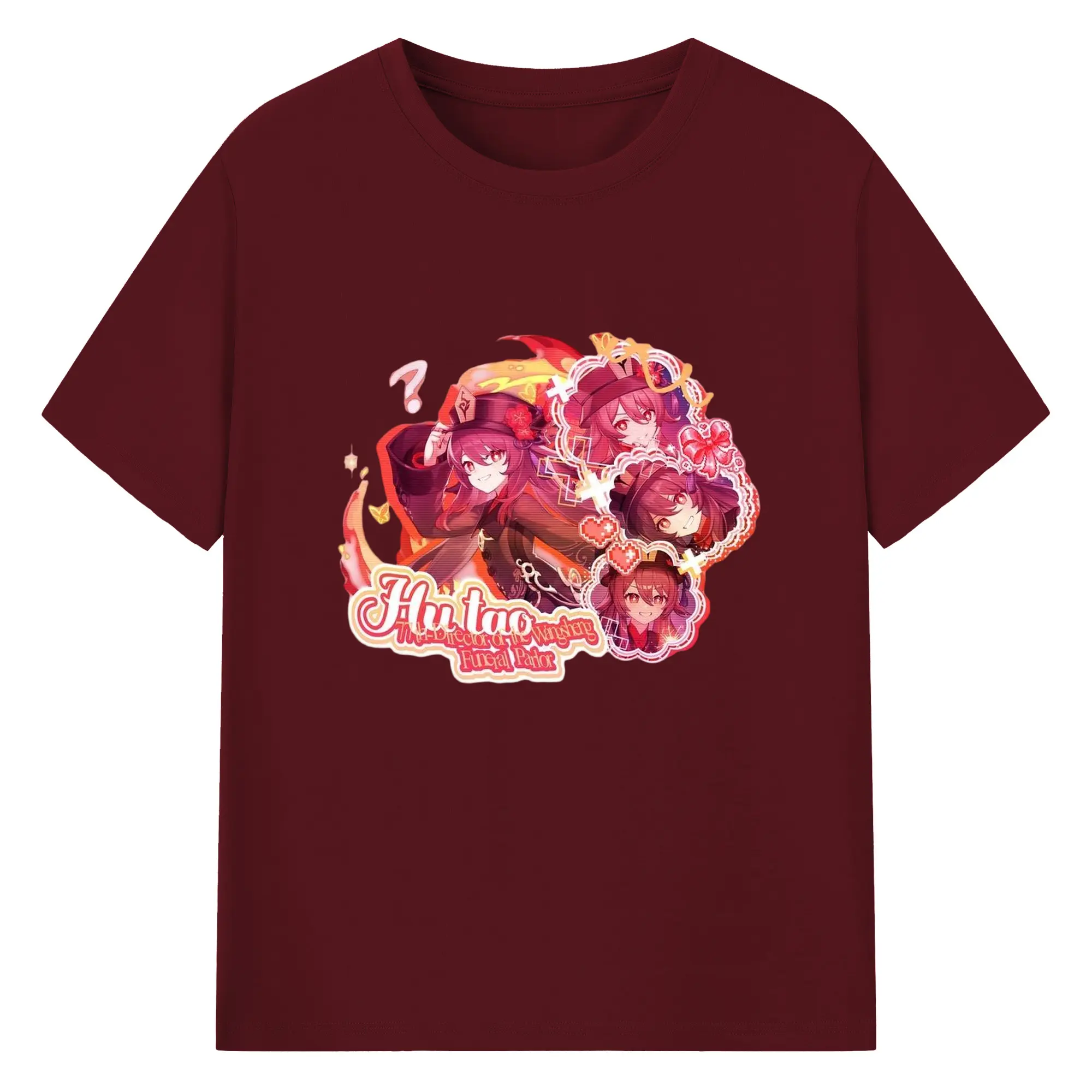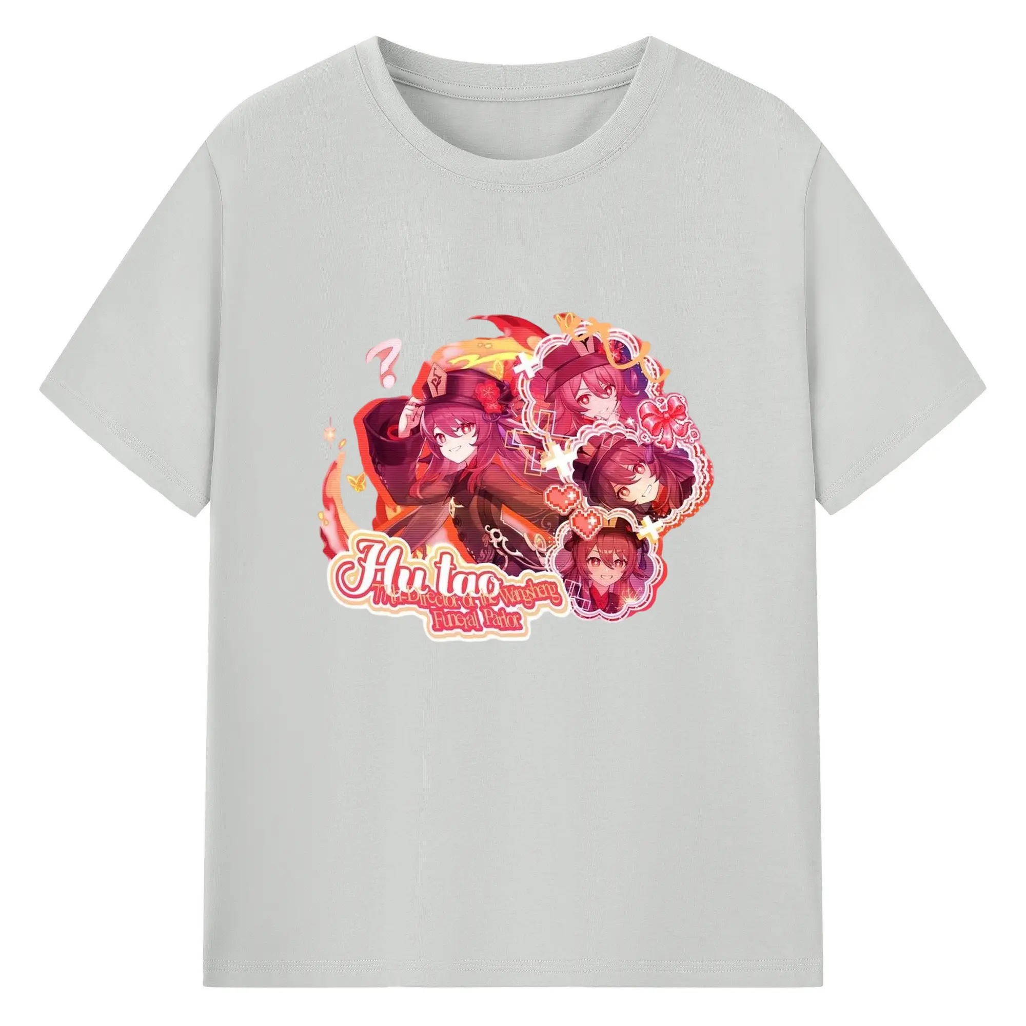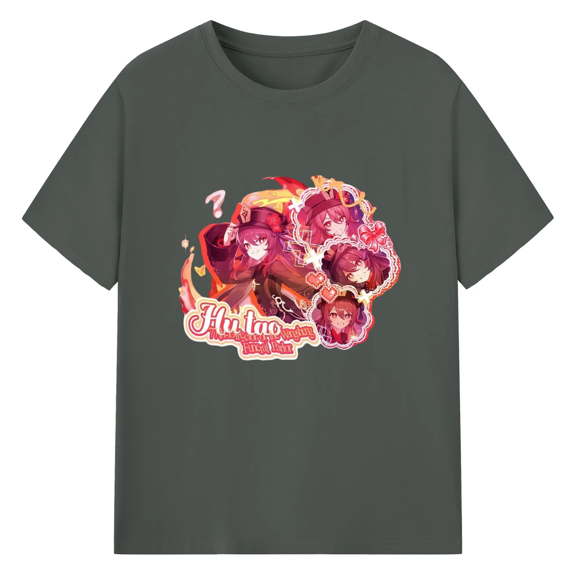 Genshin リーユエ フータオ - 綿100% 半袖Tシャツ ・ フロントプリント ・ 快適 通気性 ・ 日常使い 散歩 スポーツ用