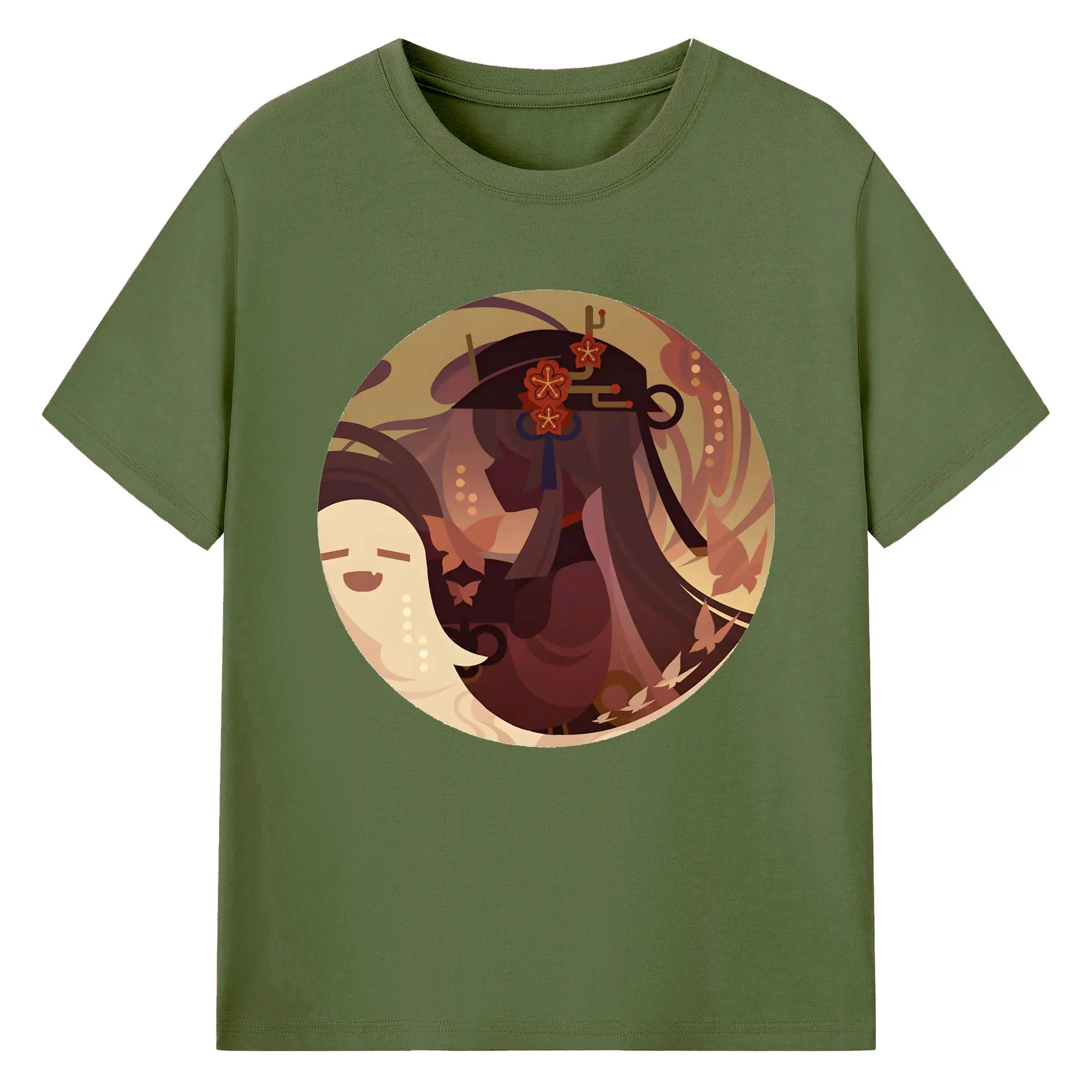 Genshin リーユエ フータオ - 綿100% 半袖Tシャツ ・ フロントプリント ・ 快適 通気性 ・ 日常使い 散歩 スポーツ用