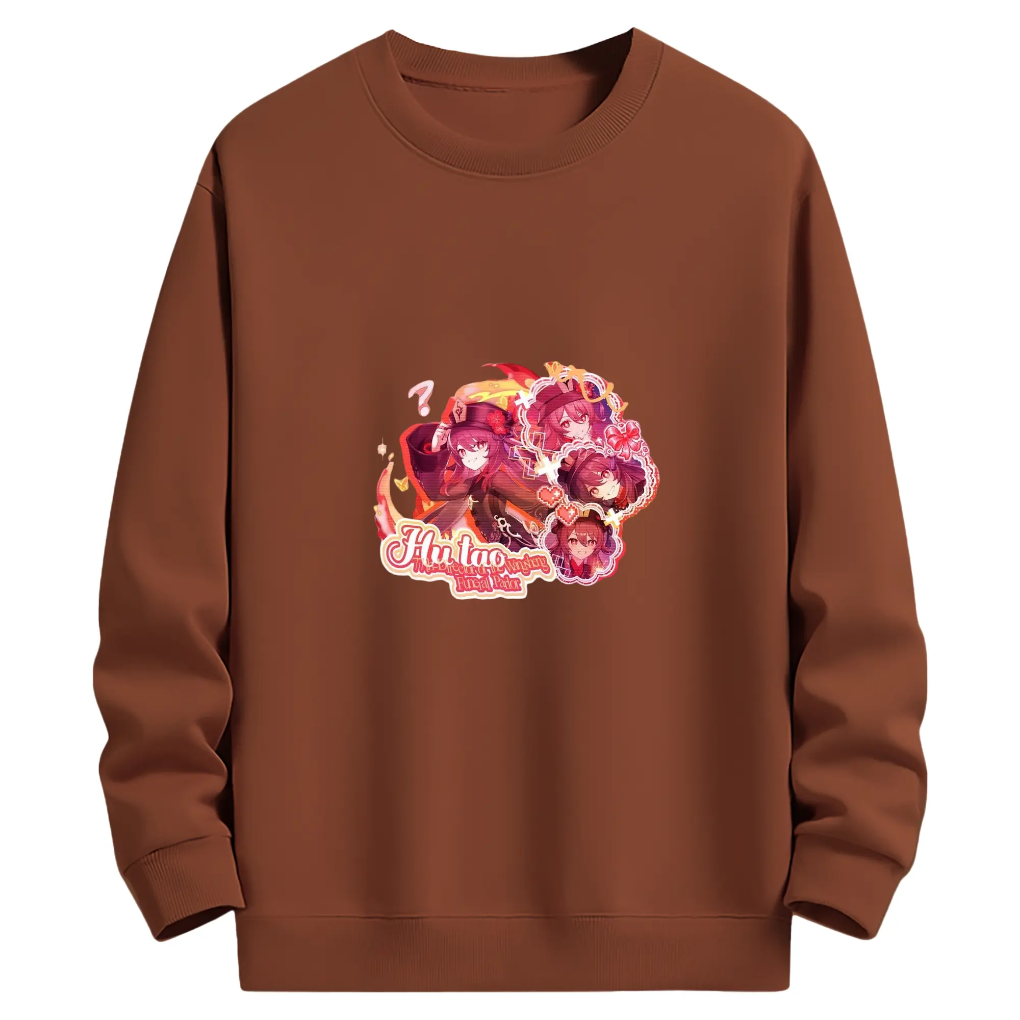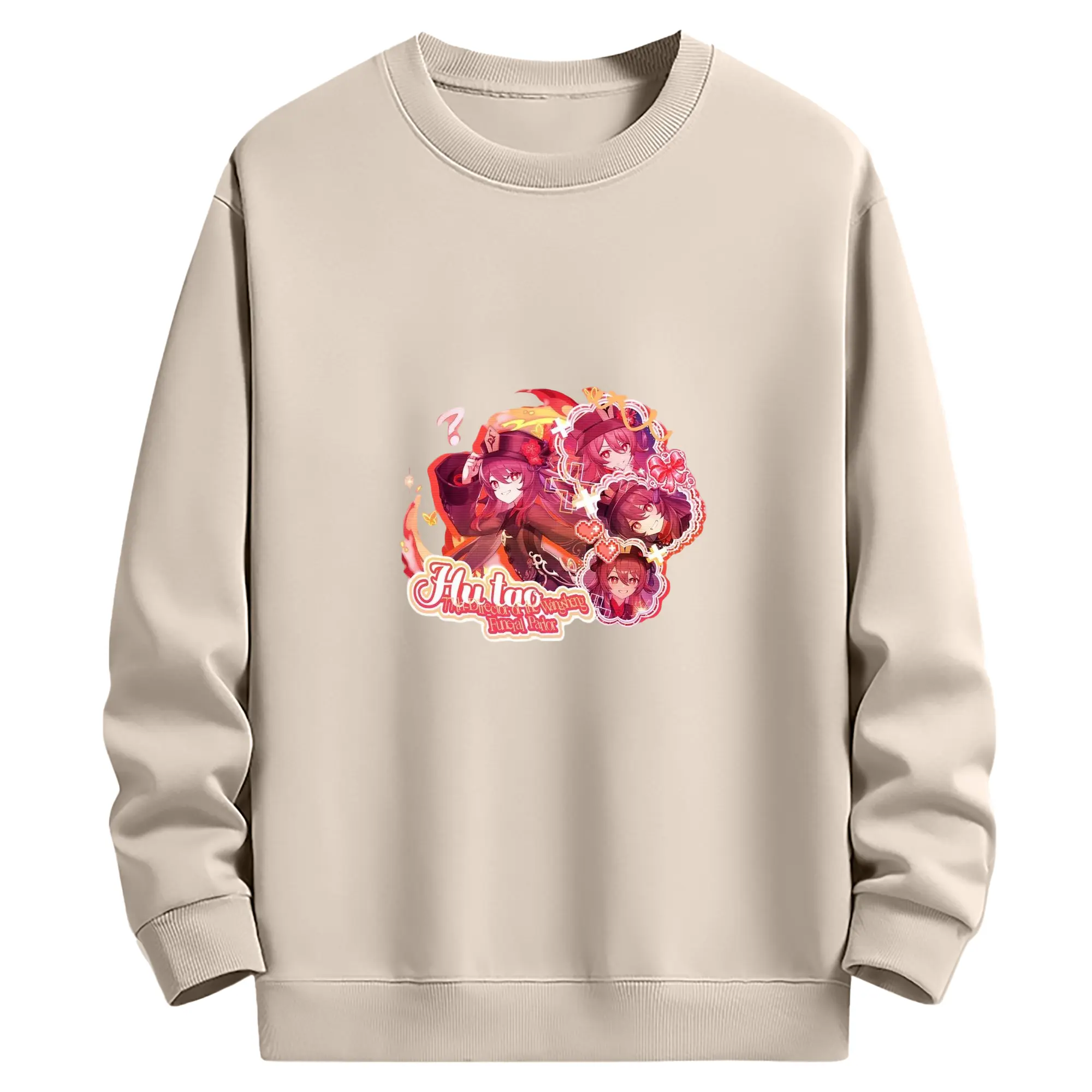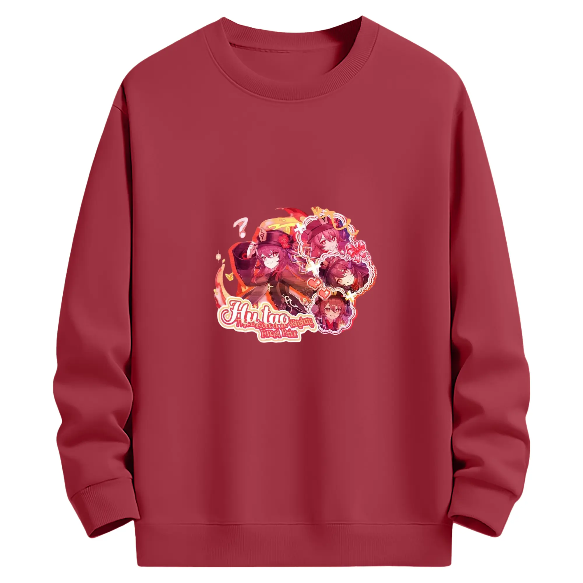 Genshin リーユエ フータオ - 高品質 クルーネック スウェット ・ コットン59% ポリエステル41% ・ ユニセックス 長袖 トレーナー ・ カジュアル デイリー スポーツ 散歩用