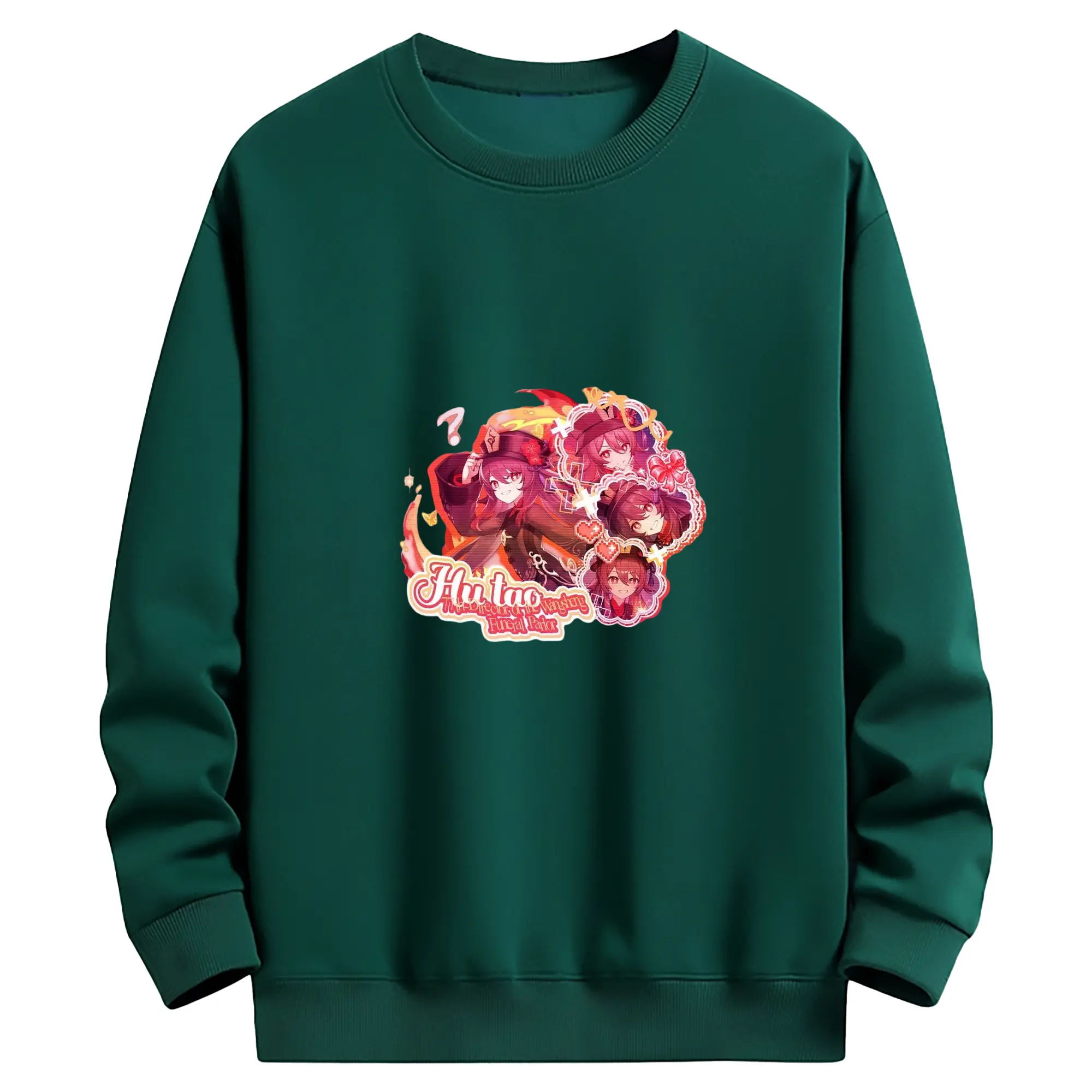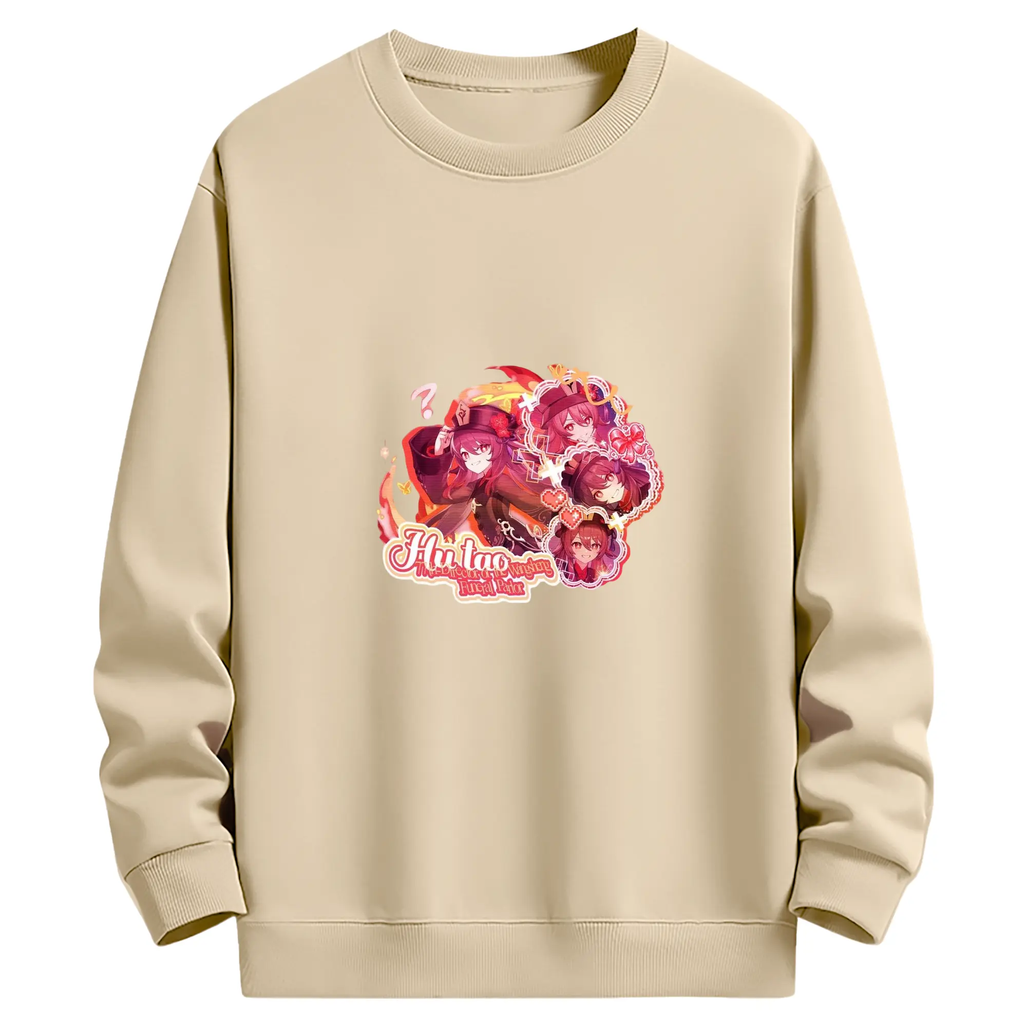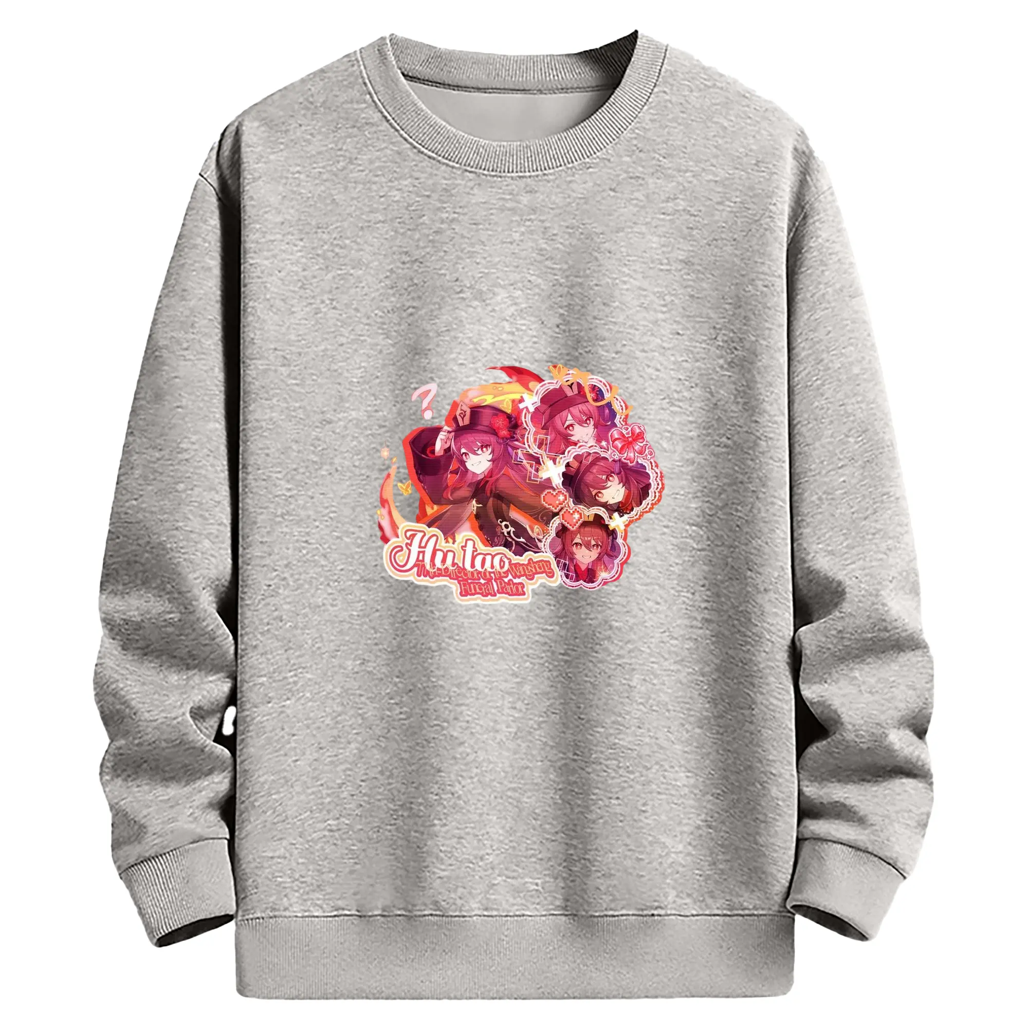 Genshin リーユエ フータオ - 高品質 クルーネック スウェット ・ コットン59% ポリエステル41% ・ ユニセックス 長袖 トレーナー ・ カジュアル デイリー スポーツ 散歩用