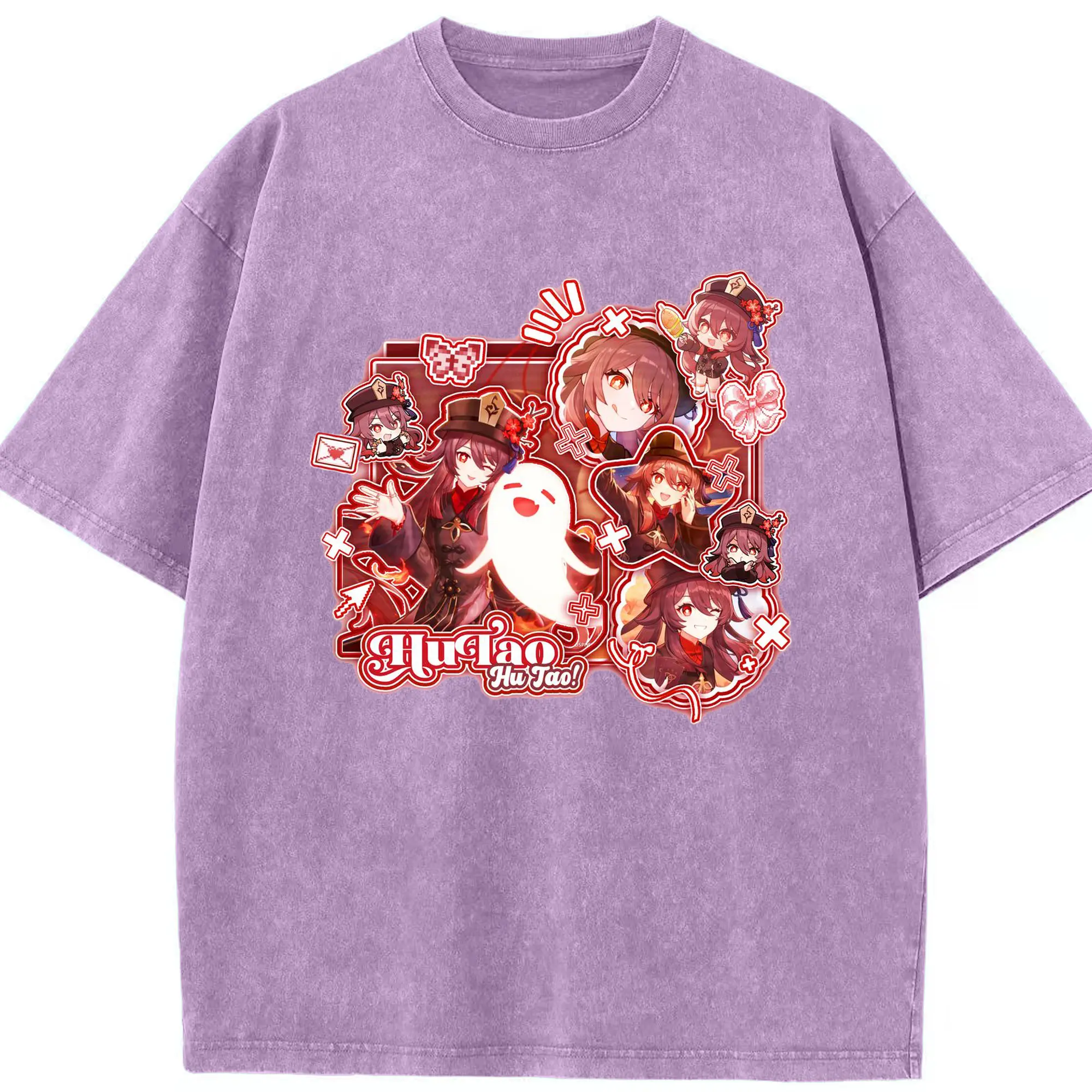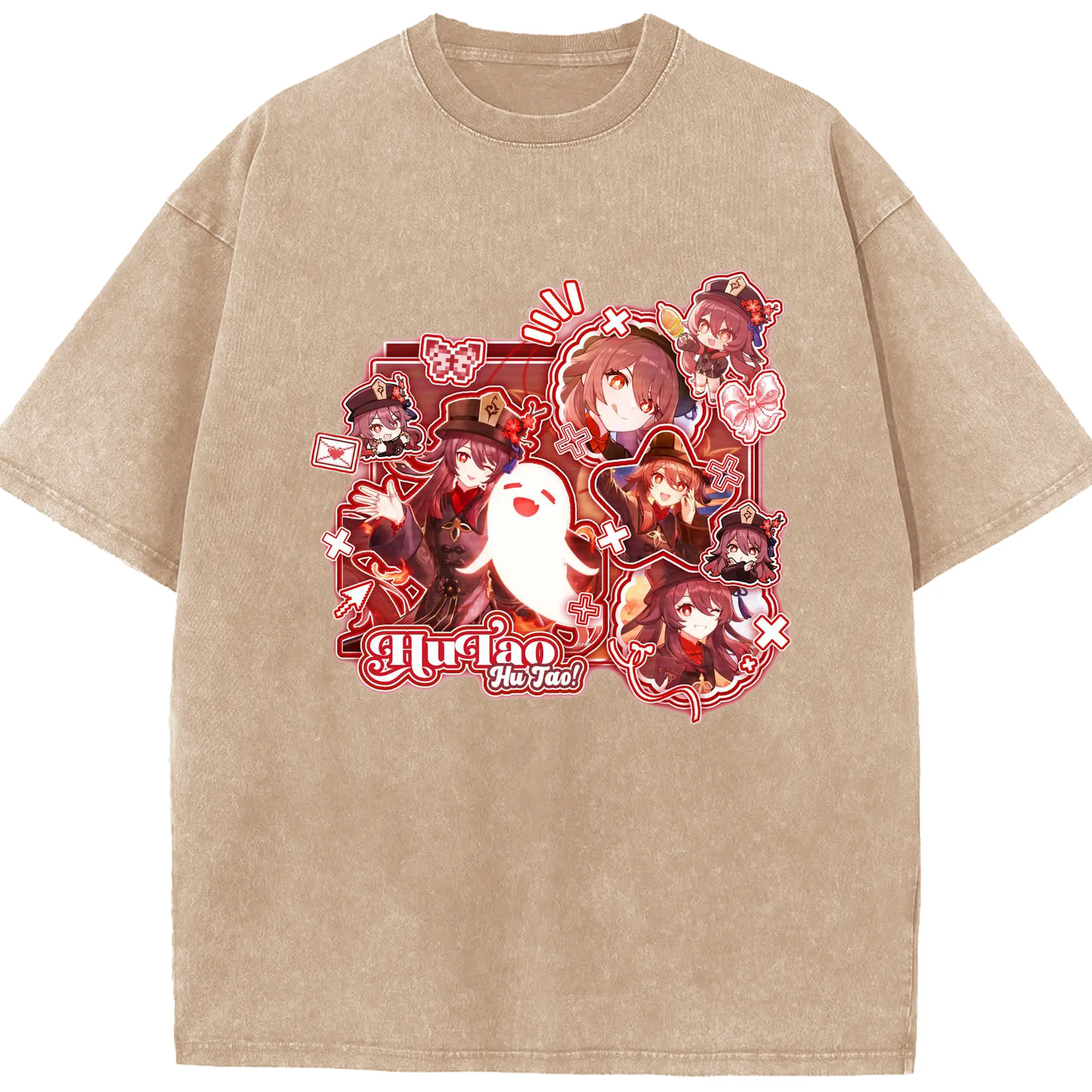 Genshin リーユエ フータオ - 綿100% ヴィンテージ風 半袖Tシャツ ・ フロントプリント ・ 柔らか肌触り ・ 通気性 快適 ・ スポーツ カジュアル 外出用