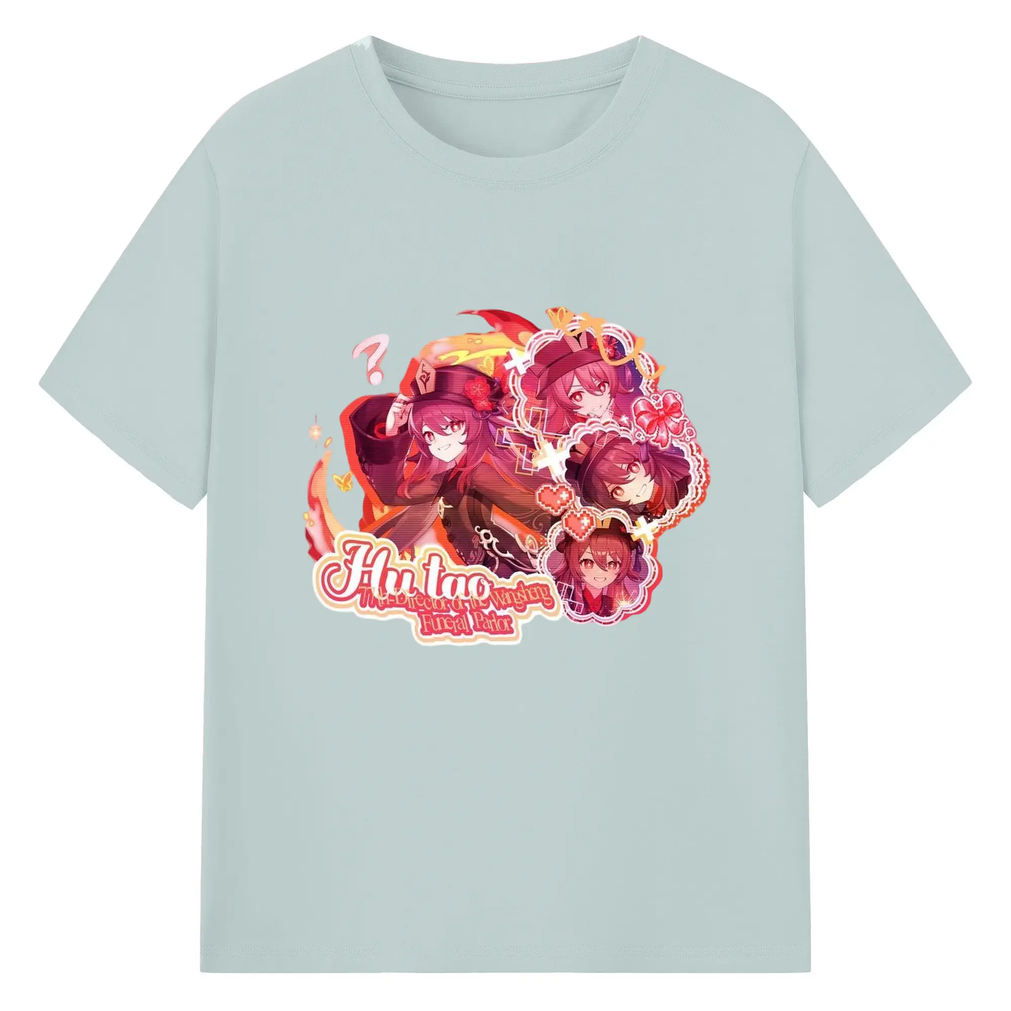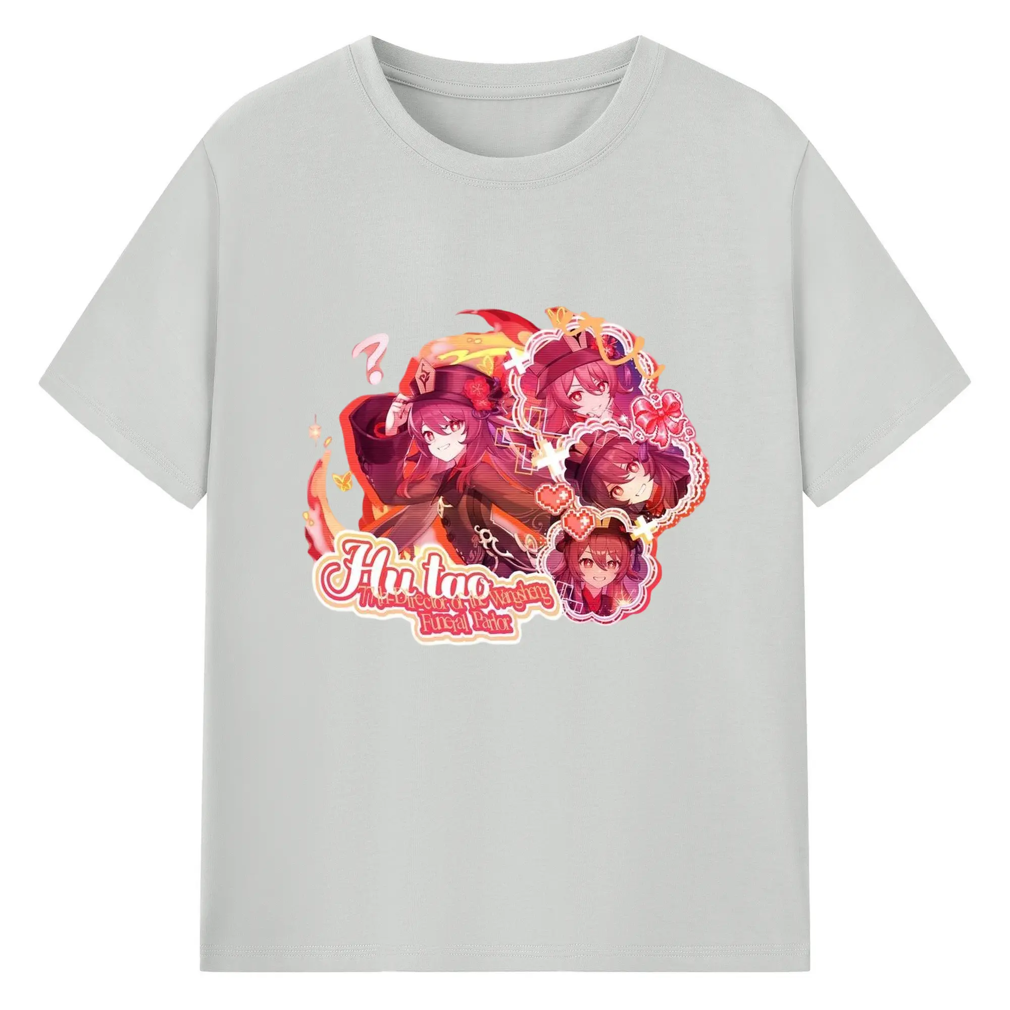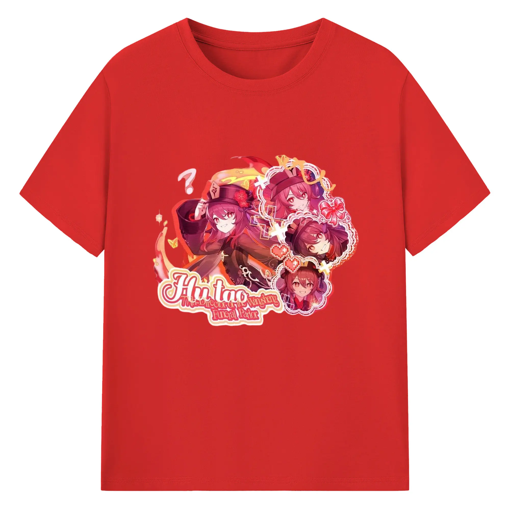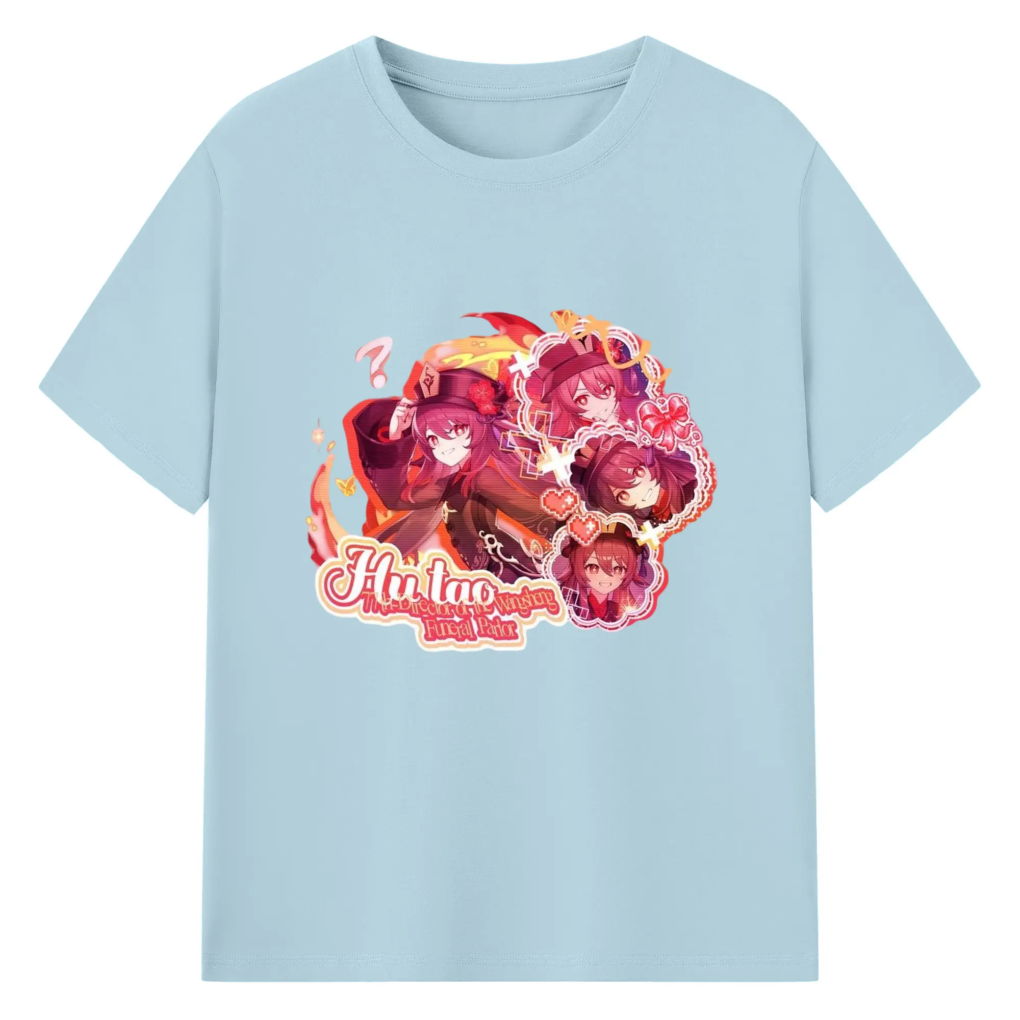 Genshin リーユエ フータオ - 綿100% 半袖Tシャツ ・ フロントプリント ・ 快適 通気性 ・ 日常使い 散歩 スポーツ用