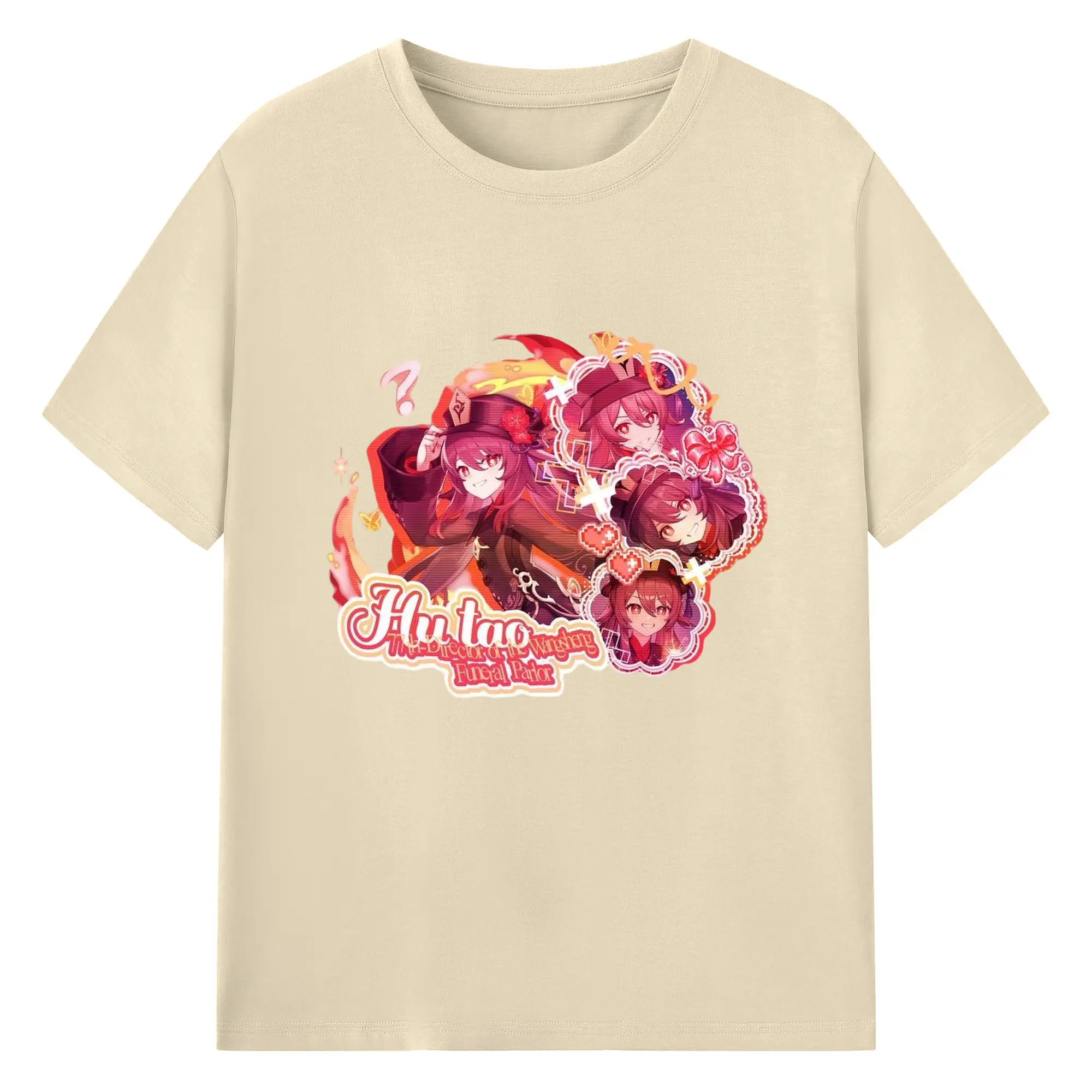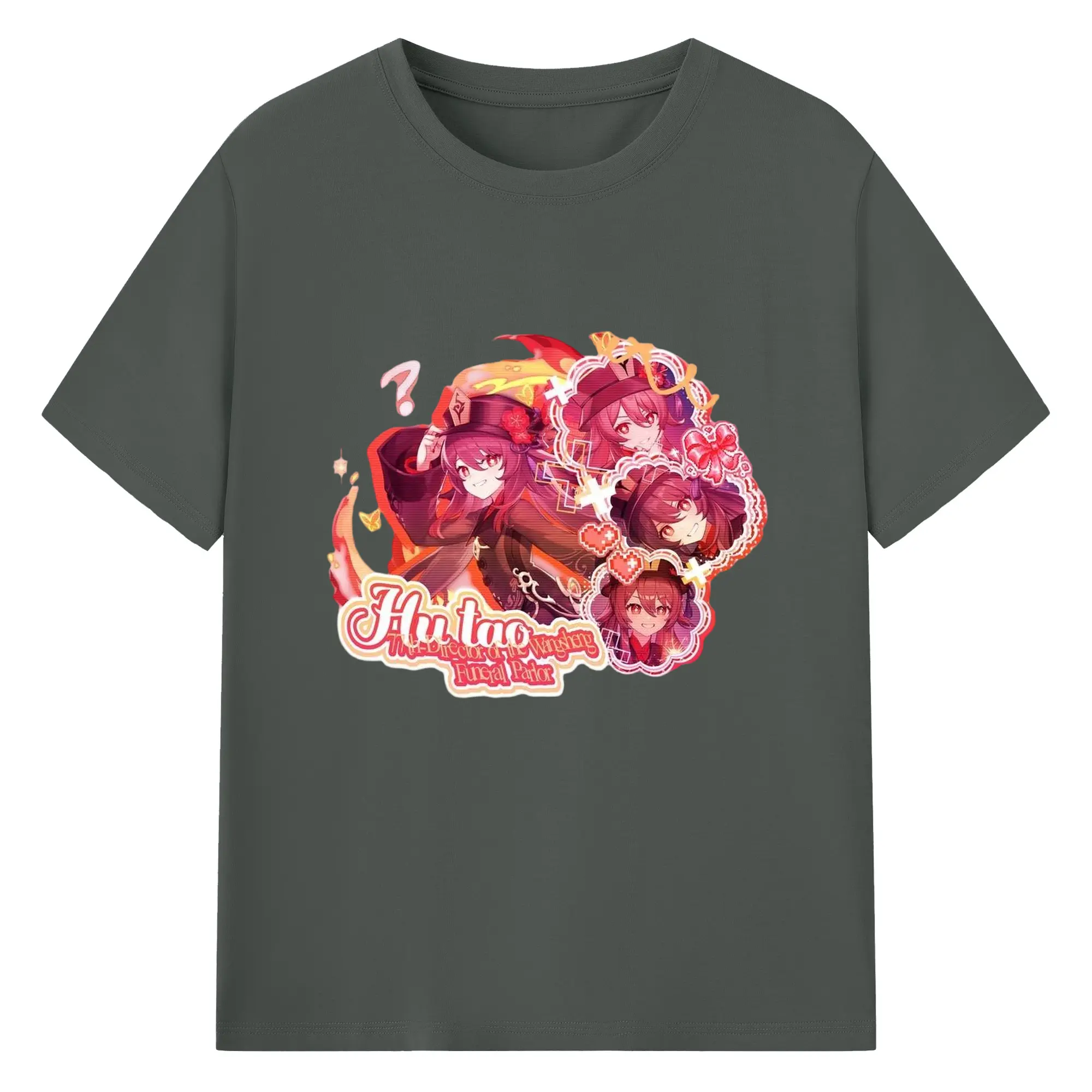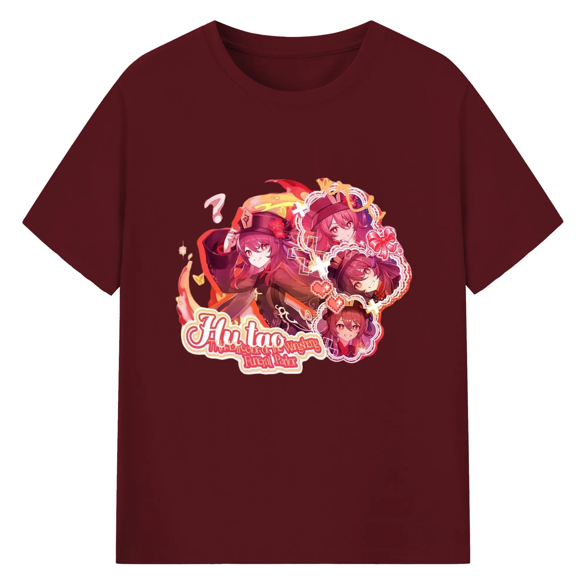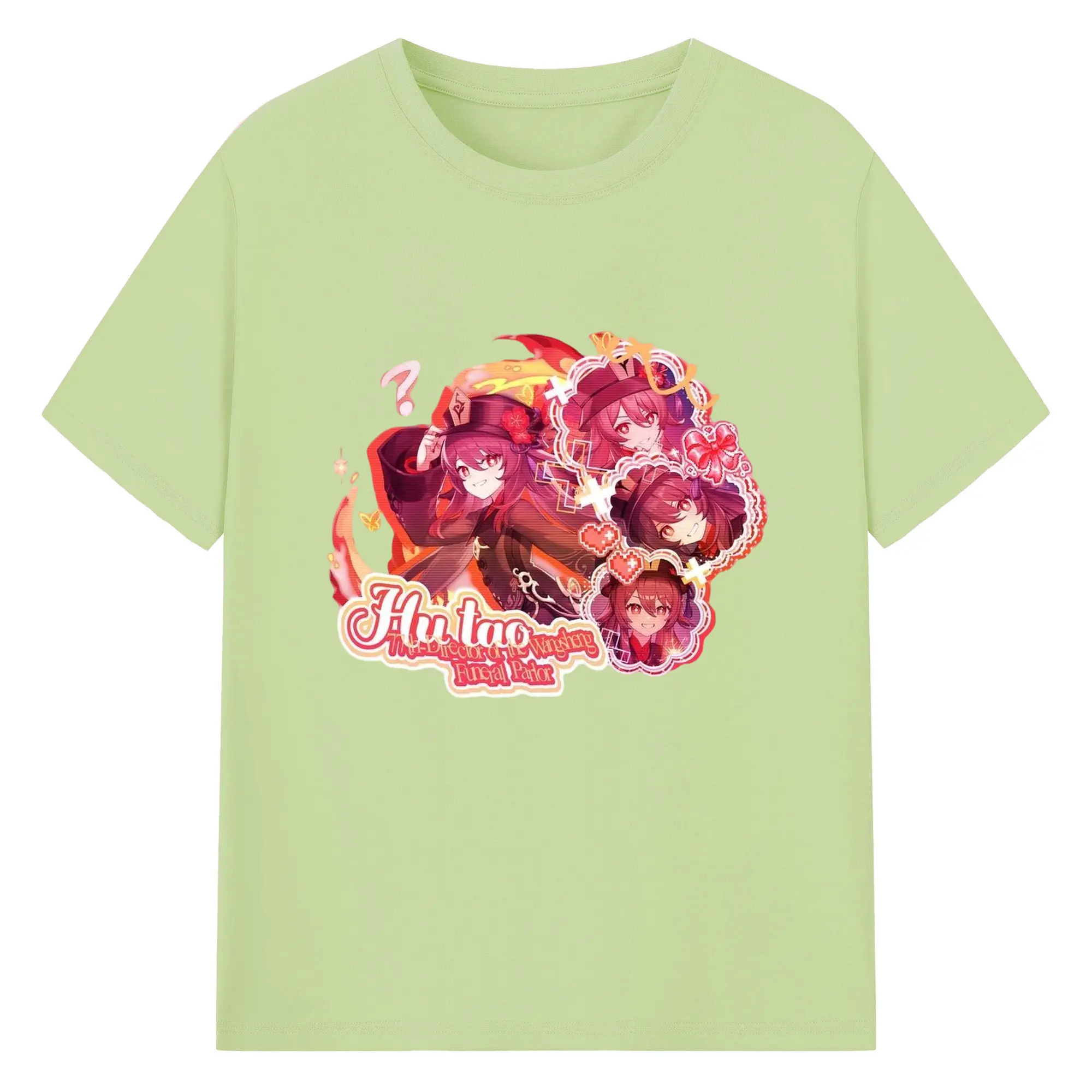 Genshin リーユエ フータオ - 綿100% 半袖Tシャツ ・ フロントプリント ・ 快適 通気性 ・ 日常使い 散歩 スポーツ用