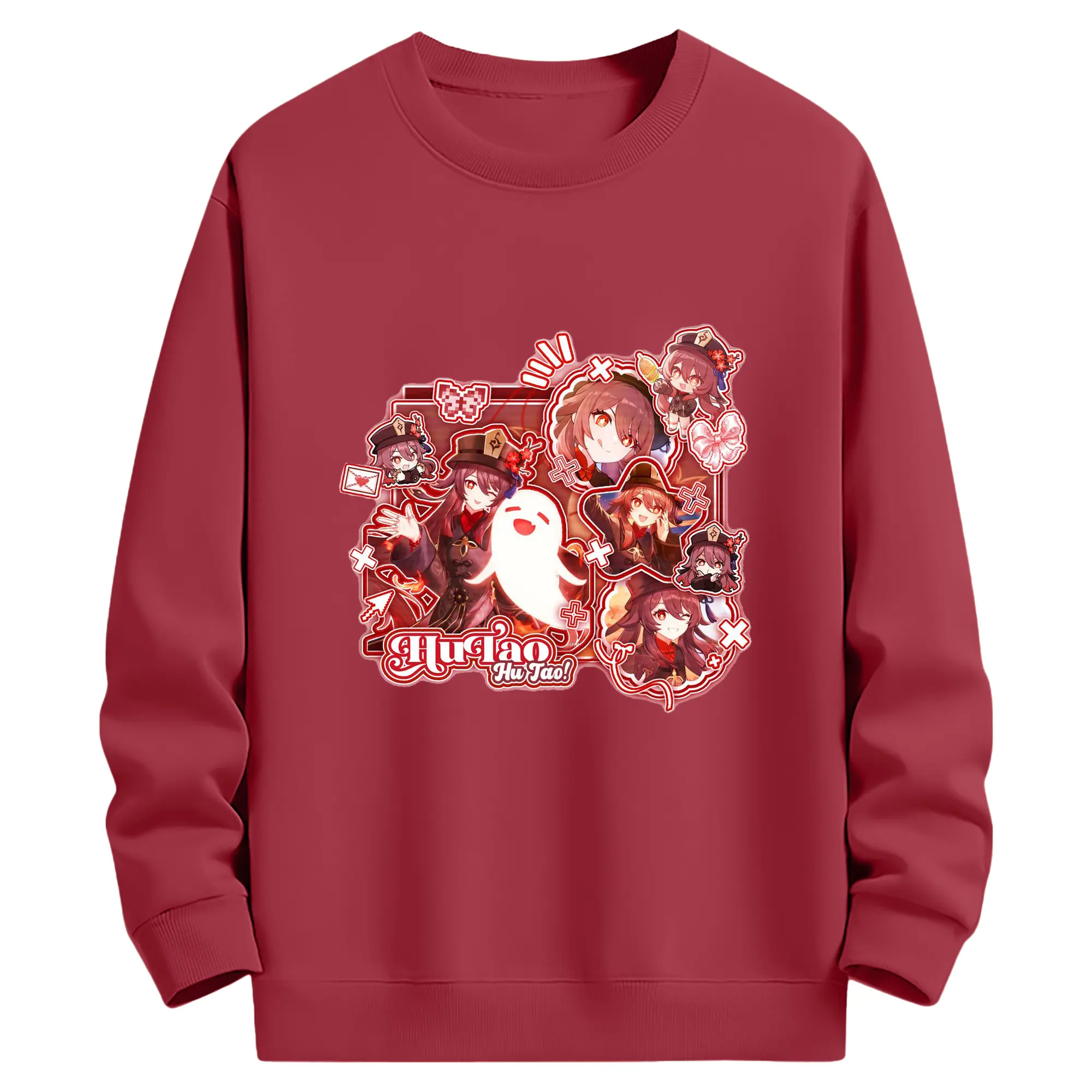 Genshin リーユエ フータオ - 高品質 クルーネック スウェット ・ コットン59% ポリエステル41% ・ ユニセックス 長袖 トレーナー ・ カジュアル デイリー スポーツ 散歩用
