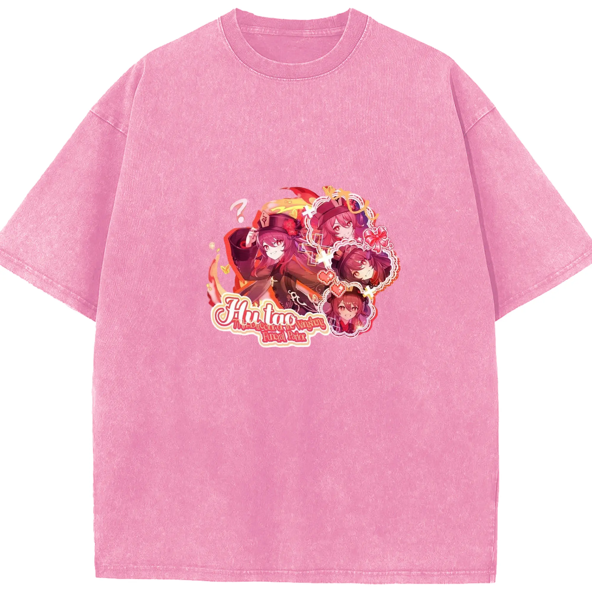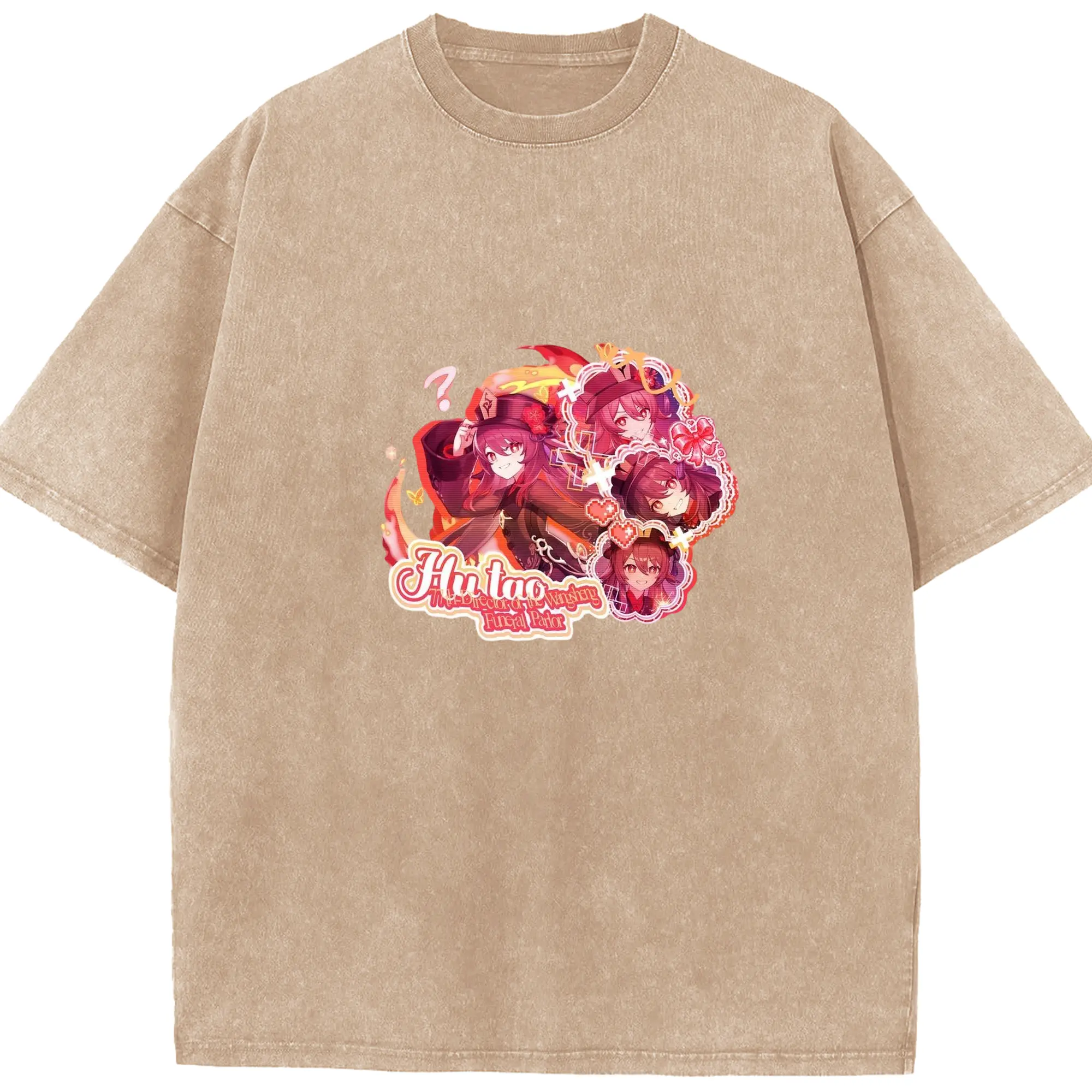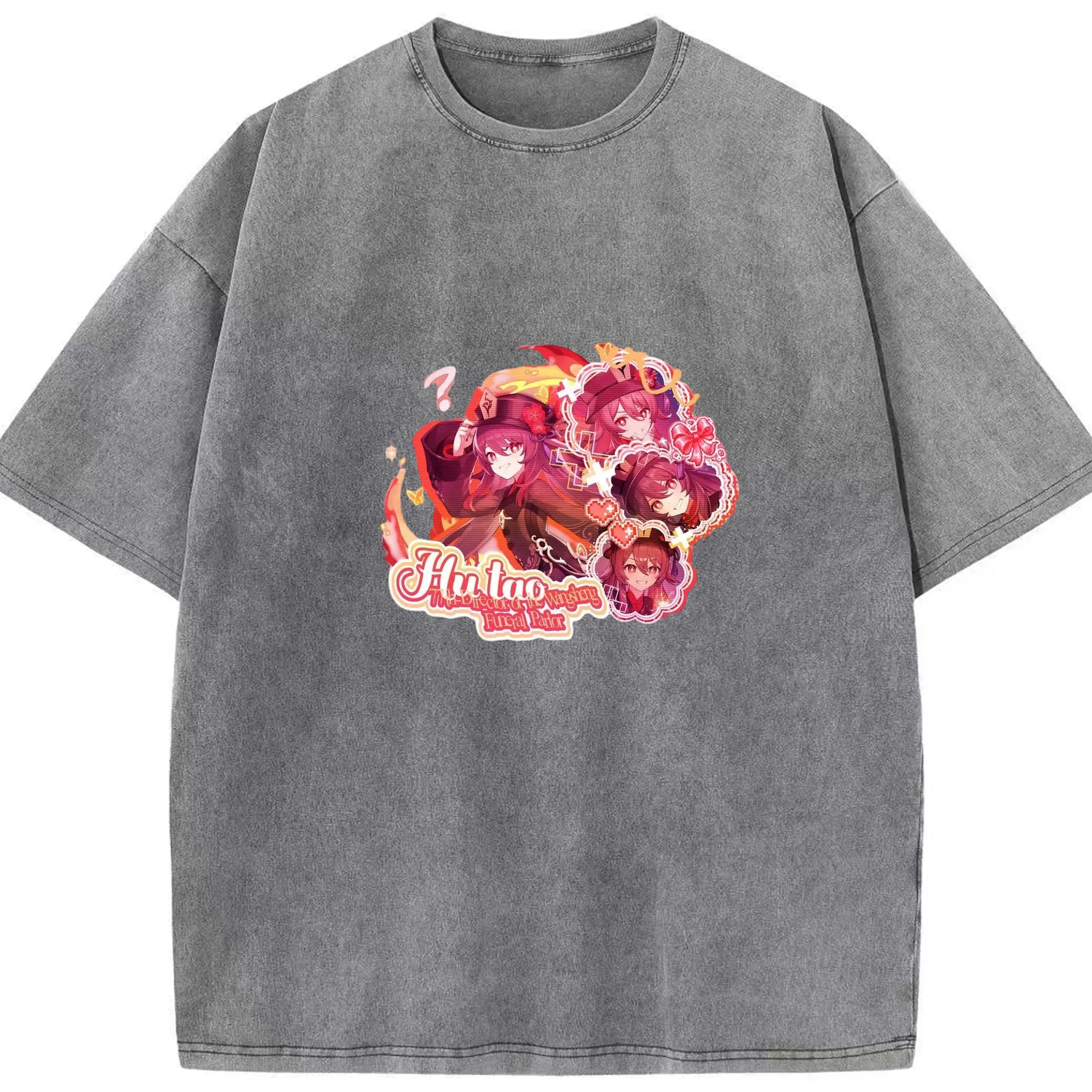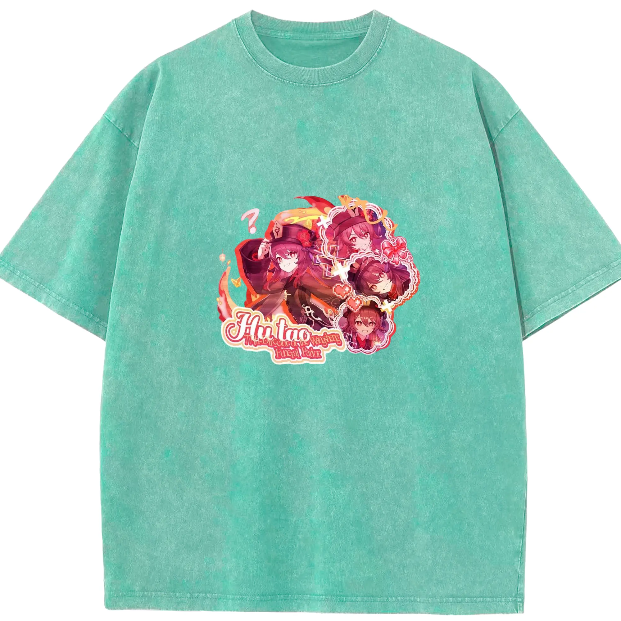 Genshin リーユエ フータオ - 綿100% ヴィンテージ風 半袖Tシャツ ・ フロントプリント ・ 柔らか肌触り ・ 通気性 快適 ・ スポーツ カジュアル 外出用