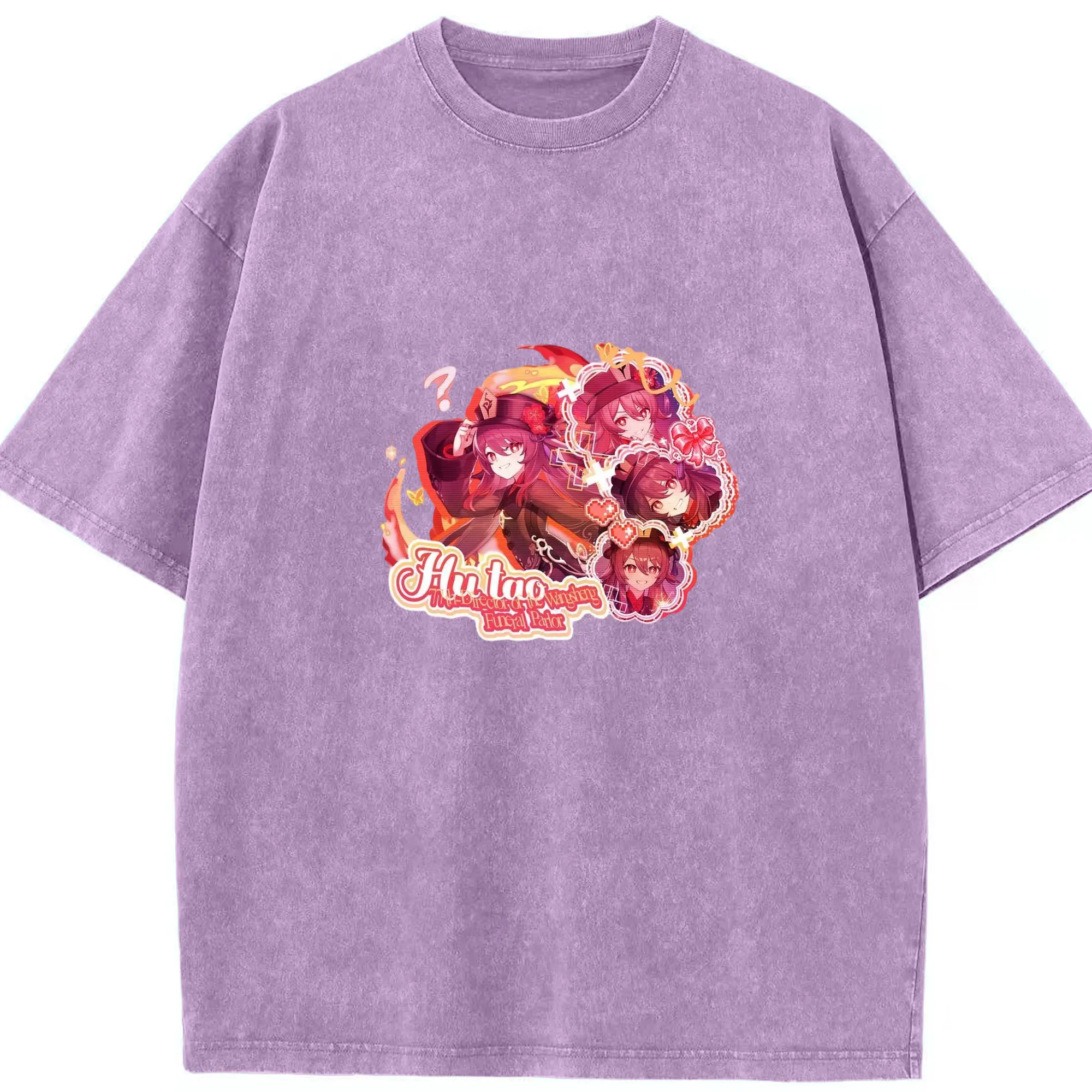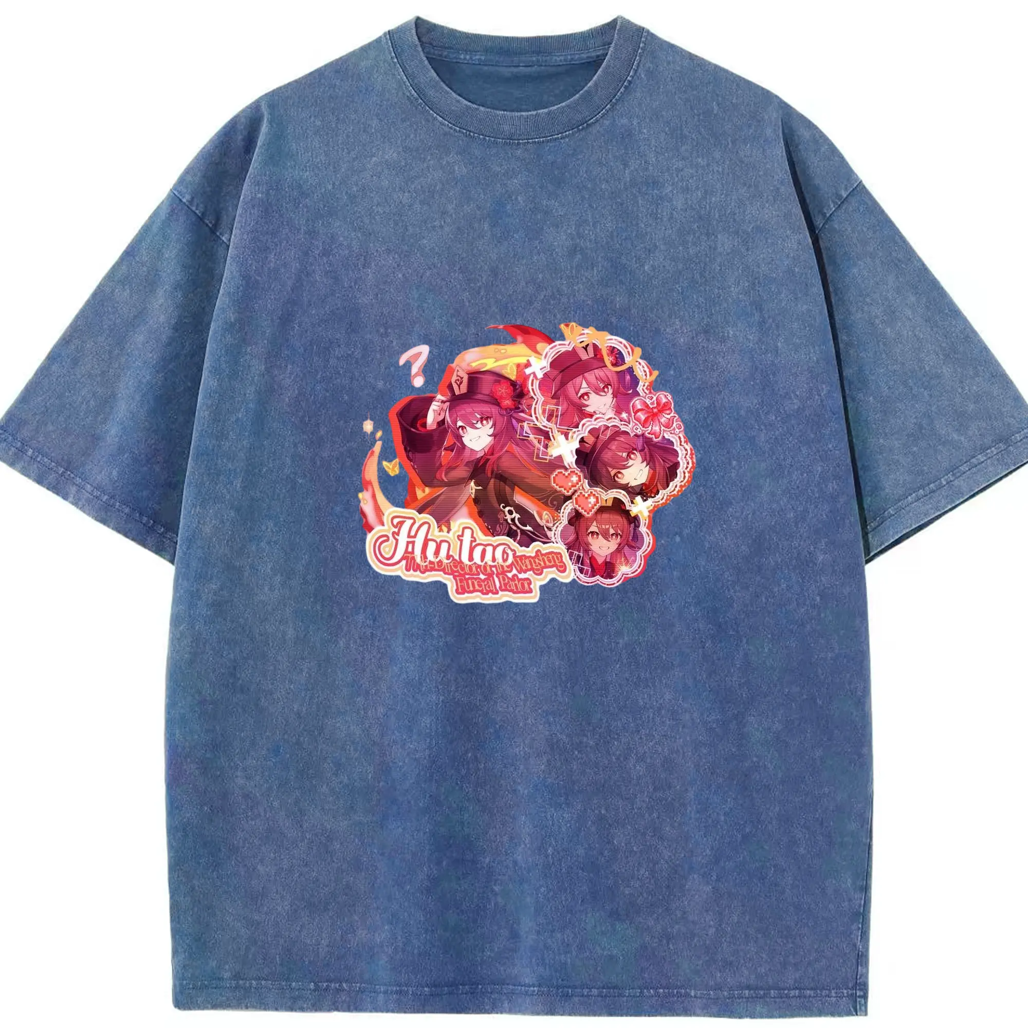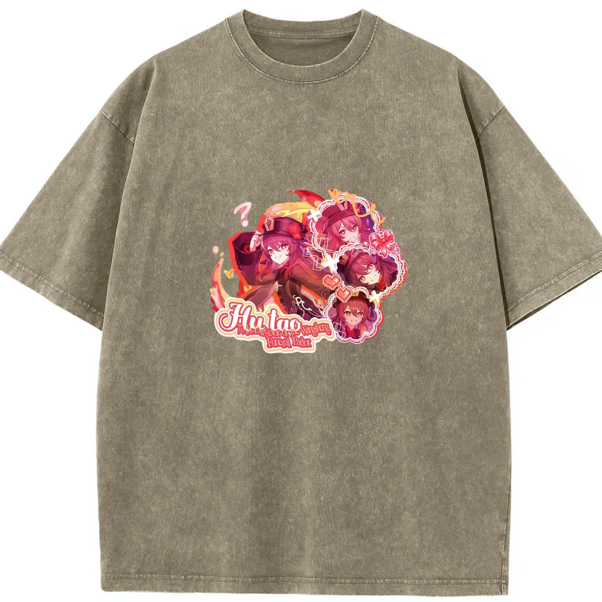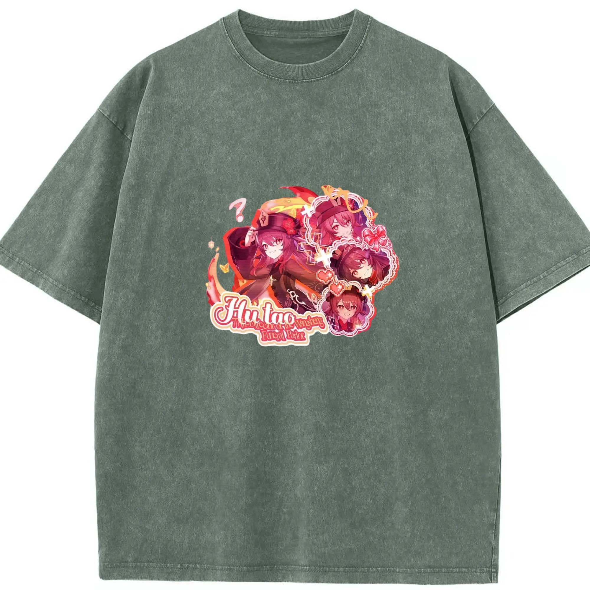 Genshin リーユエ フータオ - 綿100% ヴィンテージ風 半袖Tシャツ ・ フロントプリント ・ 柔らか肌触り ・ 通気性 快適 ・ スポーツ カジュアル 外出用