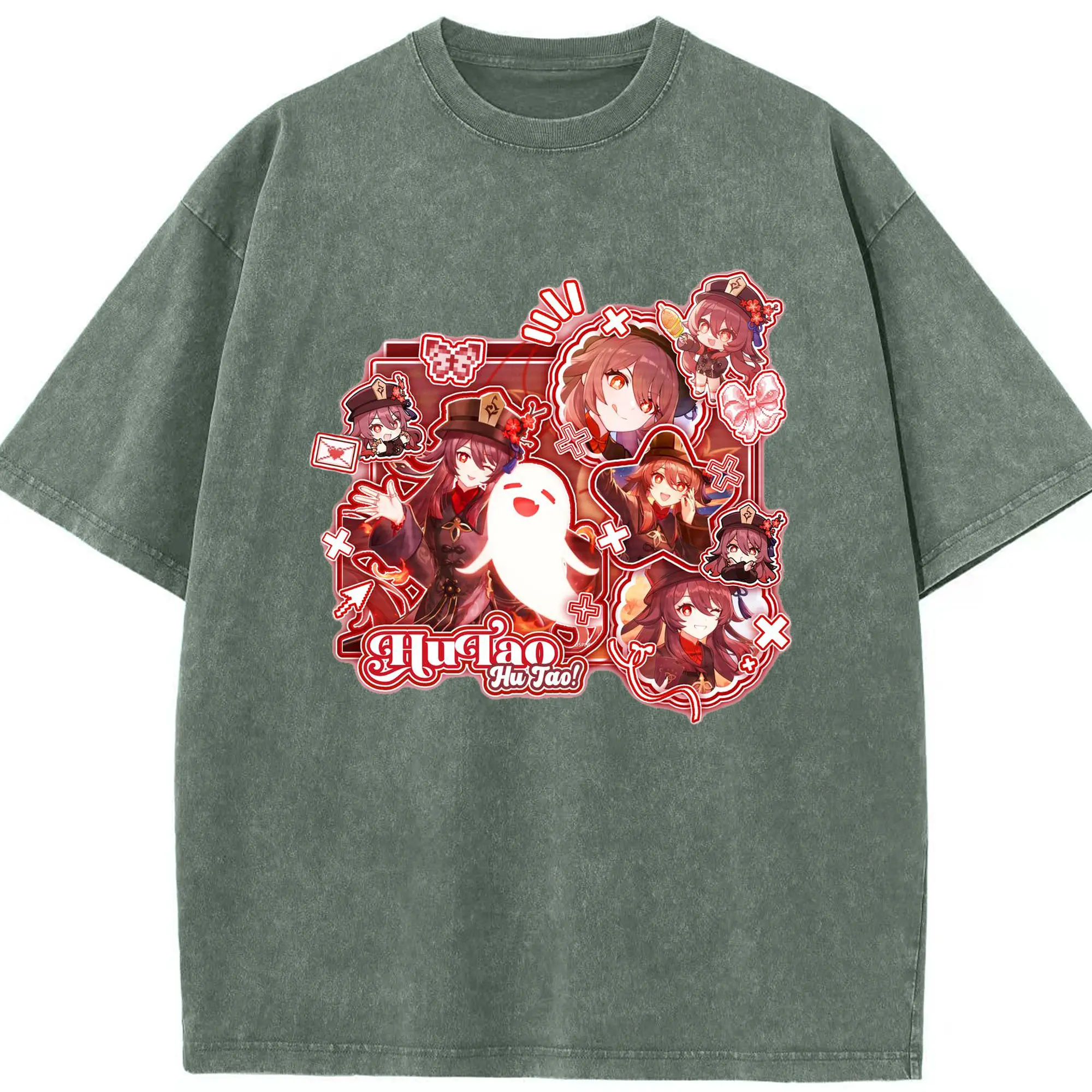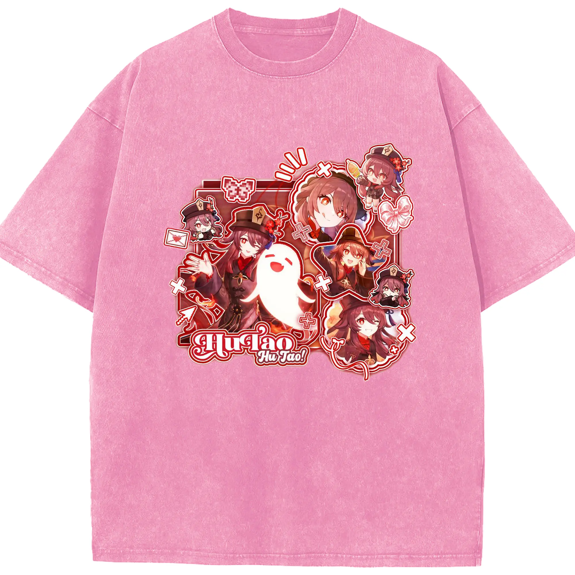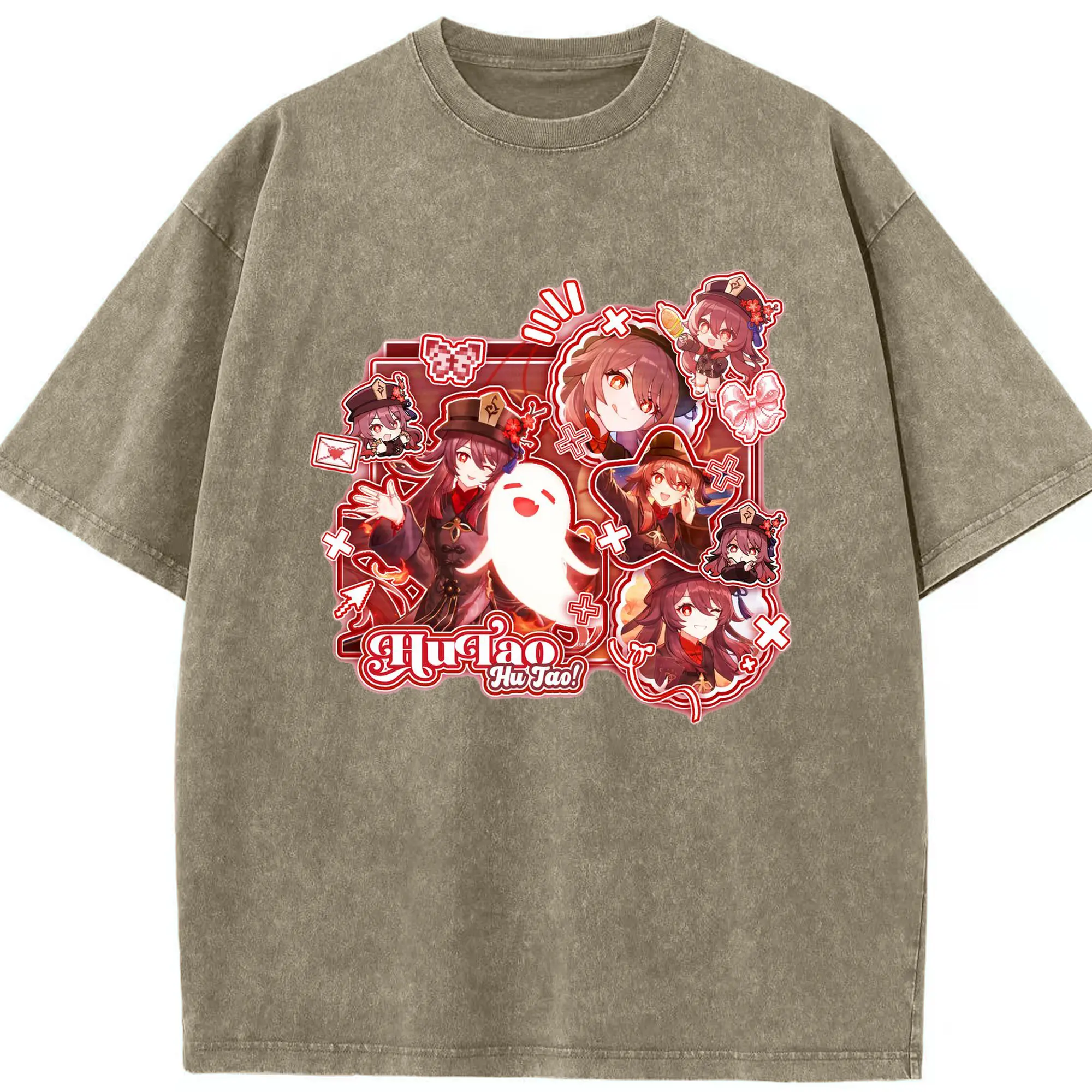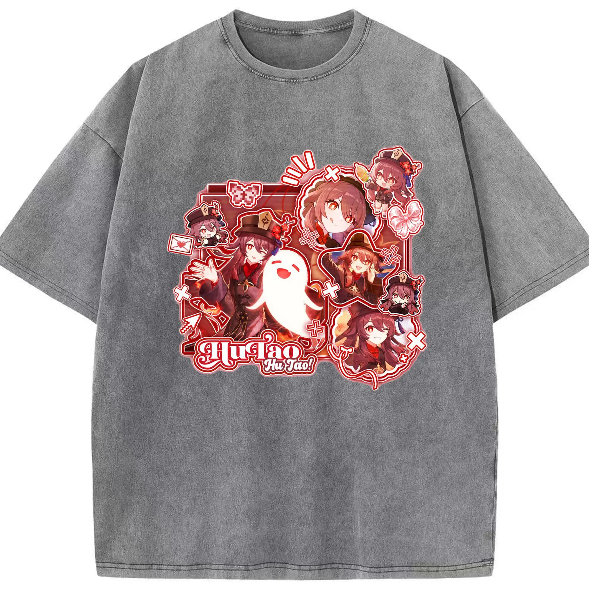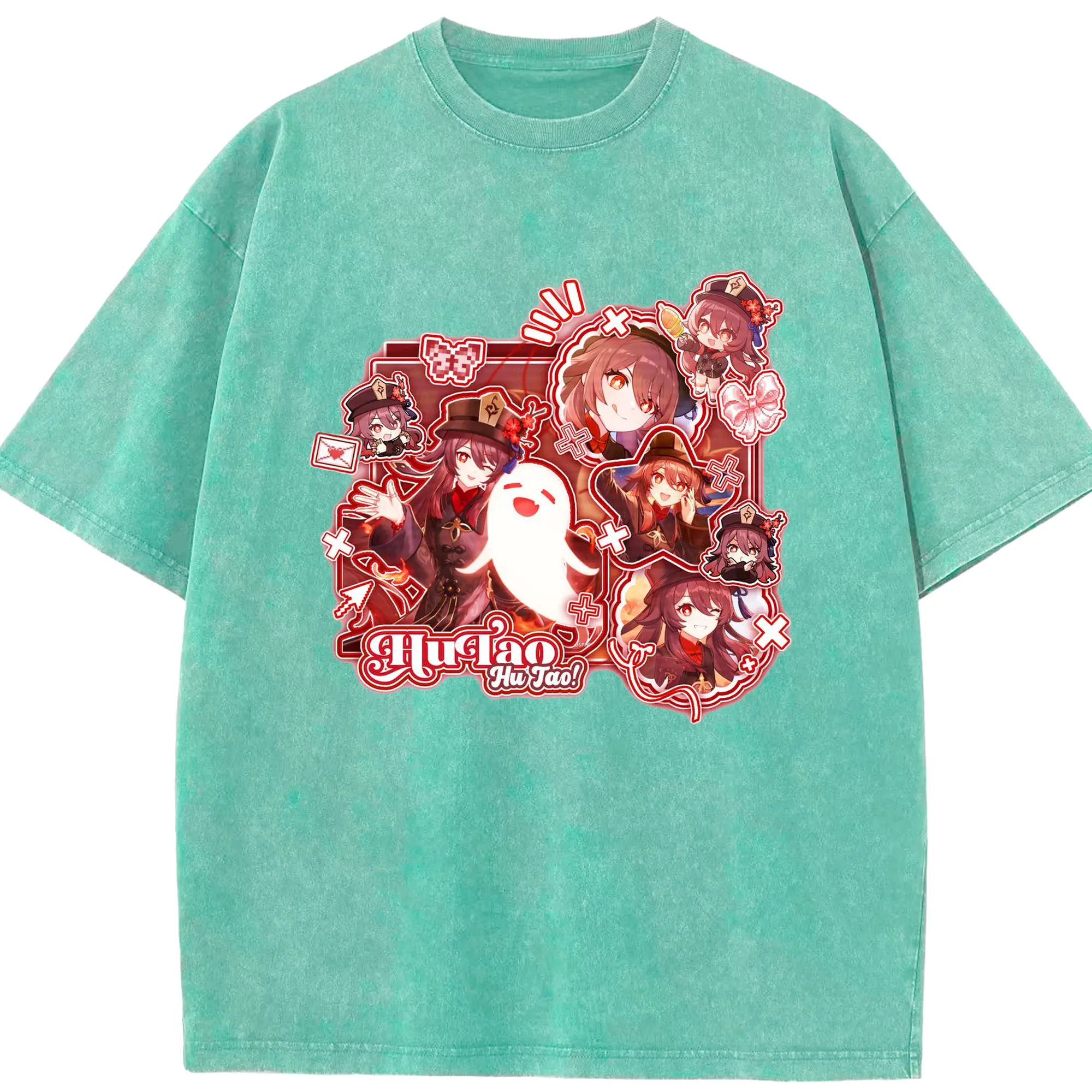 Genshin リーユエ フータオ - 綿100% ヴィンテージ風 半袖Tシャツ ・ フロントプリント ・ 柔らか肌触り ・ 通気性 快適 ・ スポーツ カジュアル 外出用