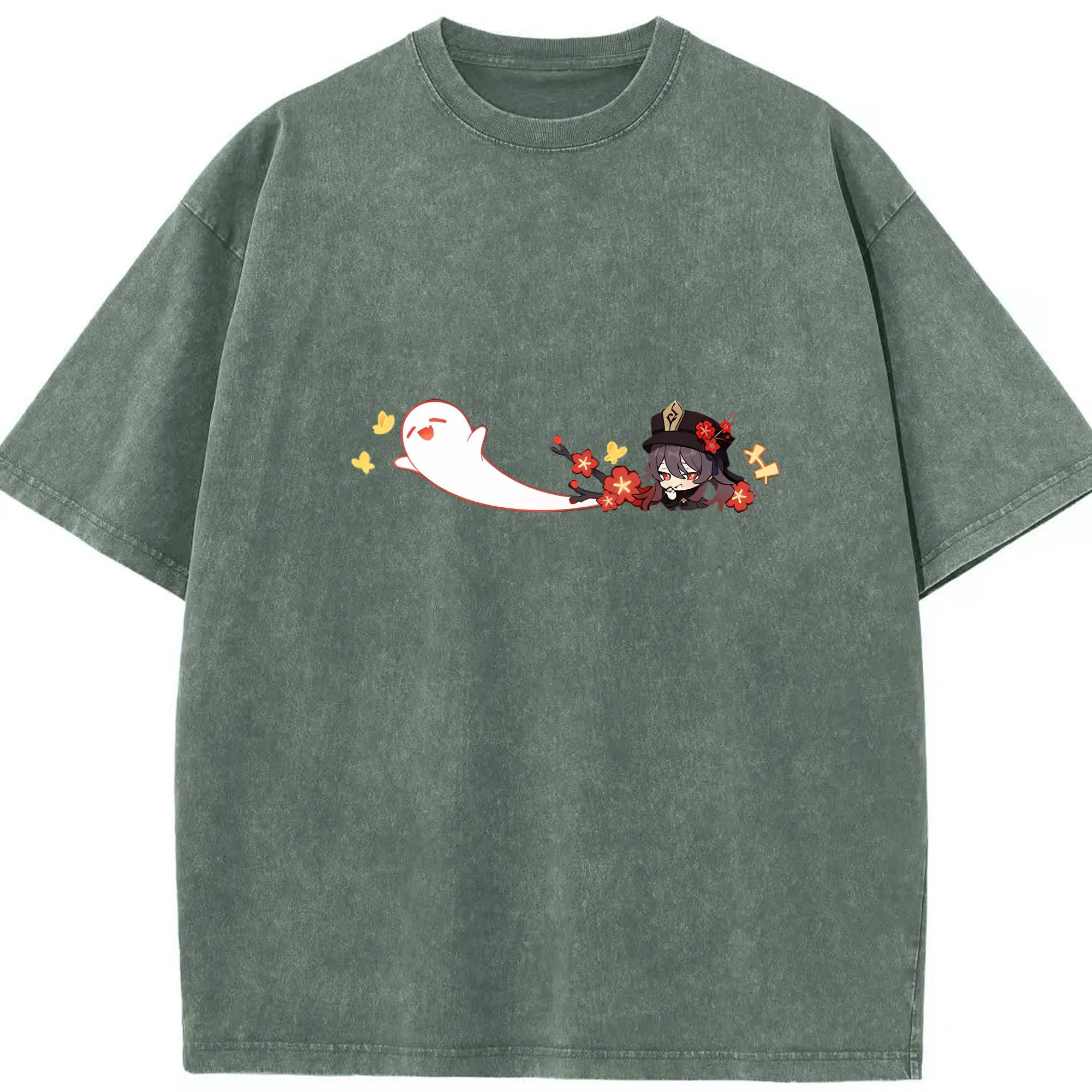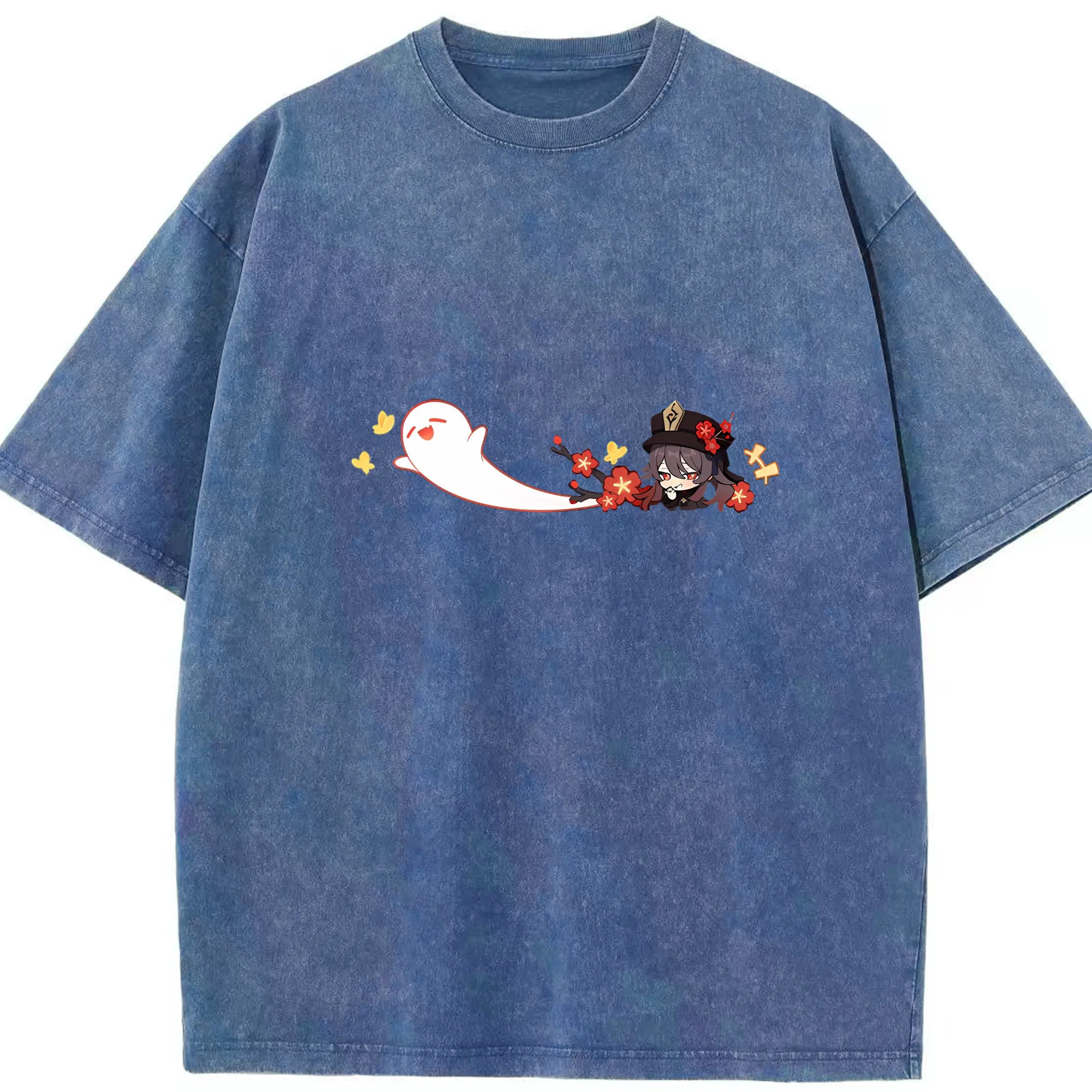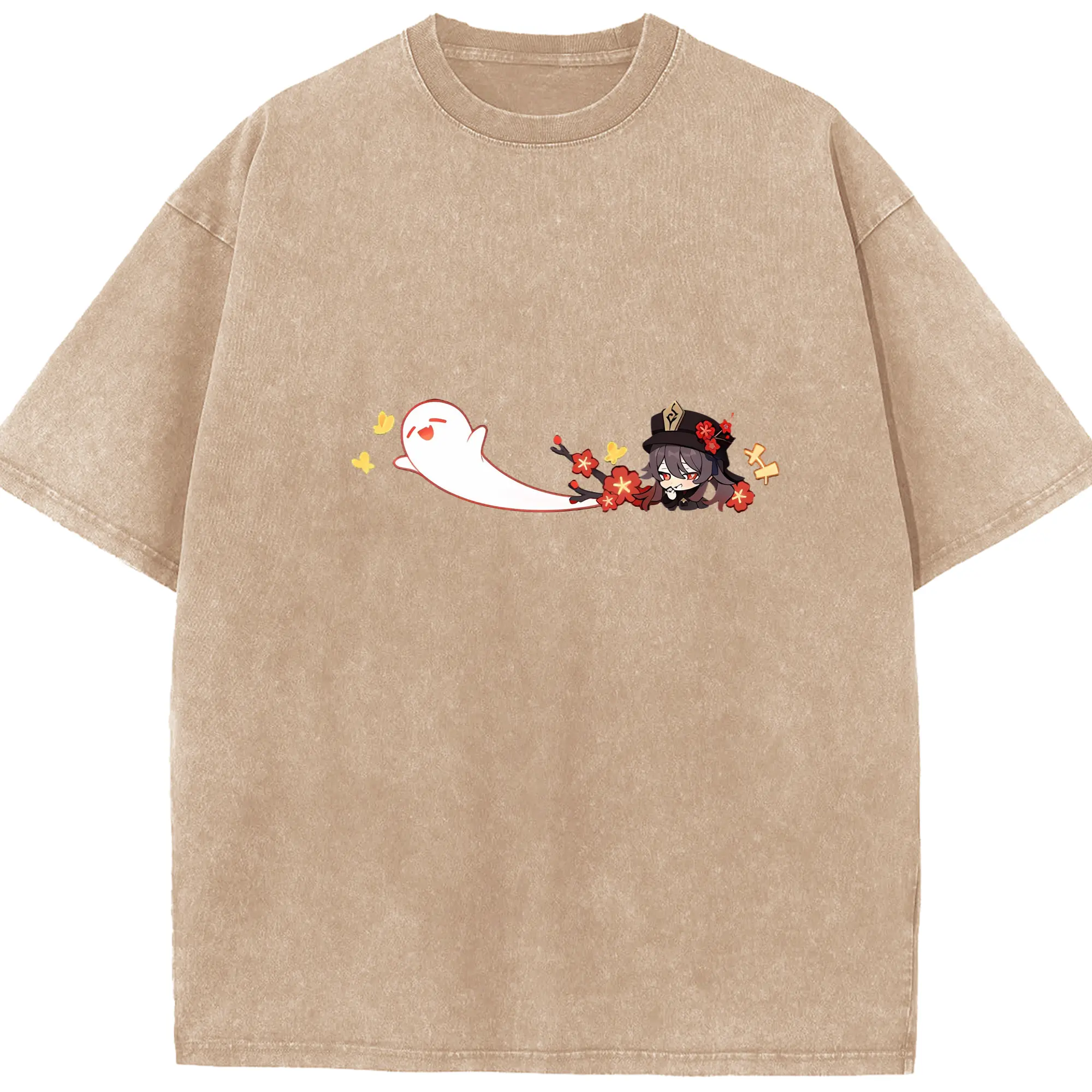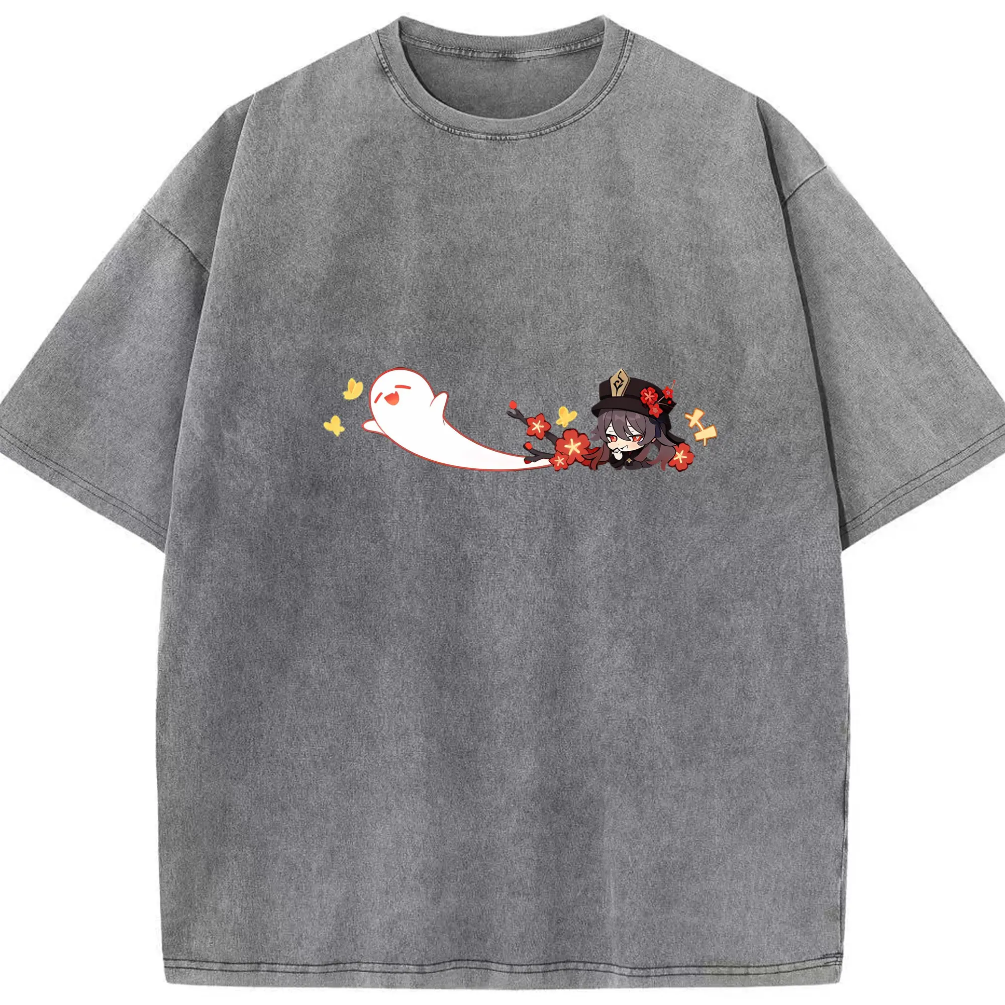 Genshin リーユエ フートウ - 綿100% ヴィンテージ風 半袖Tシャツ ・ フロントプリント ・ 柔らか肌触り ・ 通気性 快適 ・ スポーツ カジュアル 外出用