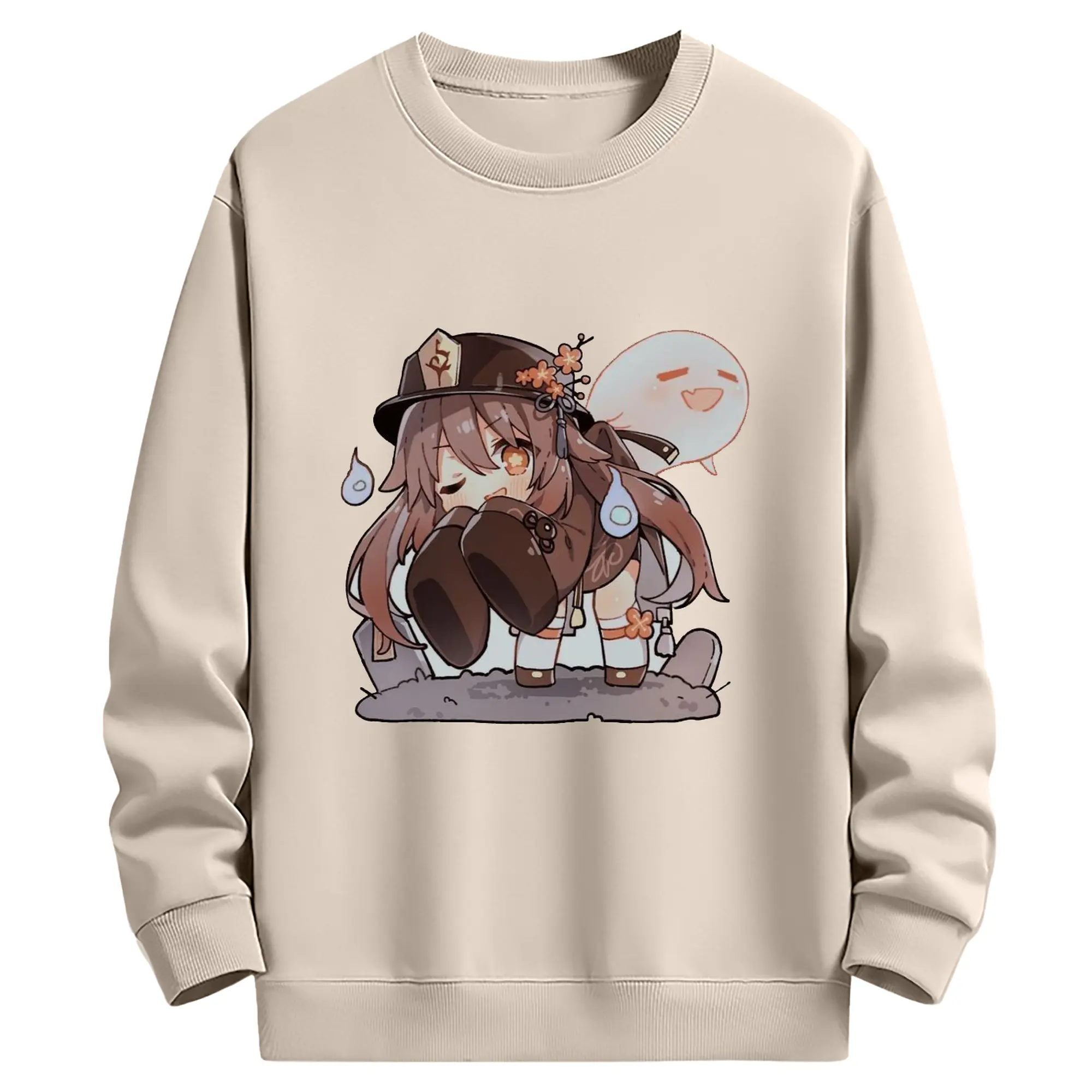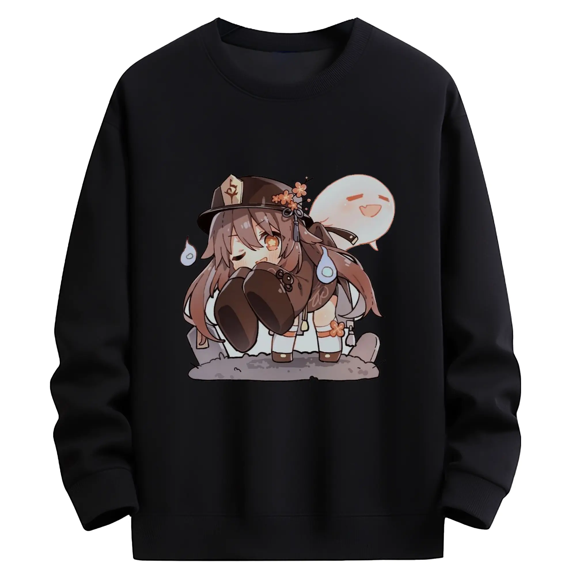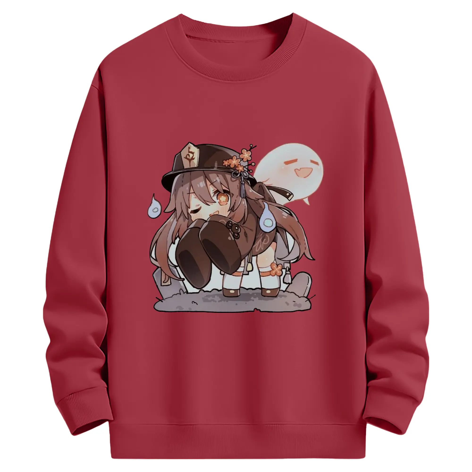 Genshin リーユエ リーユエ フータオ の幽霊 - 高品質 クルーネック スウェット ・ コットン59% ポリエステル41% ・ ユニセックス 長袖 トレーナー ・ カジュアル デイリー スポーツ 散歩用