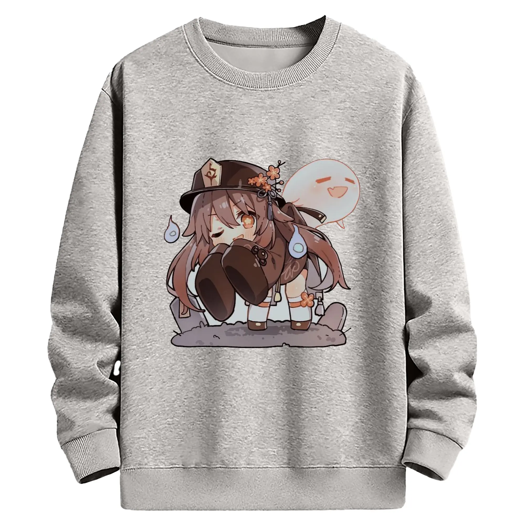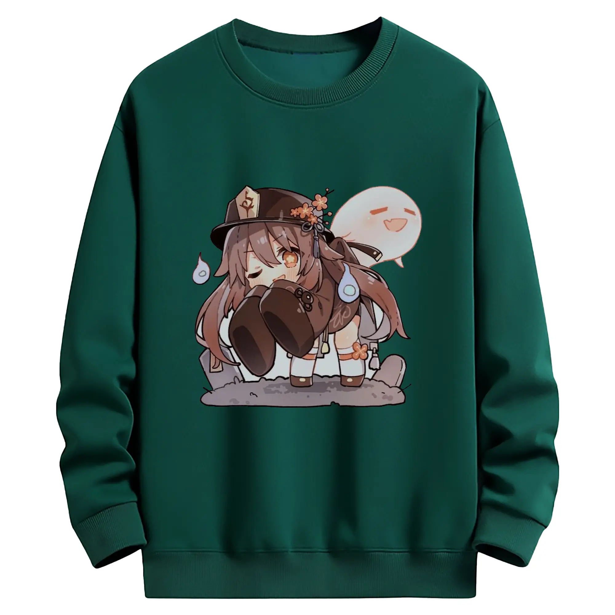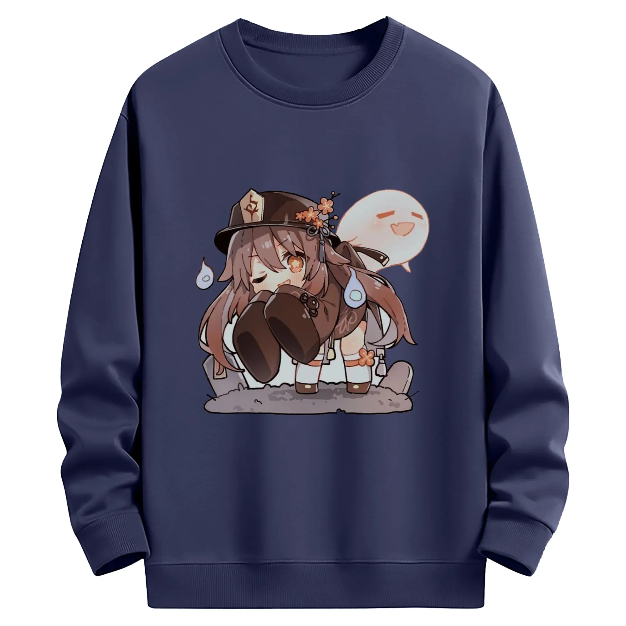 Genshin リーユエ リーユエ フータオ の幽霊 - 高品質 クルーネック スウェット ・ コットン59% ポリエステル41% ・ ユニセックス 長袖 トレーナー ・ カジュアル デイリー スポーツ 散歩用