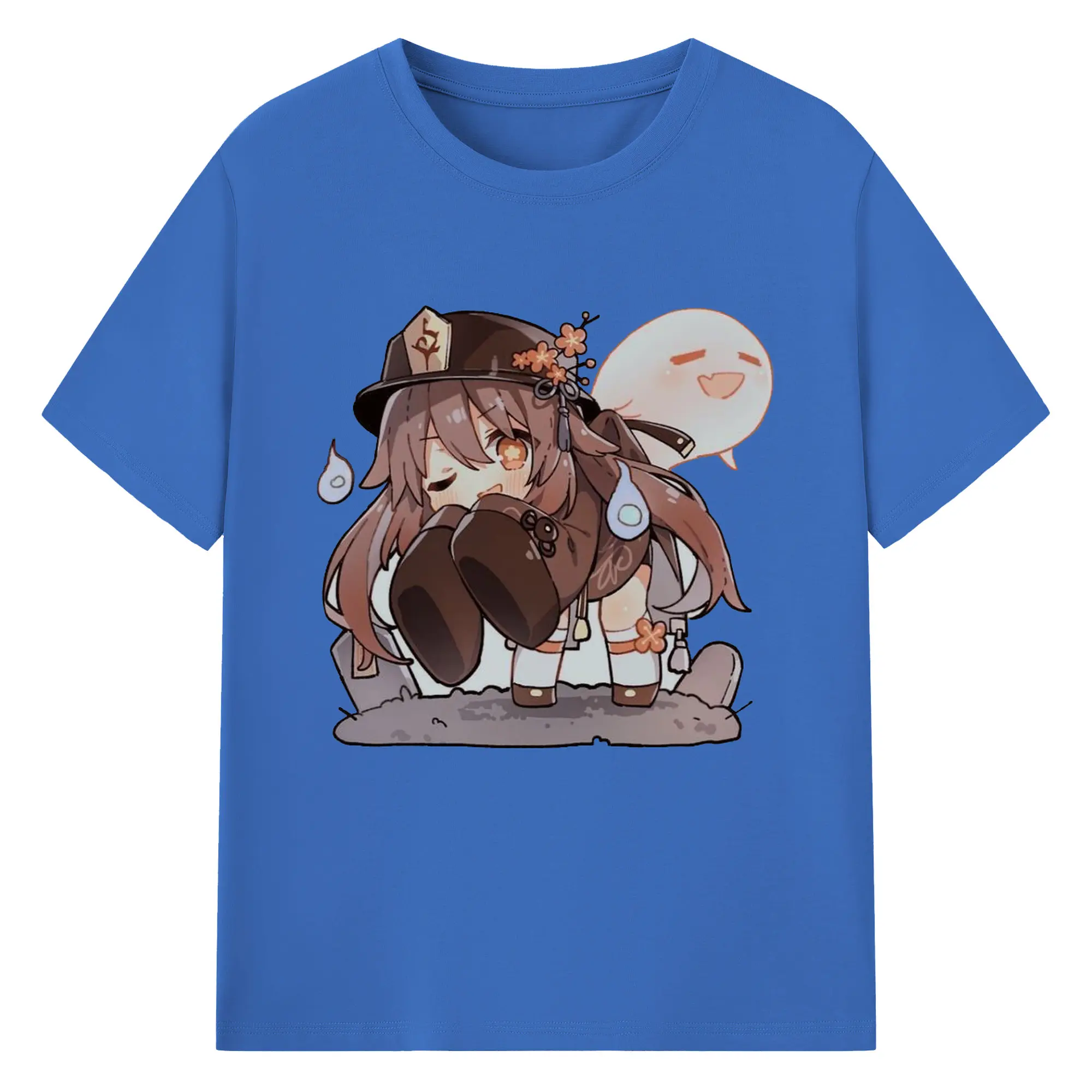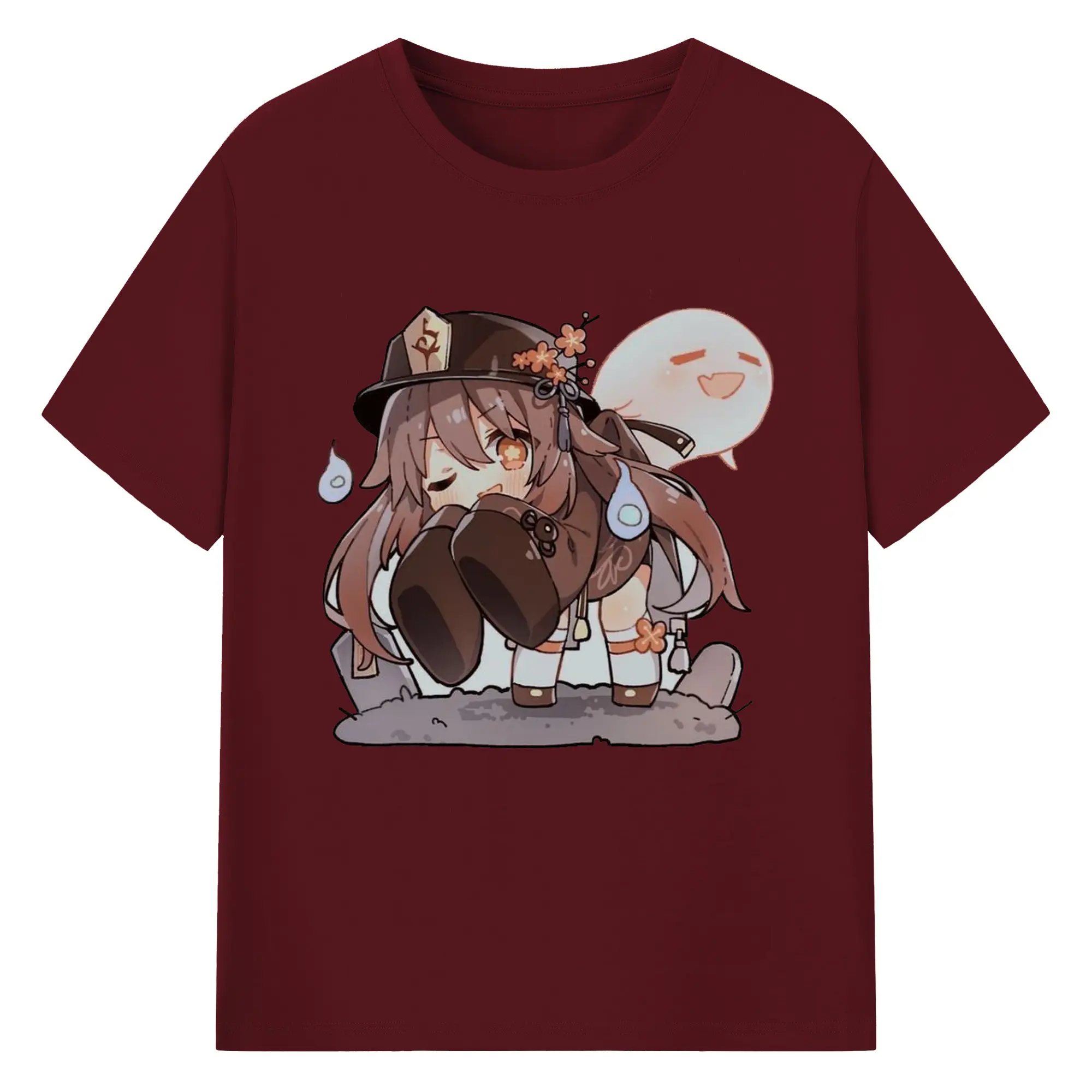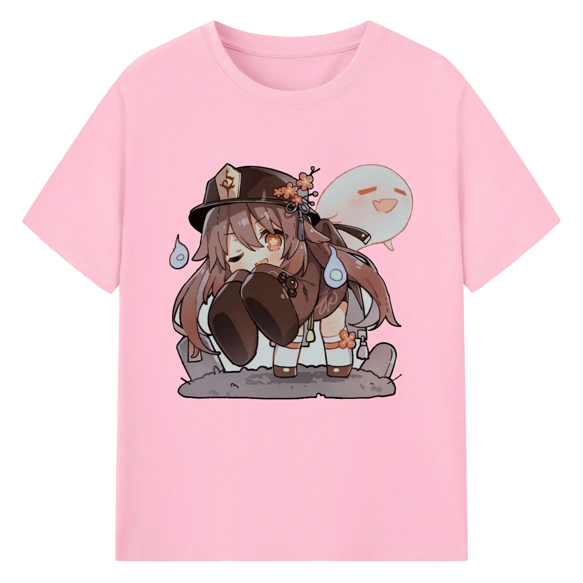 Genshin リーユエ リーユエ フータオ の幽霊 - 綿100% 半袖Tシャツ ・ フロントプリント ・ 快適 通気性 ・ 日常使い 散歩 スポーツ用