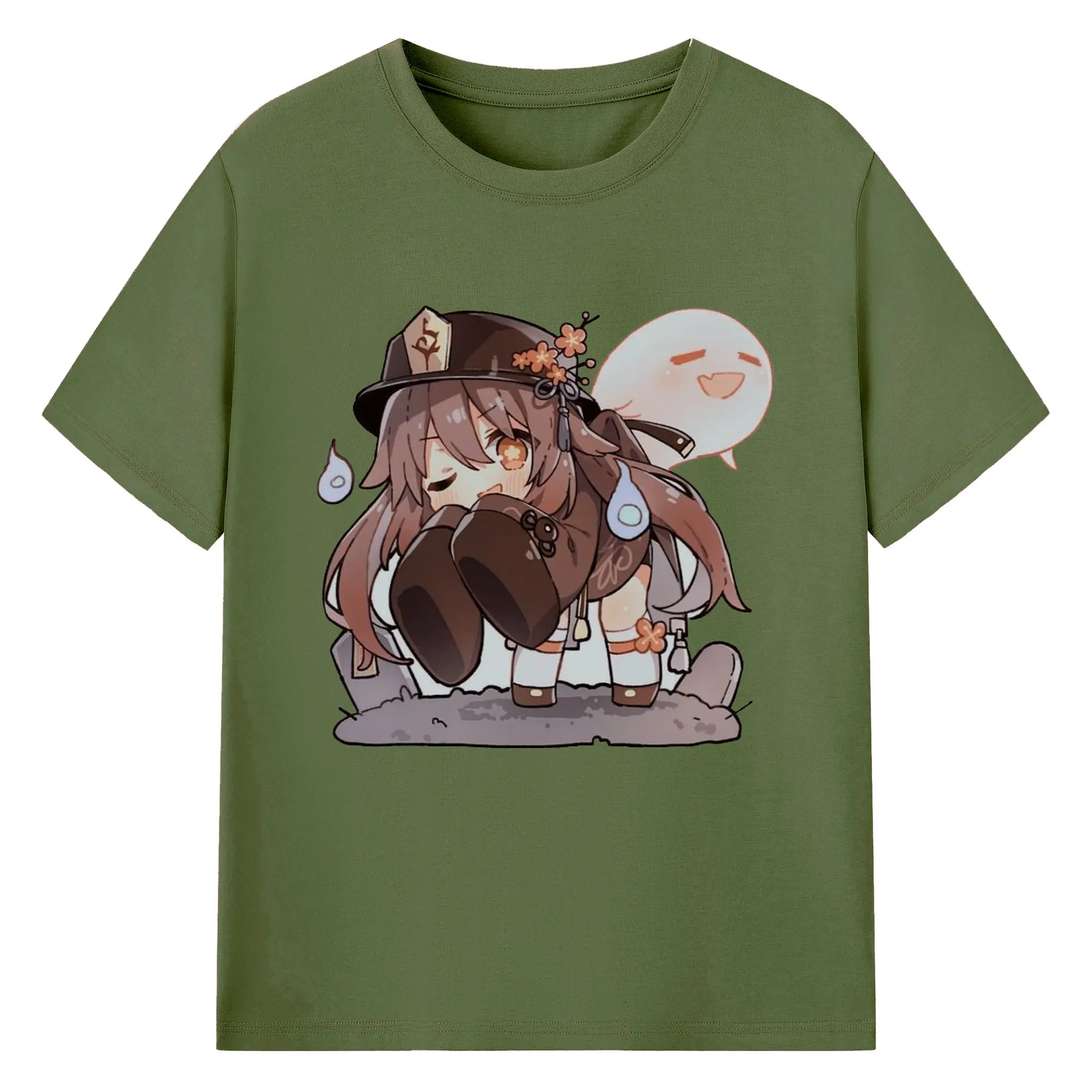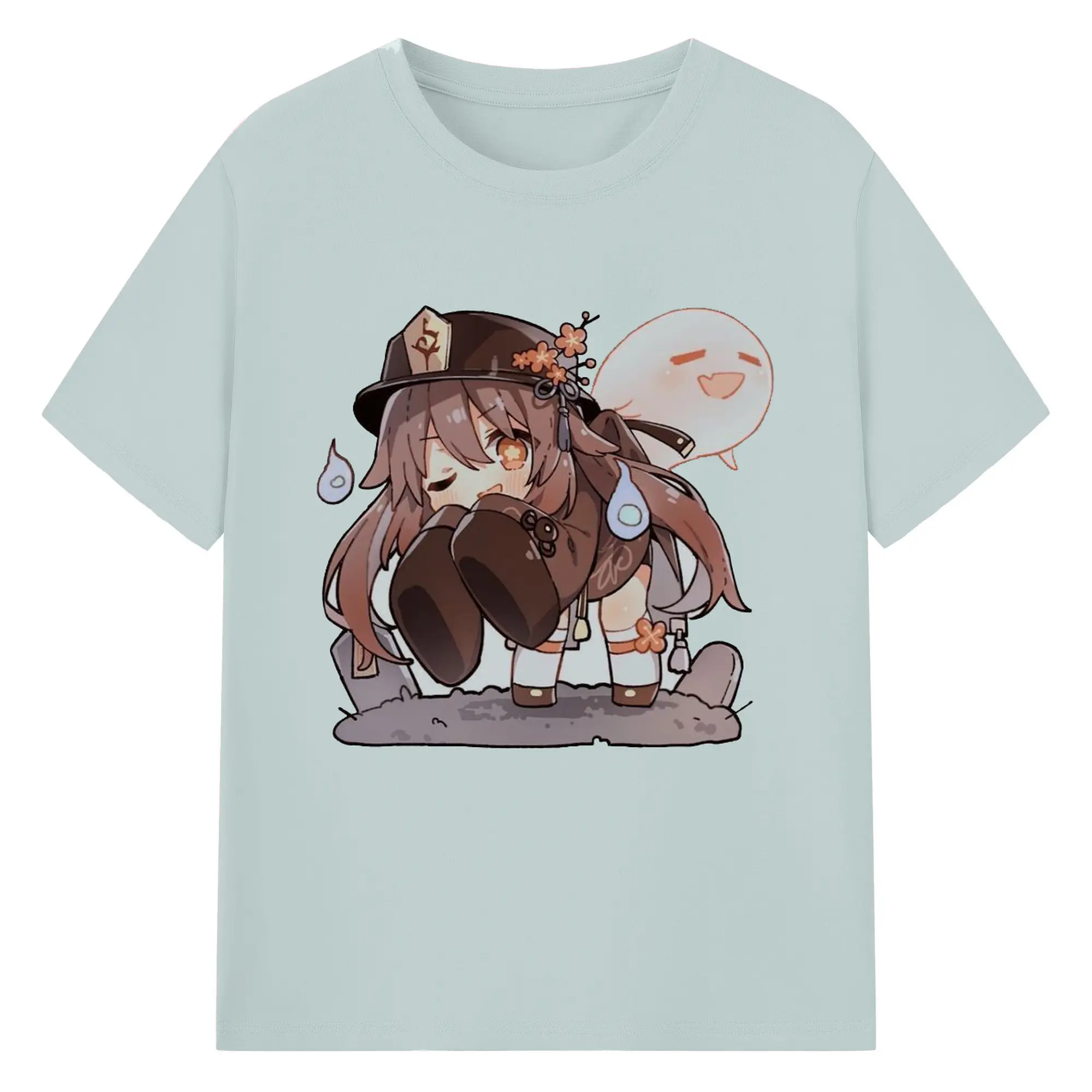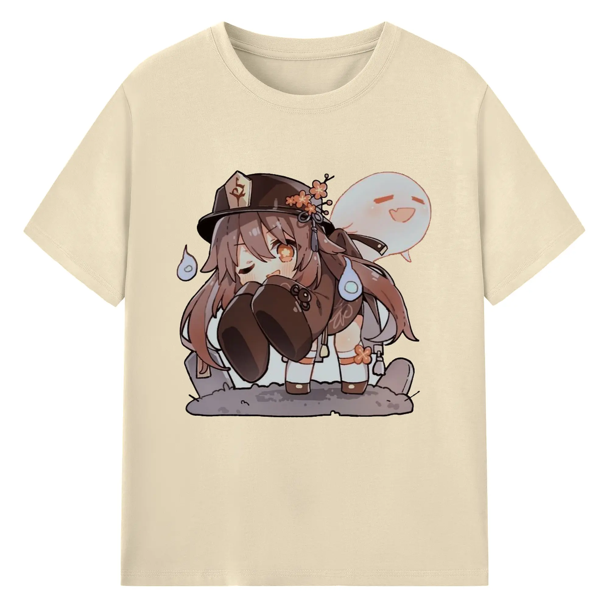 Genshin リーユエ リーユエ フータオ の幽霊 - 綿100% 半袖Tシャツ ・ フロントプリント ・ 快適 通気性 ・ 日常使い 散歩 スポーツ用