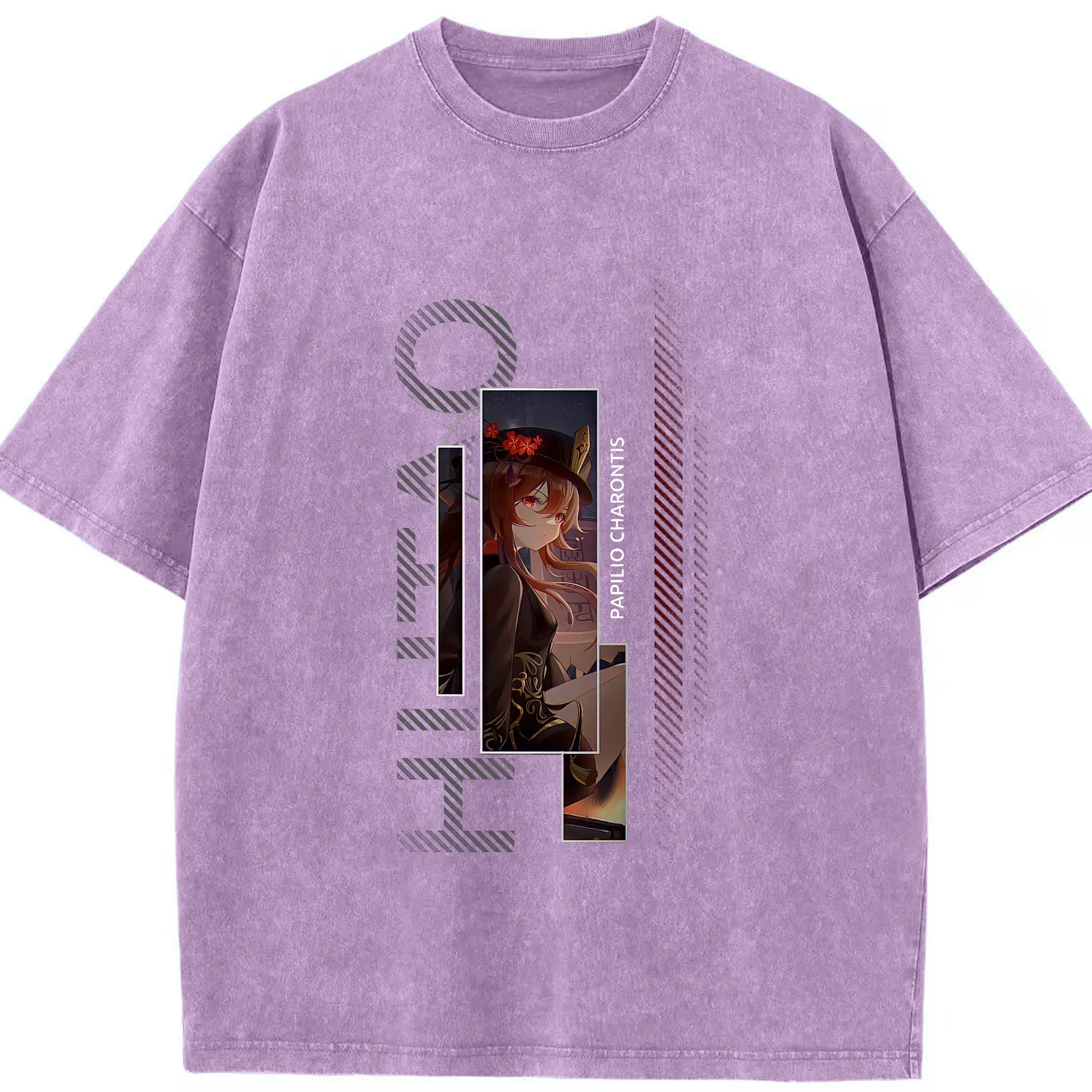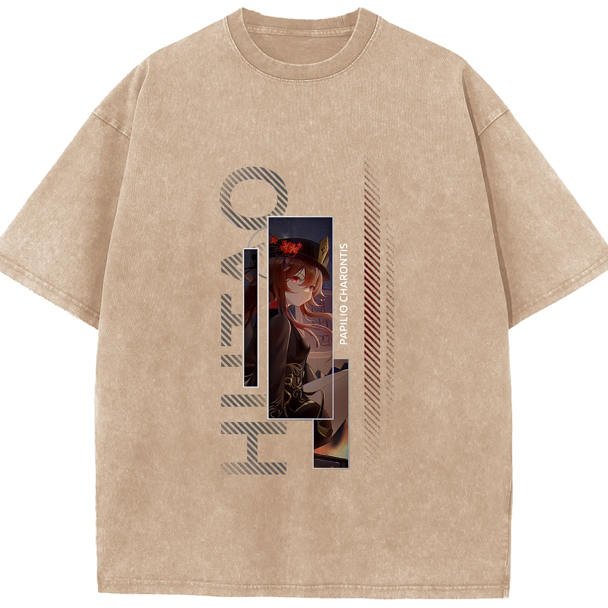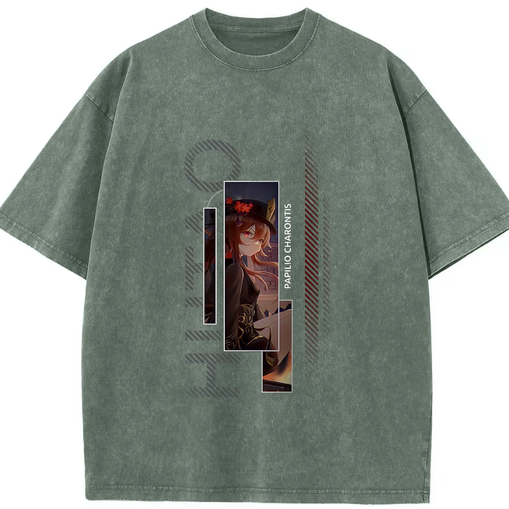 Genshin リーユエ リーユエ フータオ - 綿100% ヴィンテージ風 半袖Tシャツ ・ フロントプリント ・ 柔らか肌触り ・ 通気性 快適 ・ スポーツ カジュアル 外出用