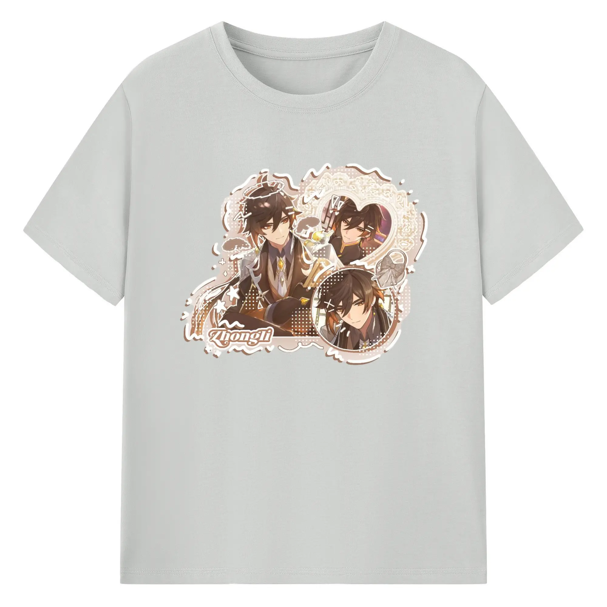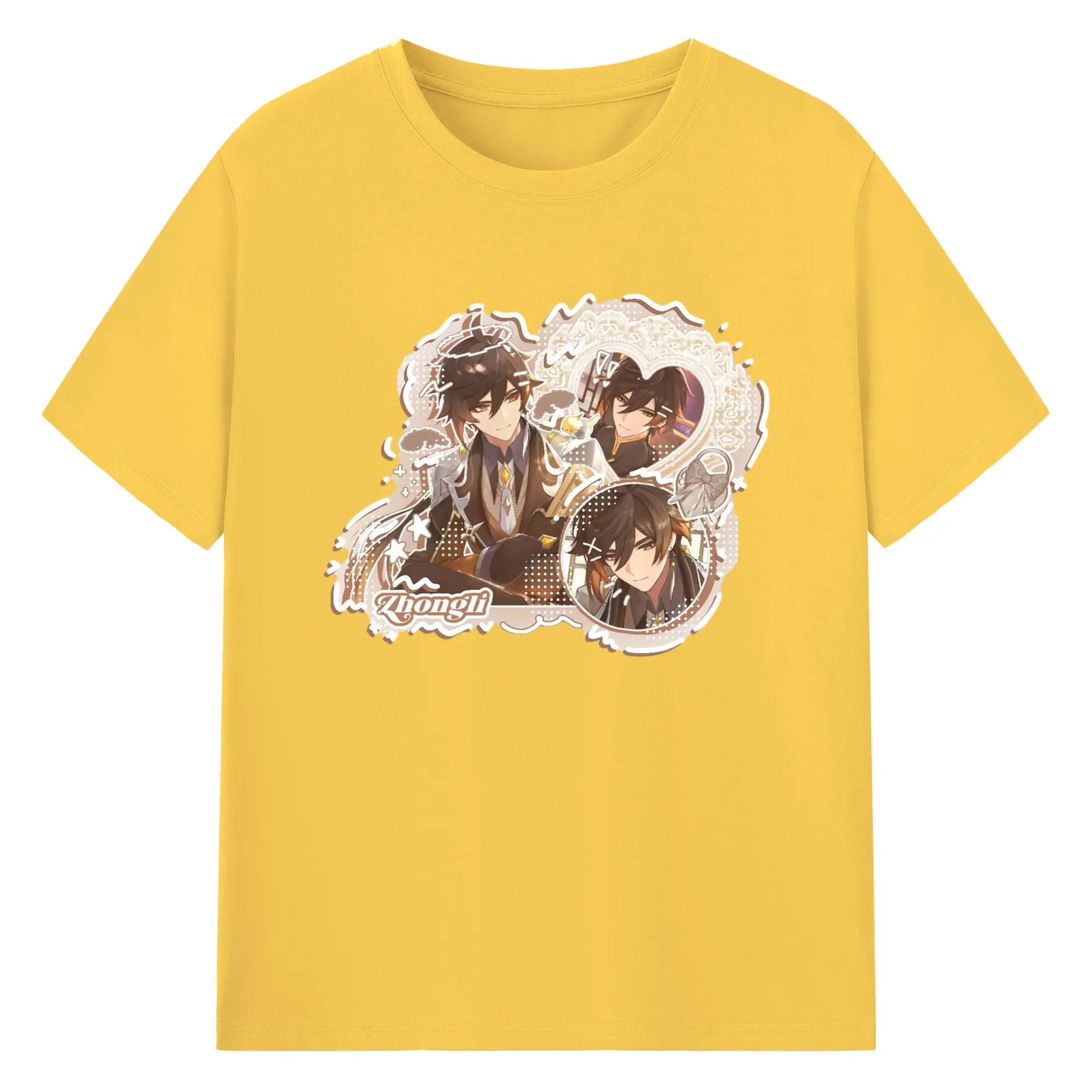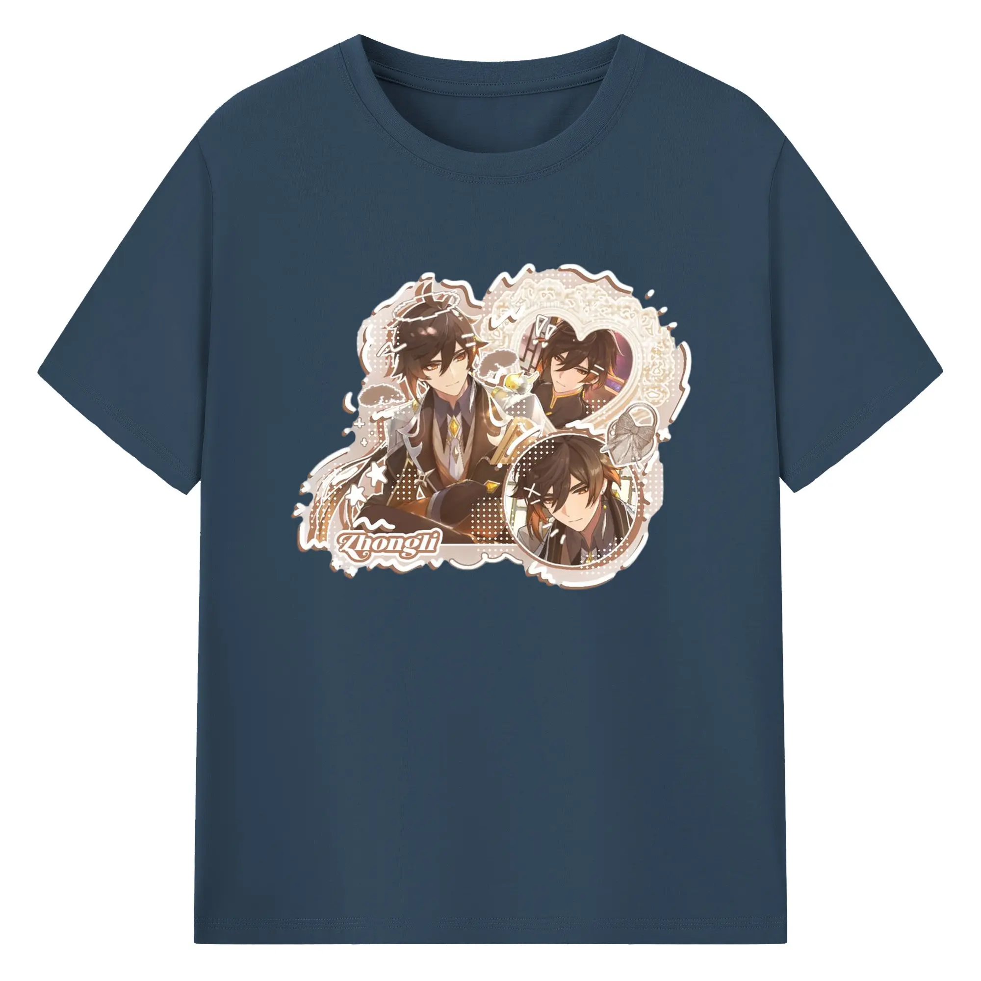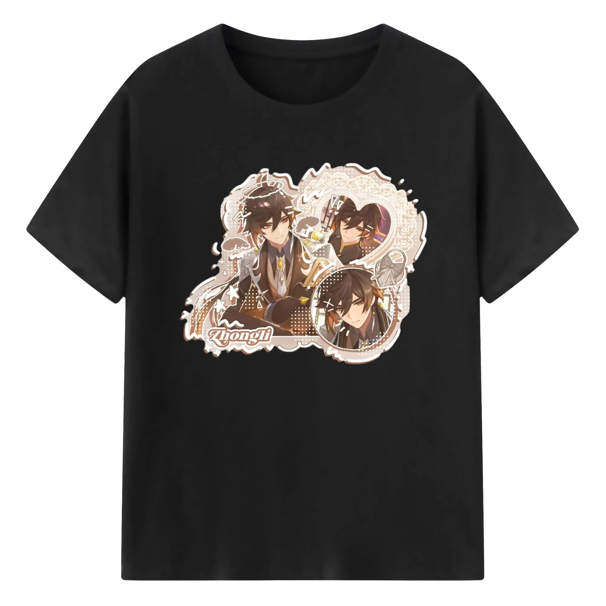 Genshin リーユエ 岩神がんしんモラクス 鍾離 - 綿100% 半袖Tシャツ ・ フロントプリント ・ 快適 通気性 ・ 日常使い 散歩 スポーツ用