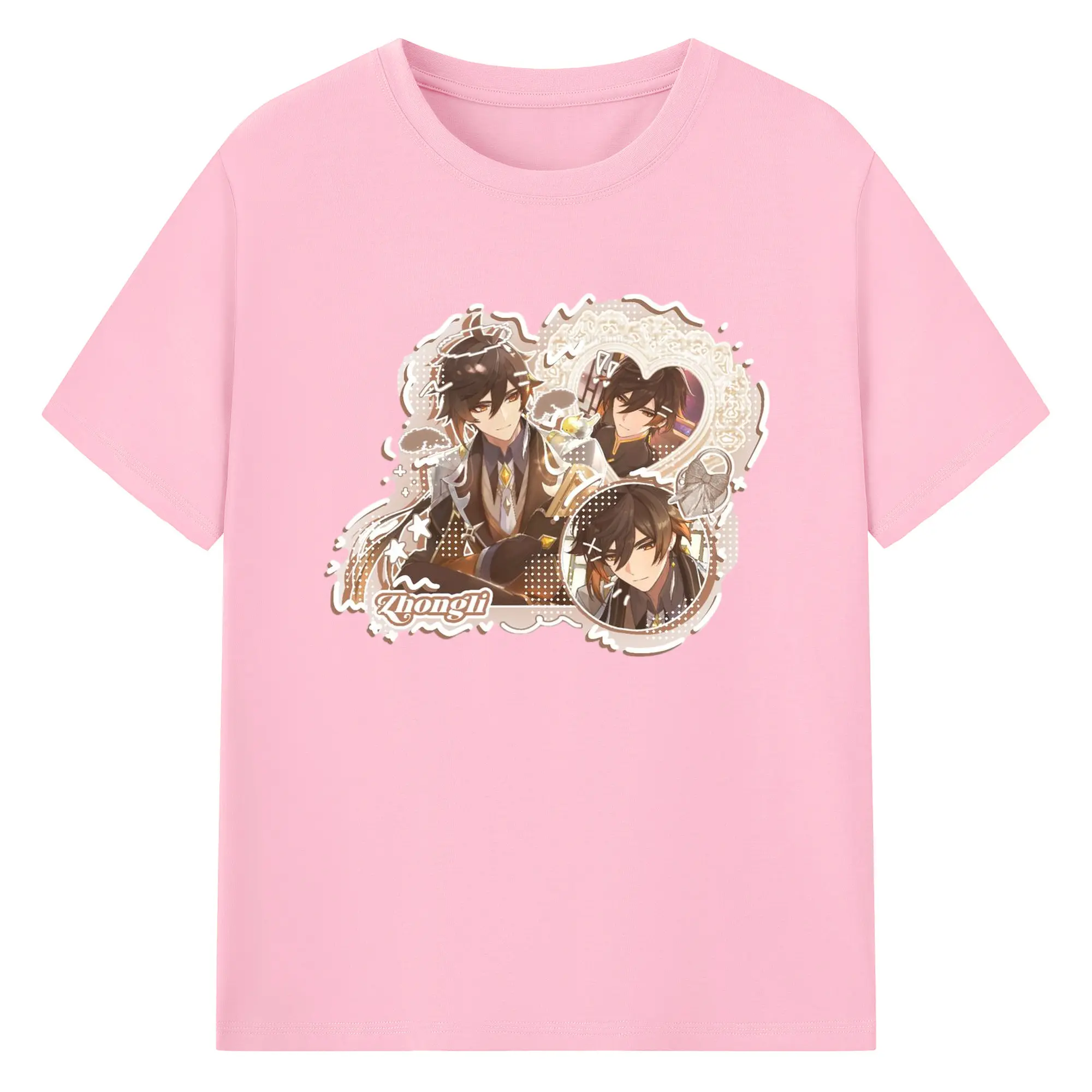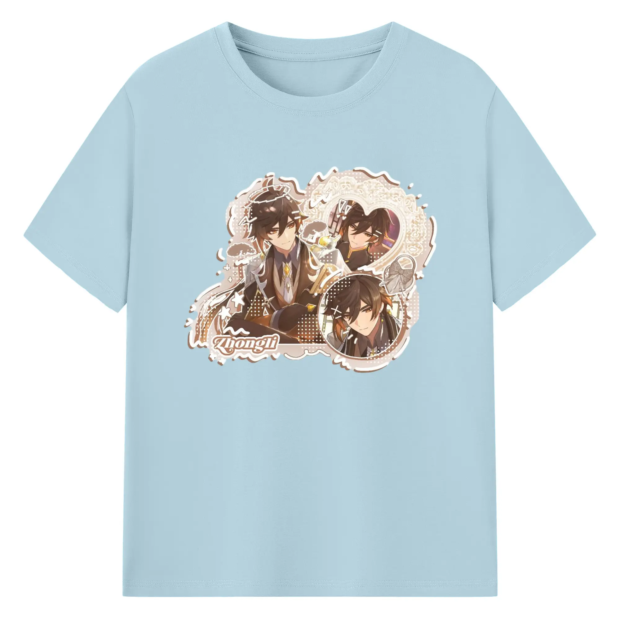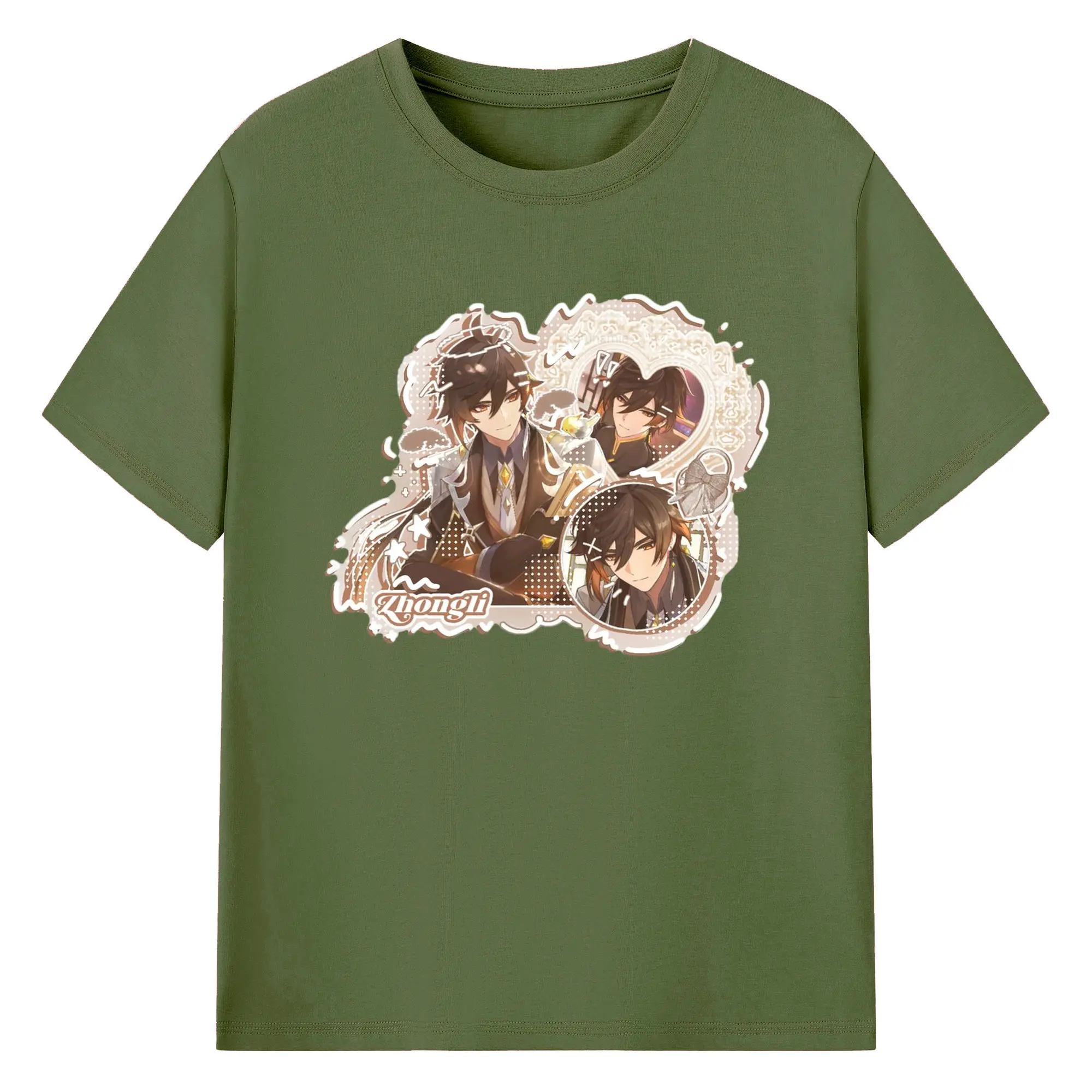 Genshin リーユエ 岩神がんしんモラクス 鍾離 - 綿100% 半袖Tシャツ ・ フロントプリント ・ 快適 通気性 ・ 日常使い 散歩 スポーツ用