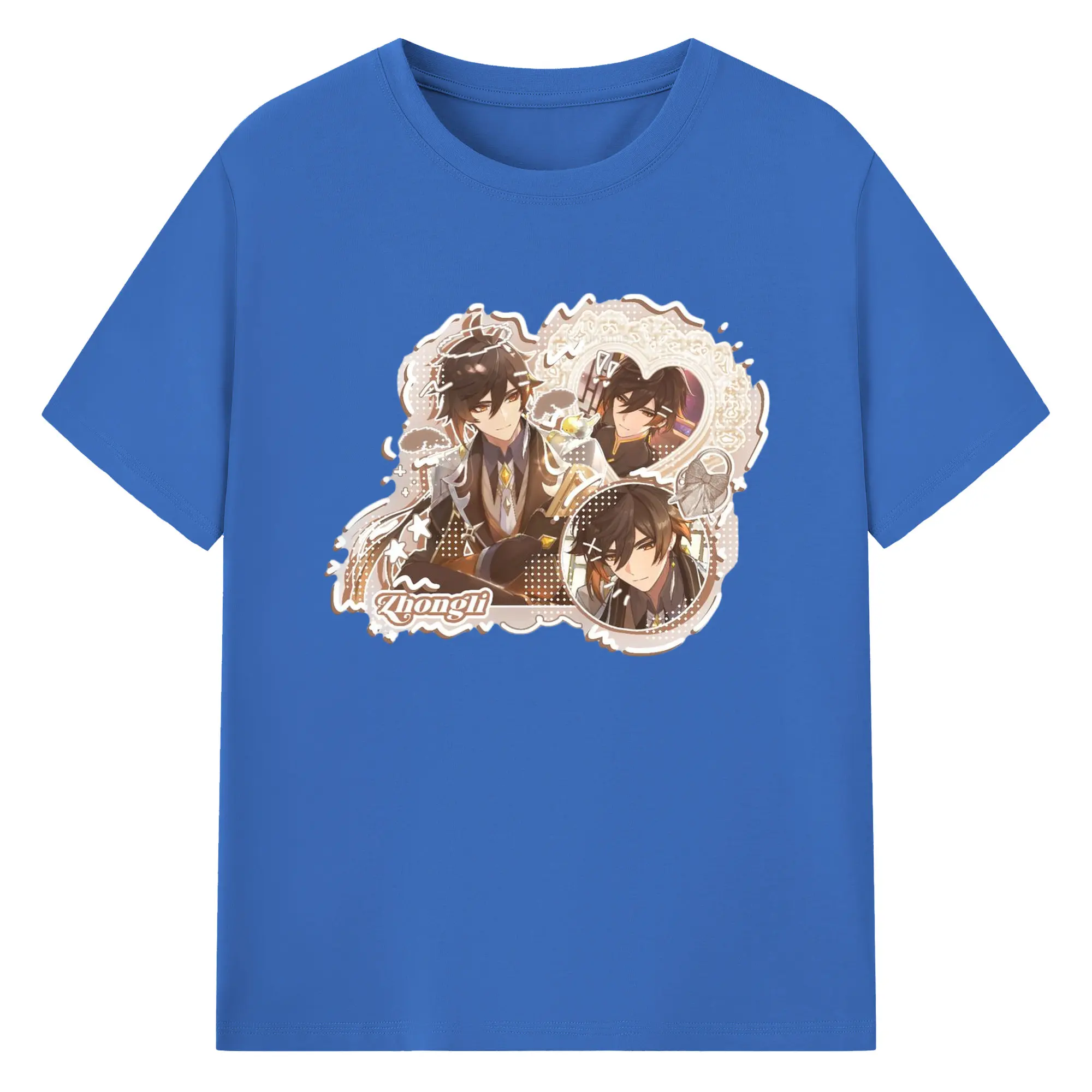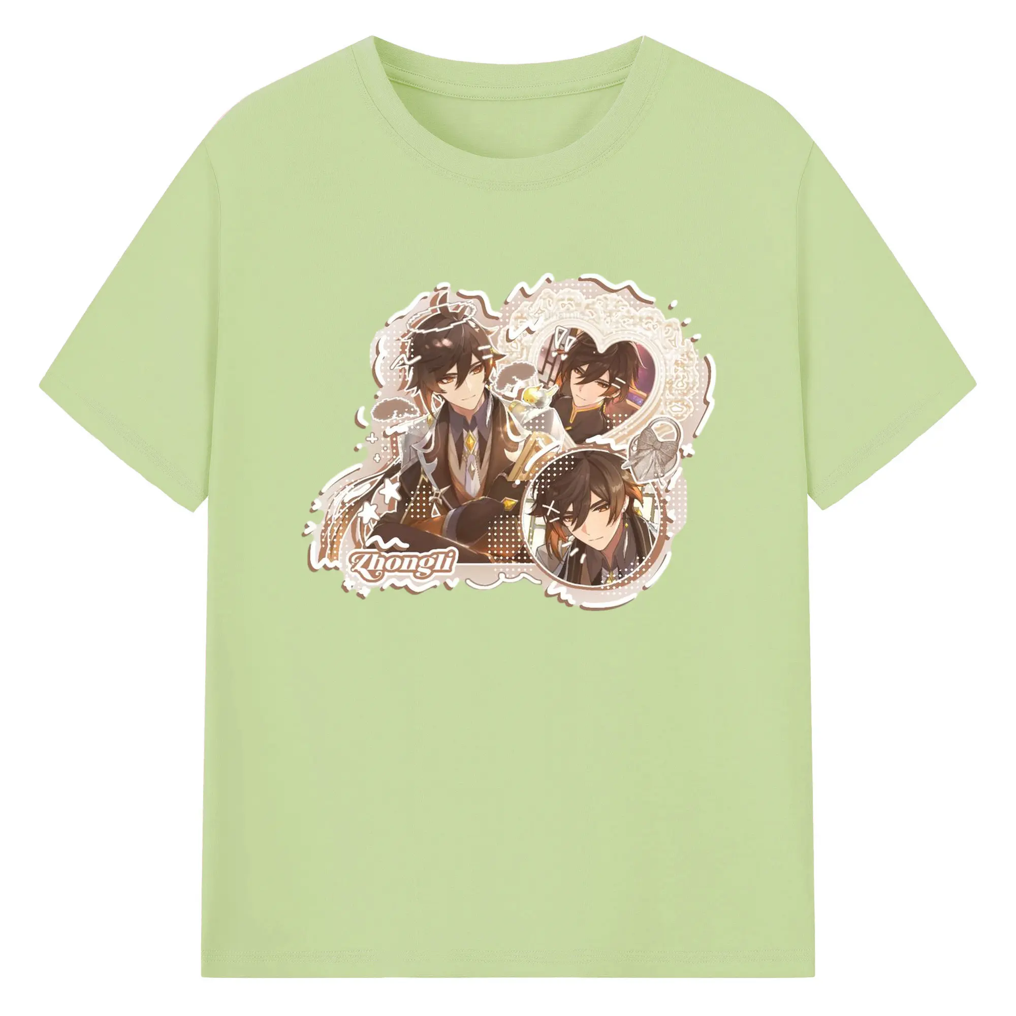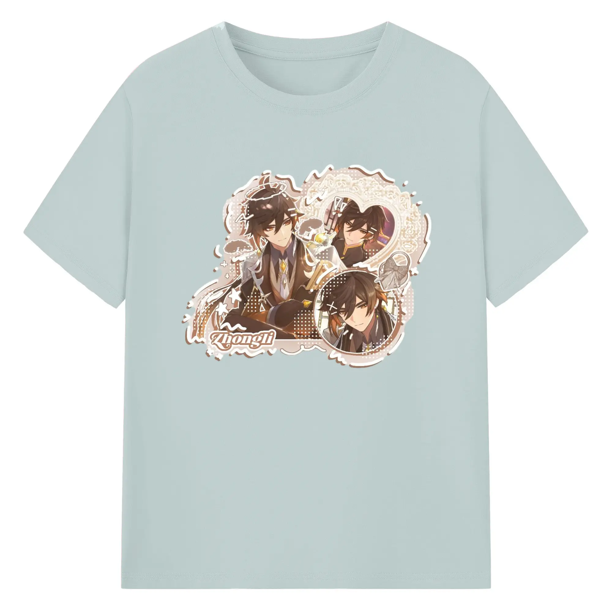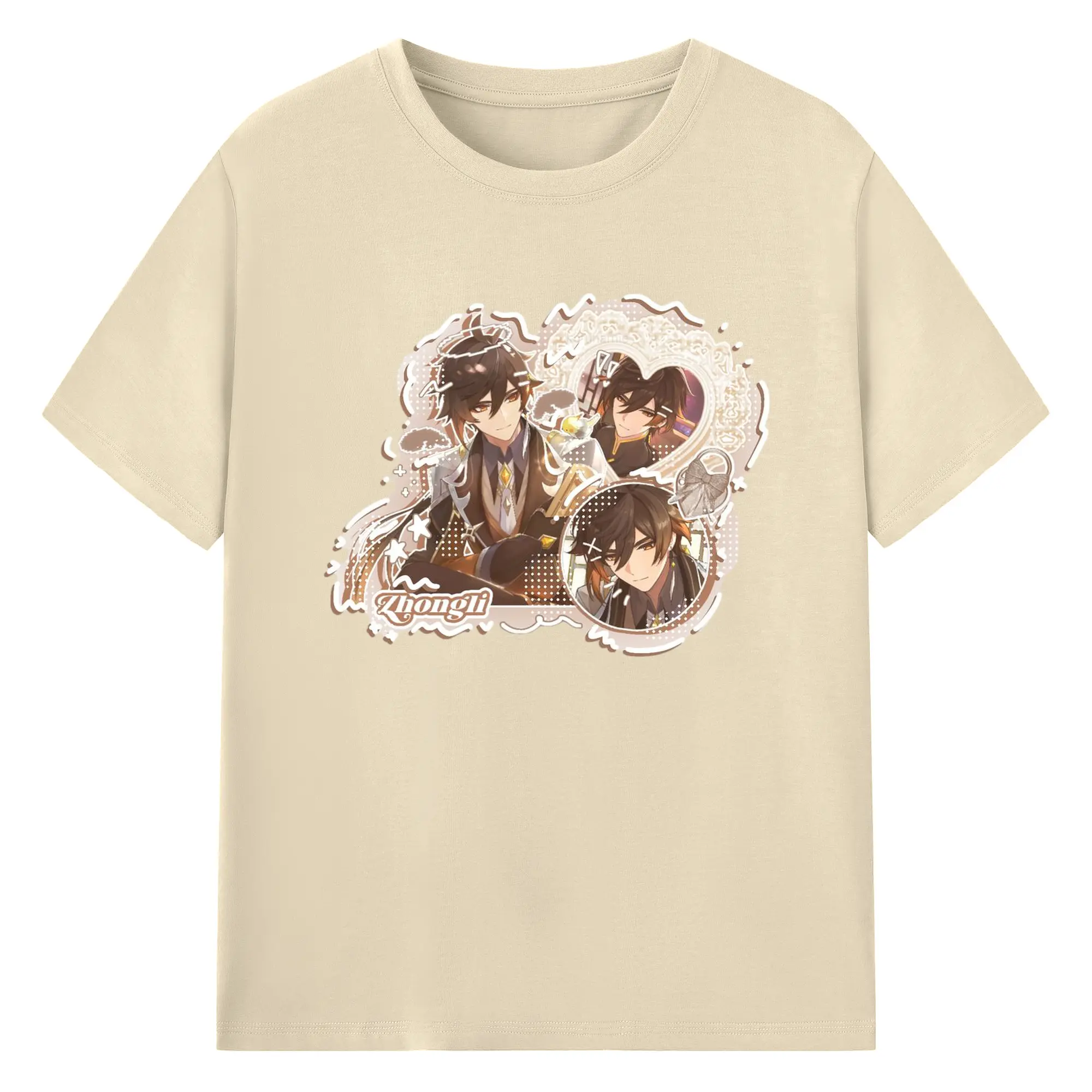 Genshin リーユエ 岩神がんしんモラクス 鍾離 - 綿100% 半袖Tシャツ ・ フロントプリント ・ 快適 通気性 ・ 日常使い 散歩 スポーツ用