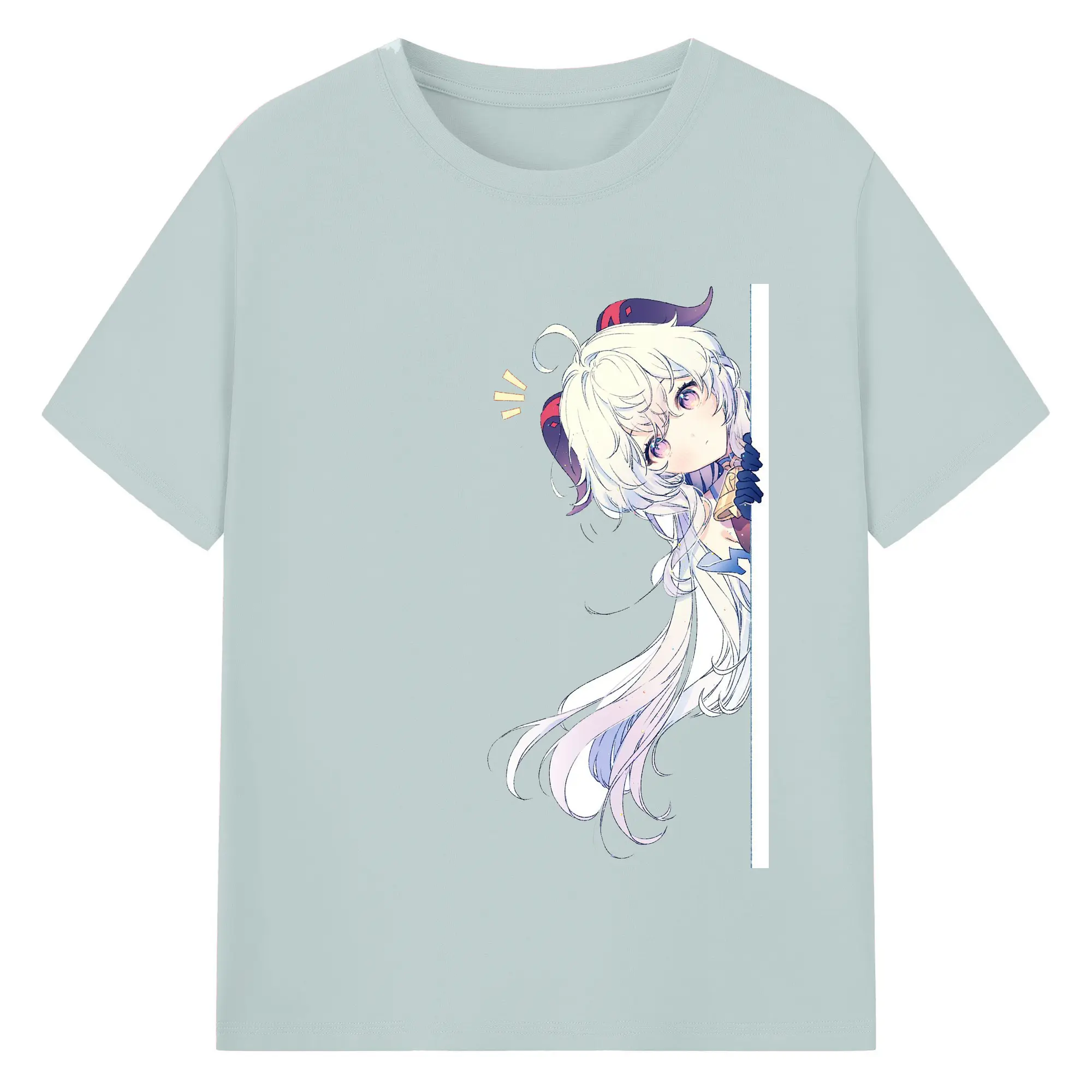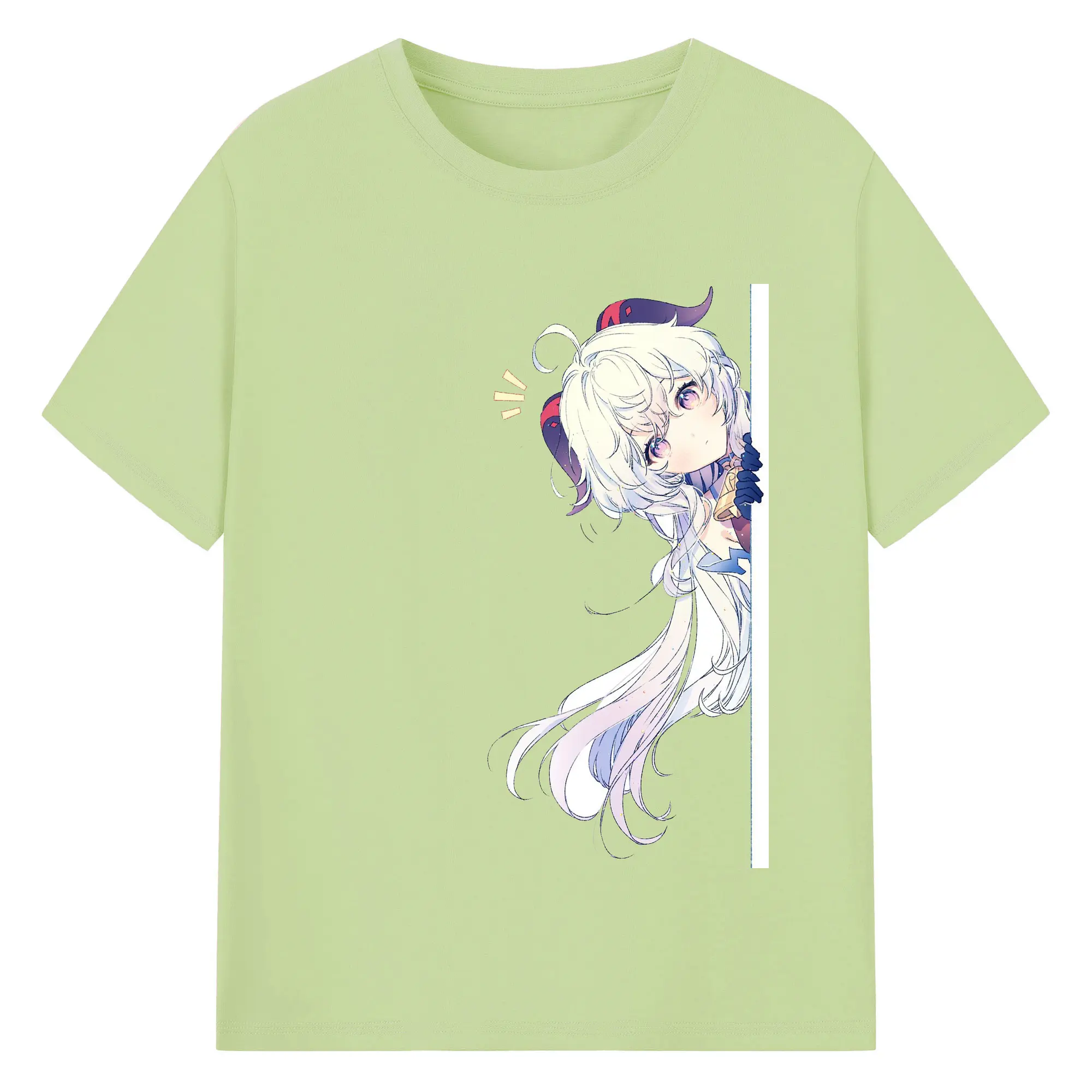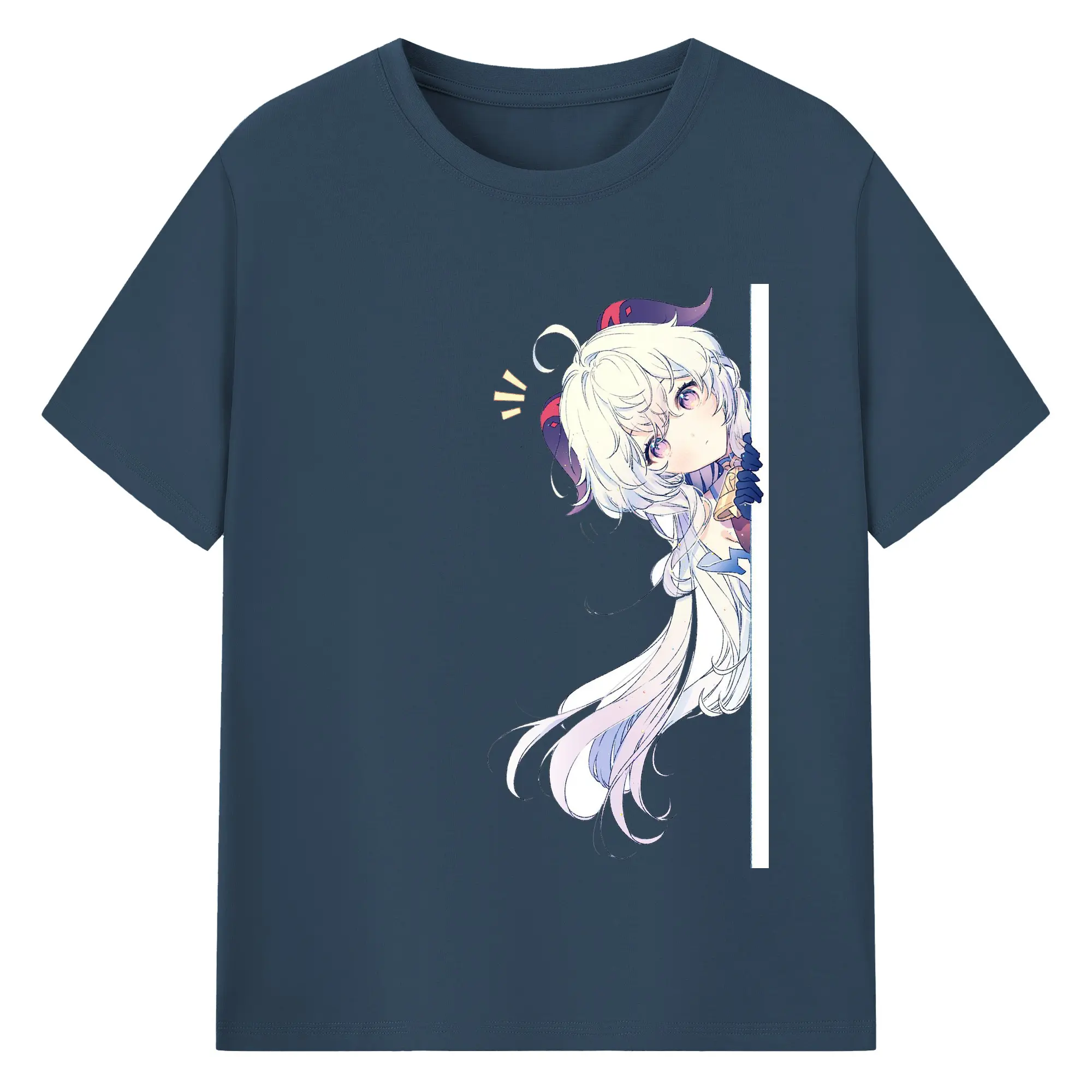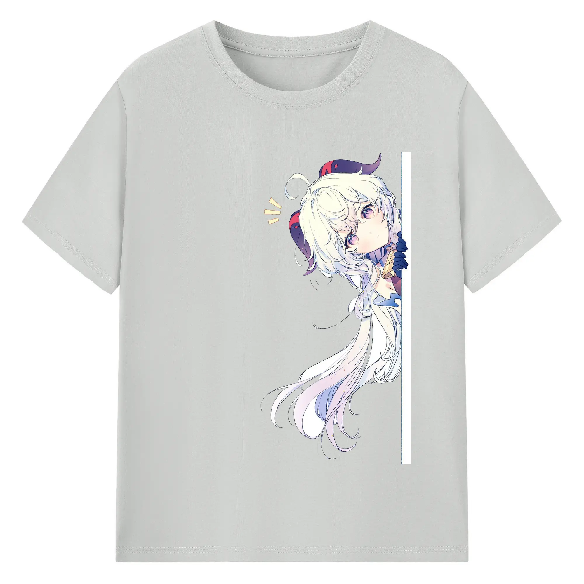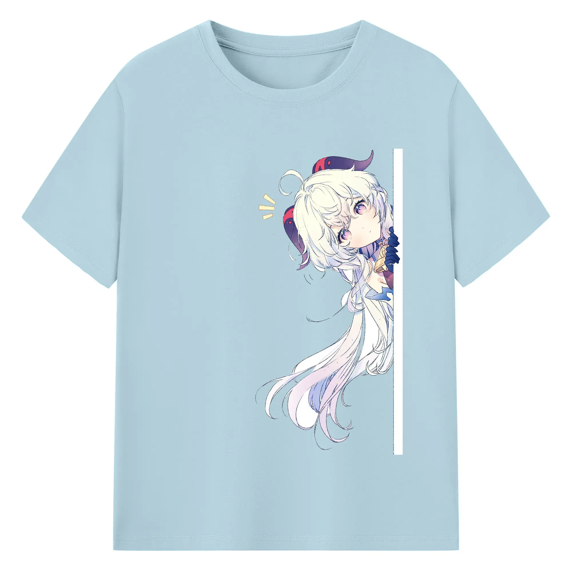 Genshin リーユエ 甘雨 見つかる瞬間 - 綿100% 半袖Tシャツ ・ フロントプリント ・ 快適 通気性 ・ 日常使い 散歩 スポーツ用