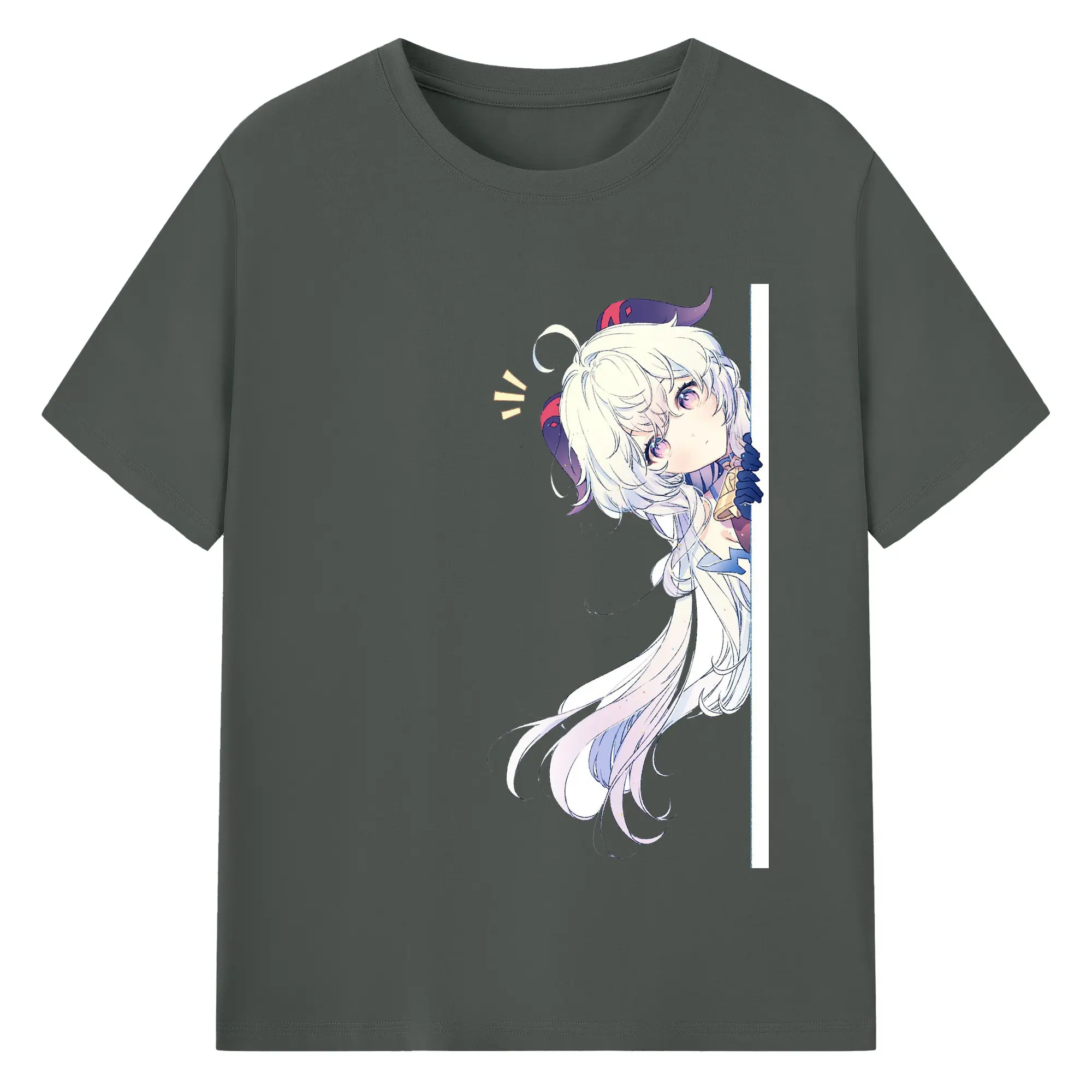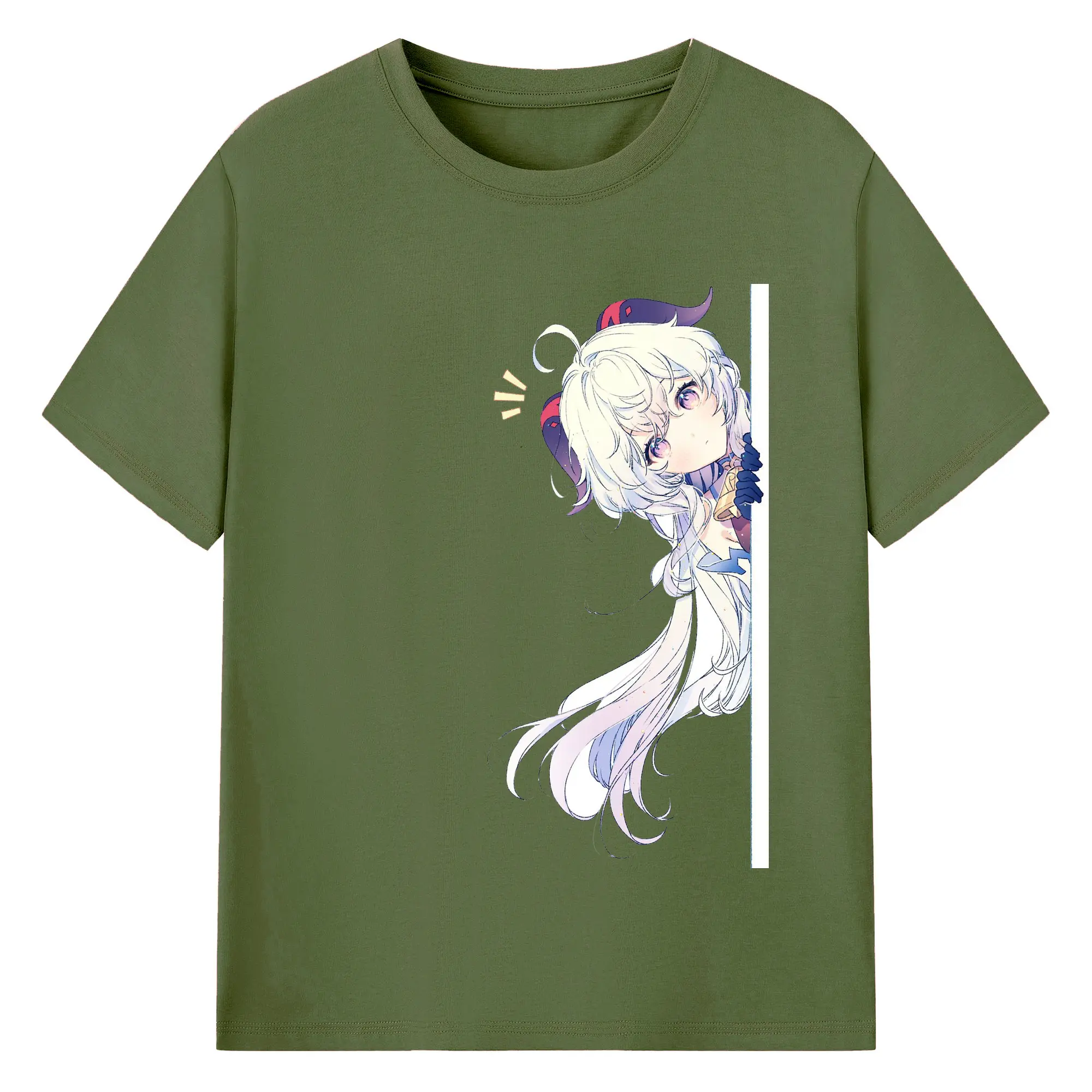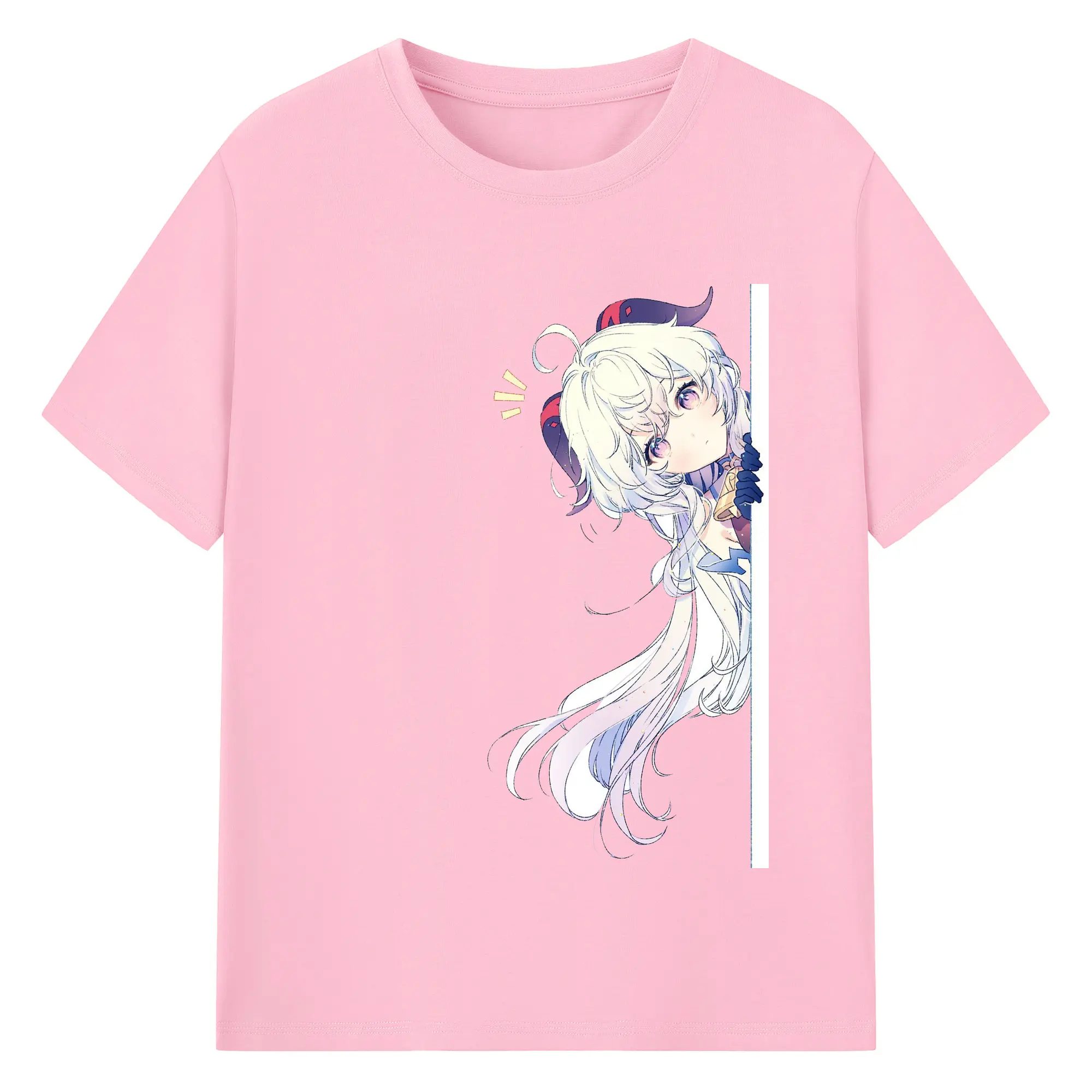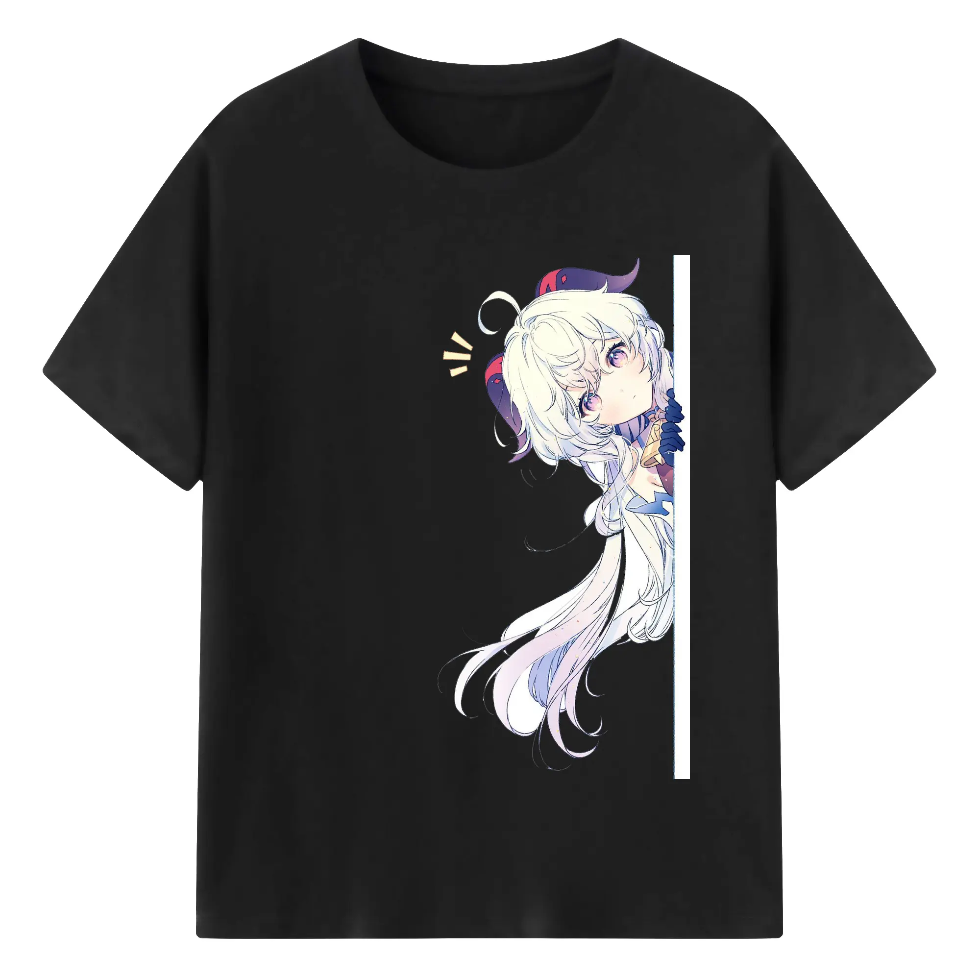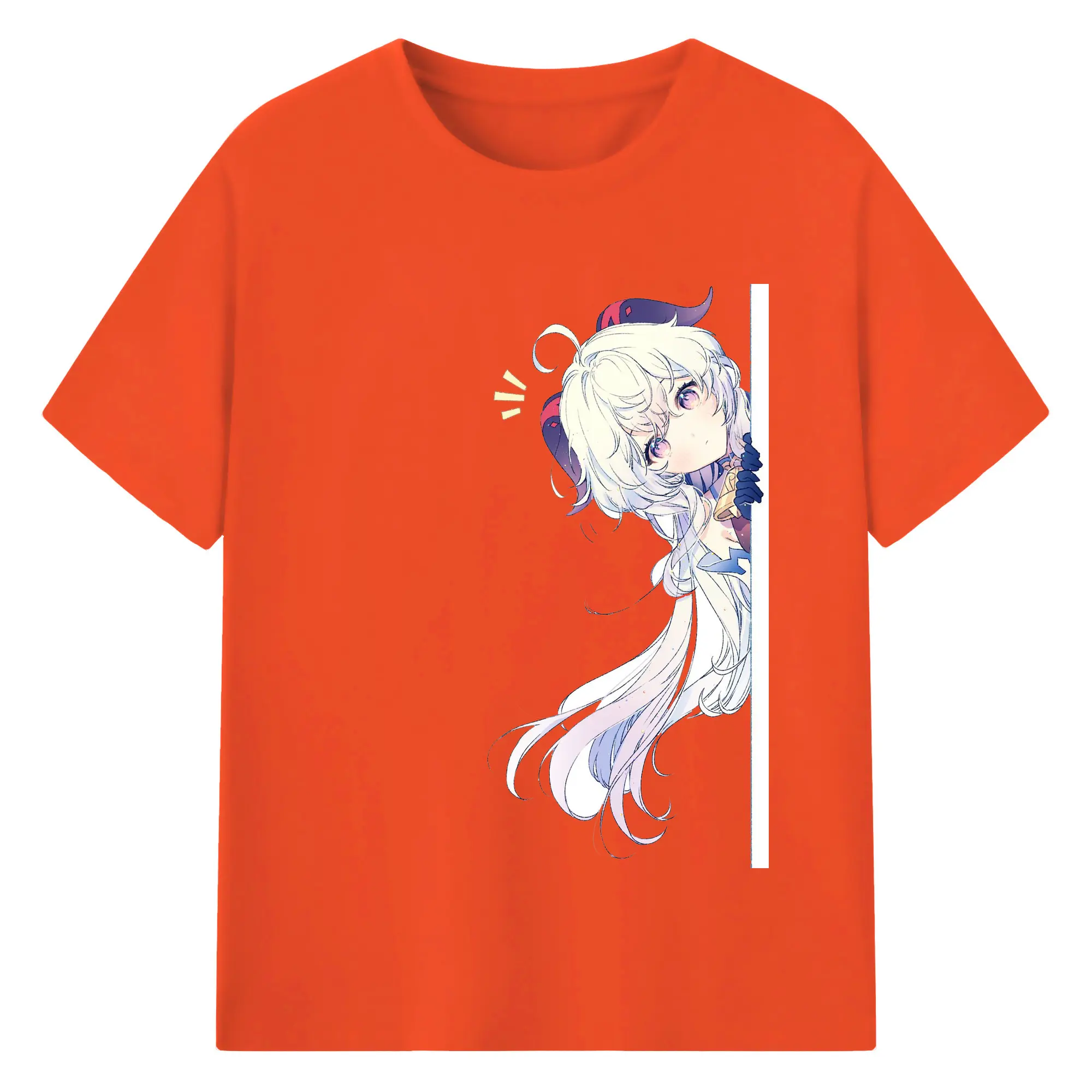 Genshin リーユエ 甘雨 見つかる瞬間 - 綿100% 半袖Tシャツ ・ フロントプリント ・ 快適 通気性 ・ 日常使い 散歩 スポーツ用