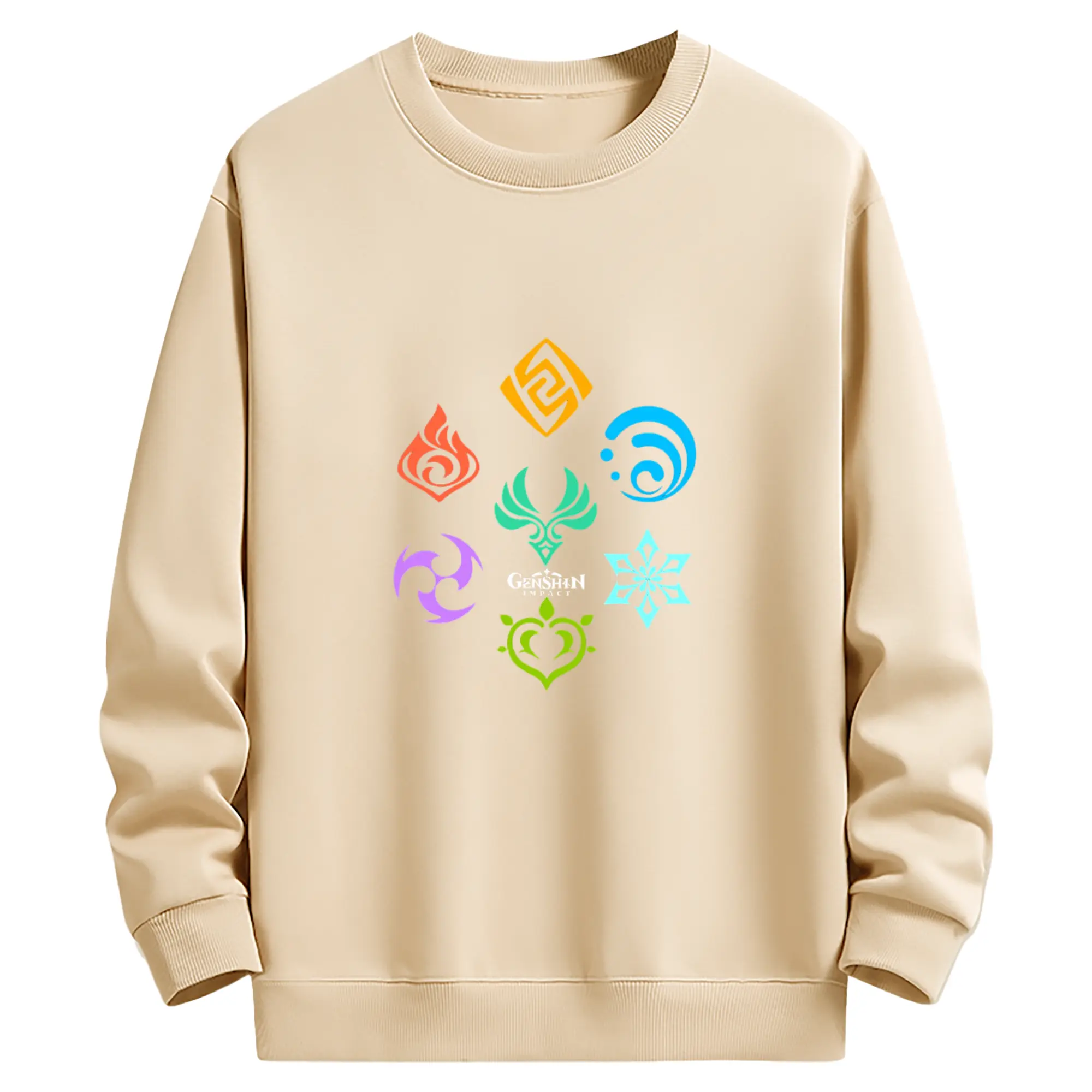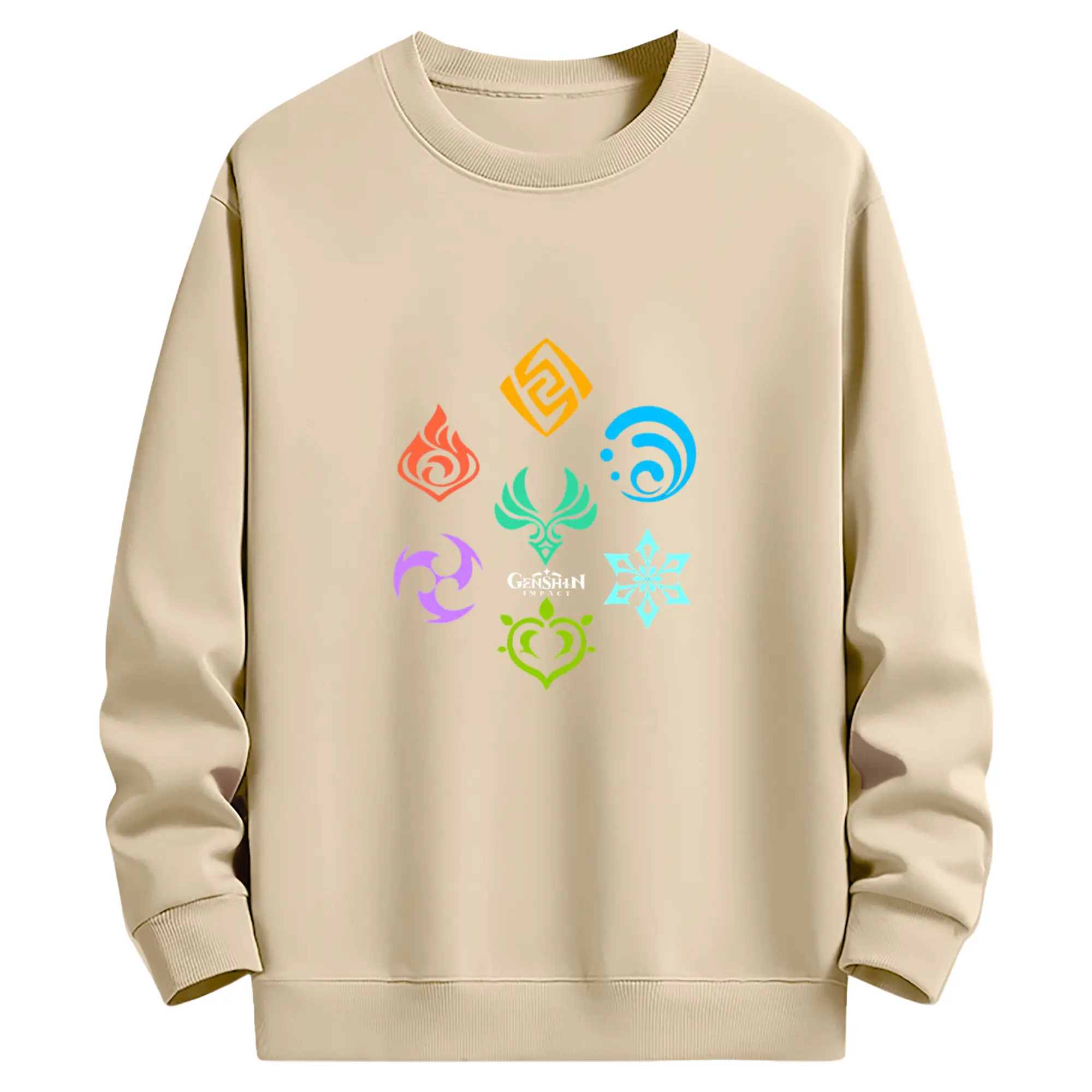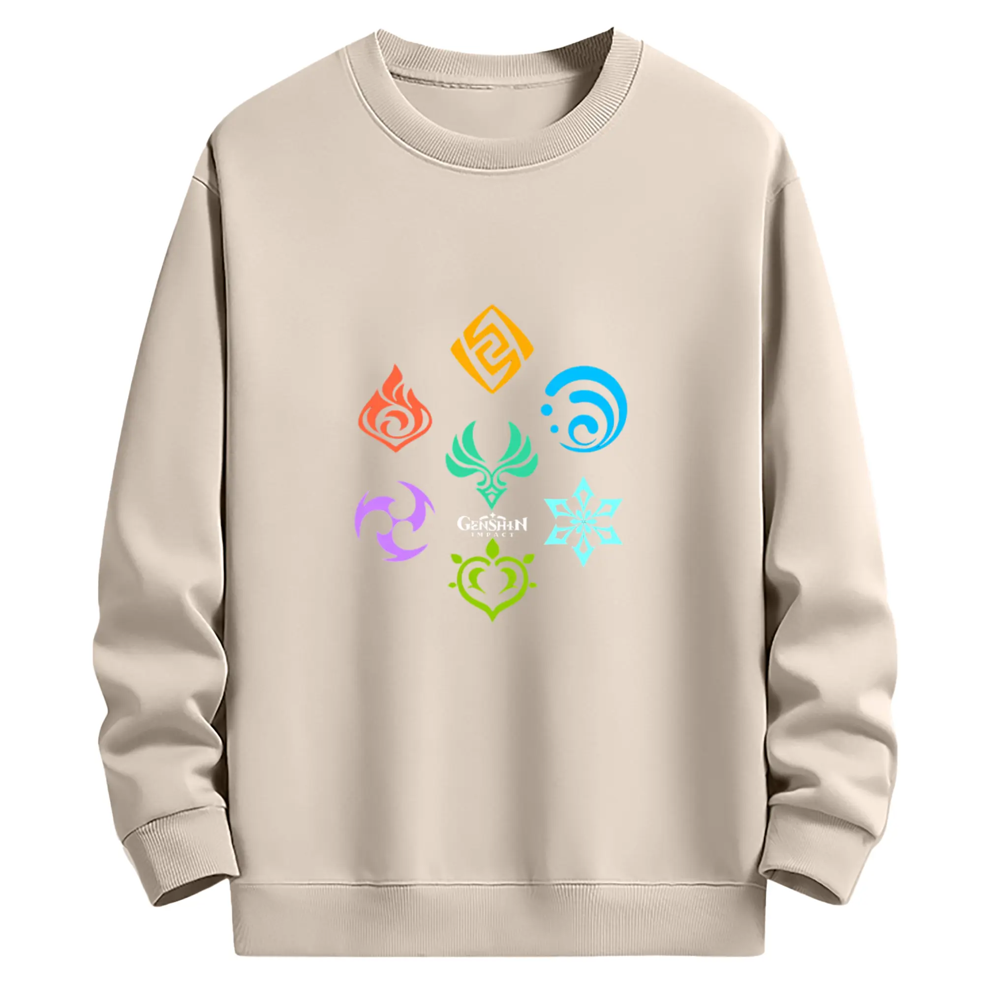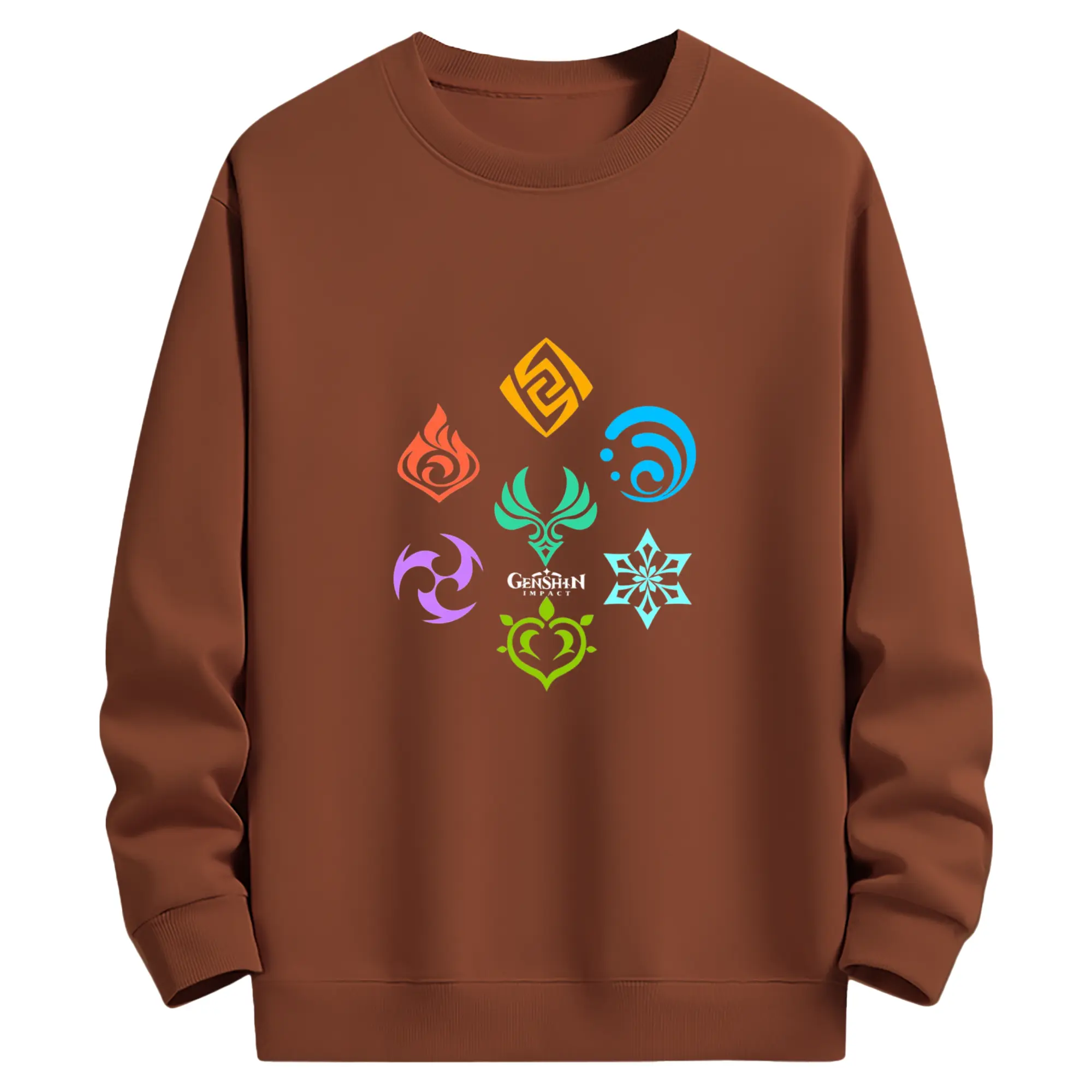 Genshin 原神の七元素ロゴ - 高品質 クルーネック スウェット ・ コットン59% ポリエステル41% ・ ユニセックス 長袖 トレーナー ・ カジュアル デイリー スポーツ 散歩用
