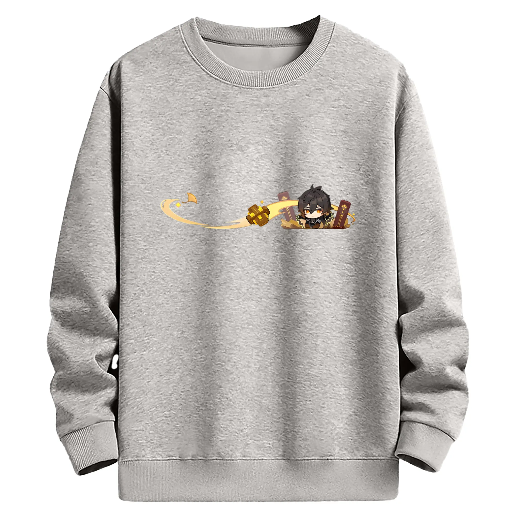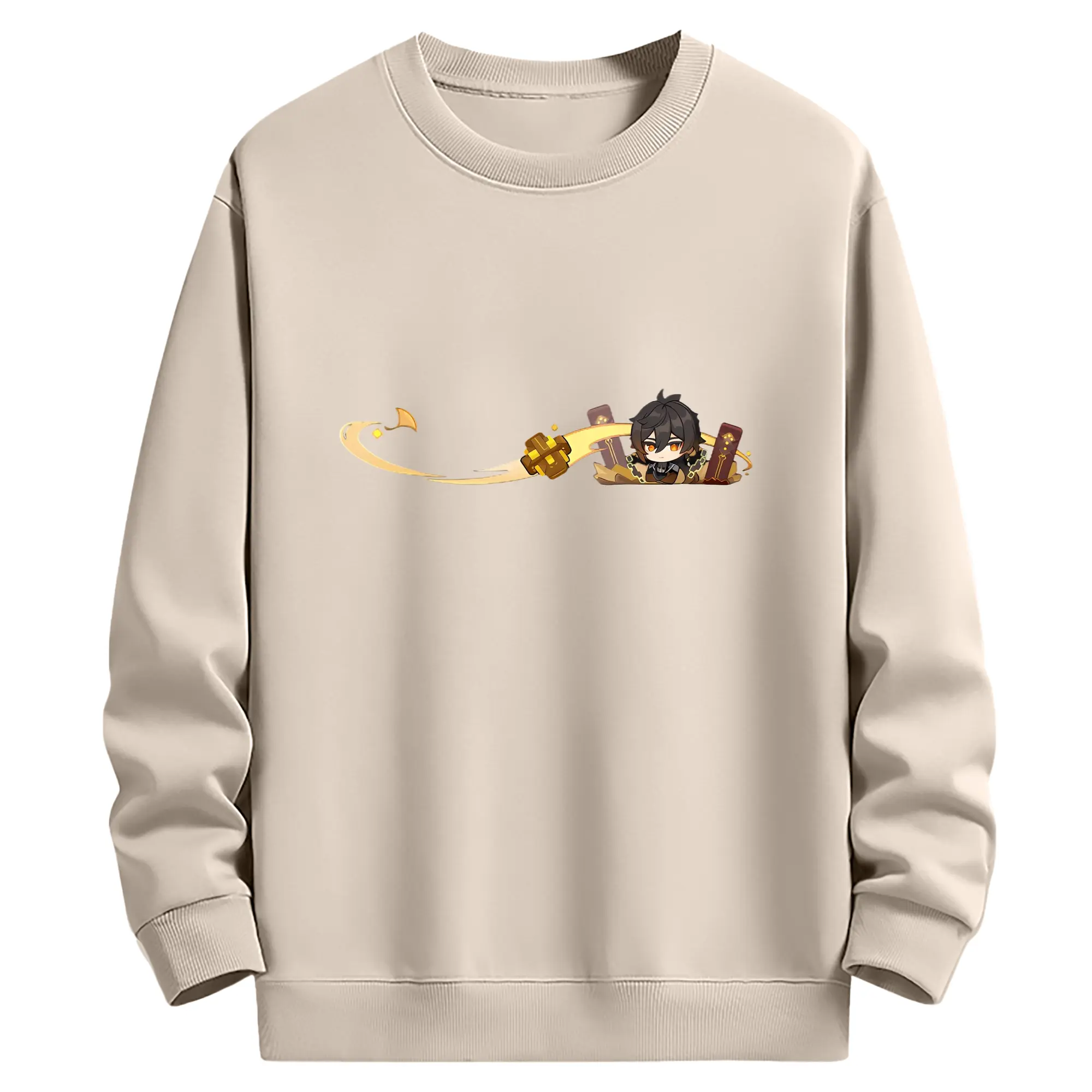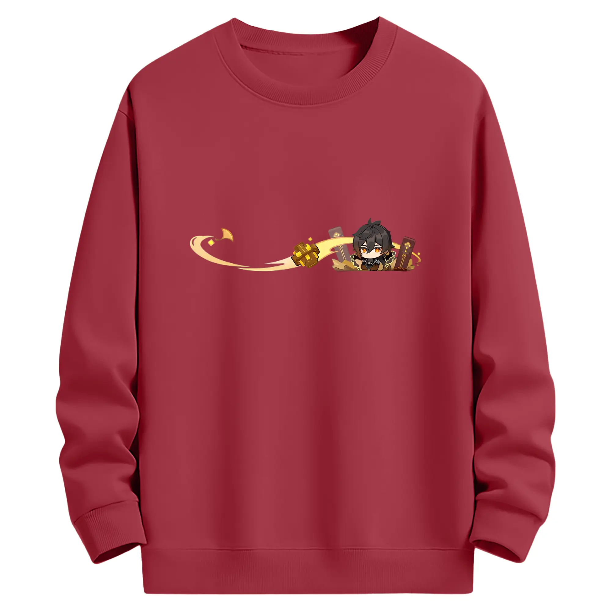 Genshin 岩神がんしんモラクス ショウリ - 高品質 クルーネック スウェット ・ コットン59% ポリエステル41% ・ ユニセックス 長袖 トレーナー ・ カジュアル デイリー スポーツ 散歩用