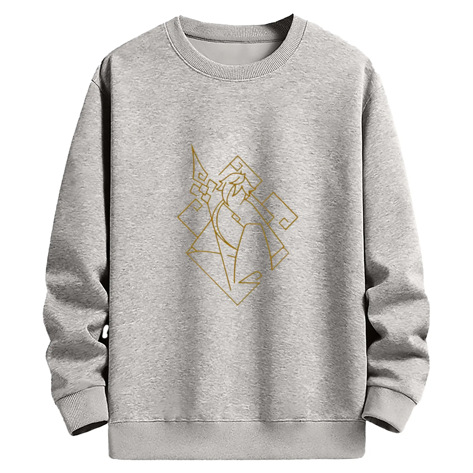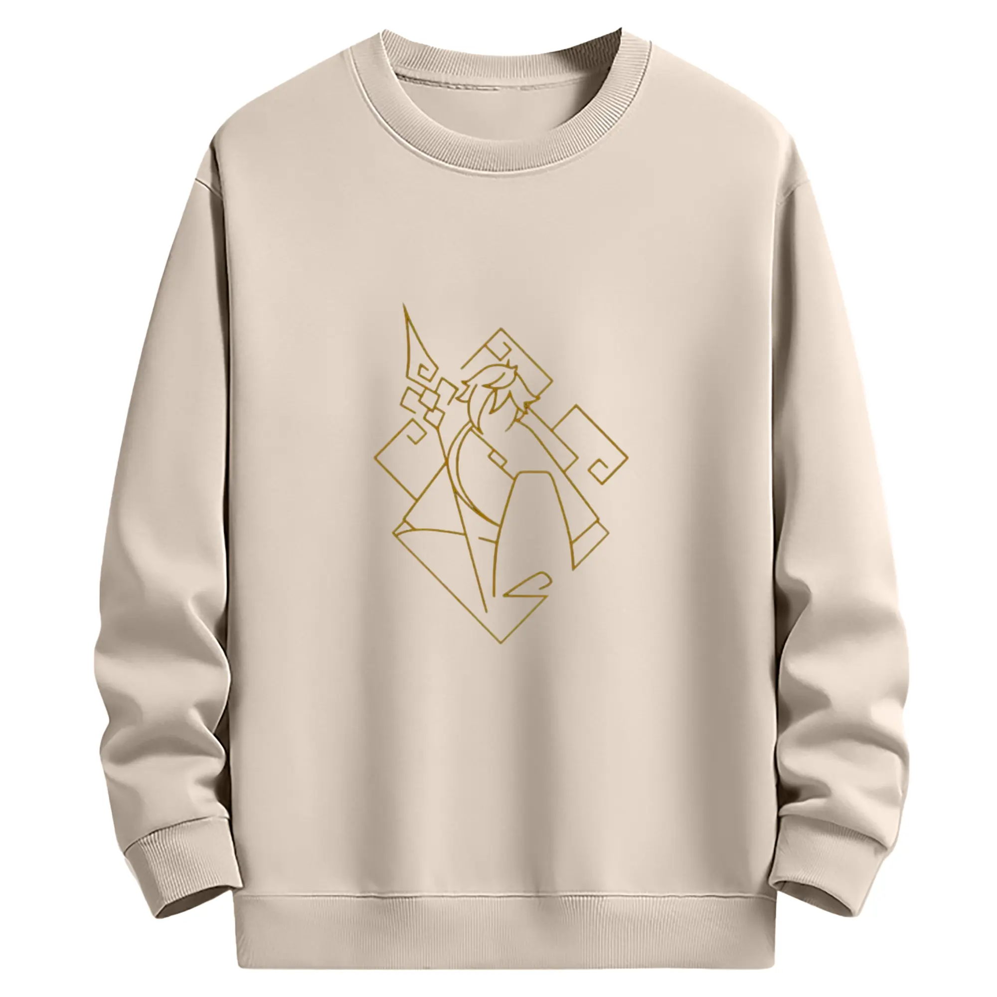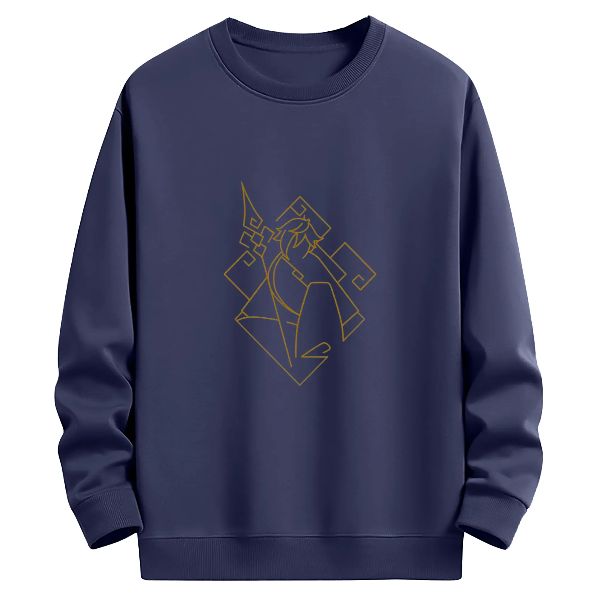 Genshin 岩神がんしんモラクス ショウリ - 高品質 クルーネック スウェット ・ コットン59% ポリエステル41% ・ ユニセックス 長袖 トレーナー ・ カジュアル デイリー スポーツ 散歩用