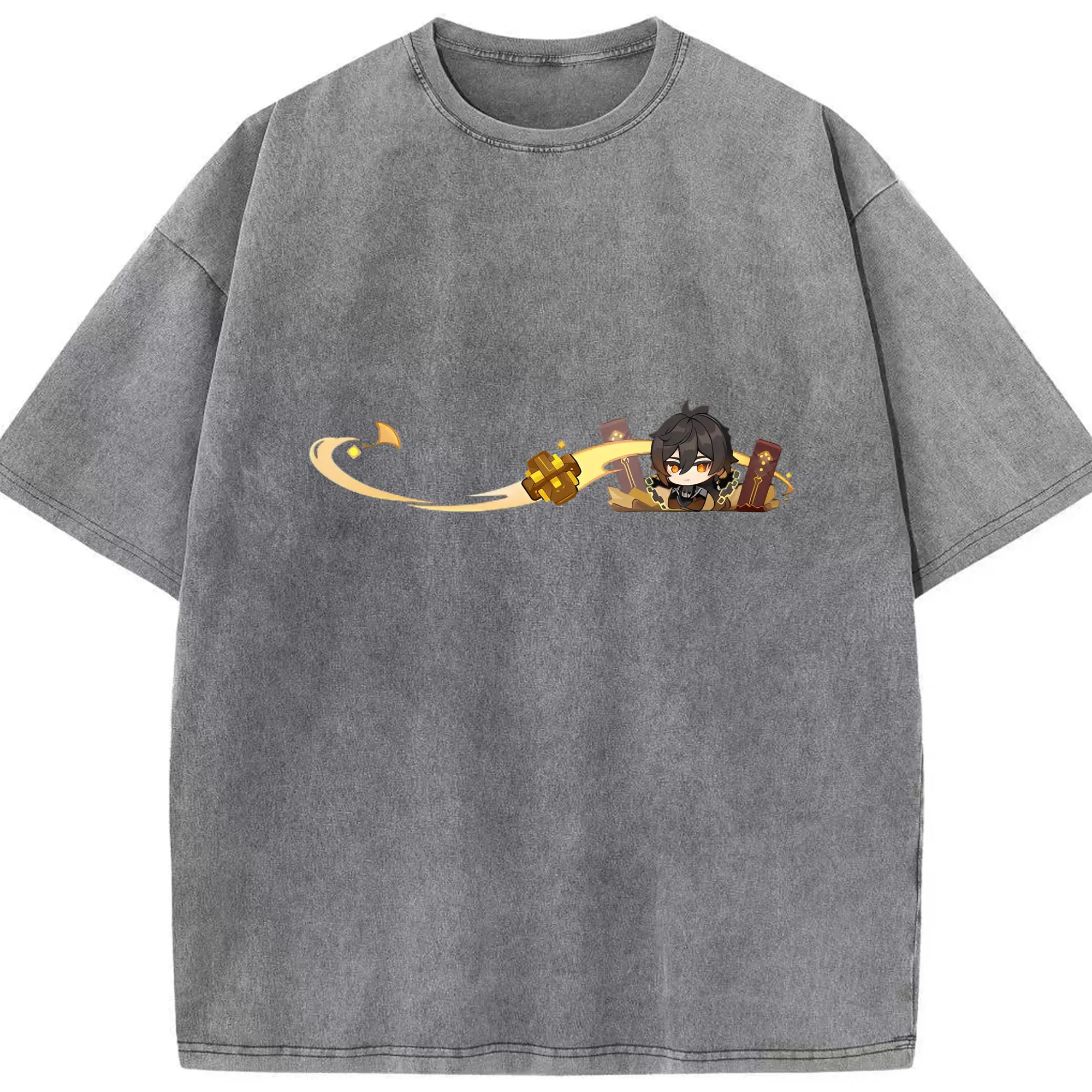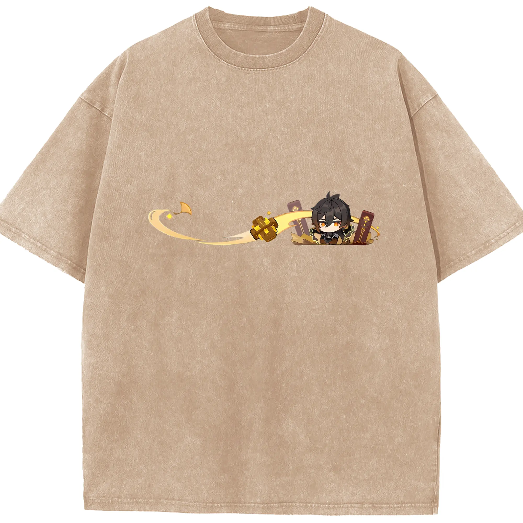 Genshin 岩神がんしんモラクス ショウリ - 綿100% ヴィンテージ風 半袖Tシャツ ・ フロントプリント ・ 柔らか肌触り ・ 通気性 快適 ・ スポーツ カジュアル 外出用