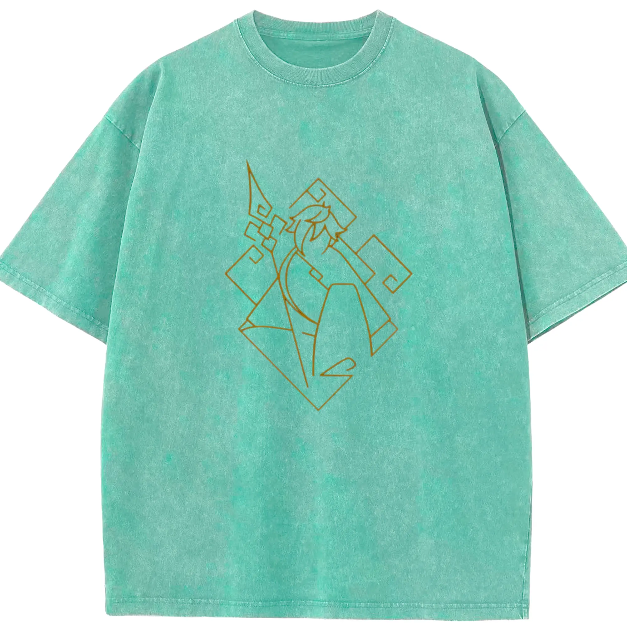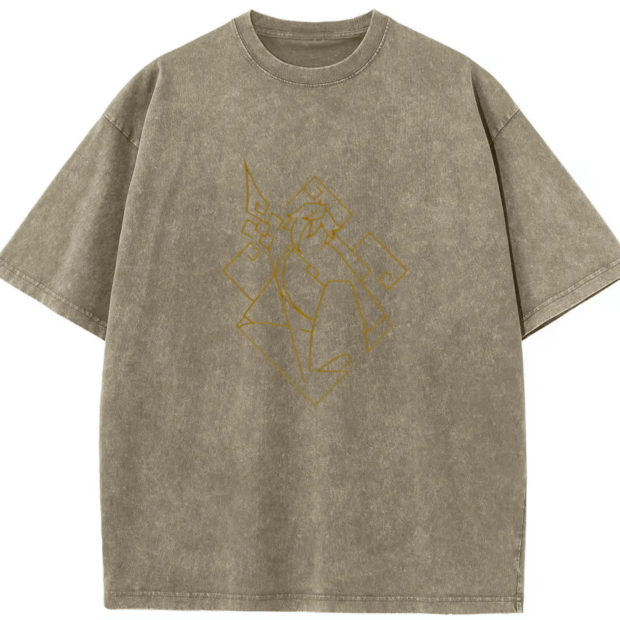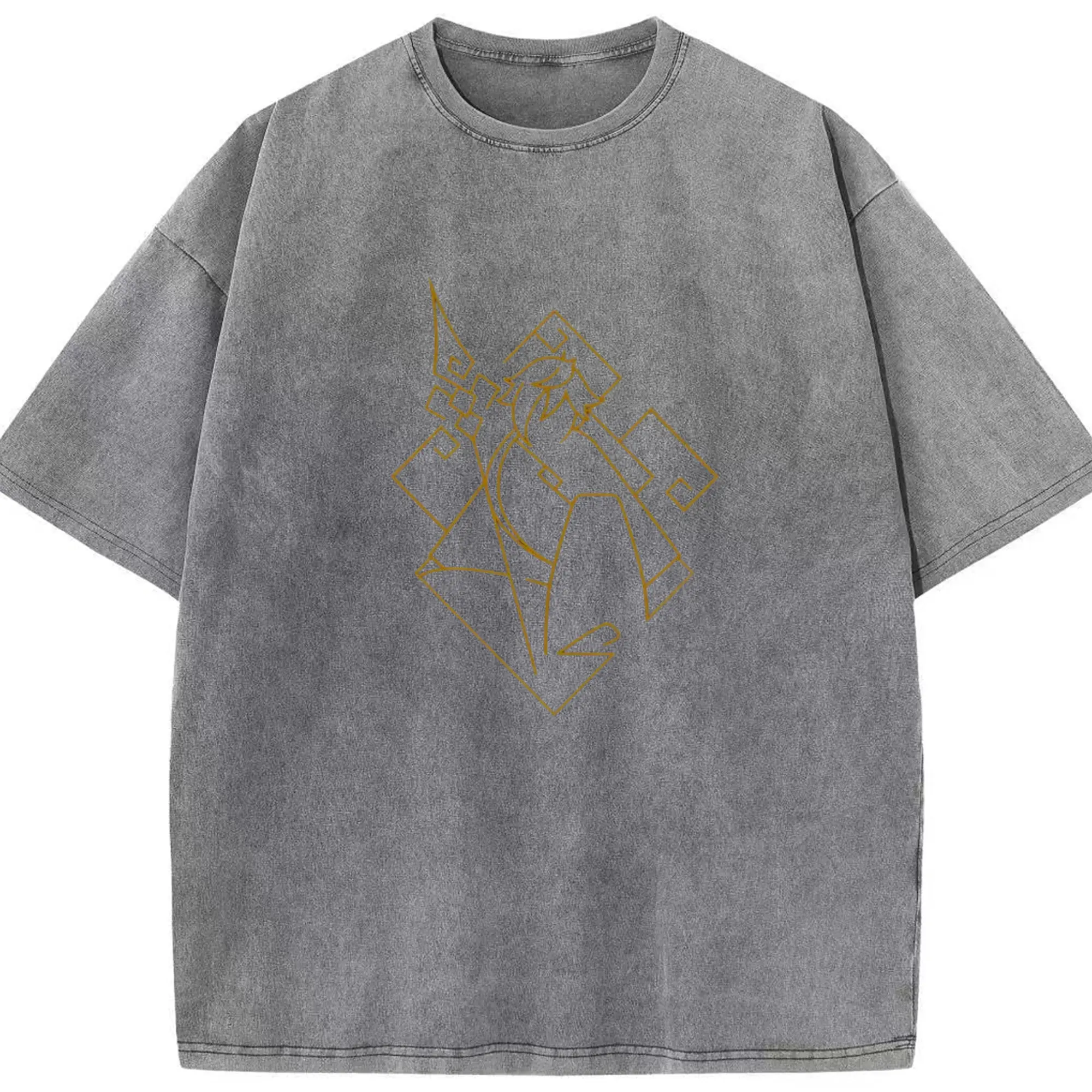 Genshin 岩神がんしんモラクス ショウリ - 綿100% ヴィンテージ風 半袖Tシャツ ・ フロントプリント ・ 柔らか肌触り ・ 通気性 快適 ・ スポーツ カジュアル 外出用