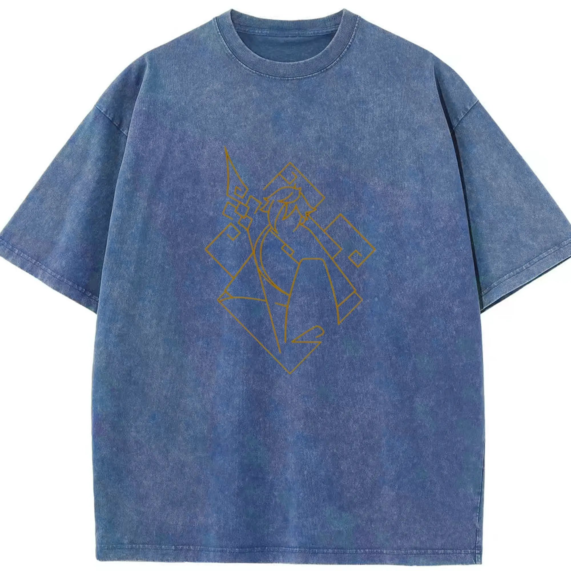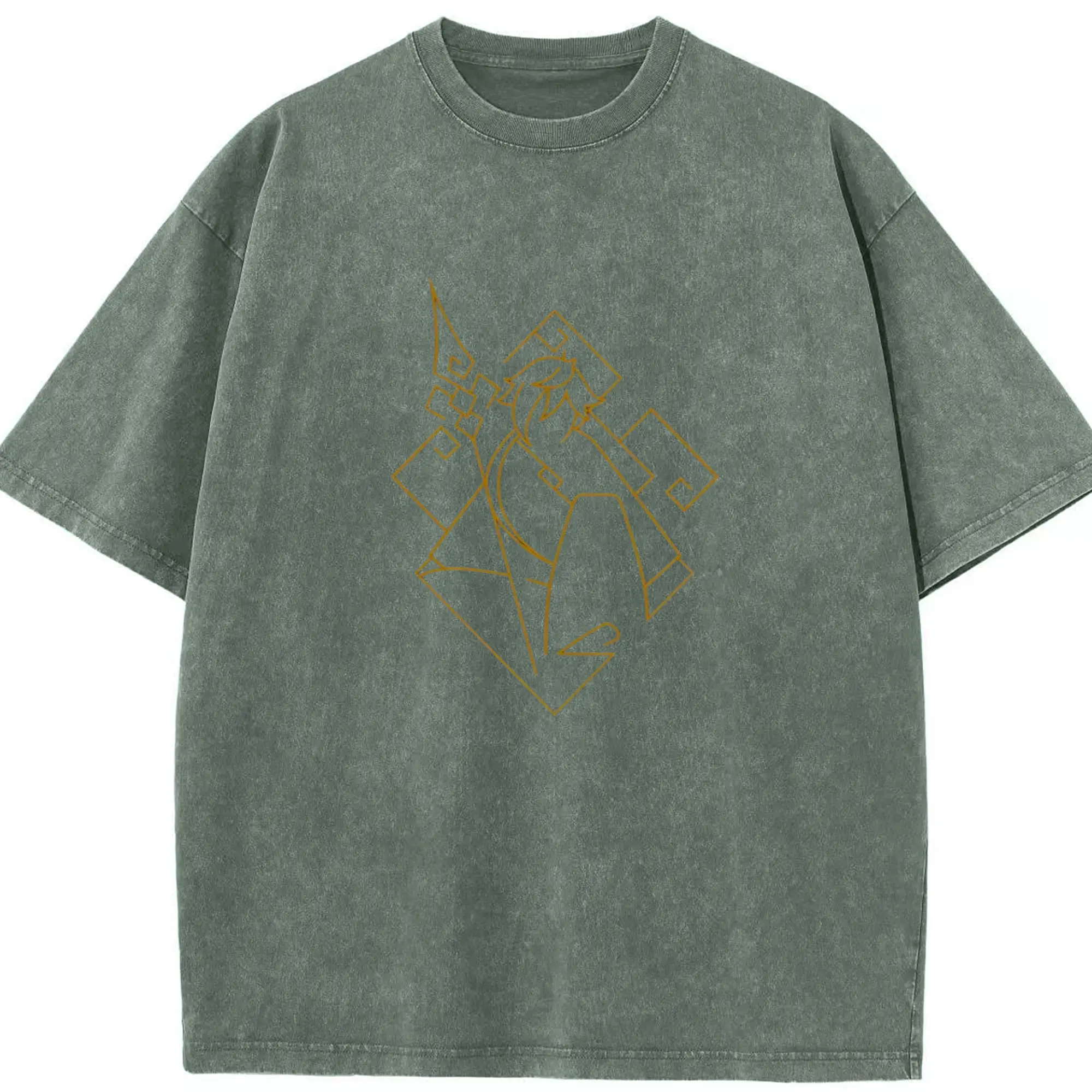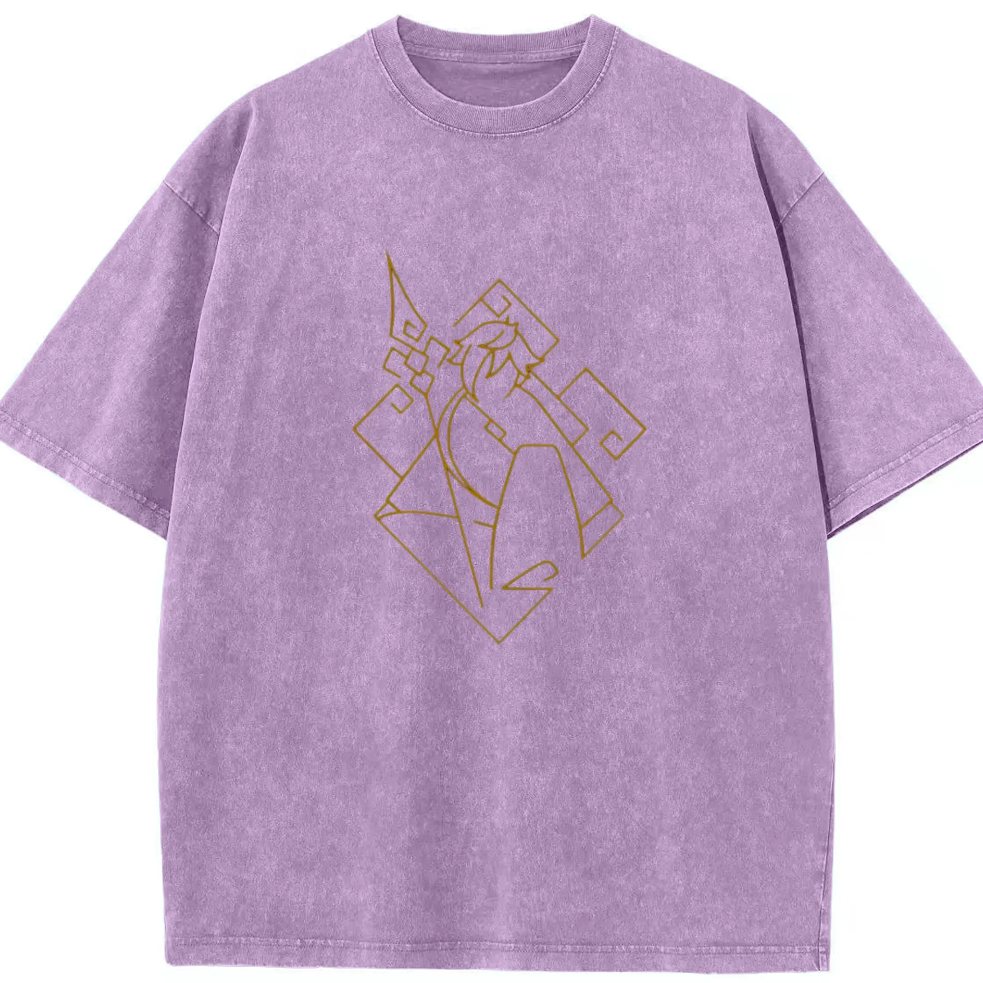 Genshin 岩神がんしんモラクス ショウリ - 綿100% ヴィンテージ風 半袖Tシャツ ・ フロントプリント ・ 柔らか肌触り ・ 通気性 快適 ・ スポーツ カジュアル 外出用