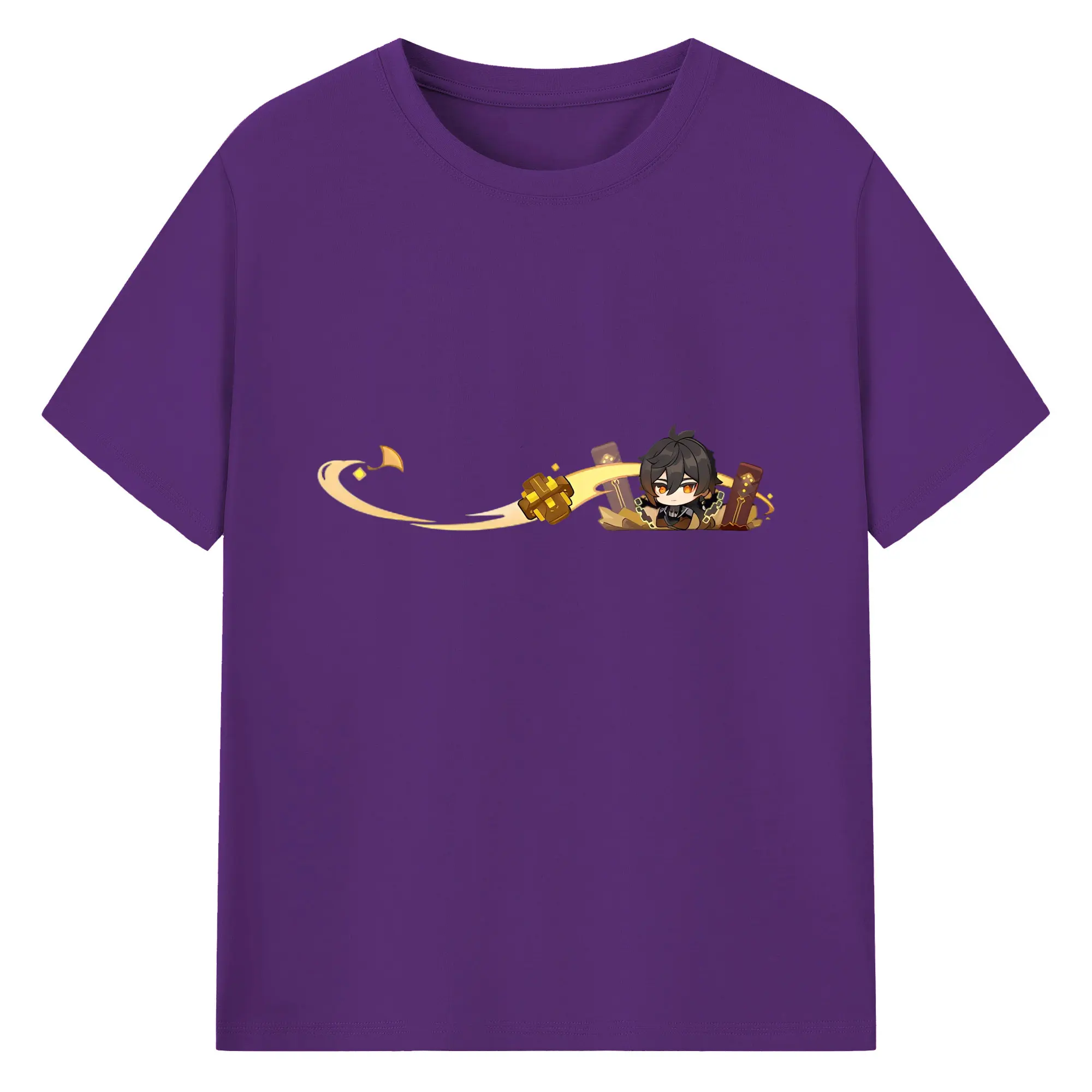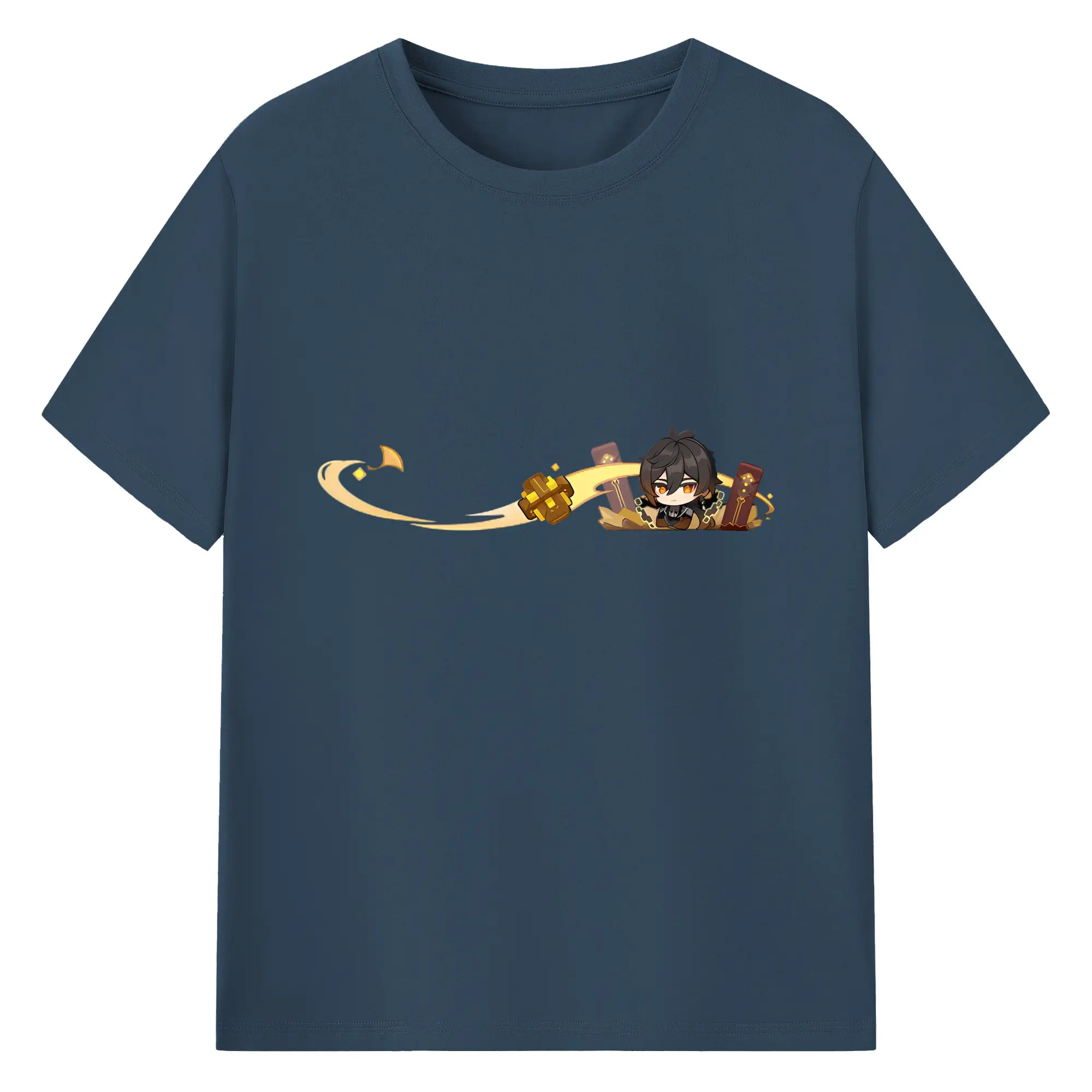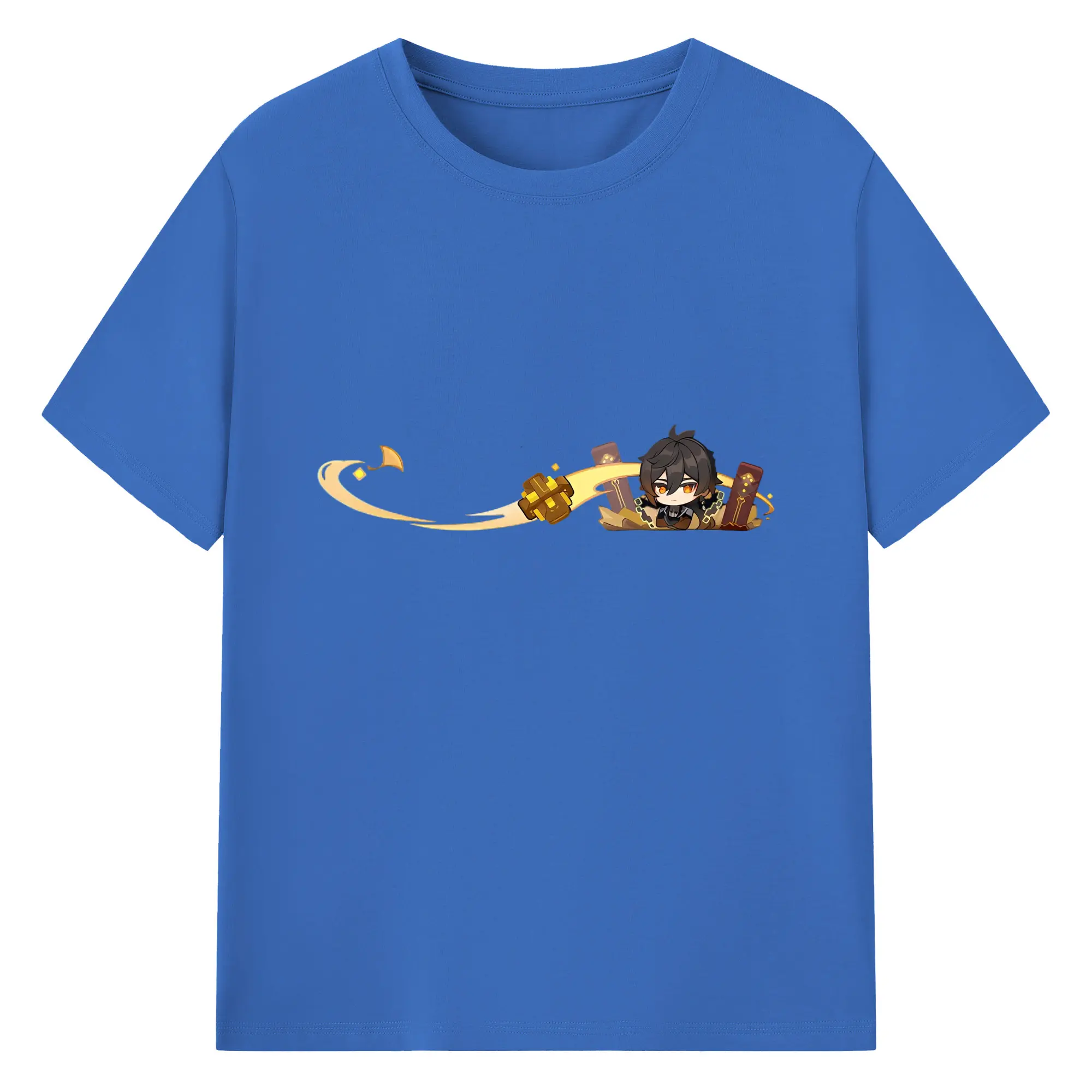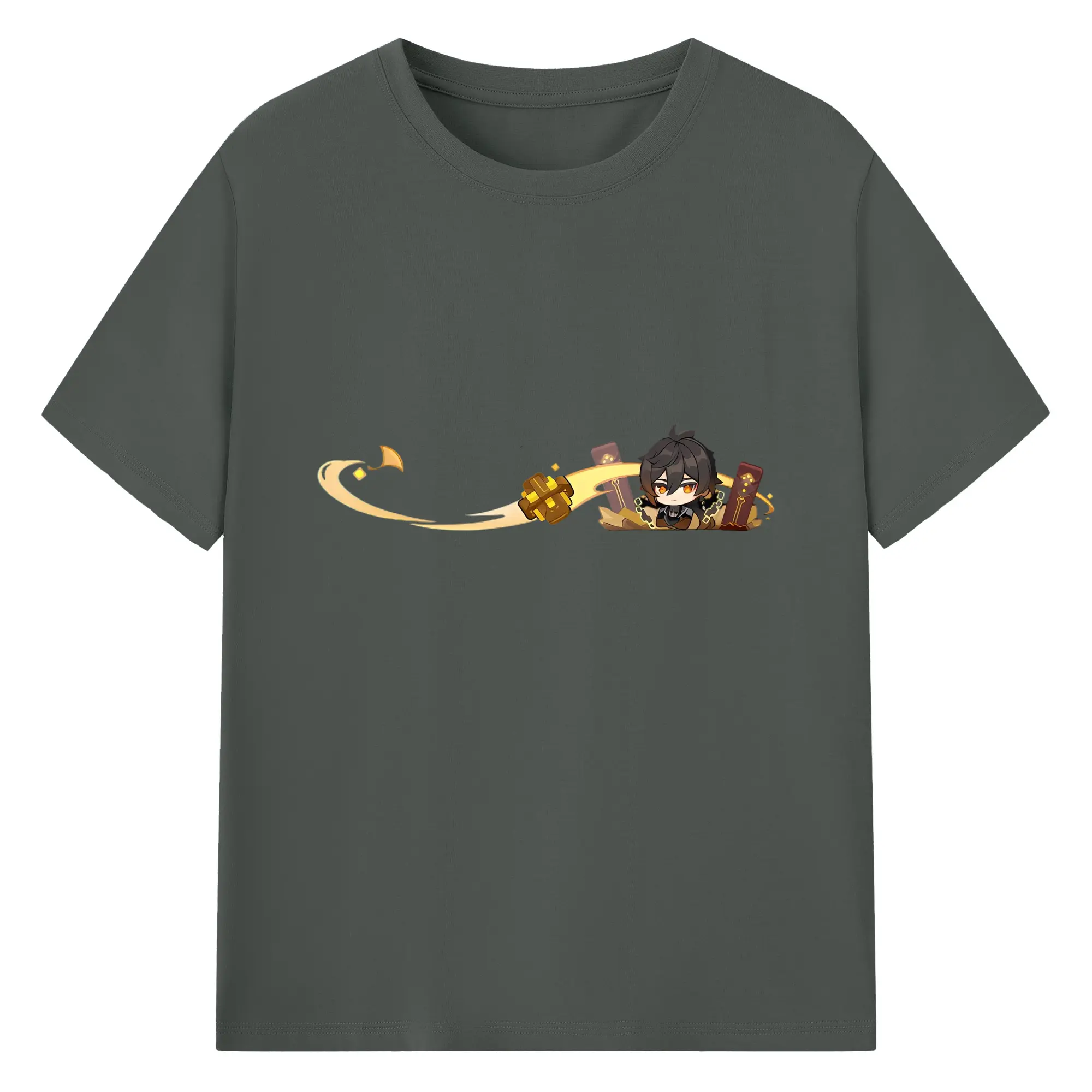 Genshin 岩神がんしんモラクス ショウリ - 綿100% 半袖Tシャツ ・ フロントプリント ・ 快適 通気性 ・ 日常使い 散歩 スポーツ用