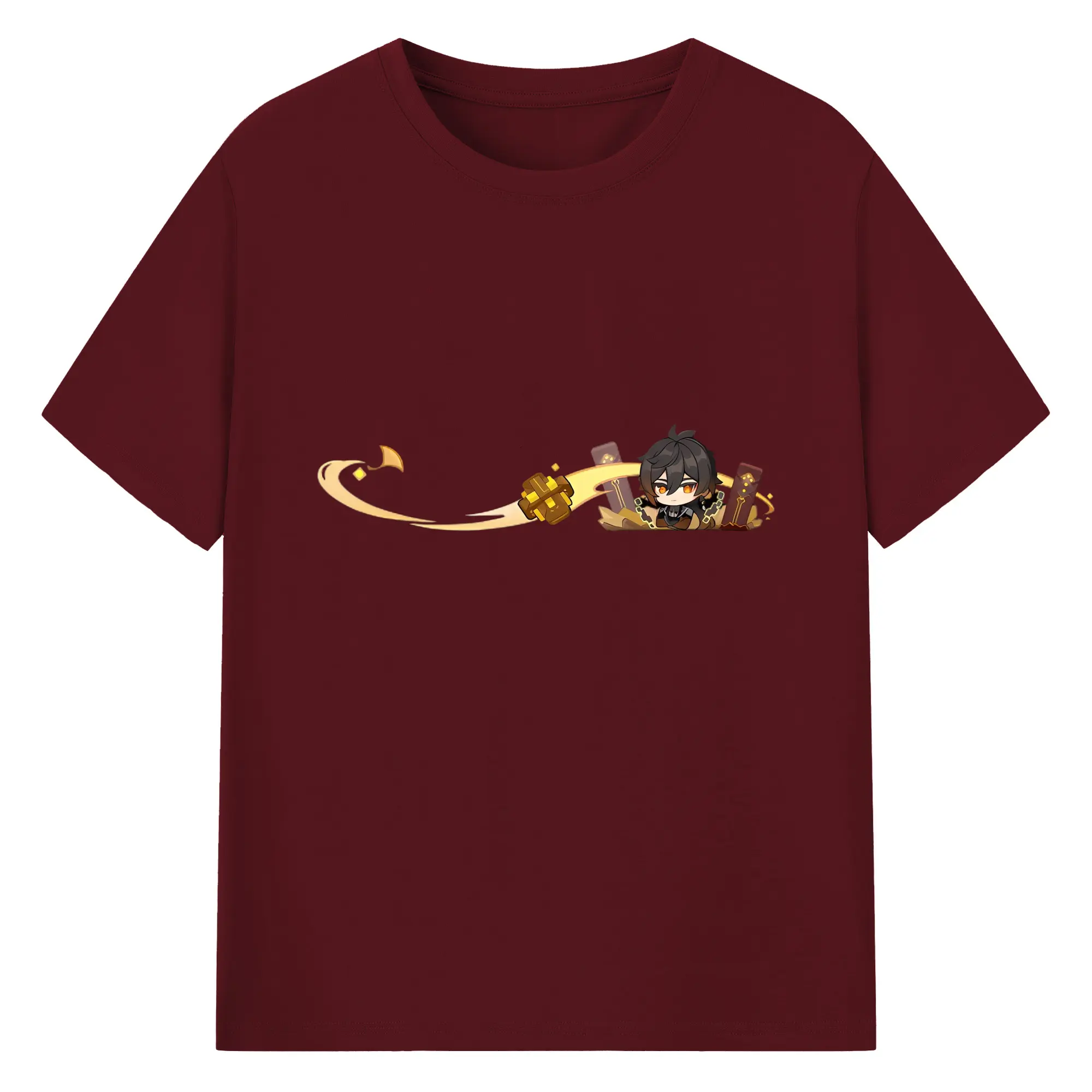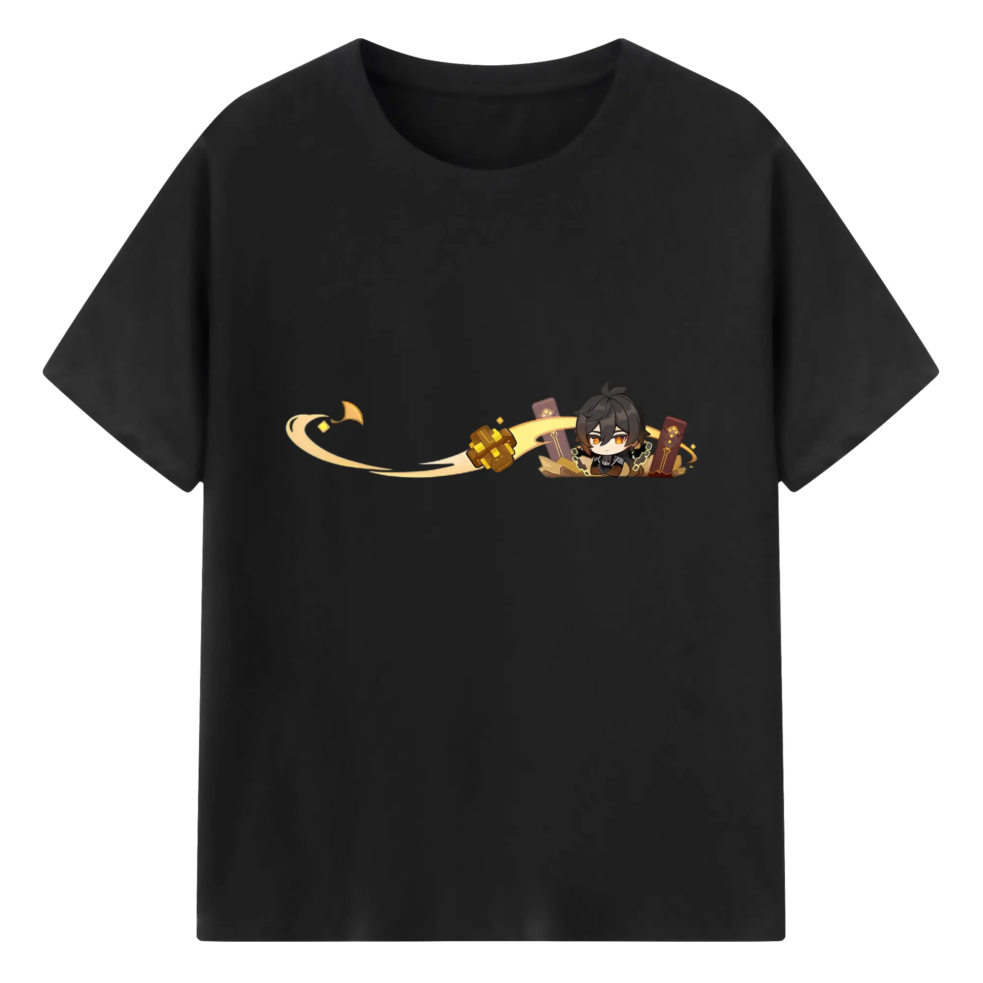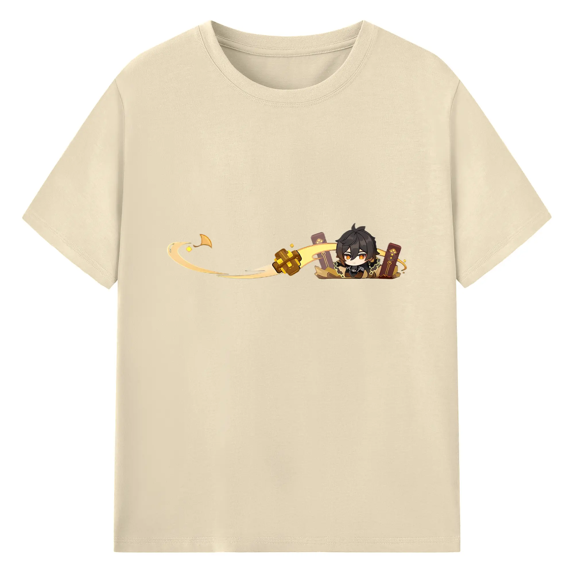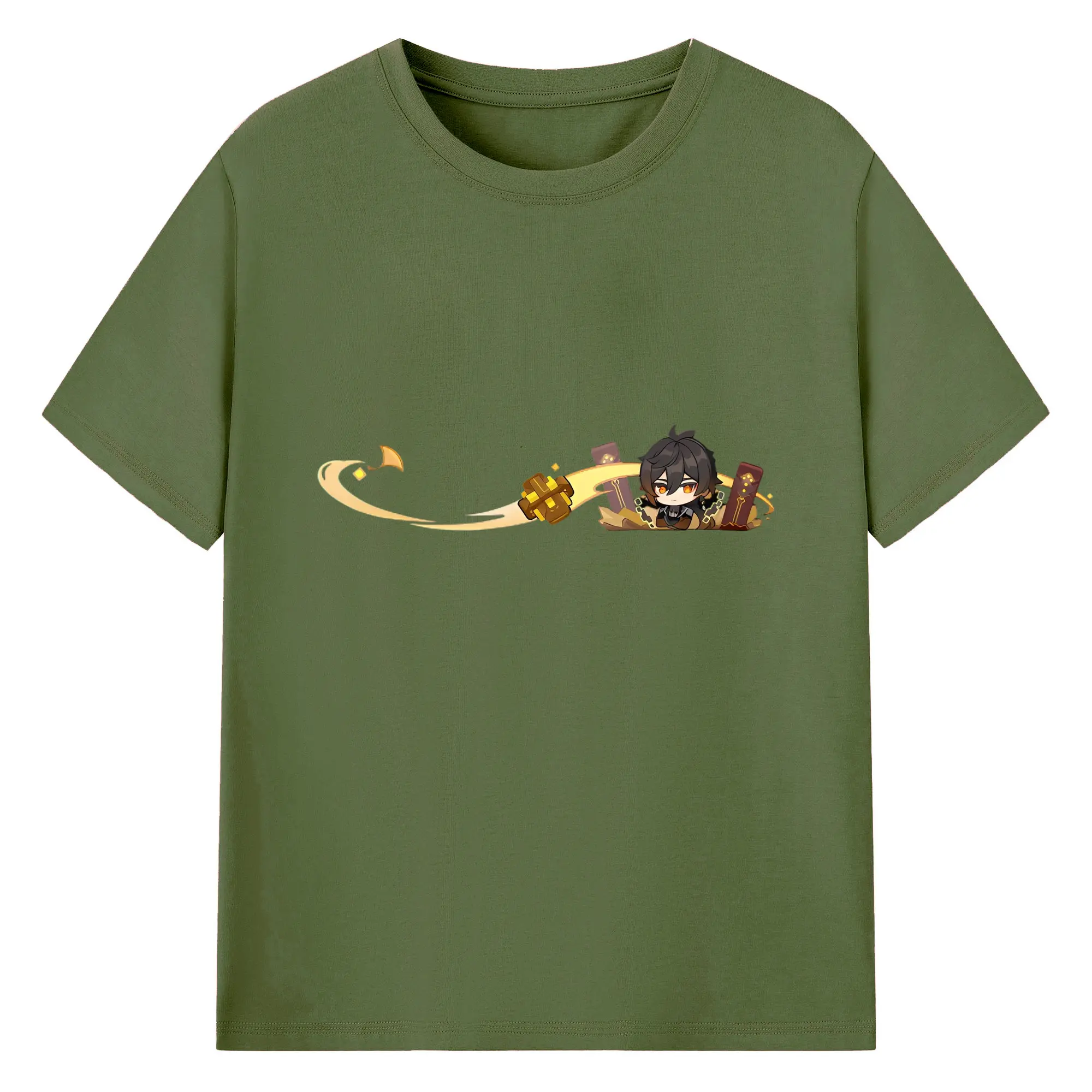 Genshin 岩神がんしんモラクス ショウリ - 綿100% 半袖Tシャツ ・ フロントプリント ・ 快適 通気性 ・ 日常使い 散歩 スポーツ用
