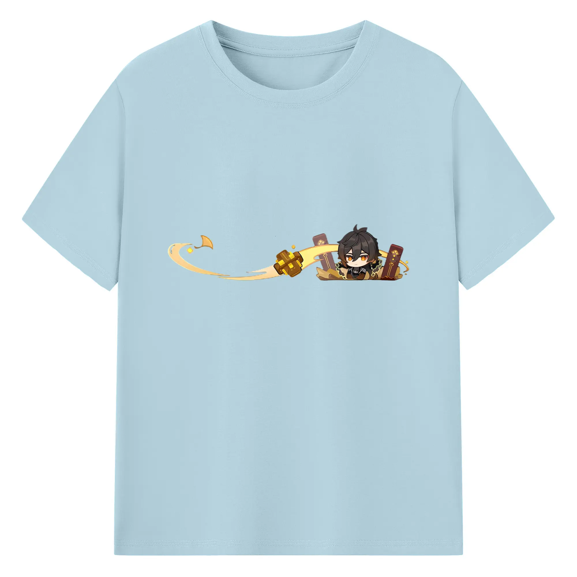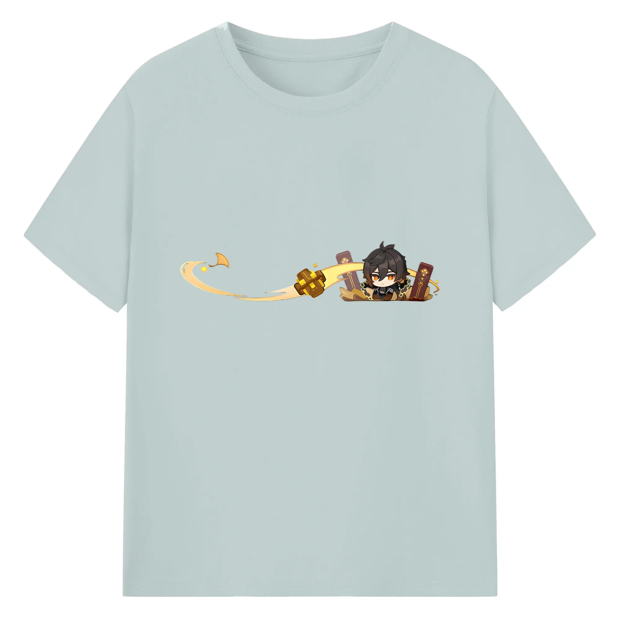 Genshin リーユエ フートウ - 綿100% 半袖Tシャツ ・ フロントプリント ・ 快適 通気性 ・ 日常使い 散歩 スポーツ用