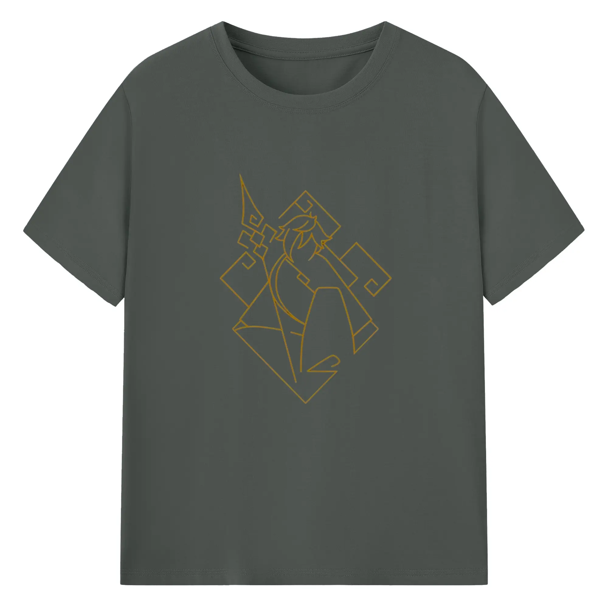 Genshin 岩神がんしんモラクス ショウリ - 綿100% 半袖Tシャツ ・ フロントプリント ・ 快適 通気性 ・ 日常使い 散歩 スポーツ用