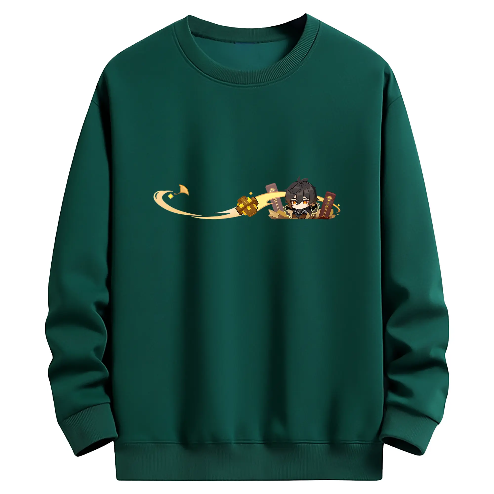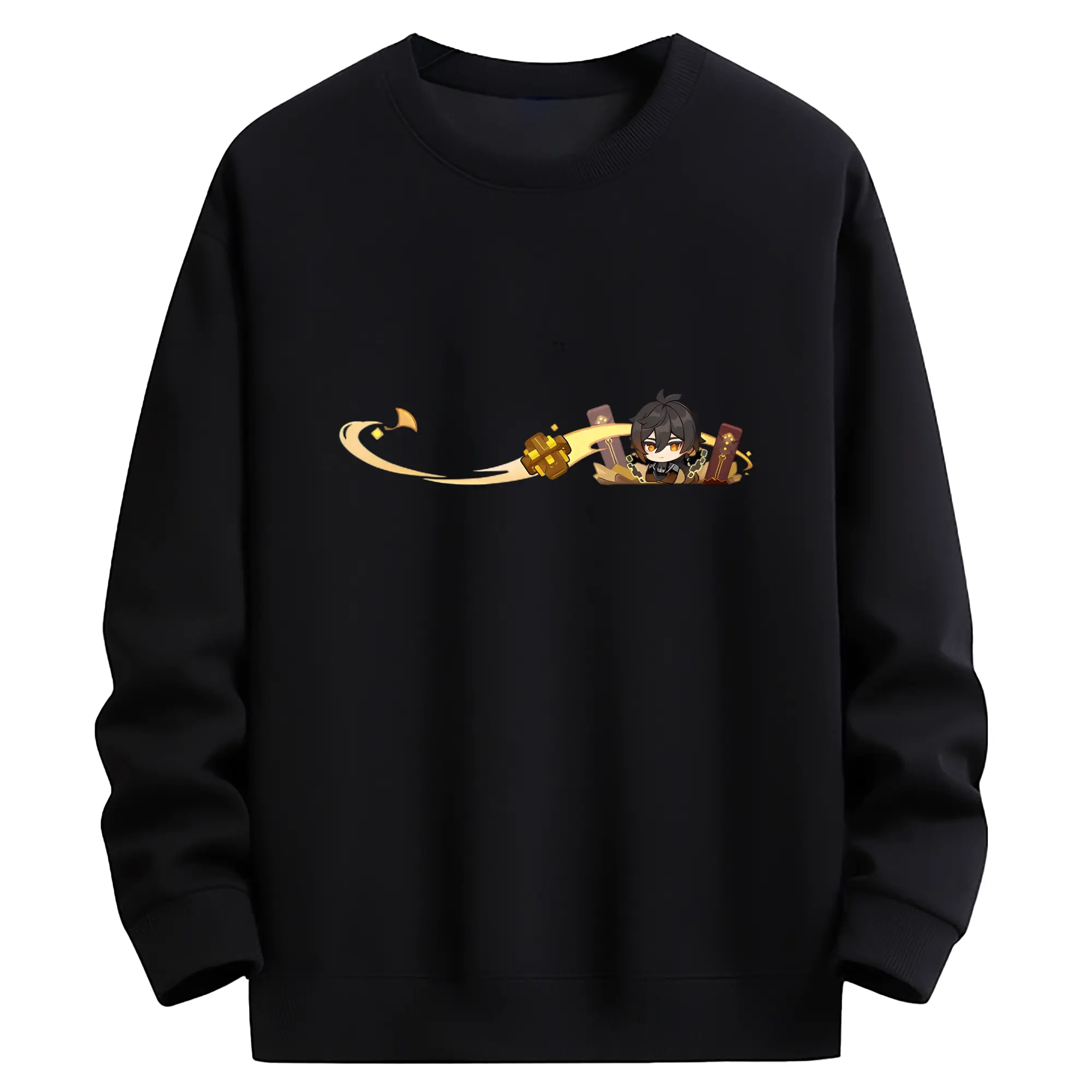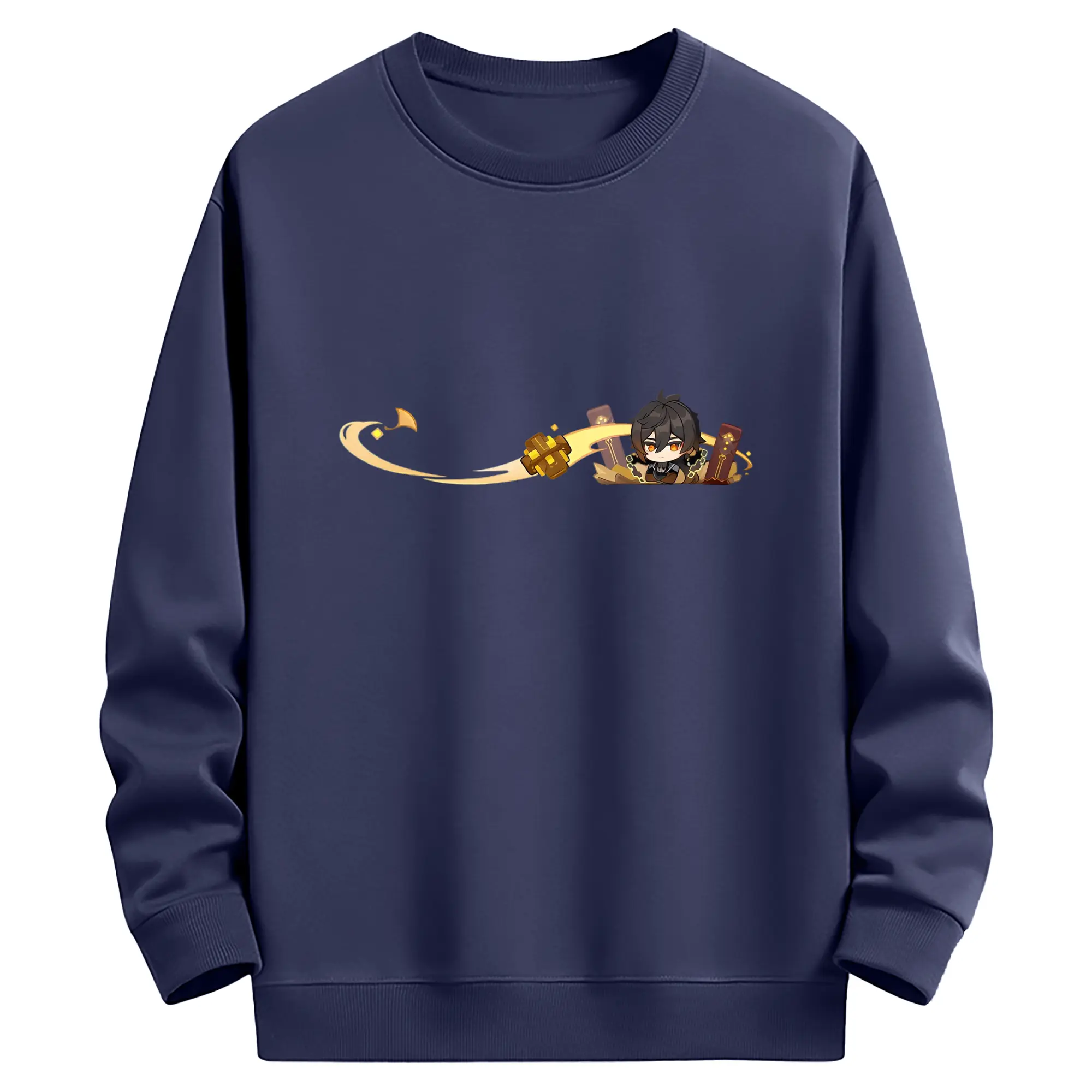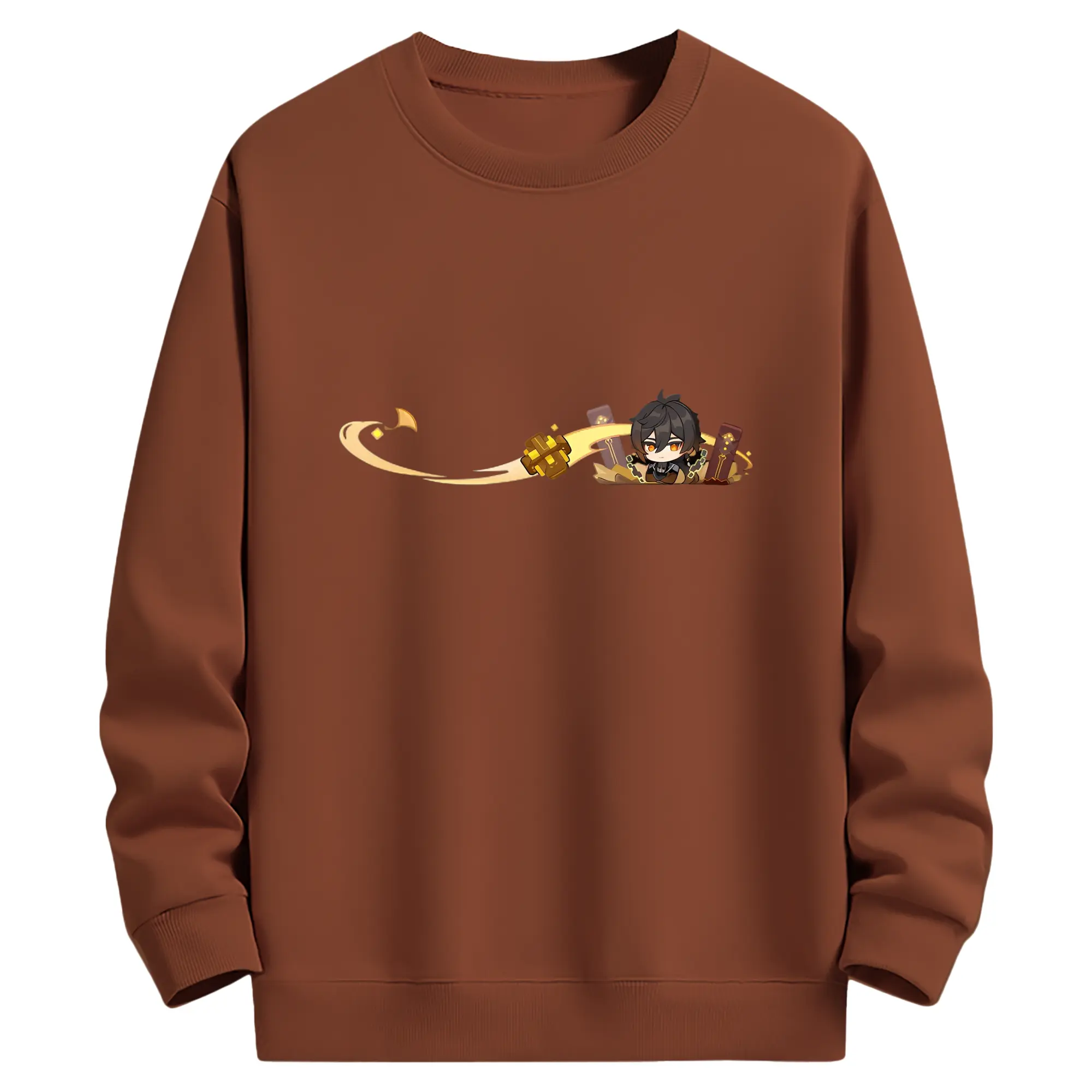 Genshin 岩神がんしんモラクス ショウリ - 高品質 クルーネック スウェット ・ コットン59% ポリエステル41% ・ ユニセックス 長袖 トレーナー ・ カジュアル デイリー スポーツ 散歩用