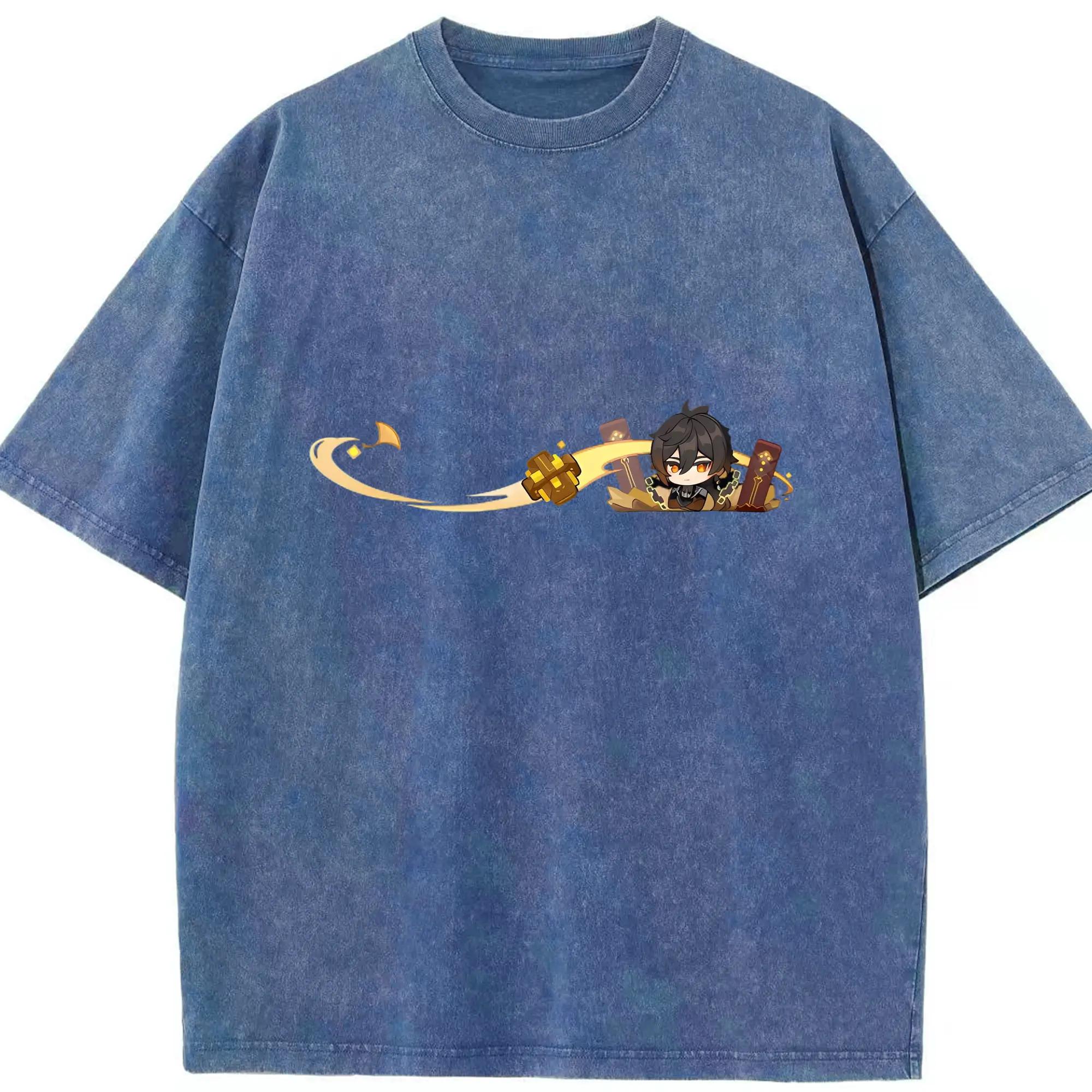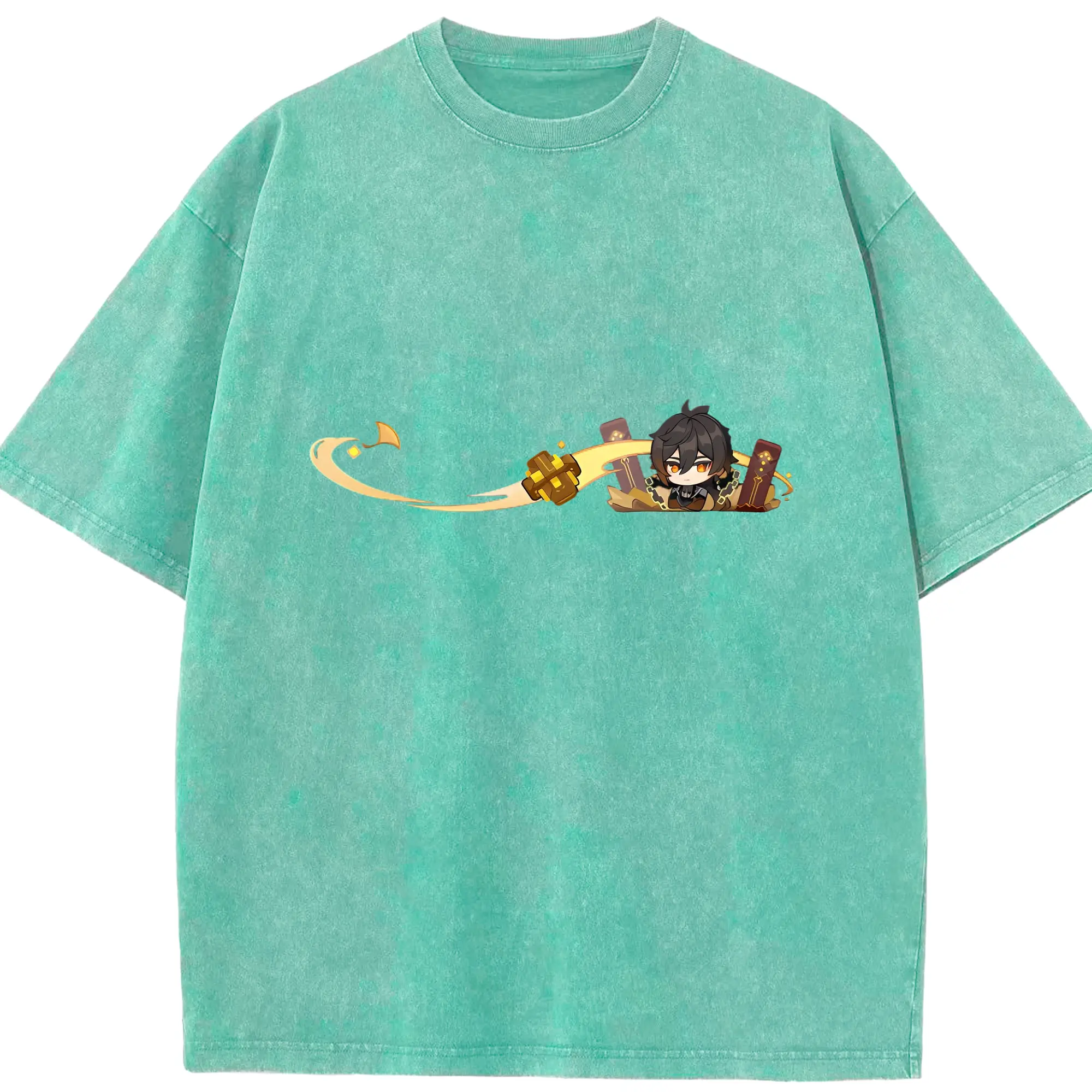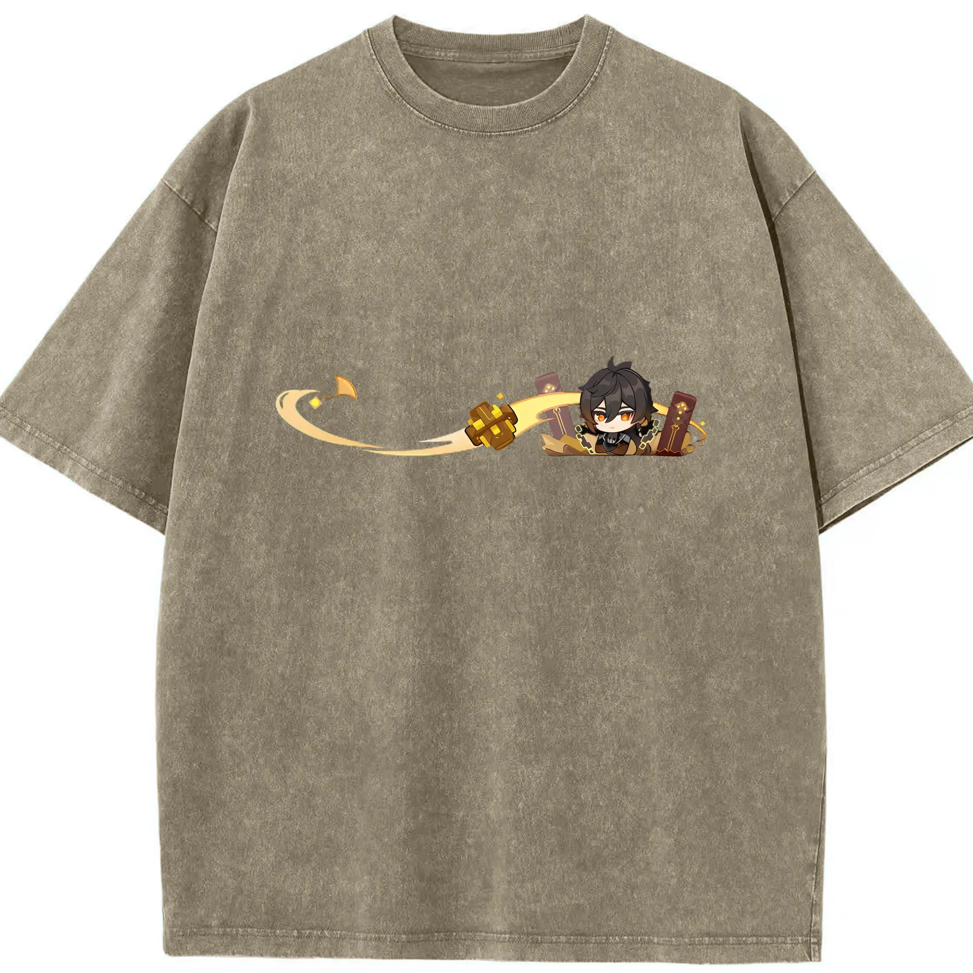 Genshin 岩神がんしんモラクス ショウリ - 綿100% ヴィンテージ風 半袖Tシャツ ・ フロントプリント ・ 柔らか肌触り ・ 通気性 快適 ・ スポーツ カジュアル 外出用